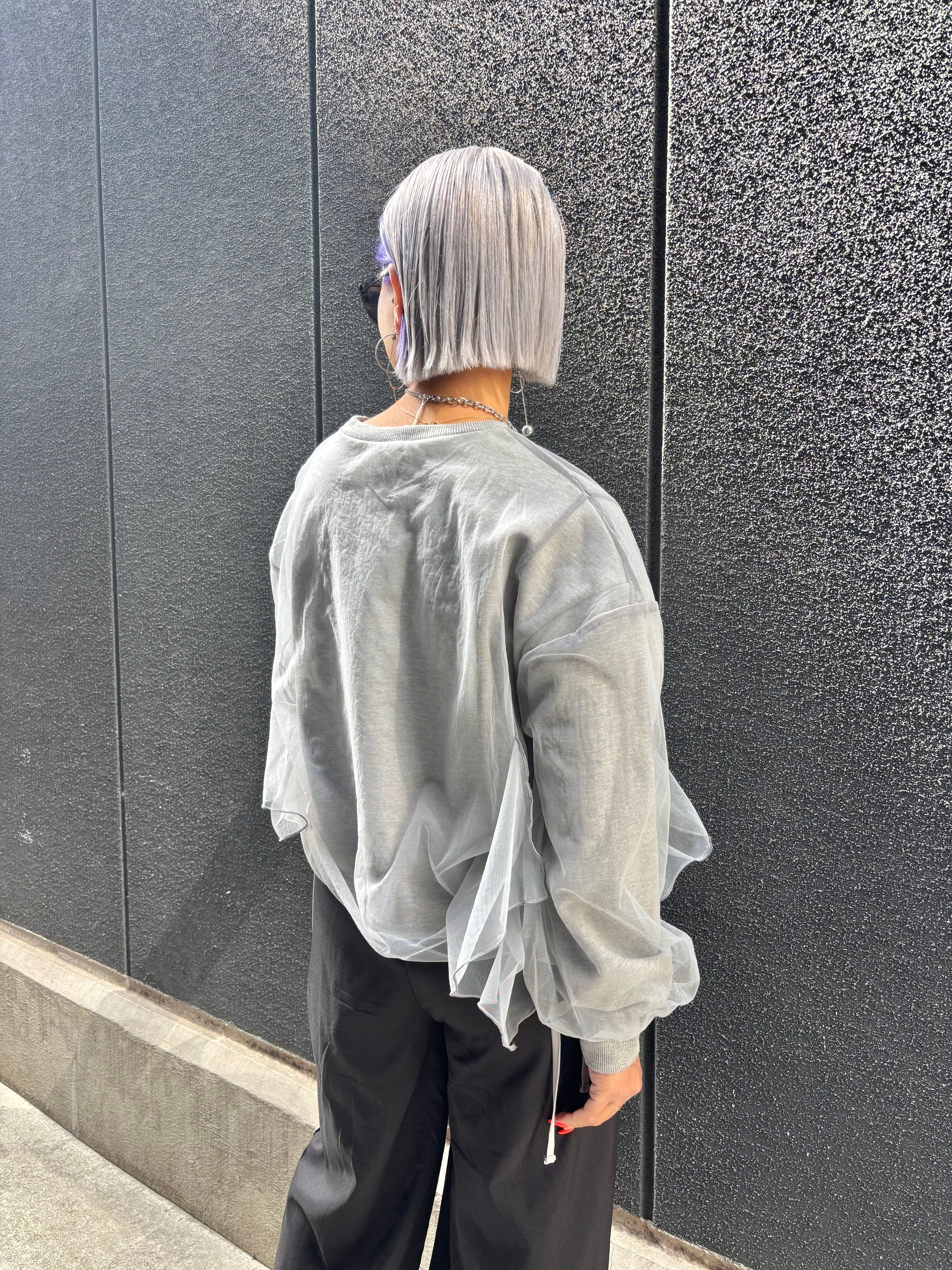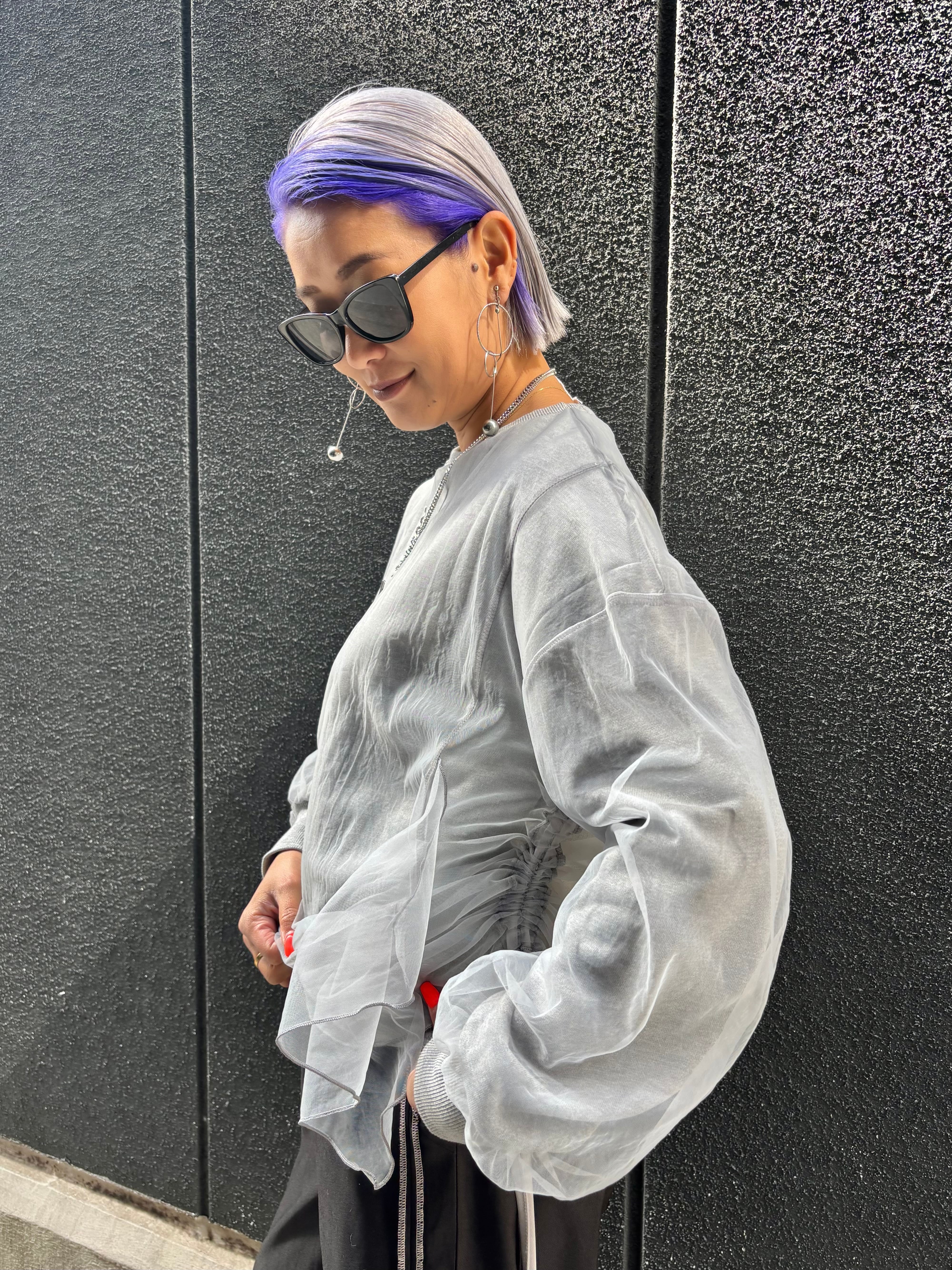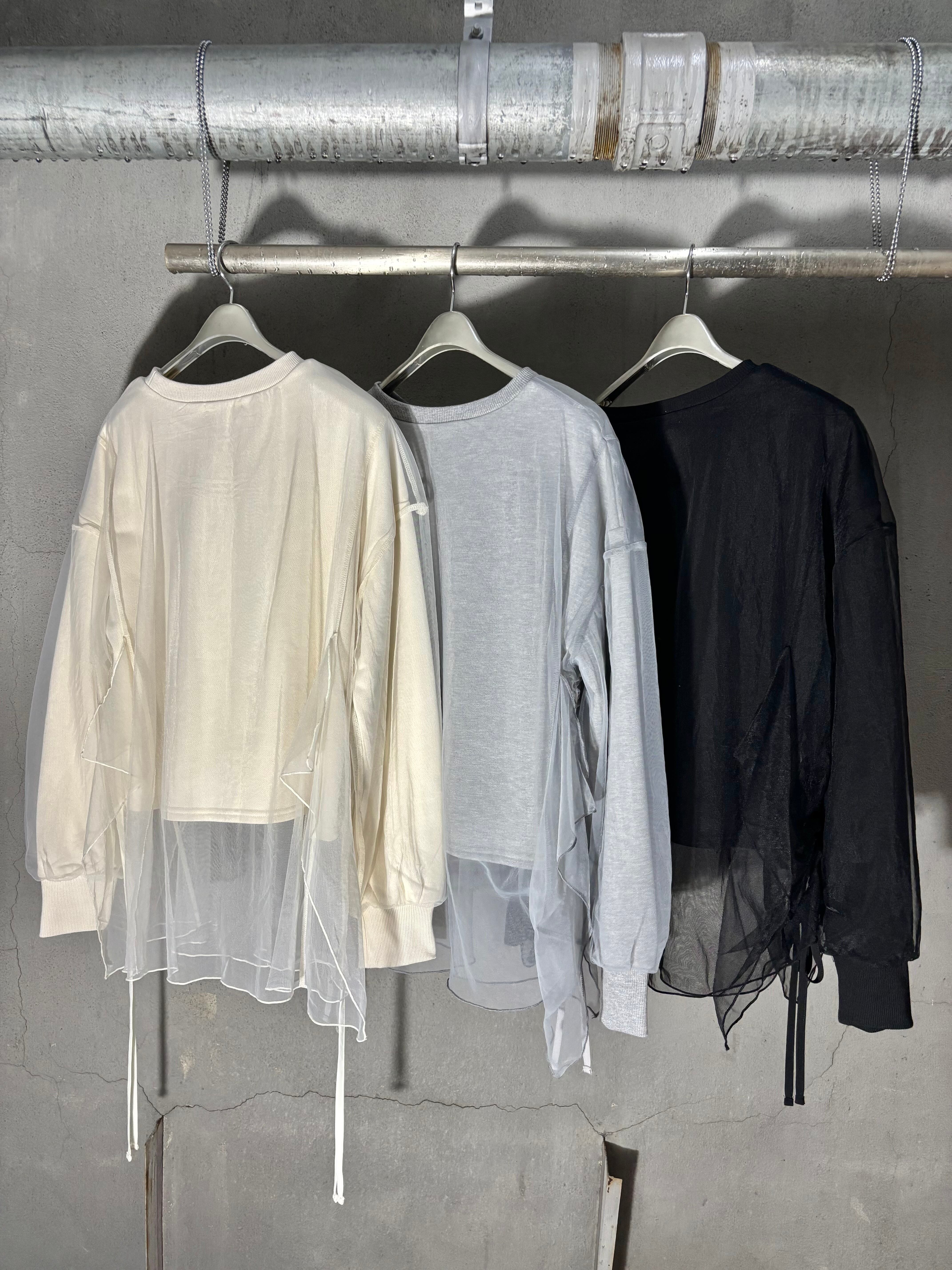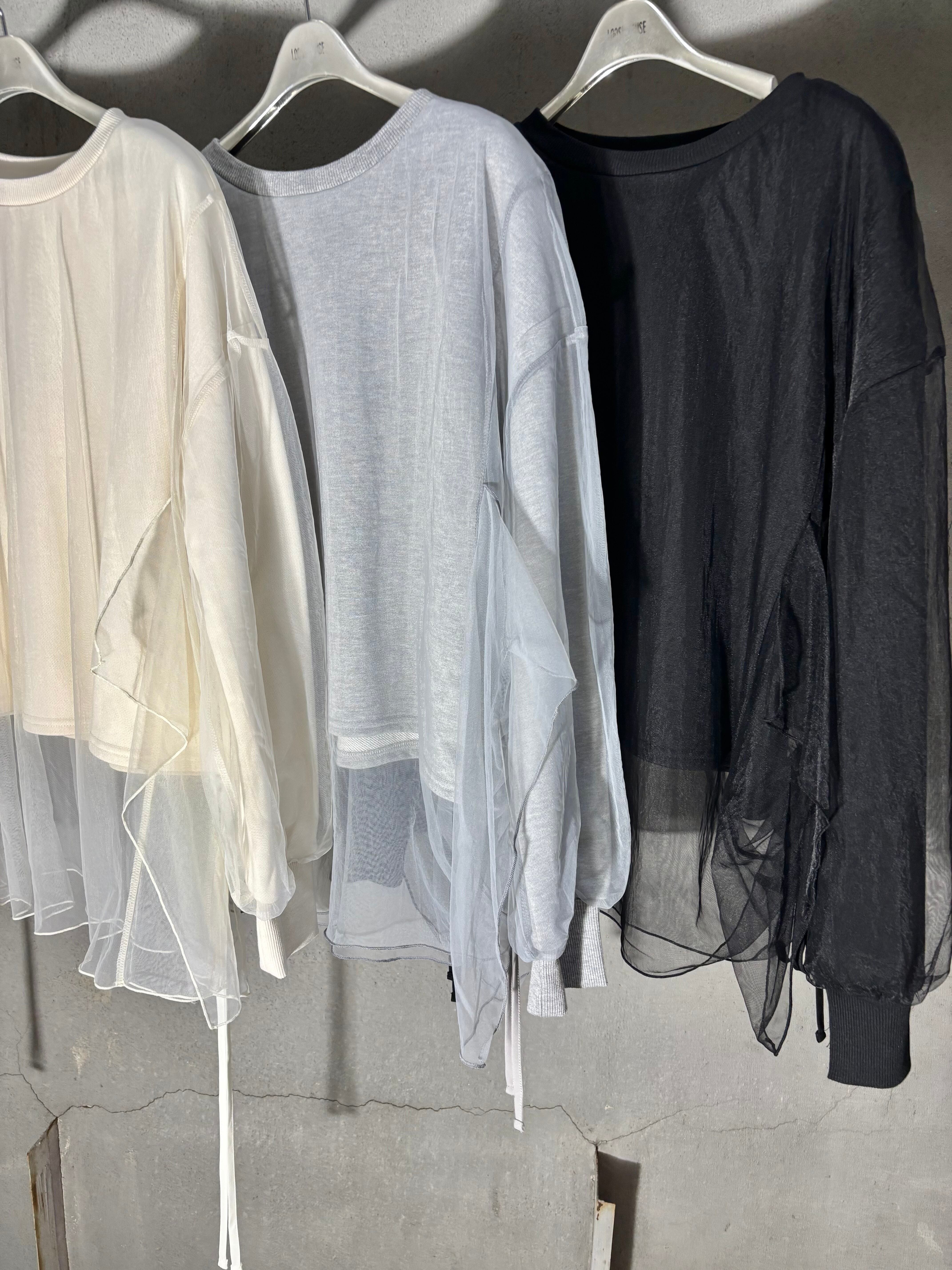 tulle cover × side drawstrings design tops トップス チュール カバーデザイン ドローコード シャーリング
