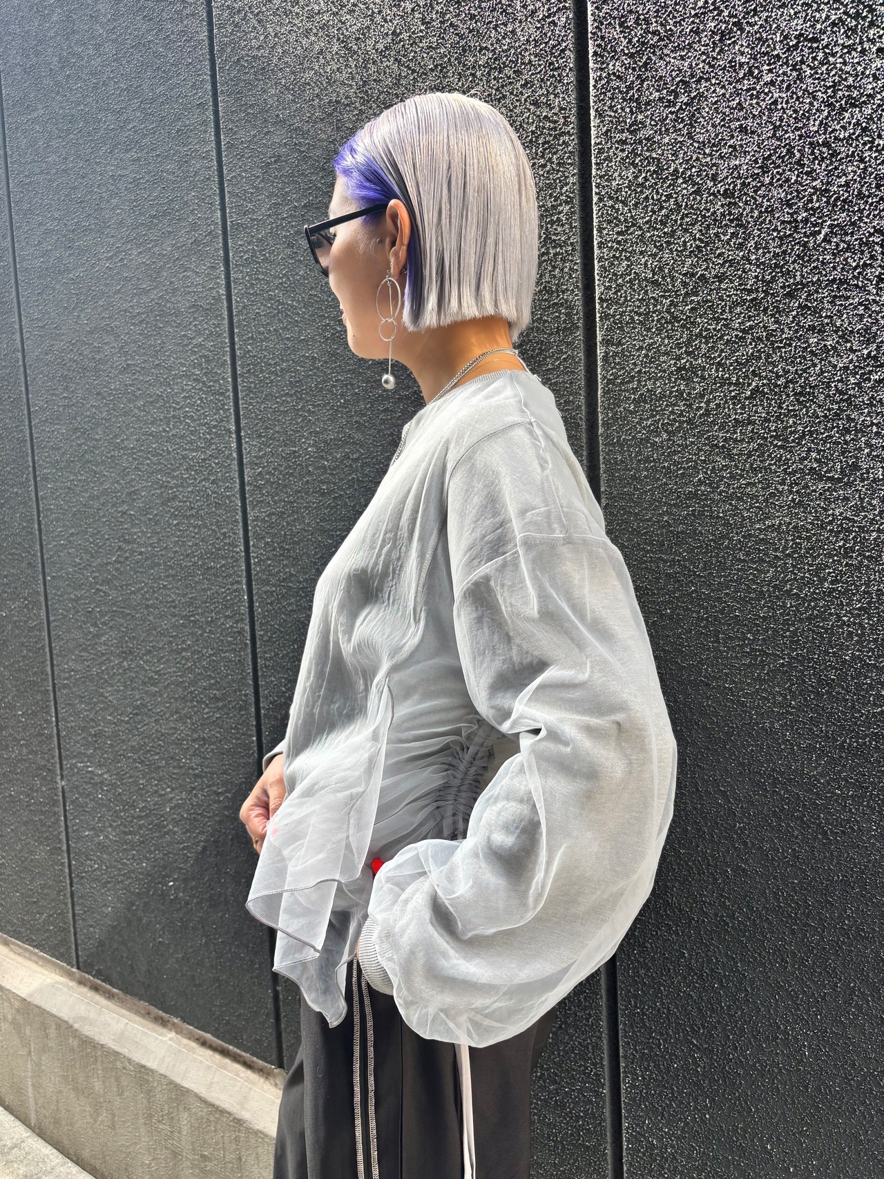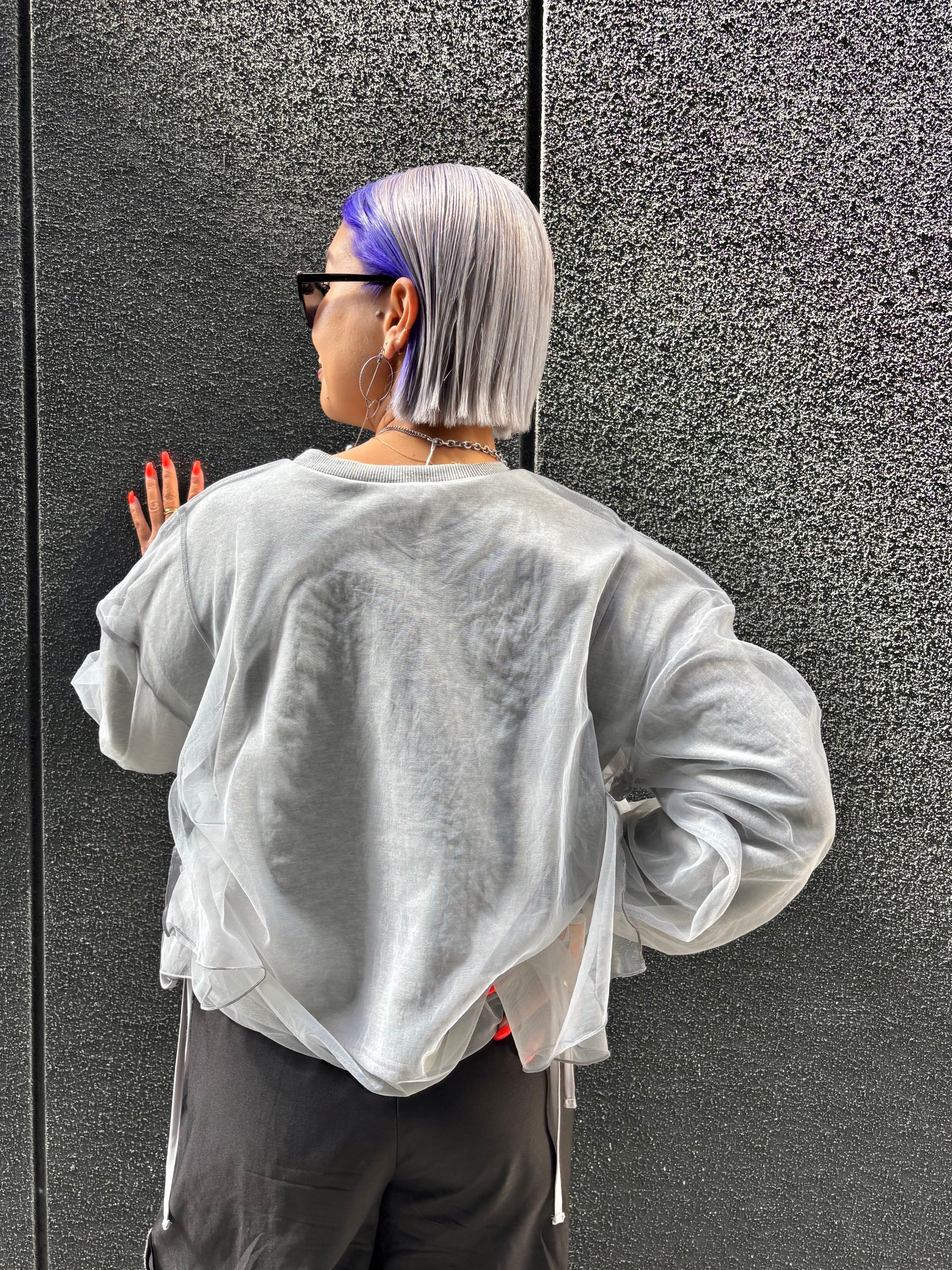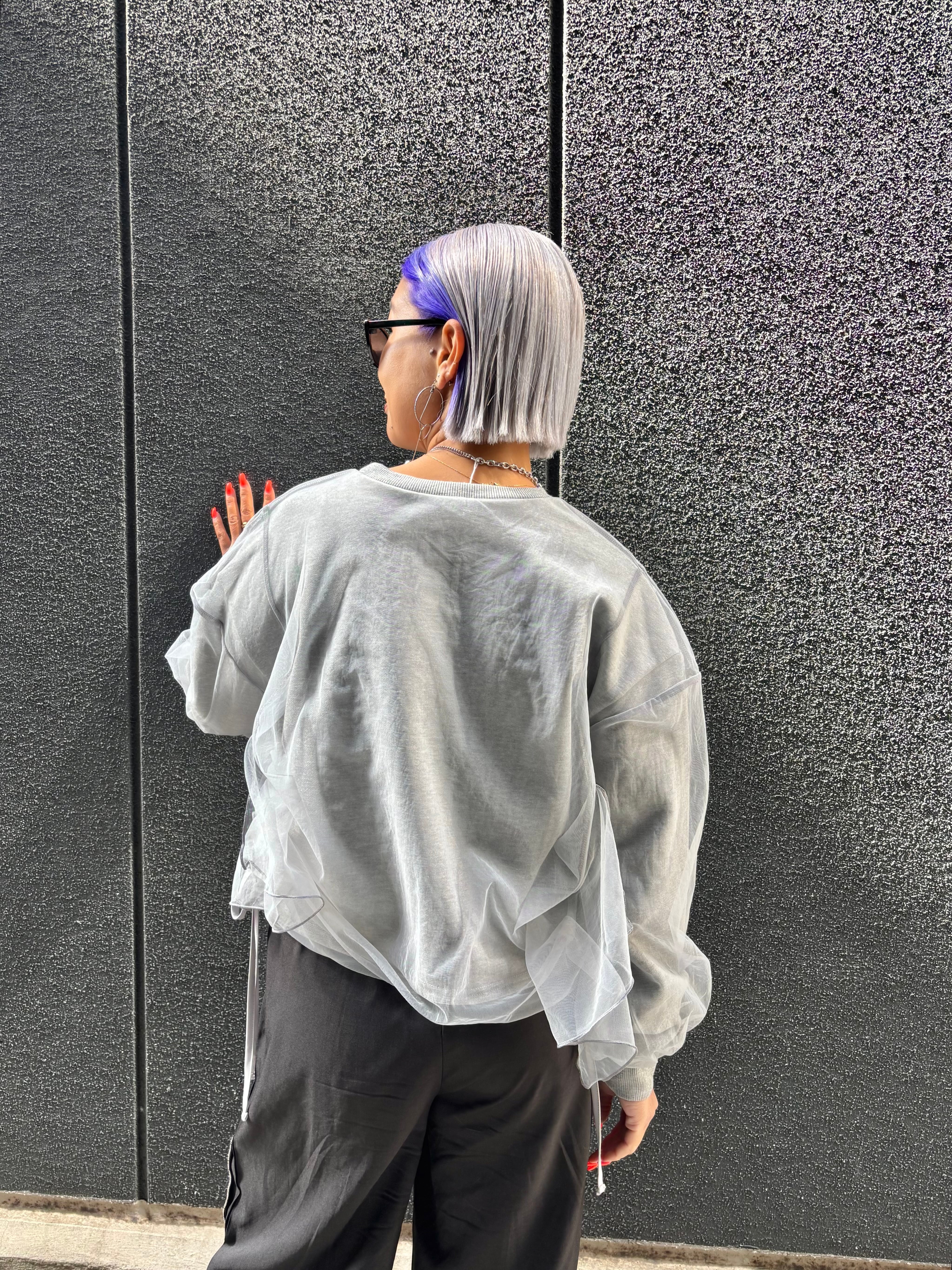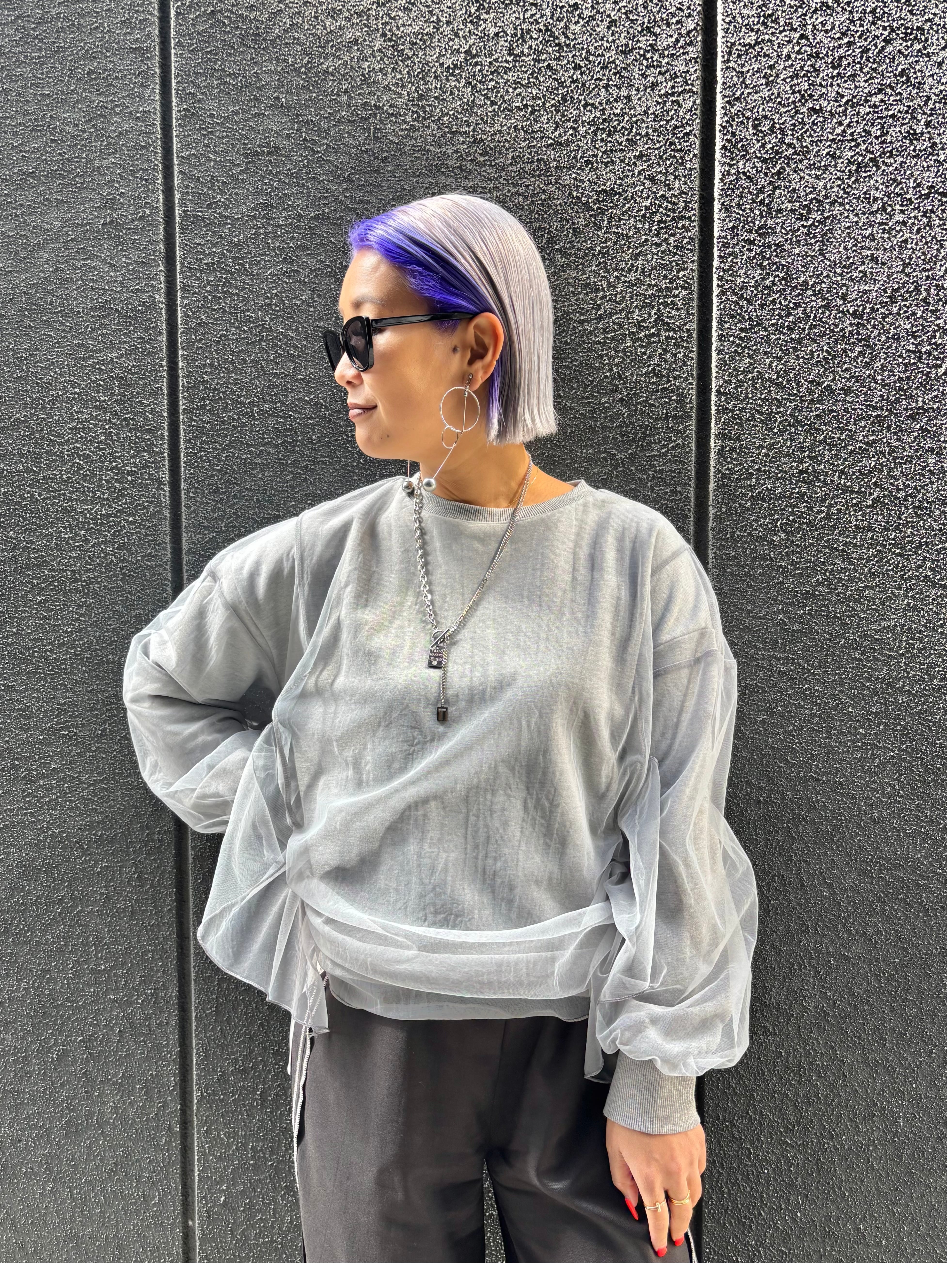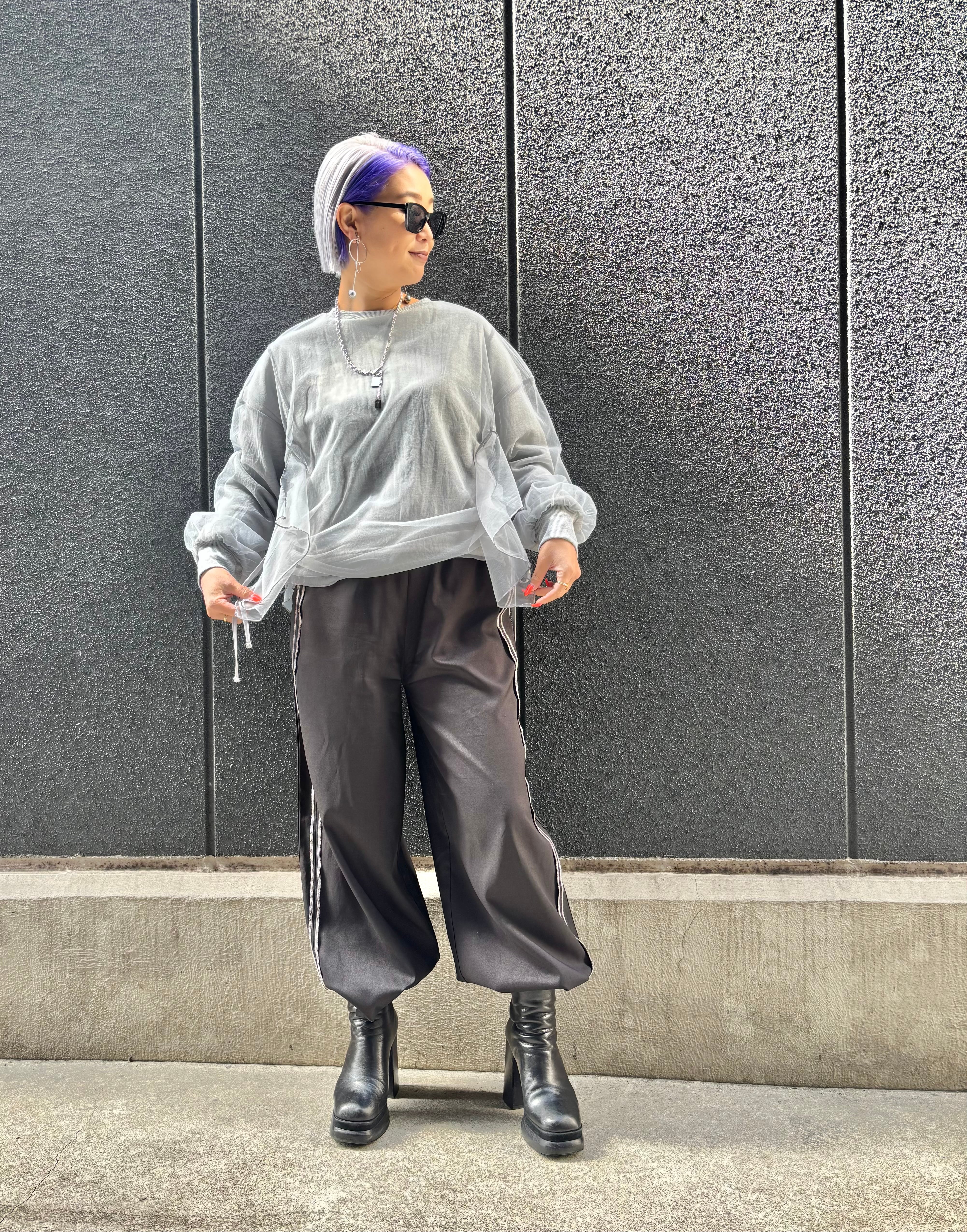 tulle cover × side drawstrings design tops トップス チュール カバーデザイン ドローコード シャーリング