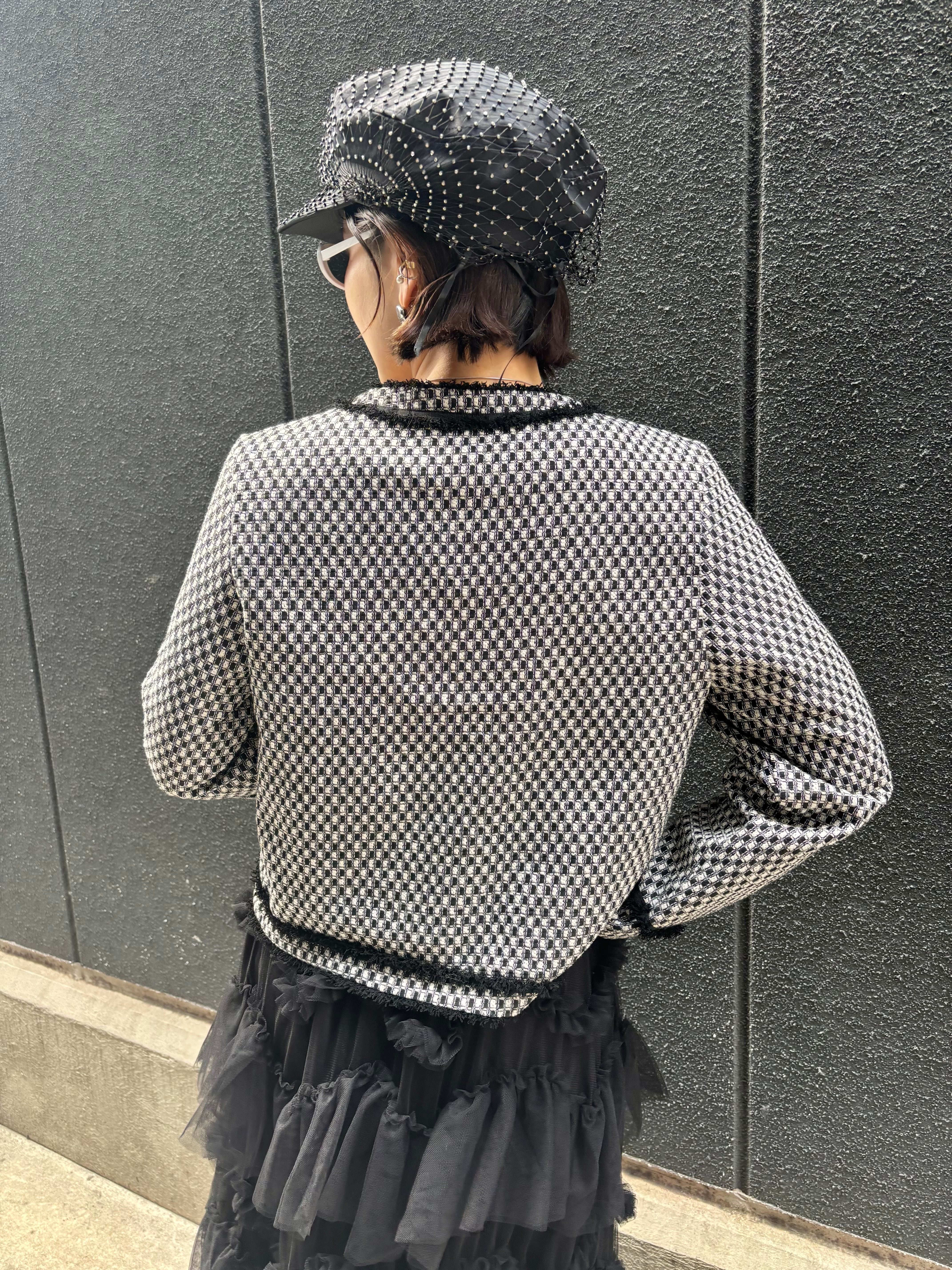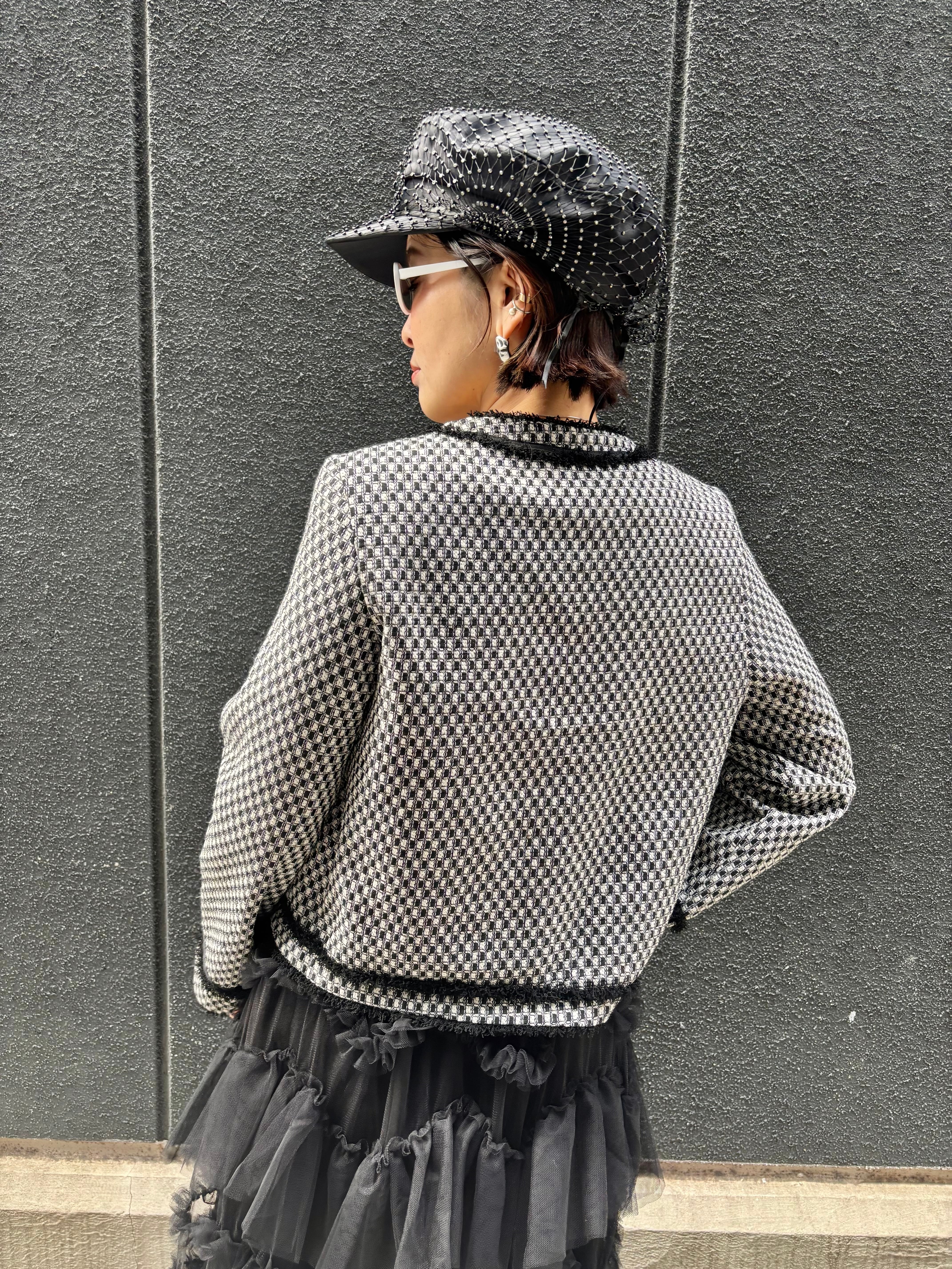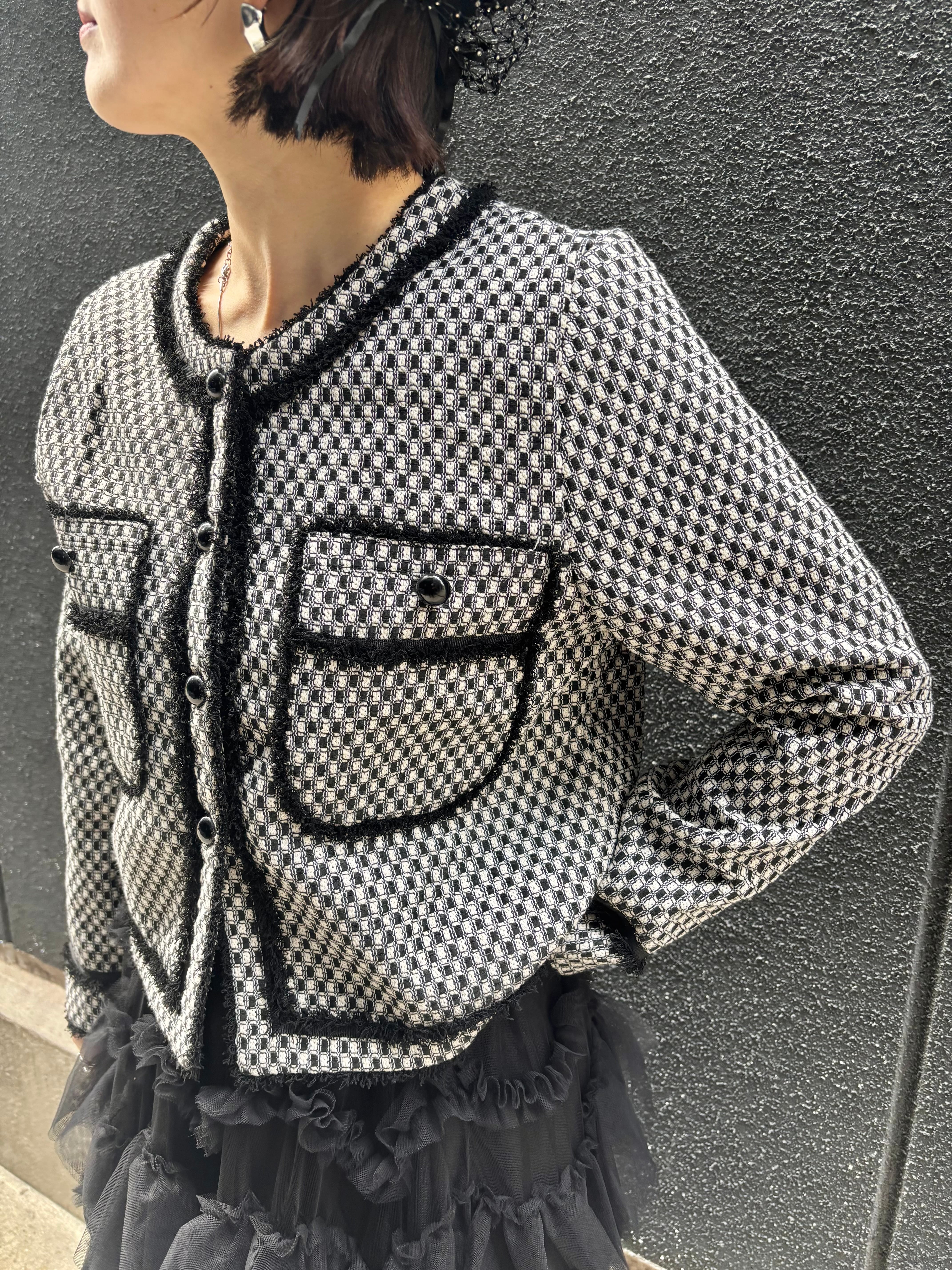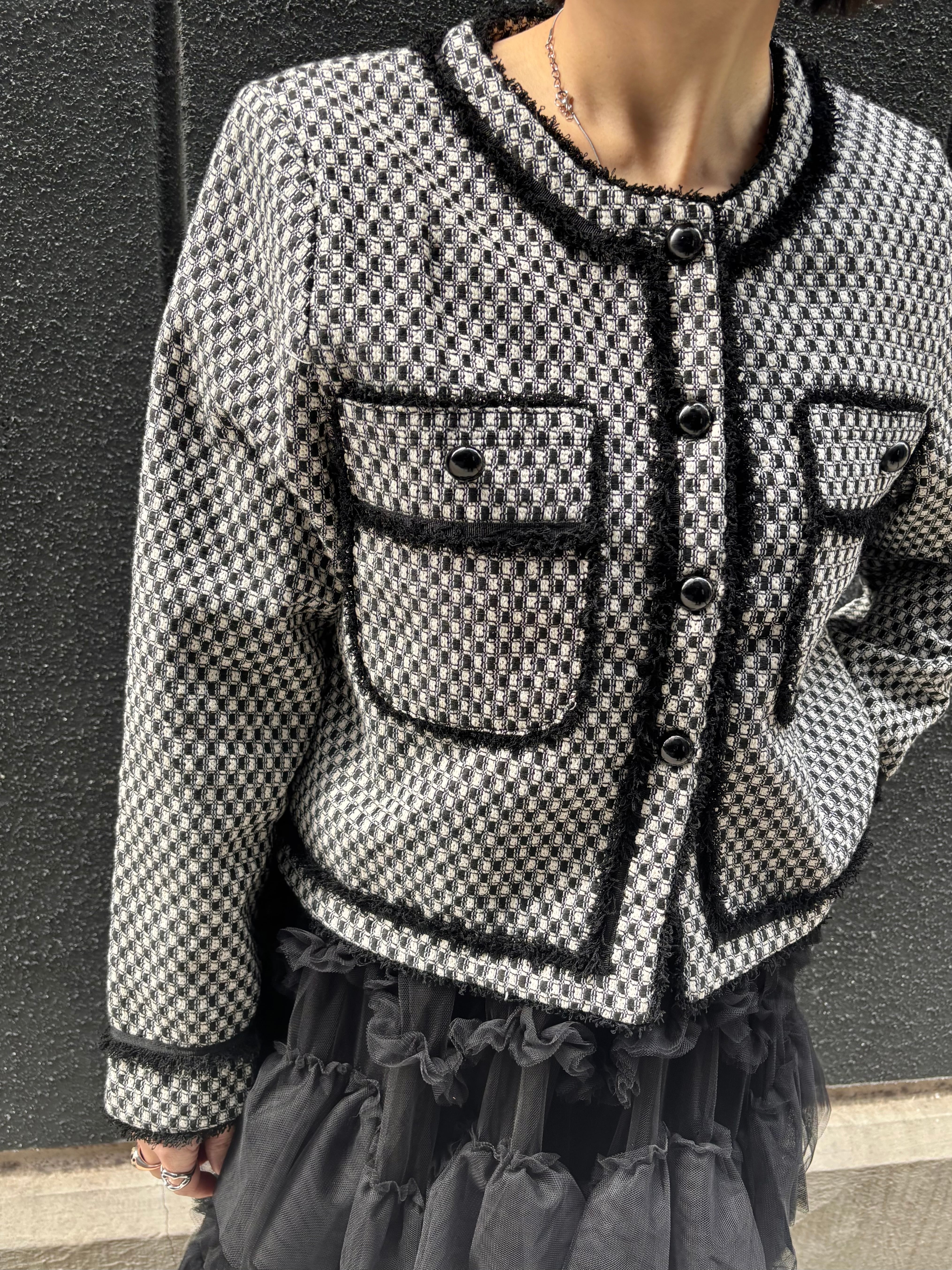 bi-color fringe trimming C-neck design jacket ジャケット バイカラー Cネック フリンジ