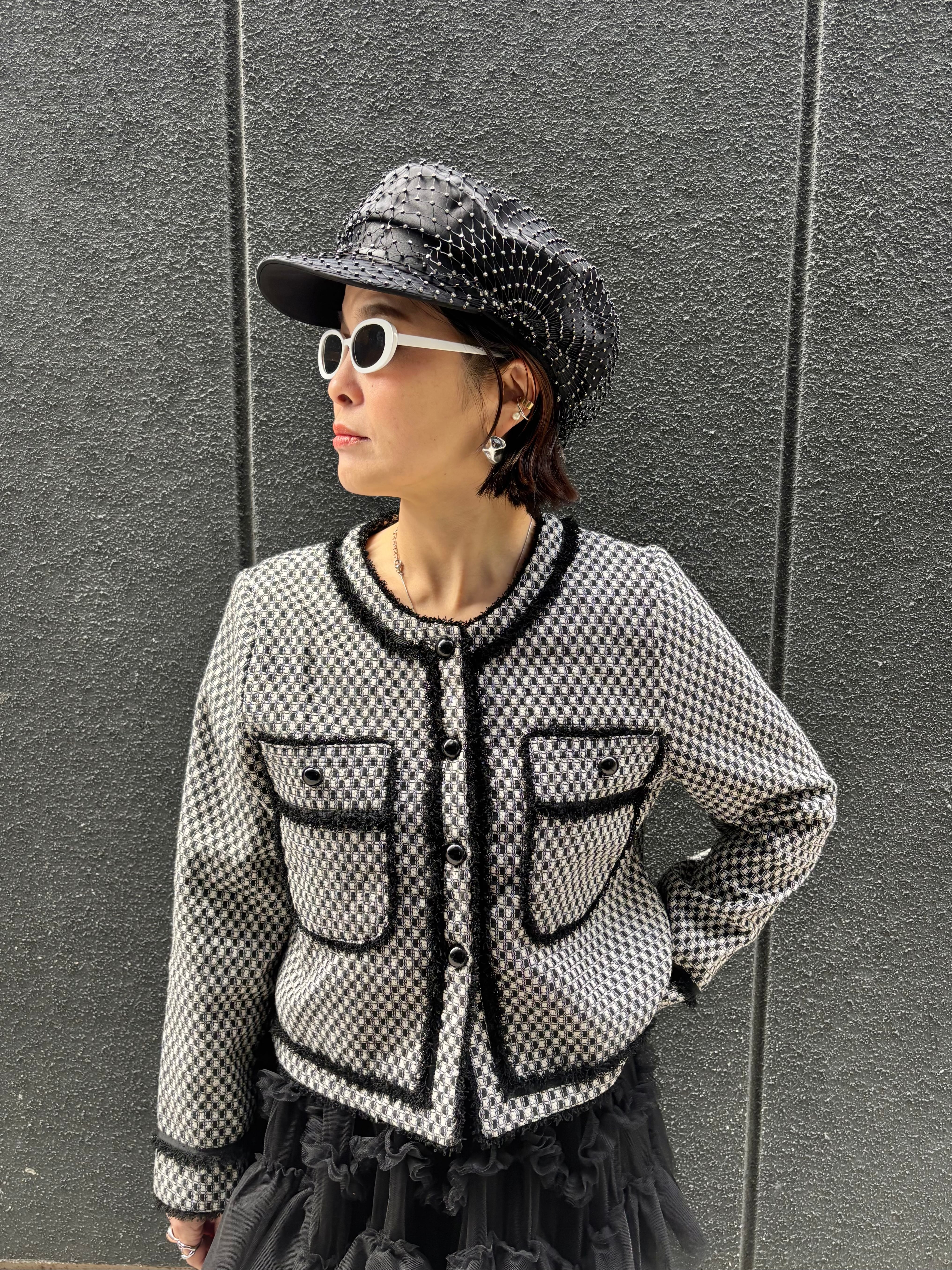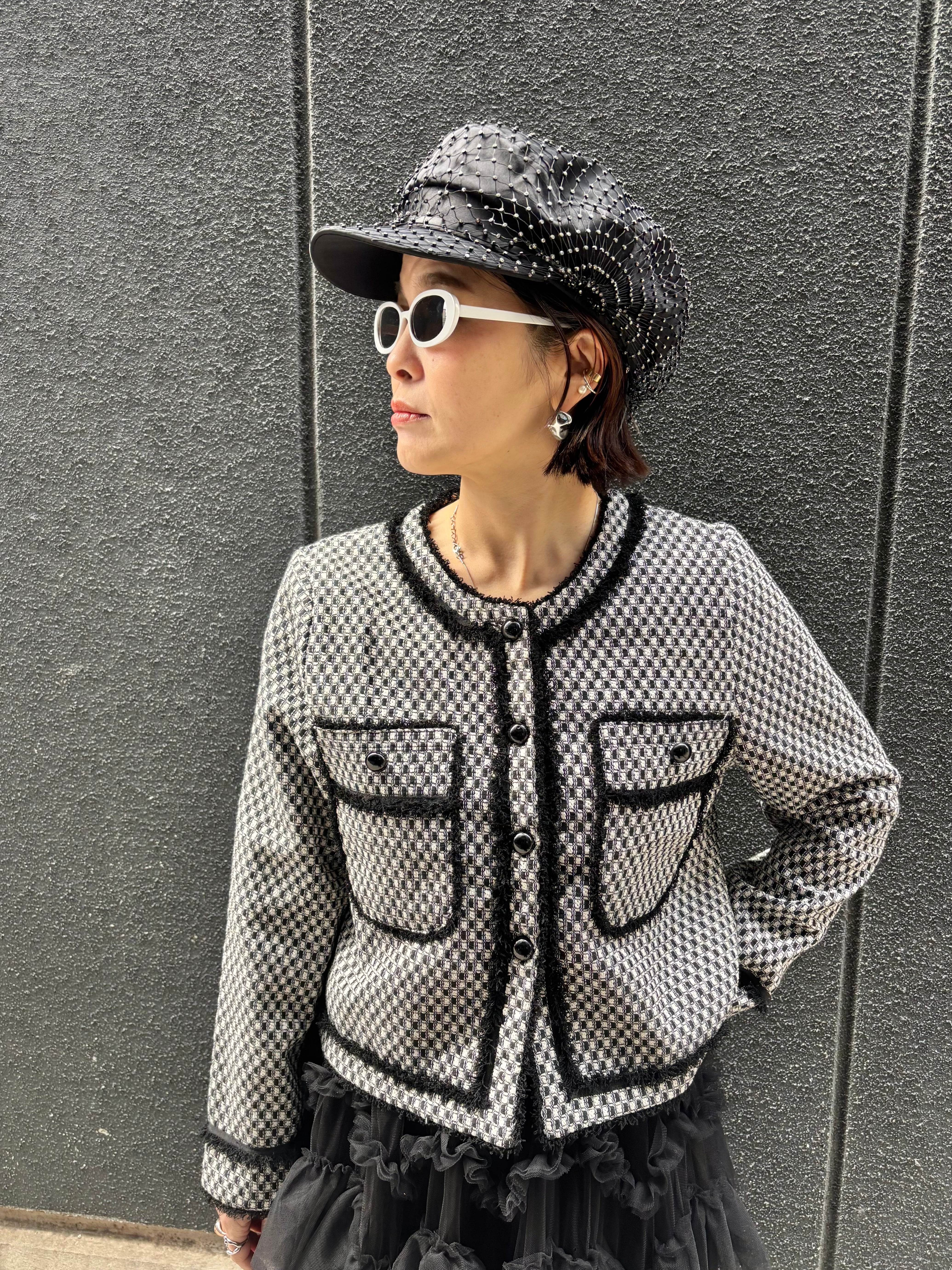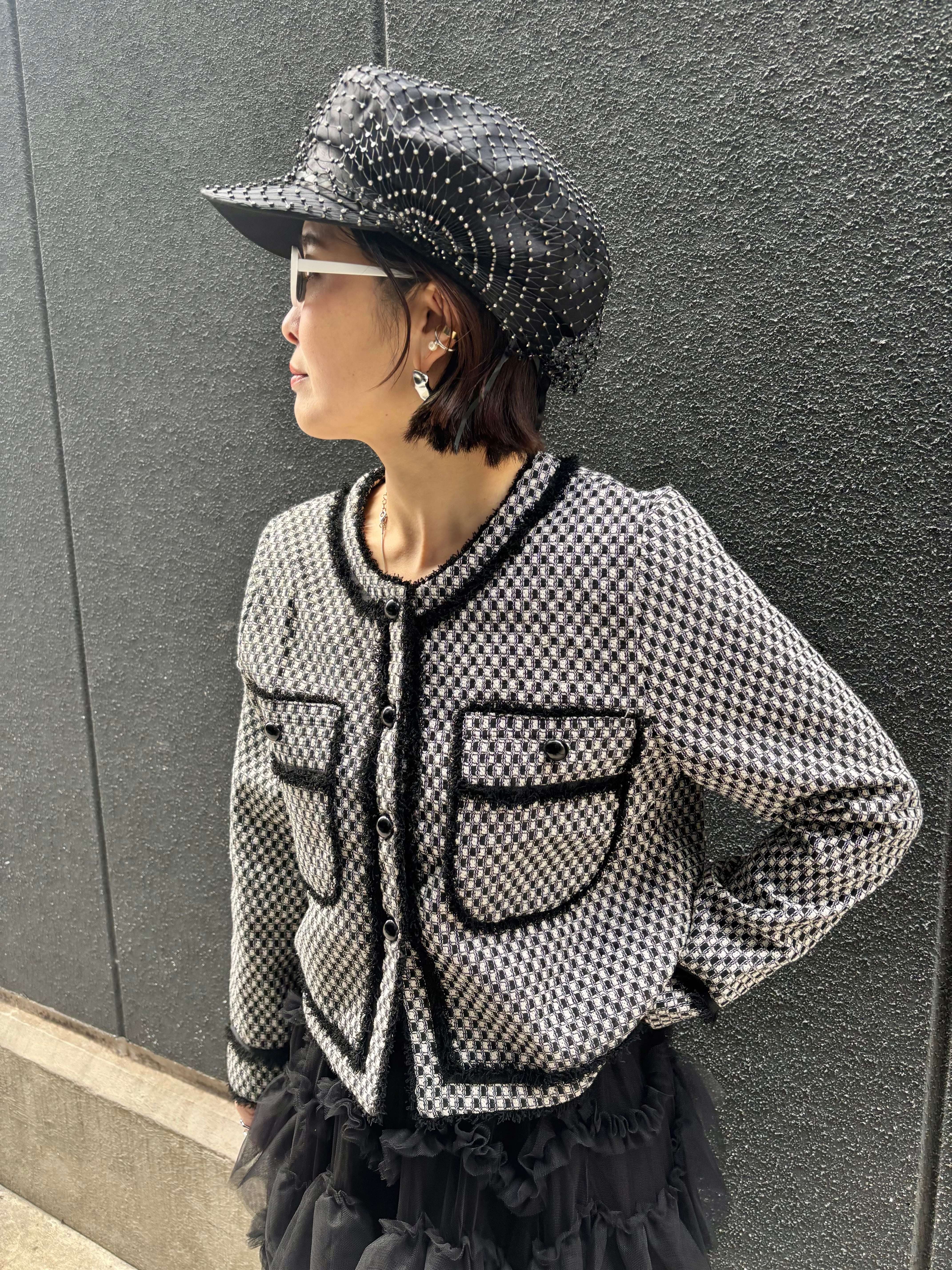 bi-color fringe trimming C-neck design jacket ジャケット バイカラー Cネック フリンジ