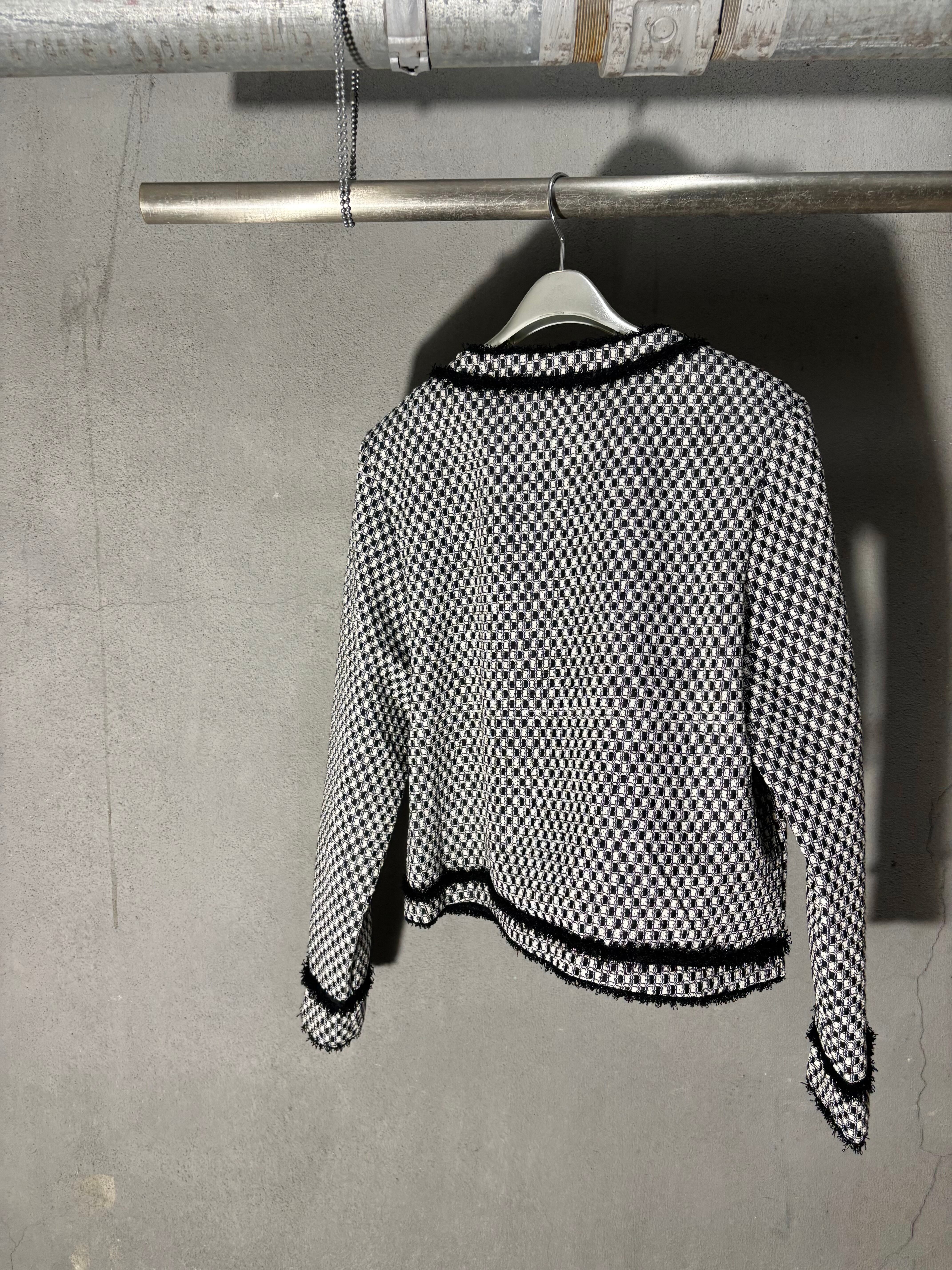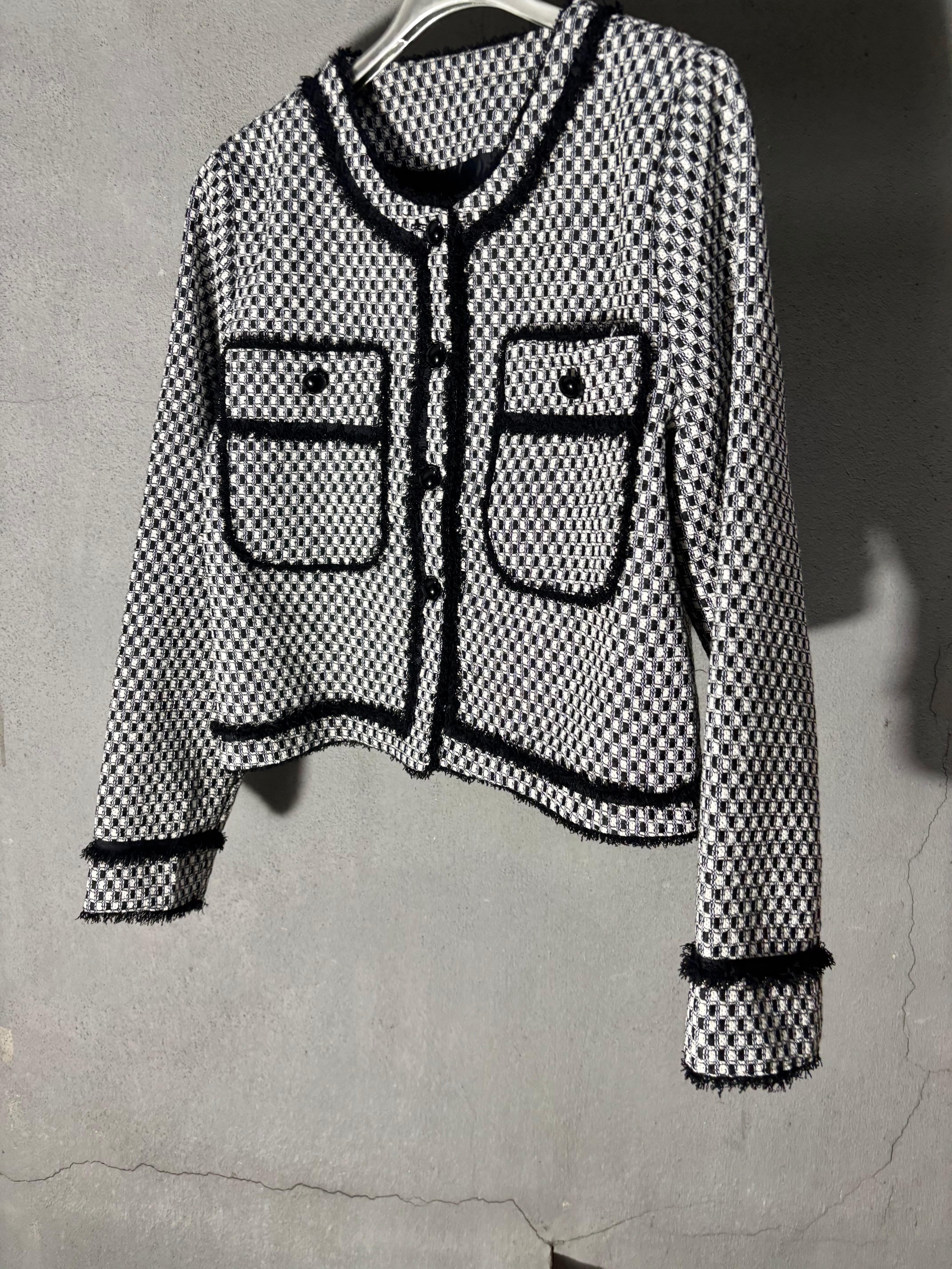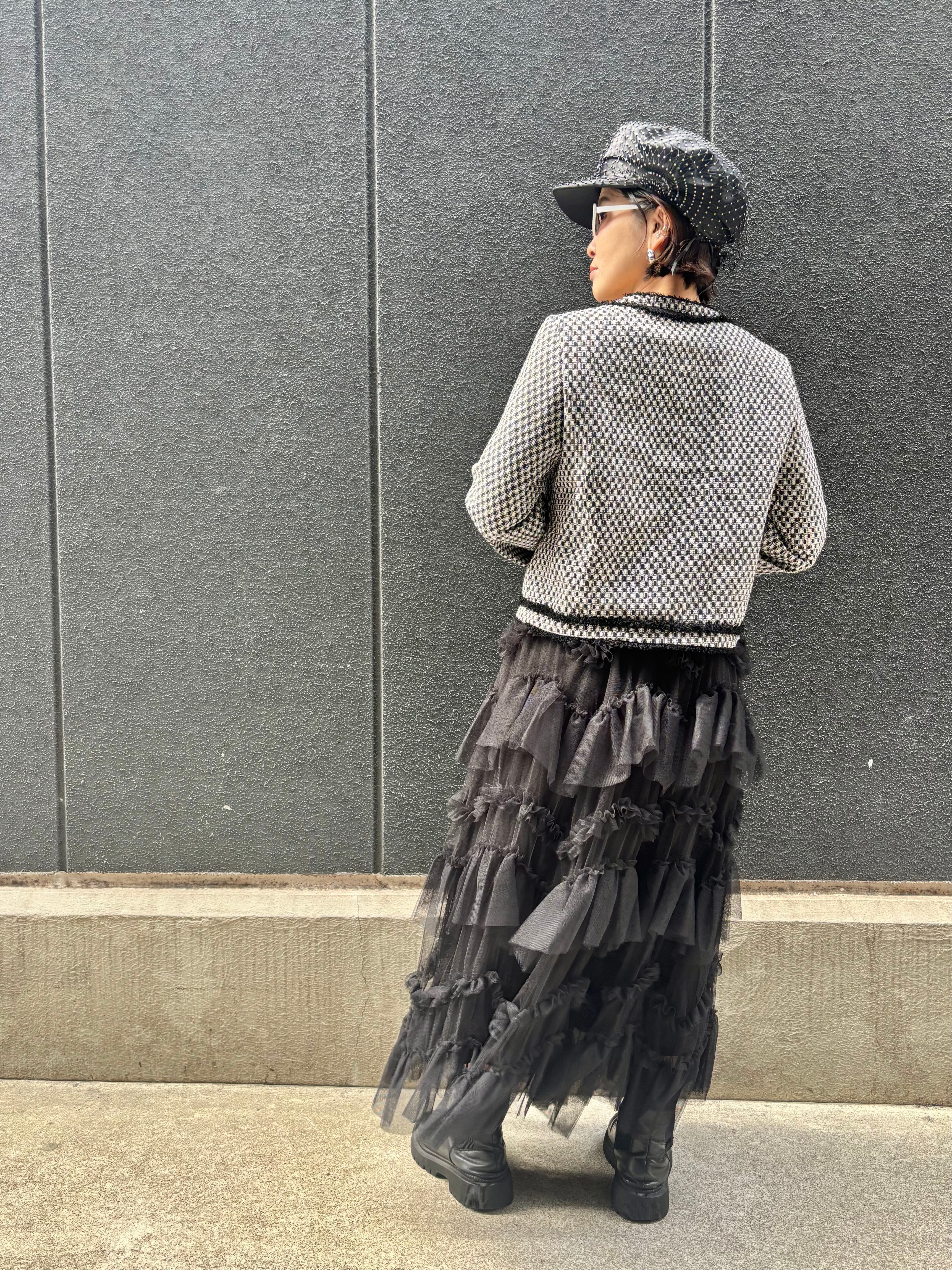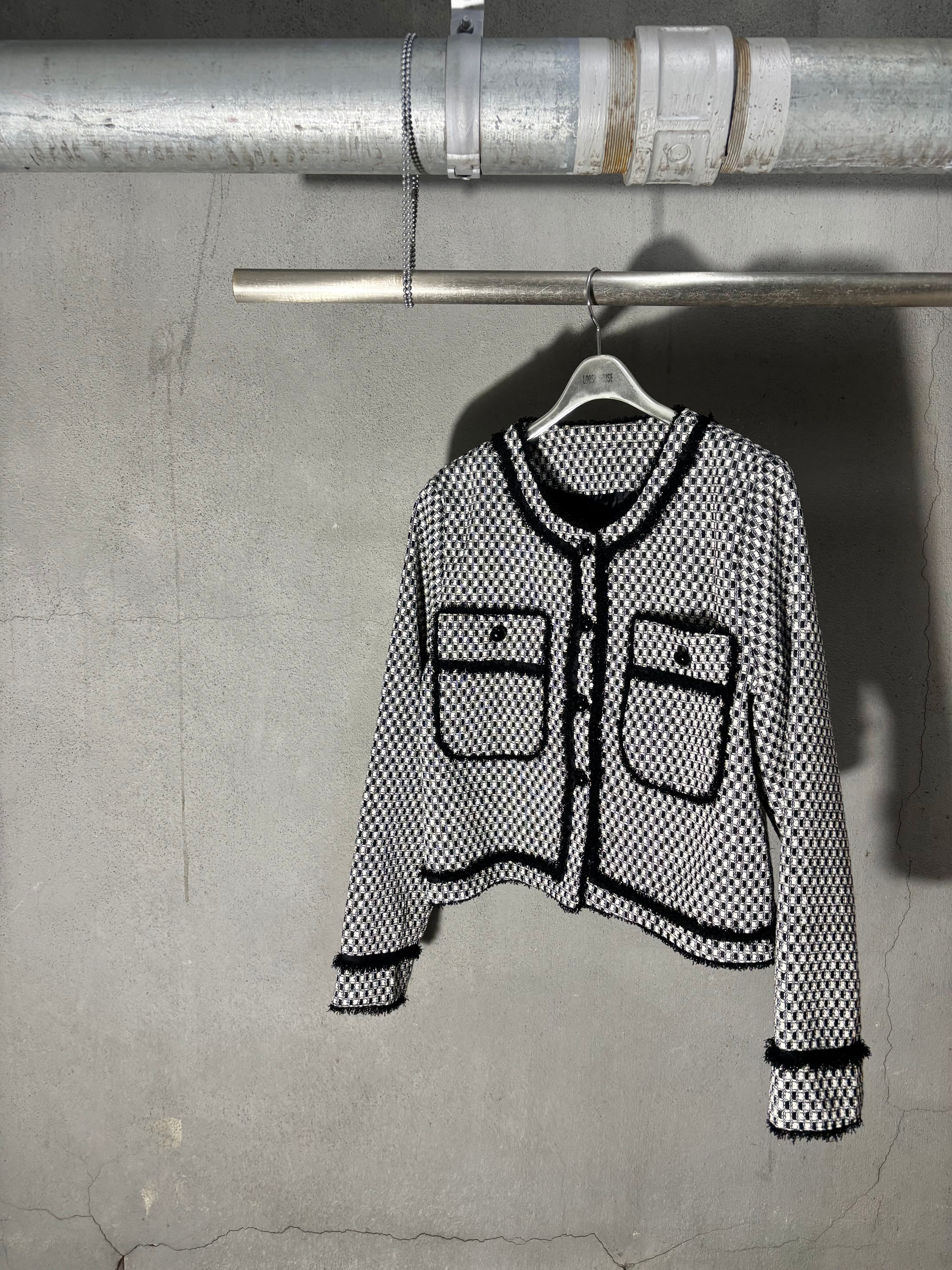 bi-color fringe trimming C-neck design jacket ジャケット バイカラー Cネック フリンジ