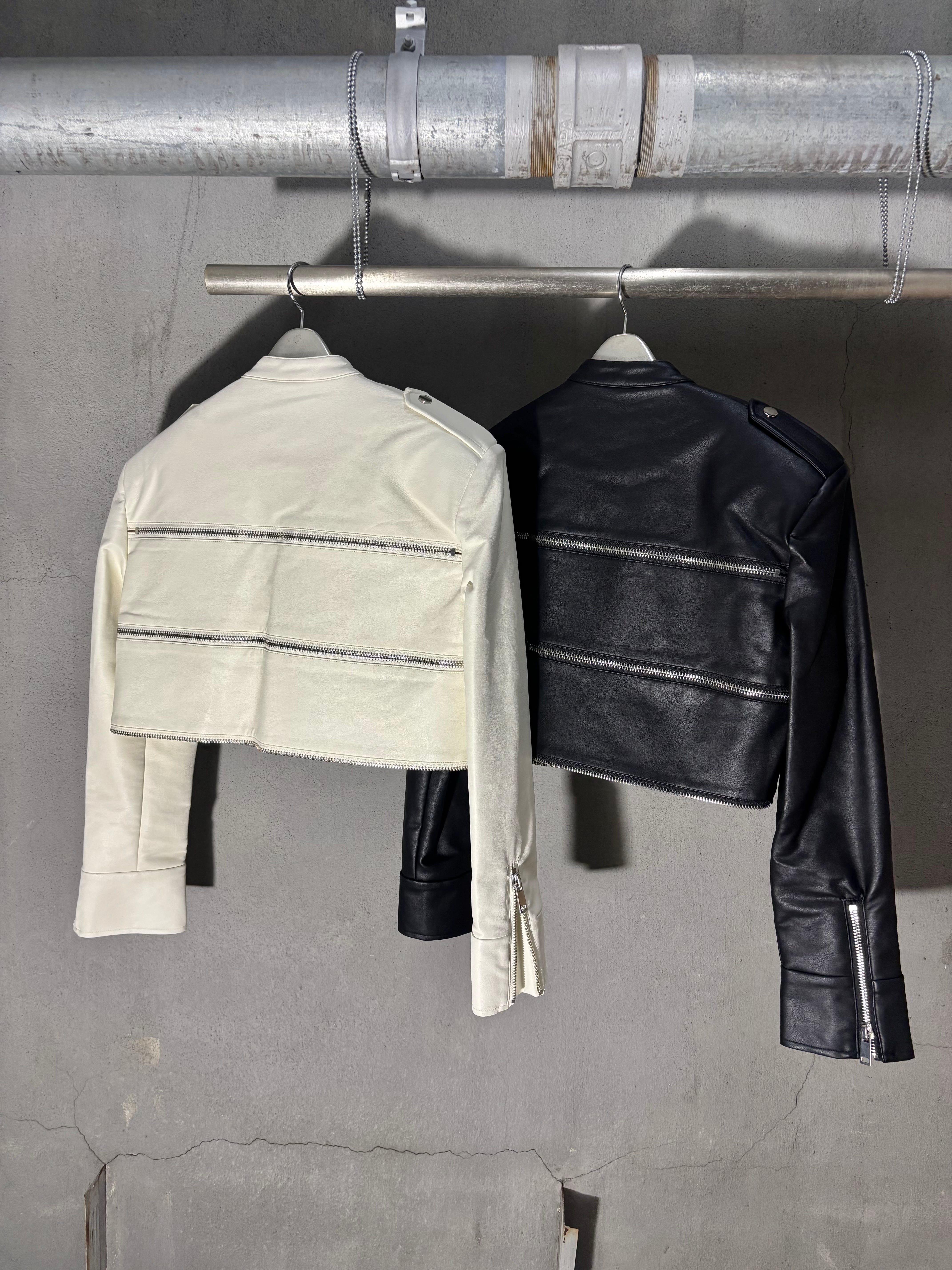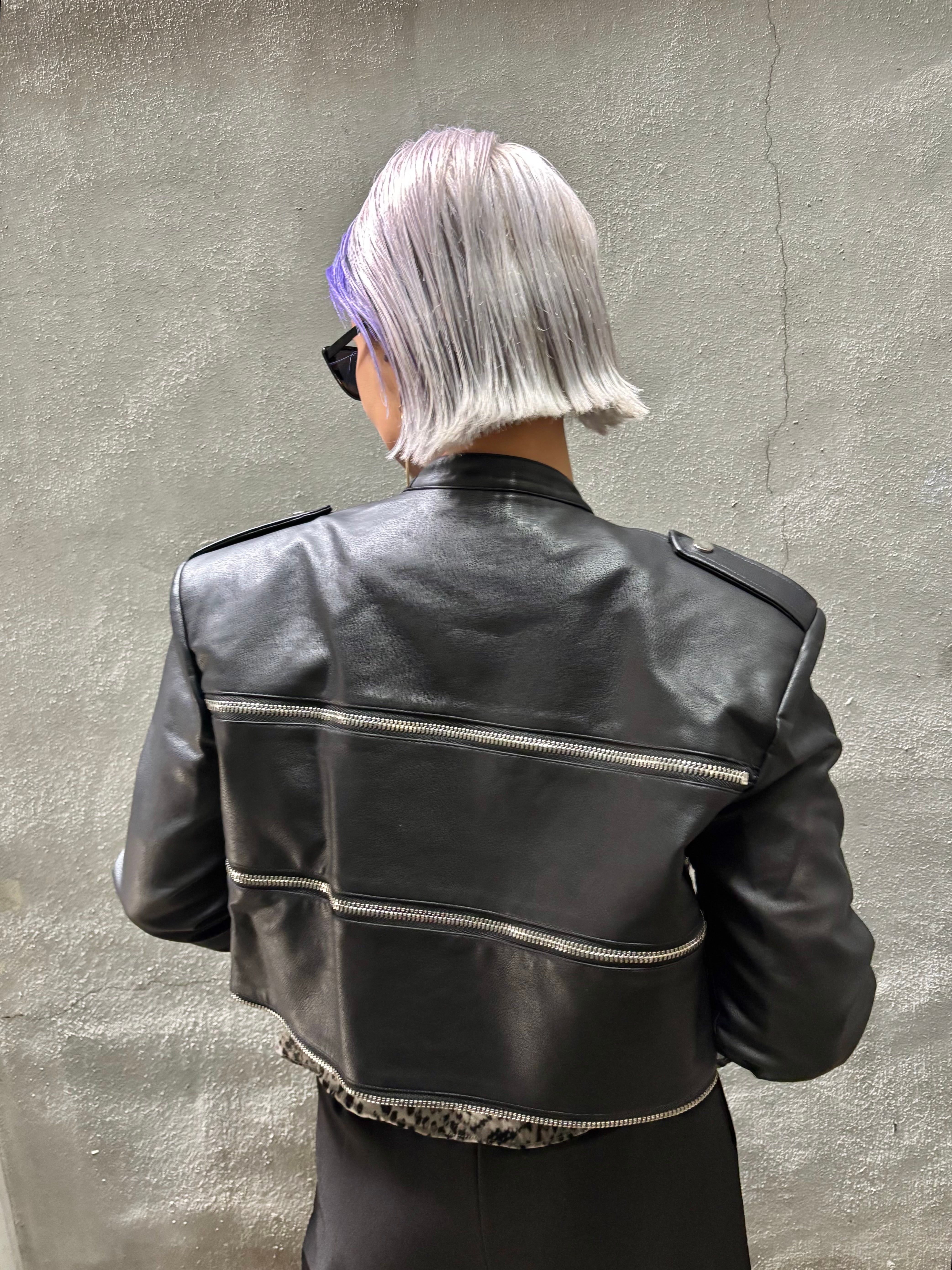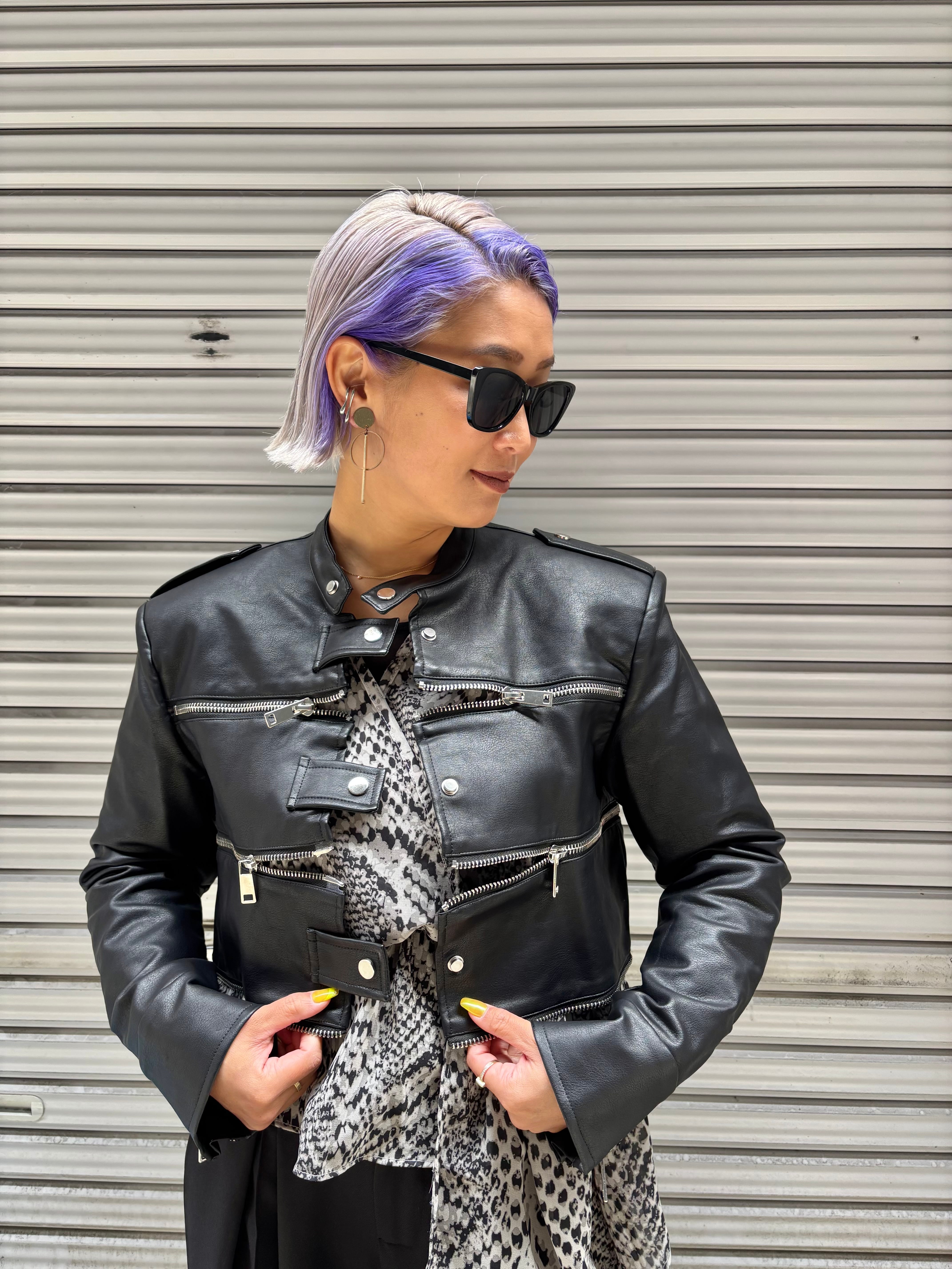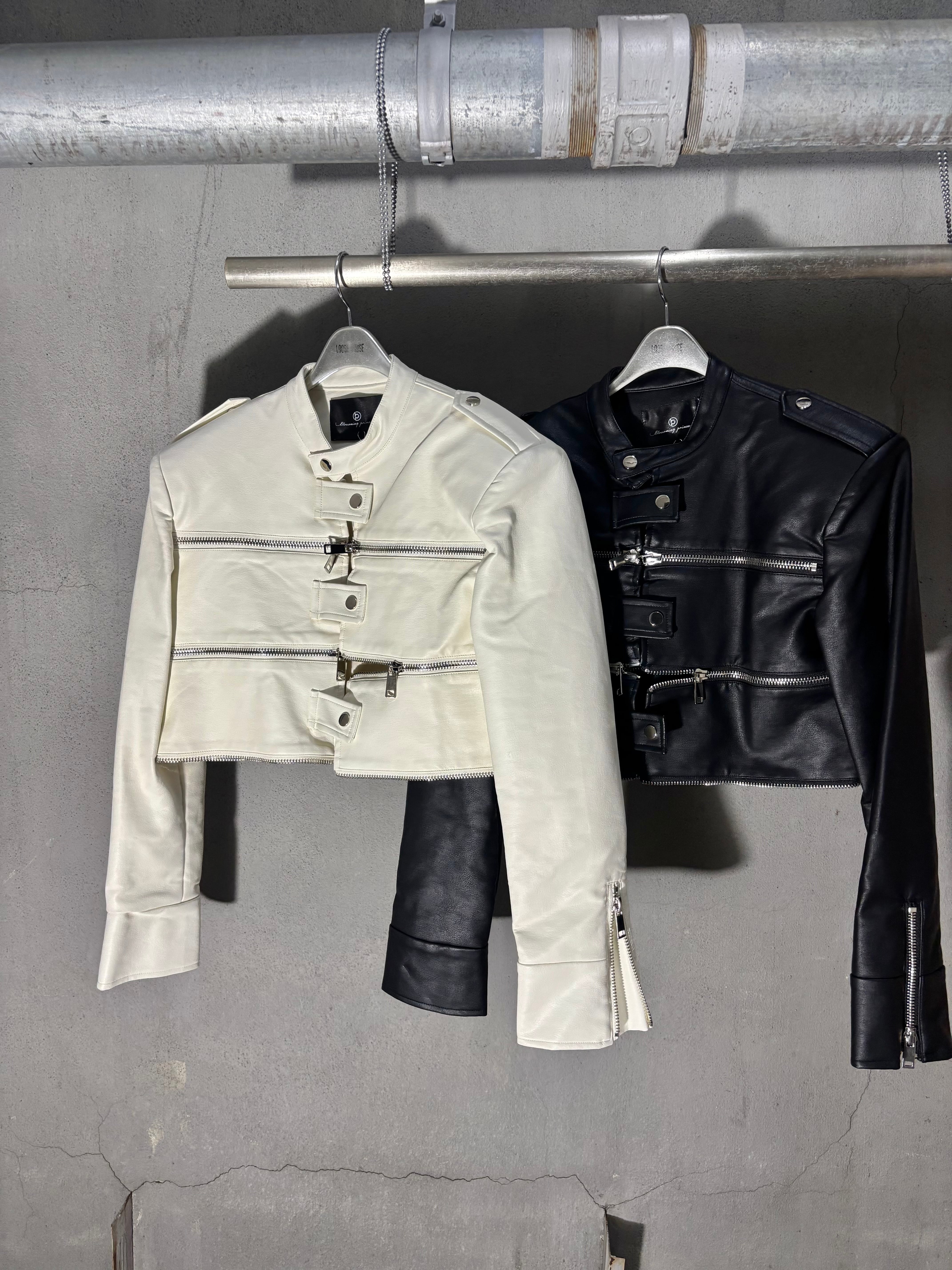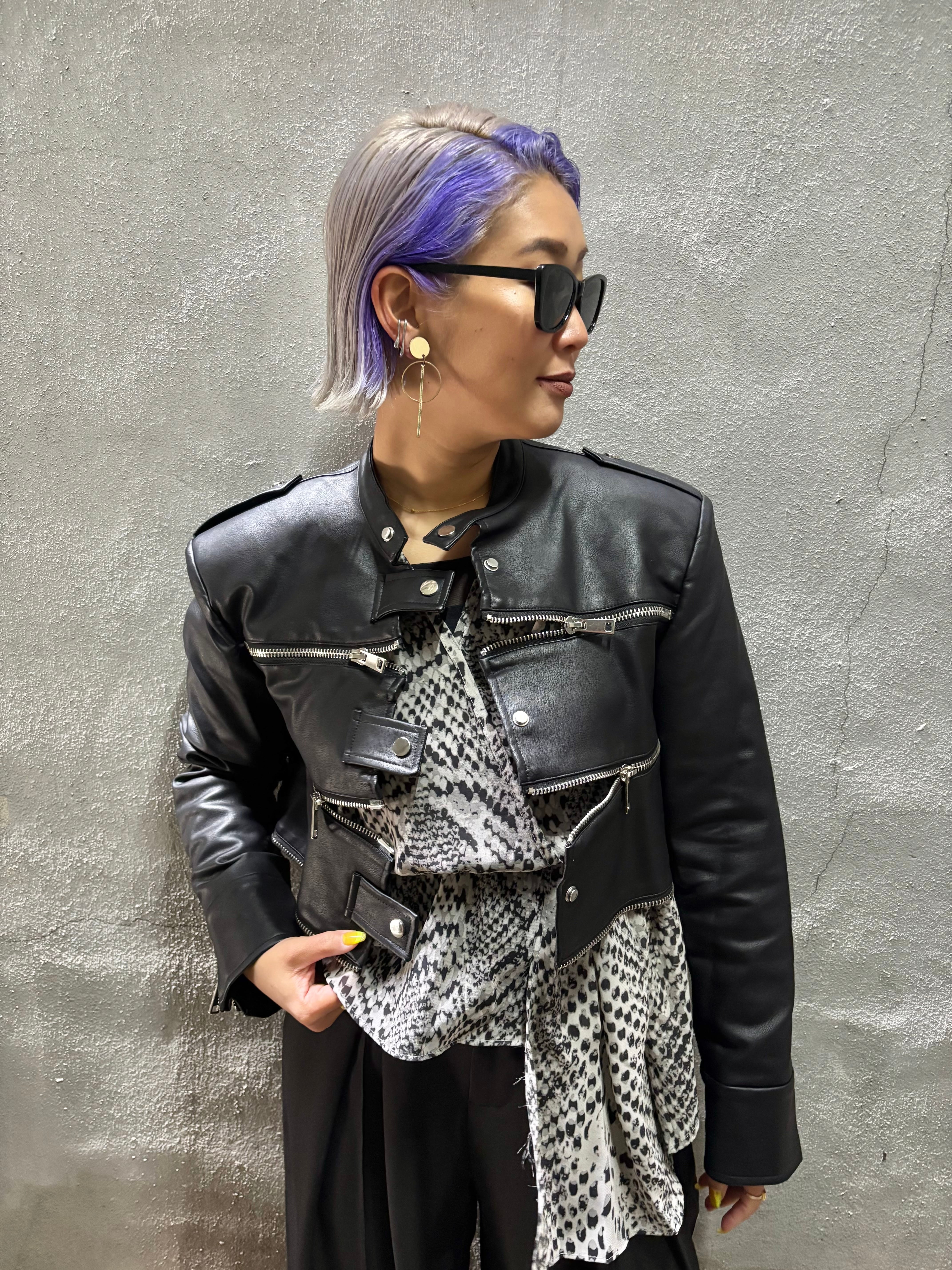 zipper design eco leather jacket ジャケット エコレザー フェイクレザー 合皮 ジッパー