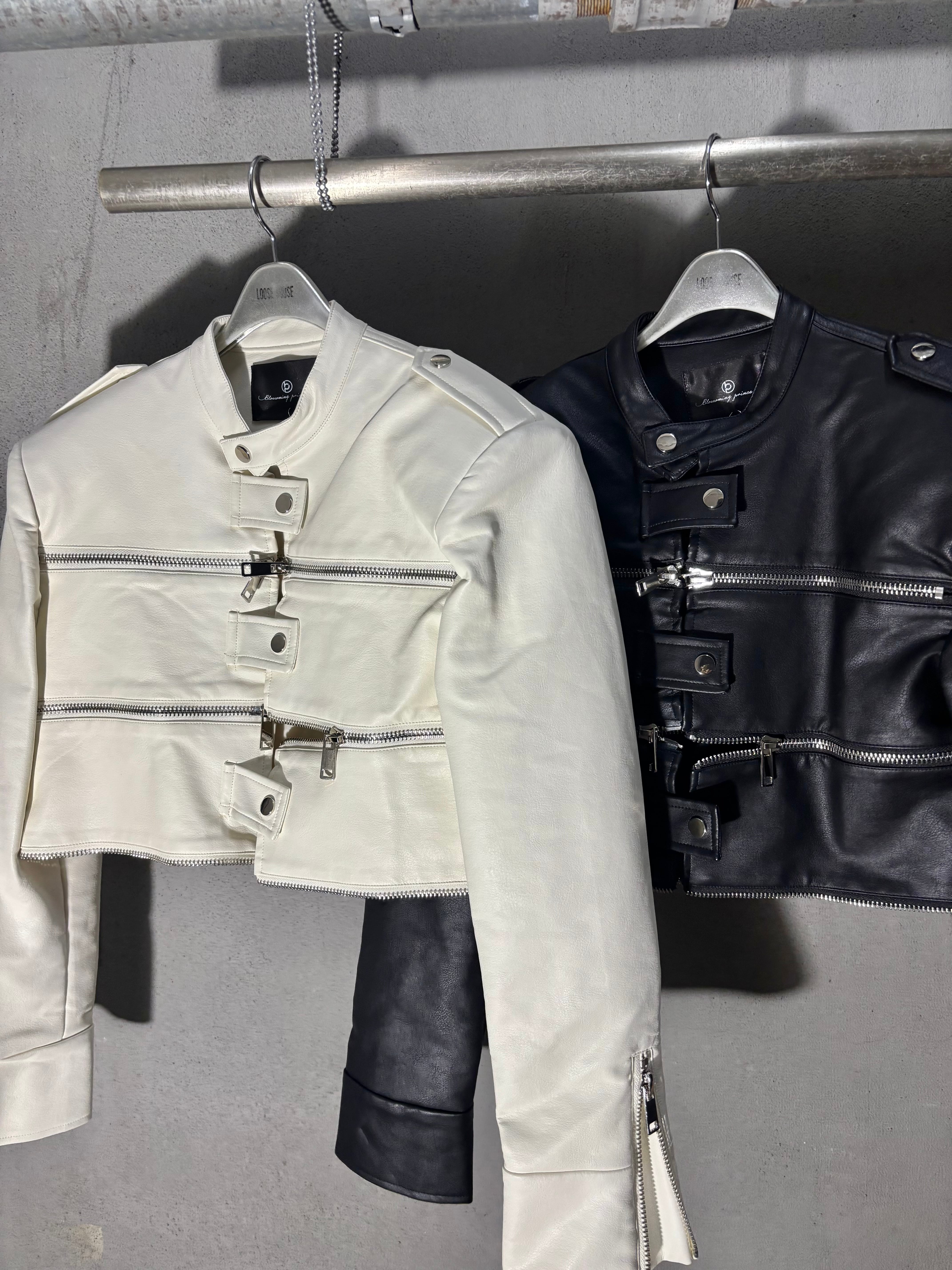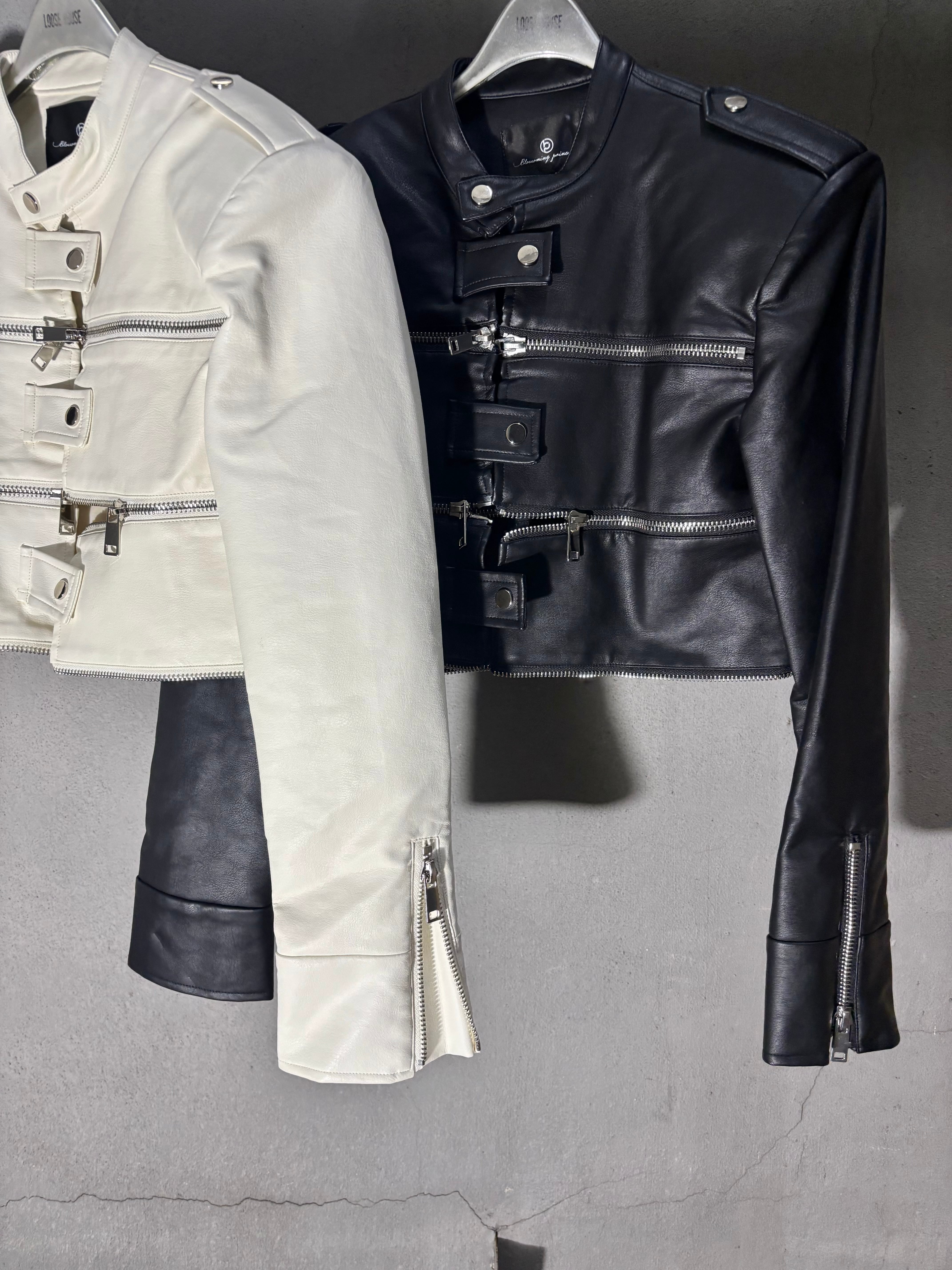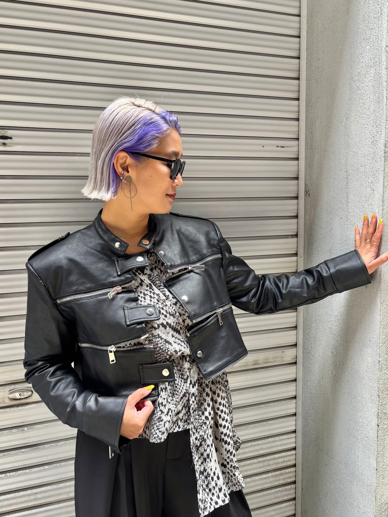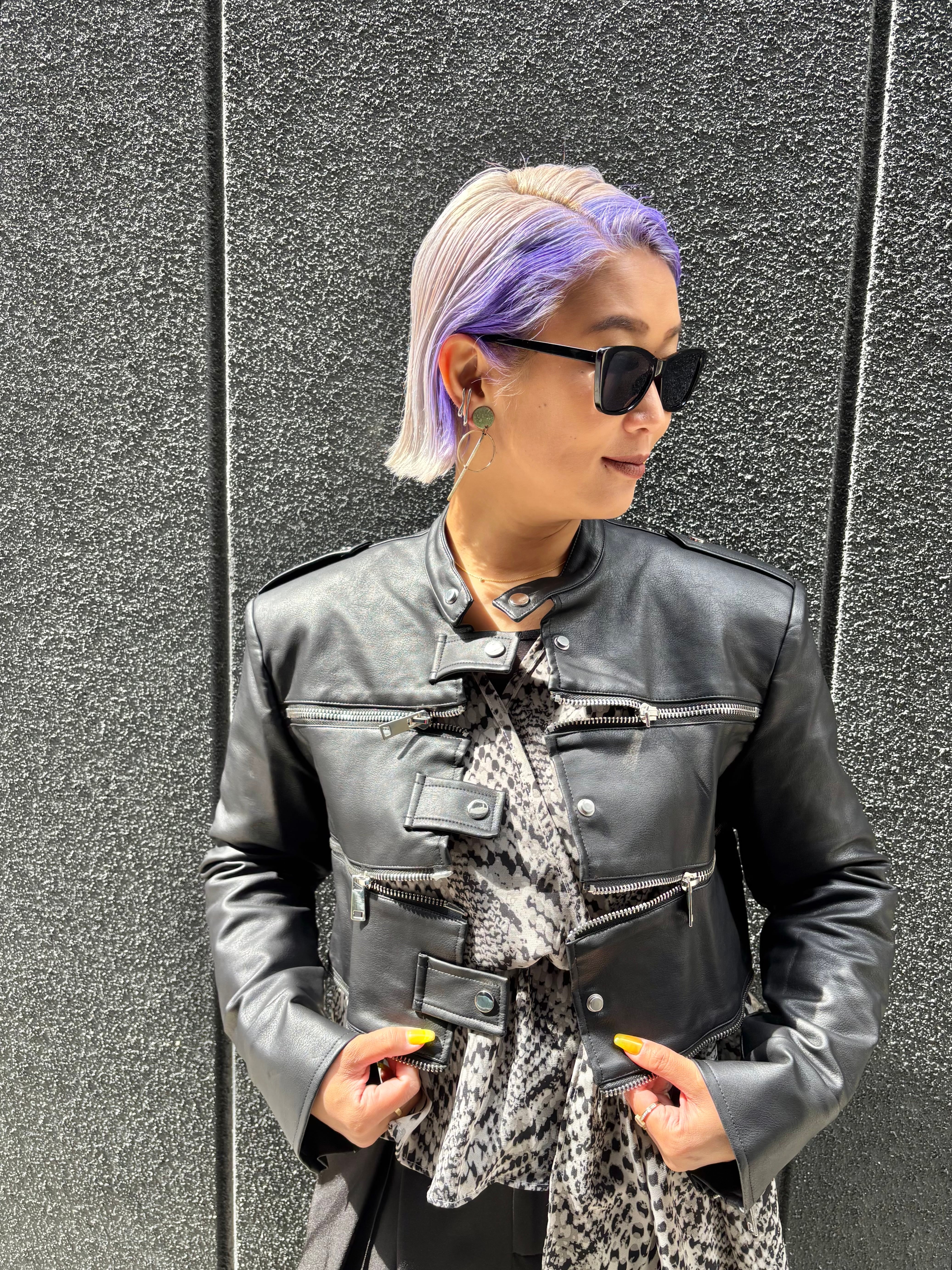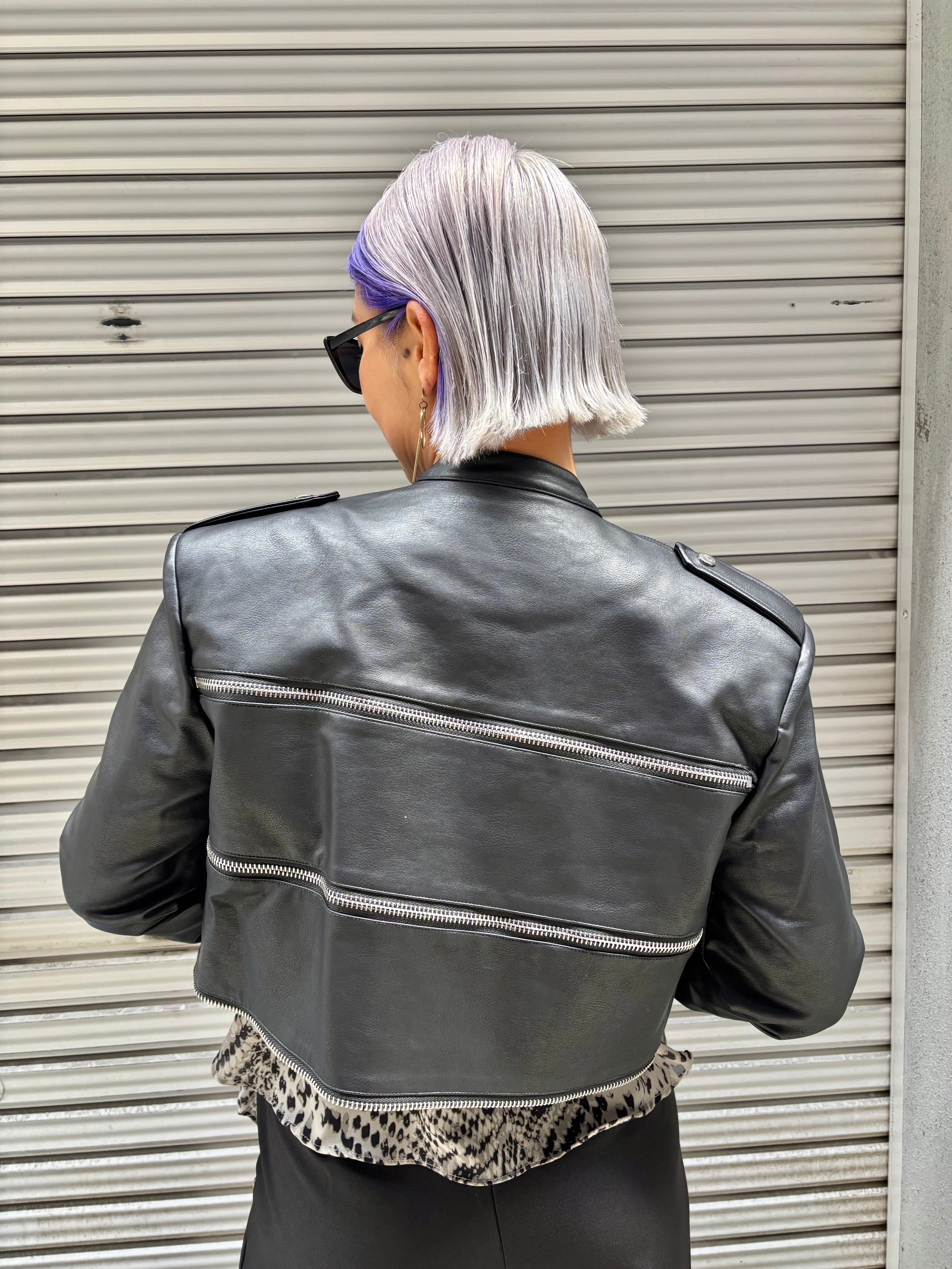 zipper design eco leather jacket ジャケット エコレザー フェイクレザー 合皮 ジッパー