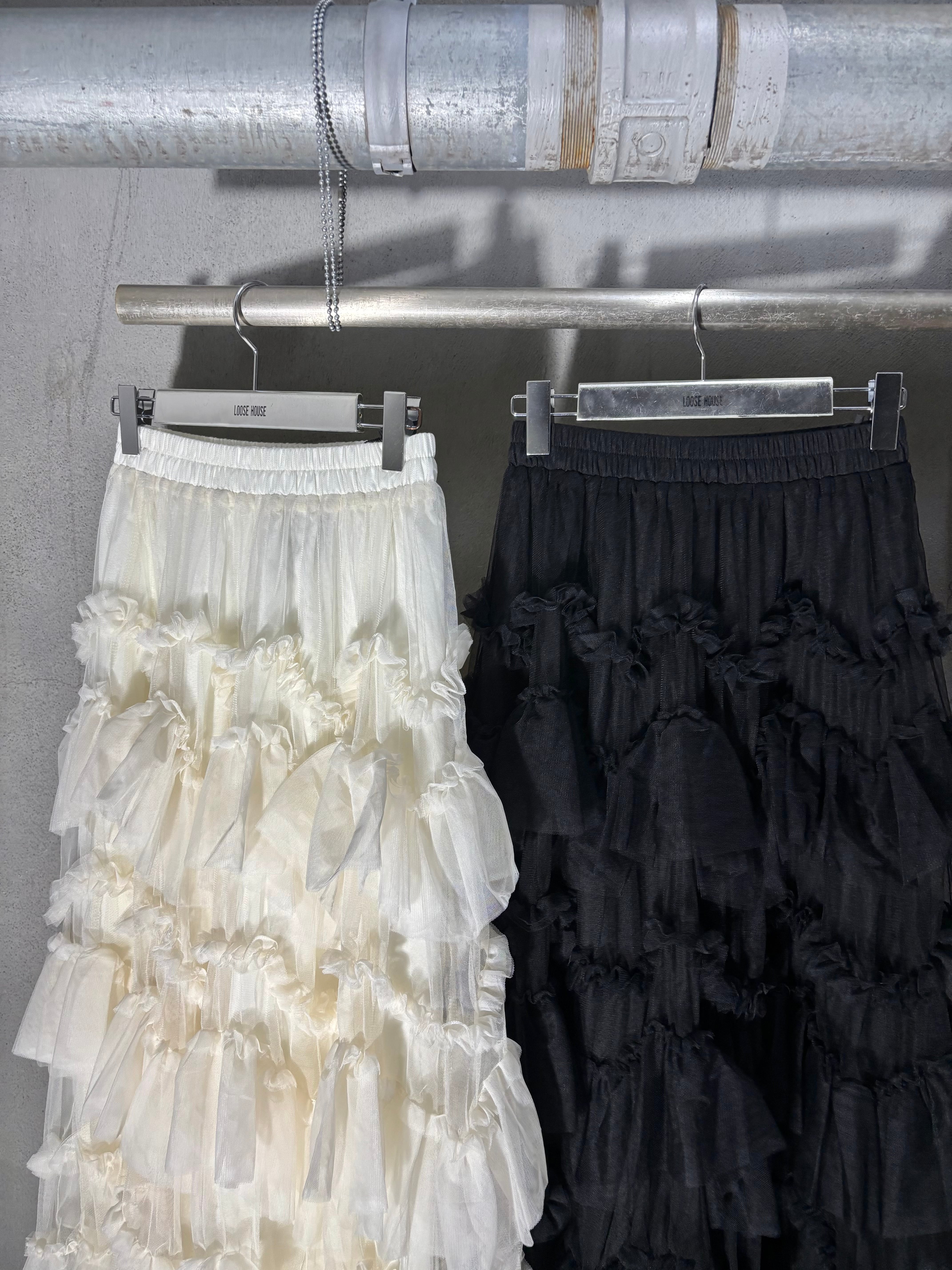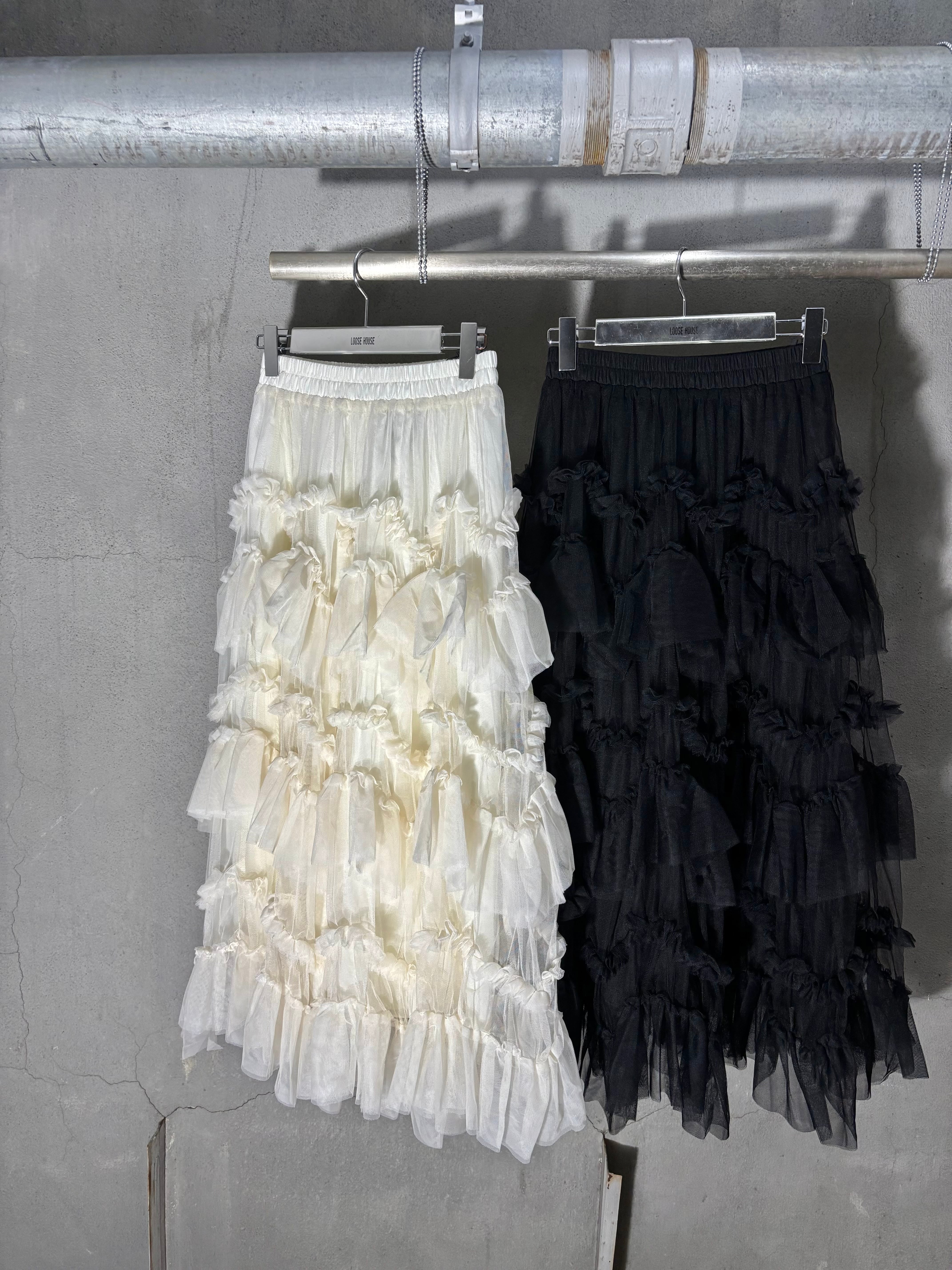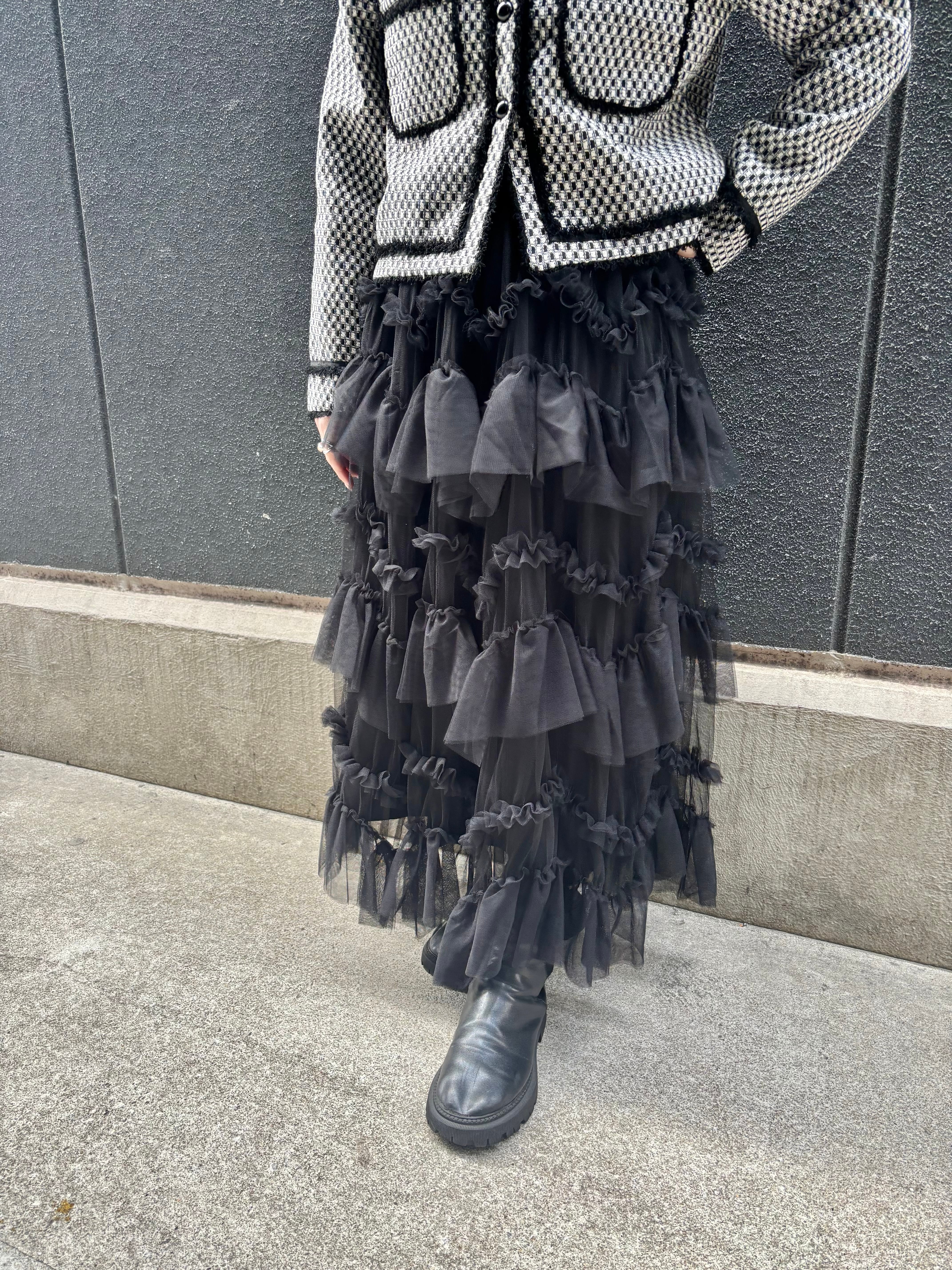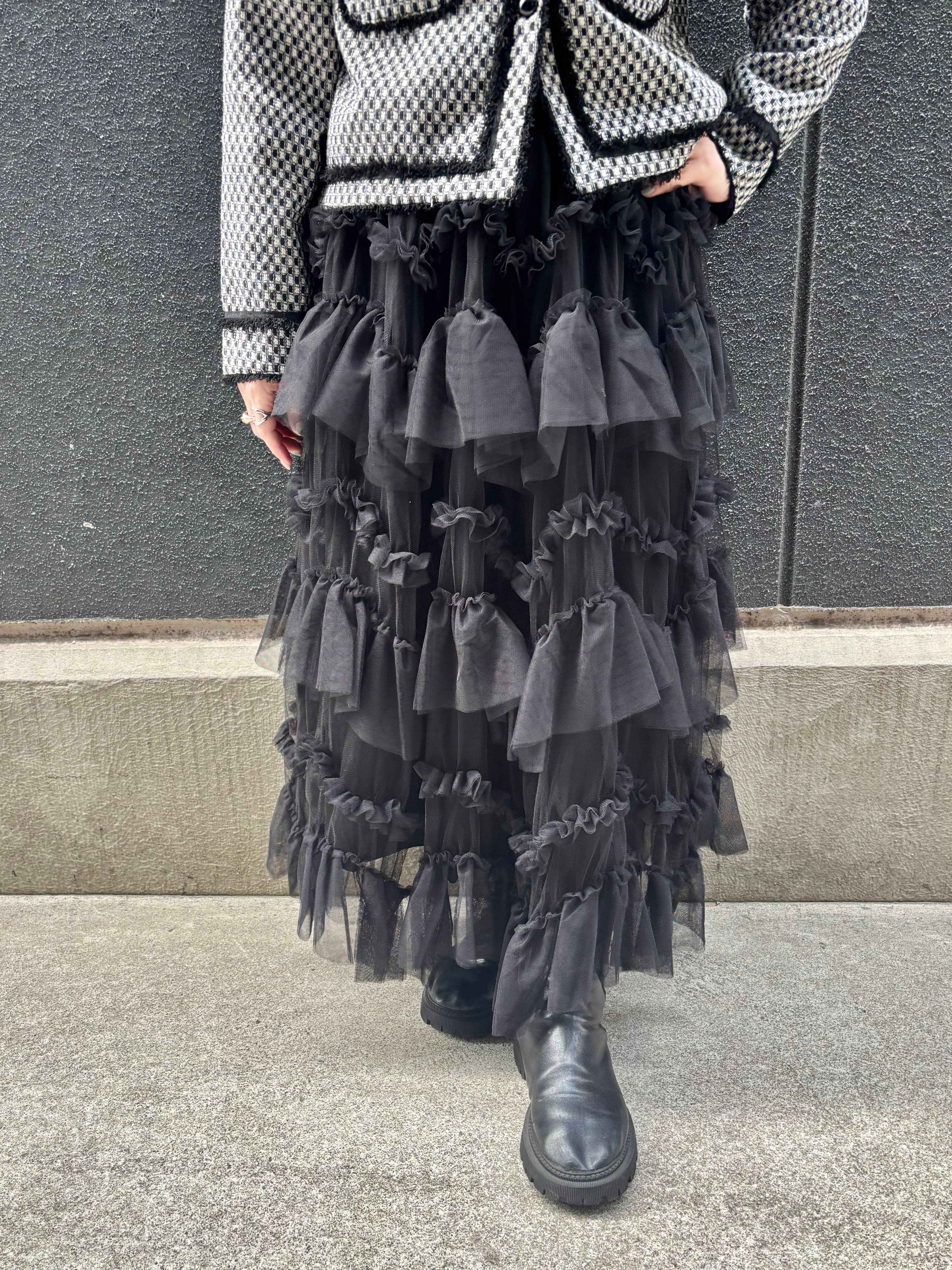 tulle mesh mix frill long skirt スカート ロングスカート チュール フリル ゴムウエスト