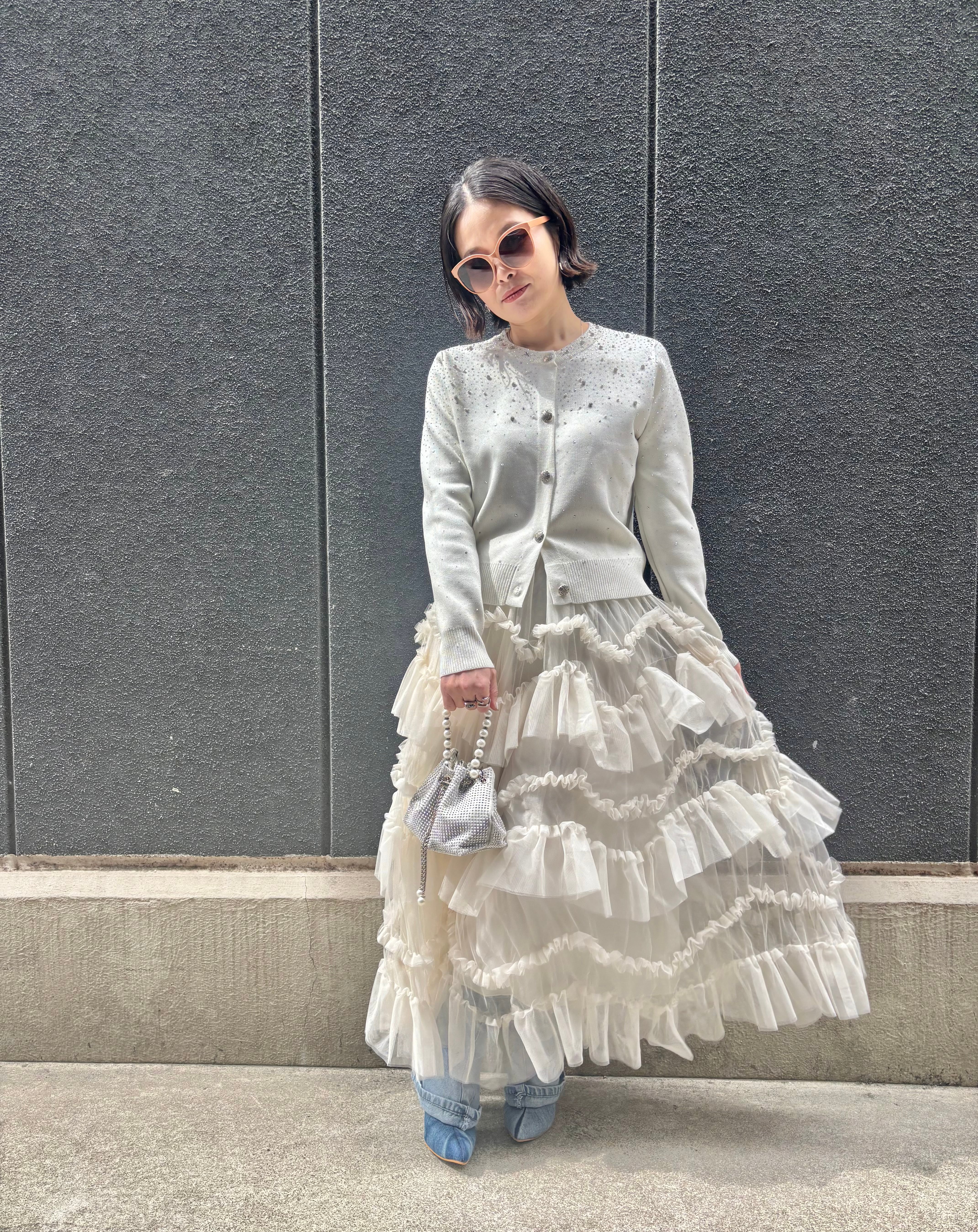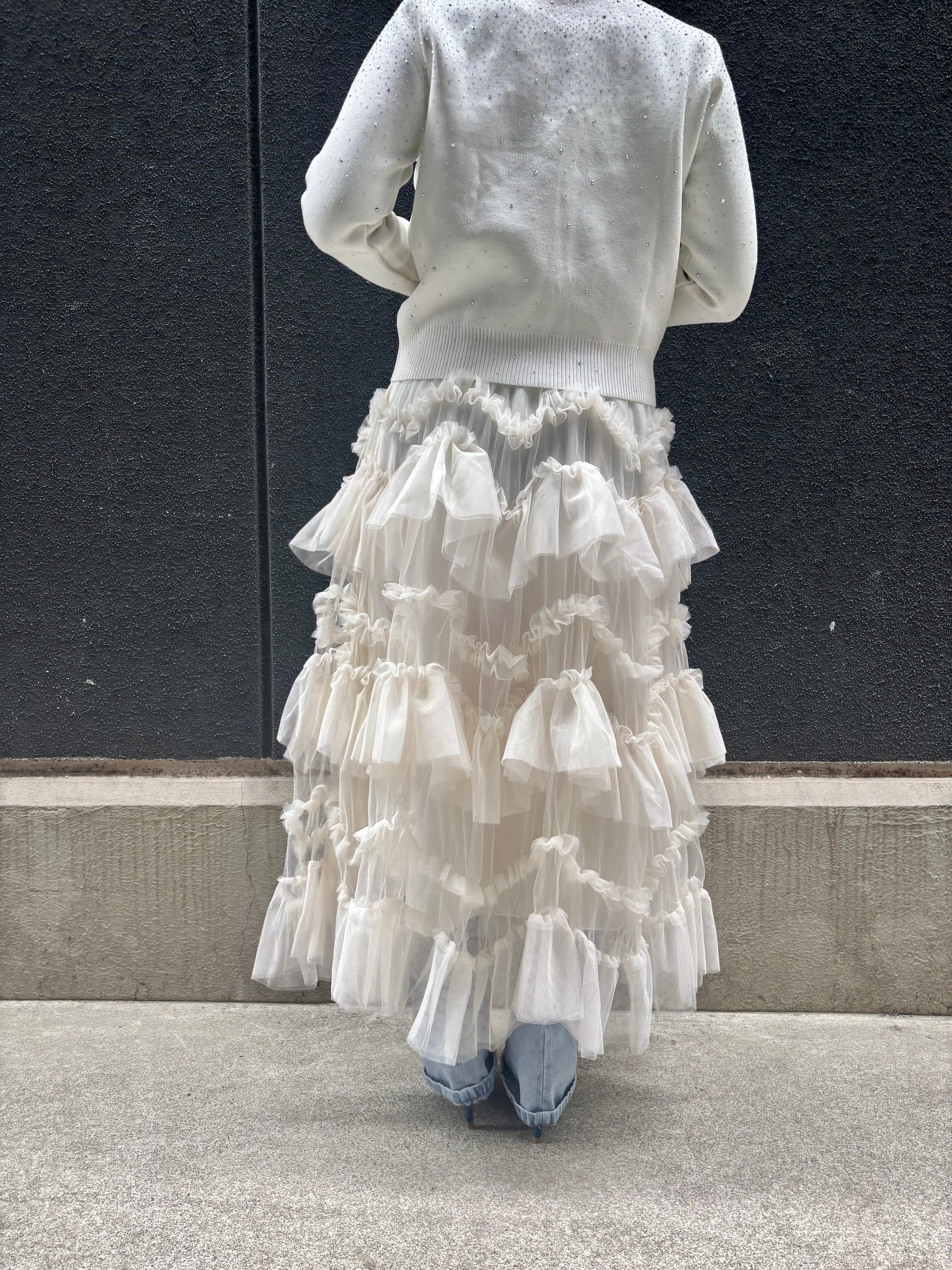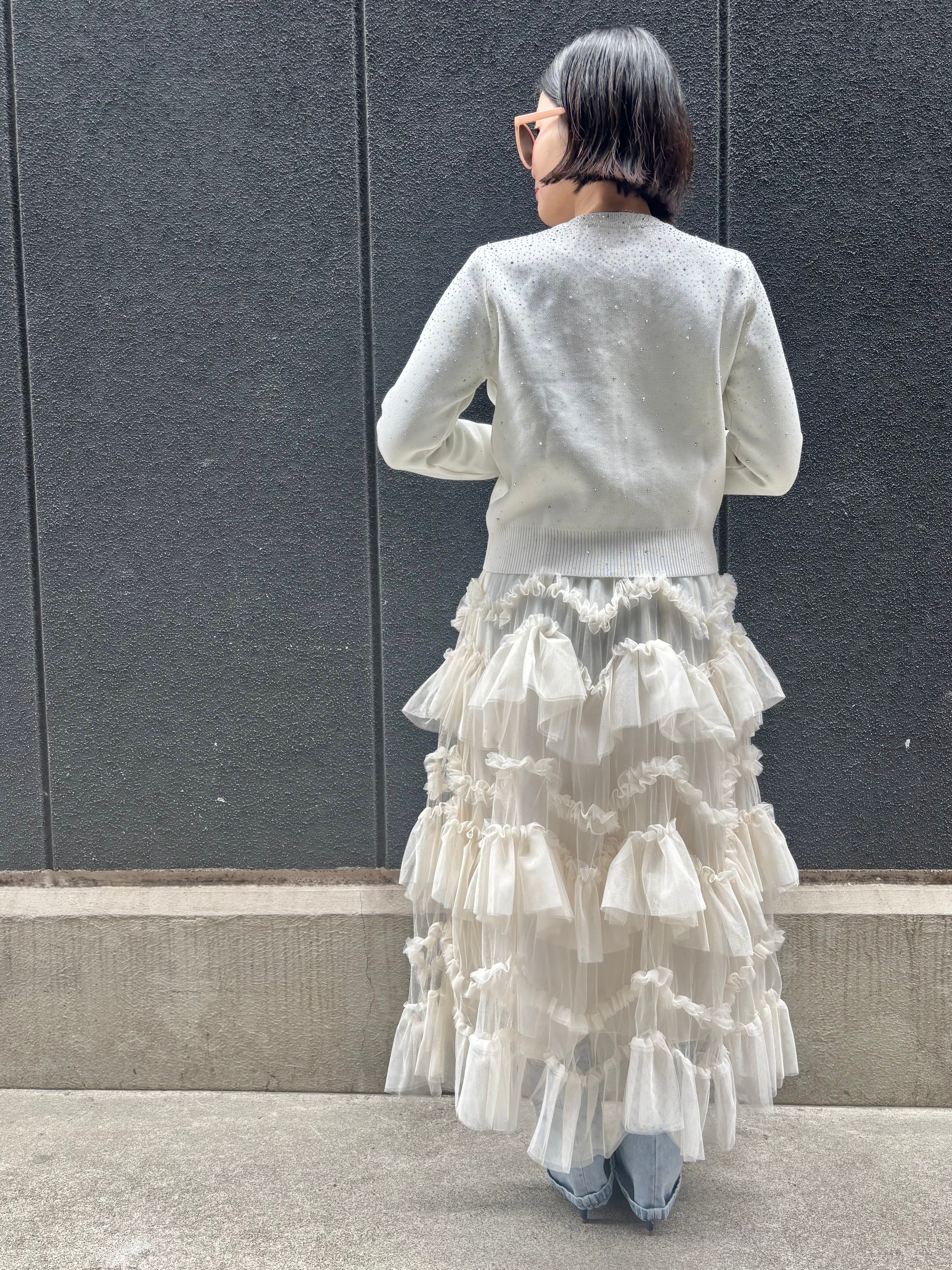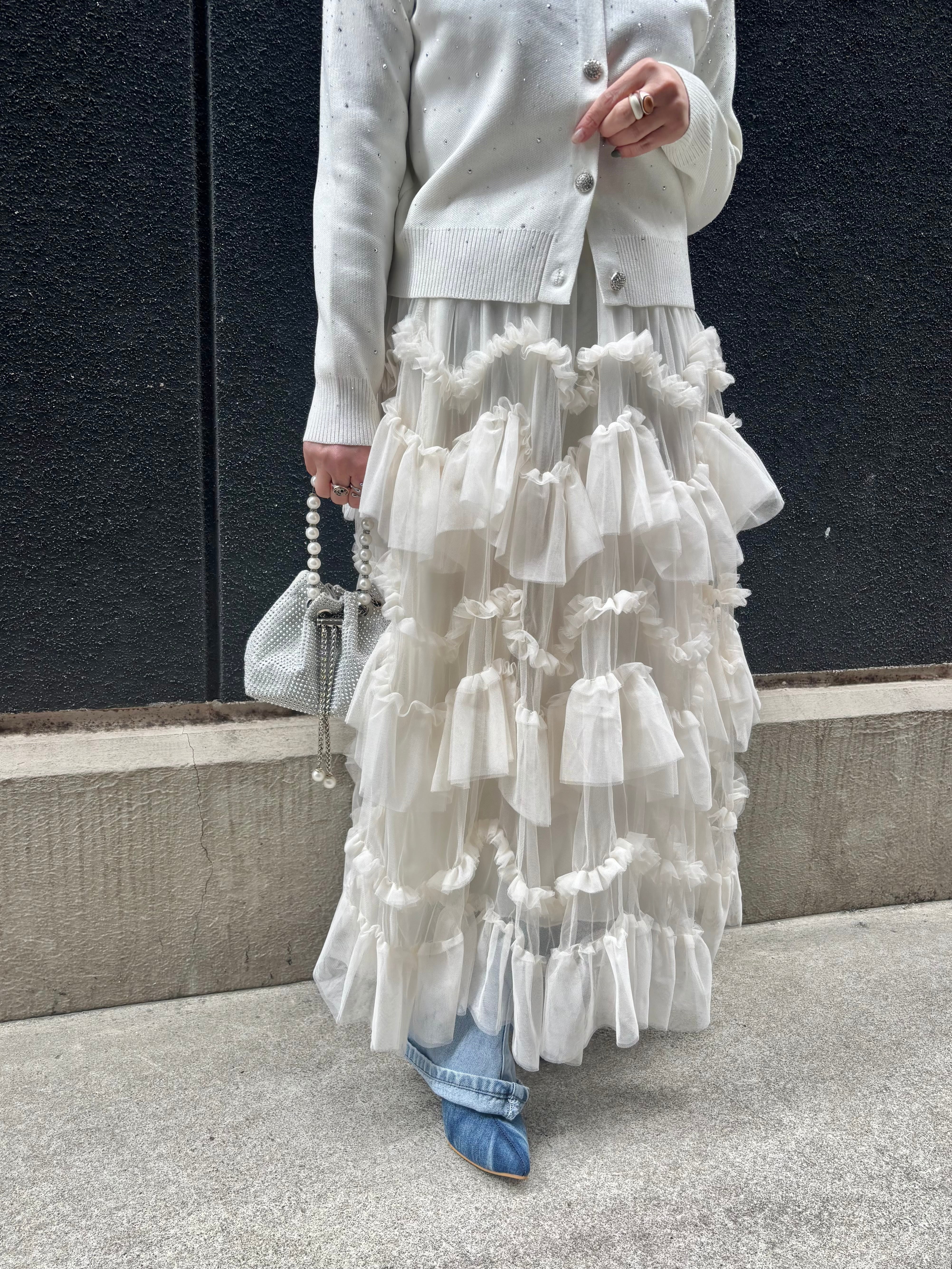 tulle mesh mix frill long skirt スカート ロングスカート チュール フリル ゴムウエスト