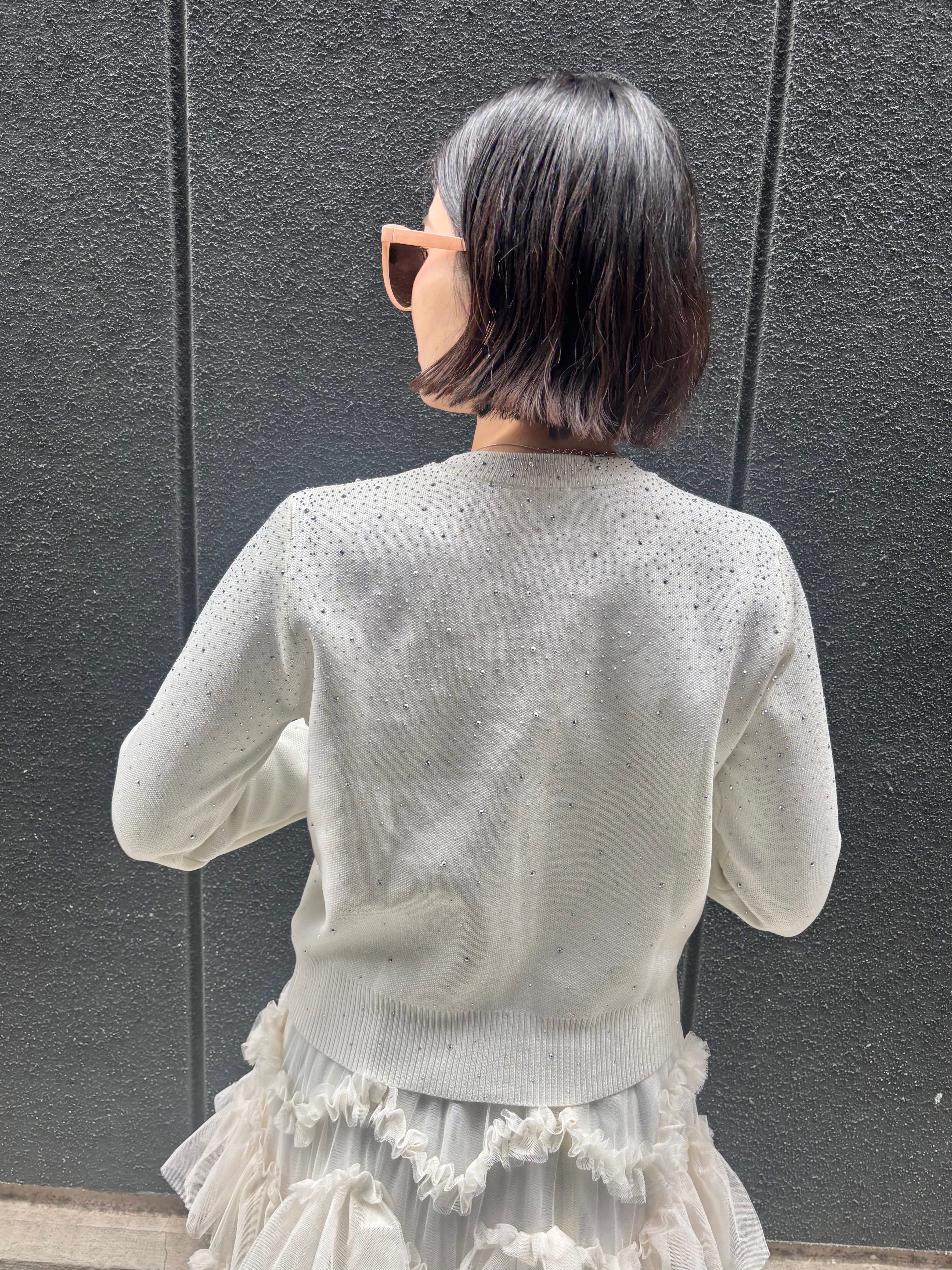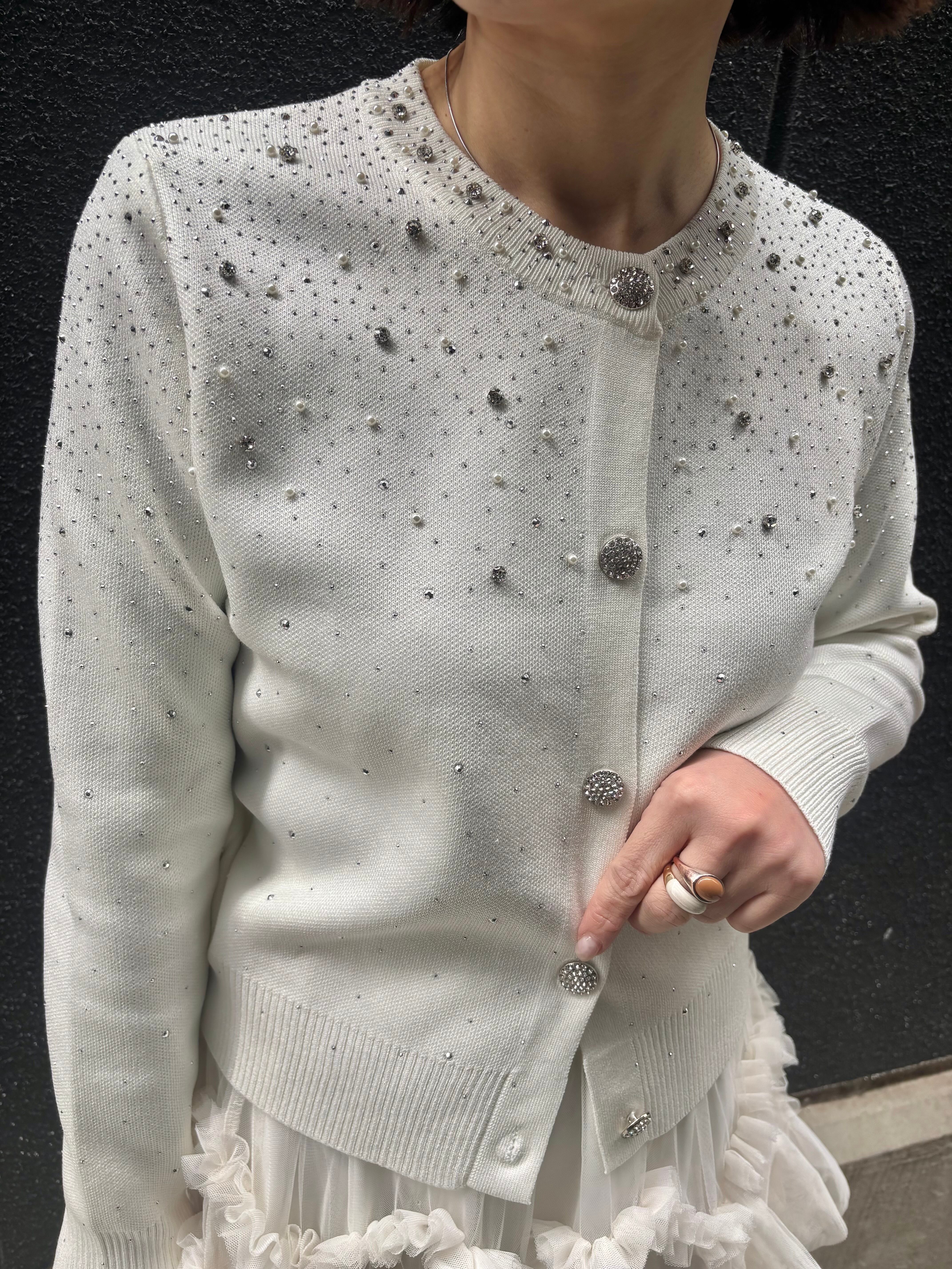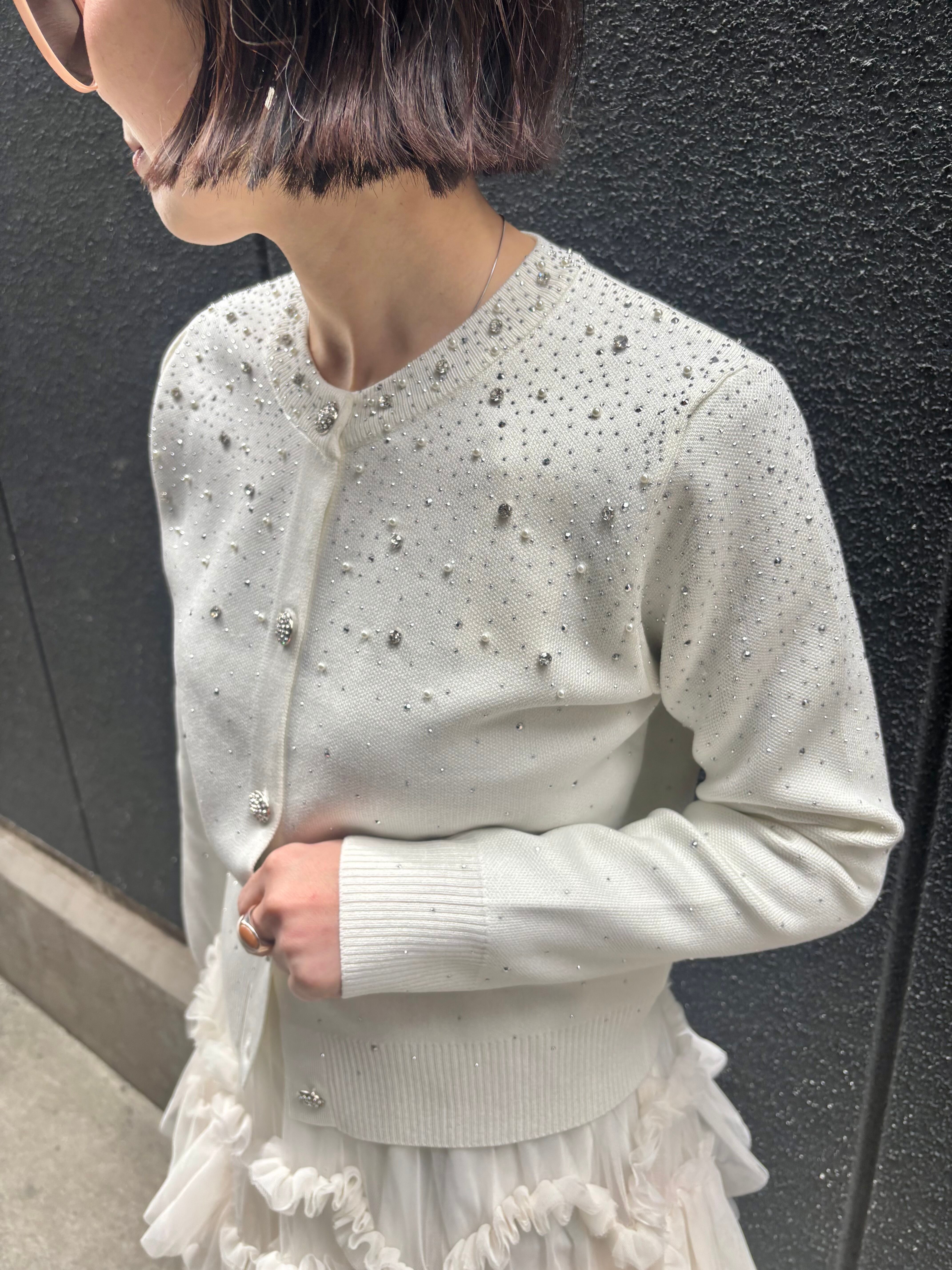mini stone × pearl design knit cardigan ニット カーディガン ハピス キラキラ パール