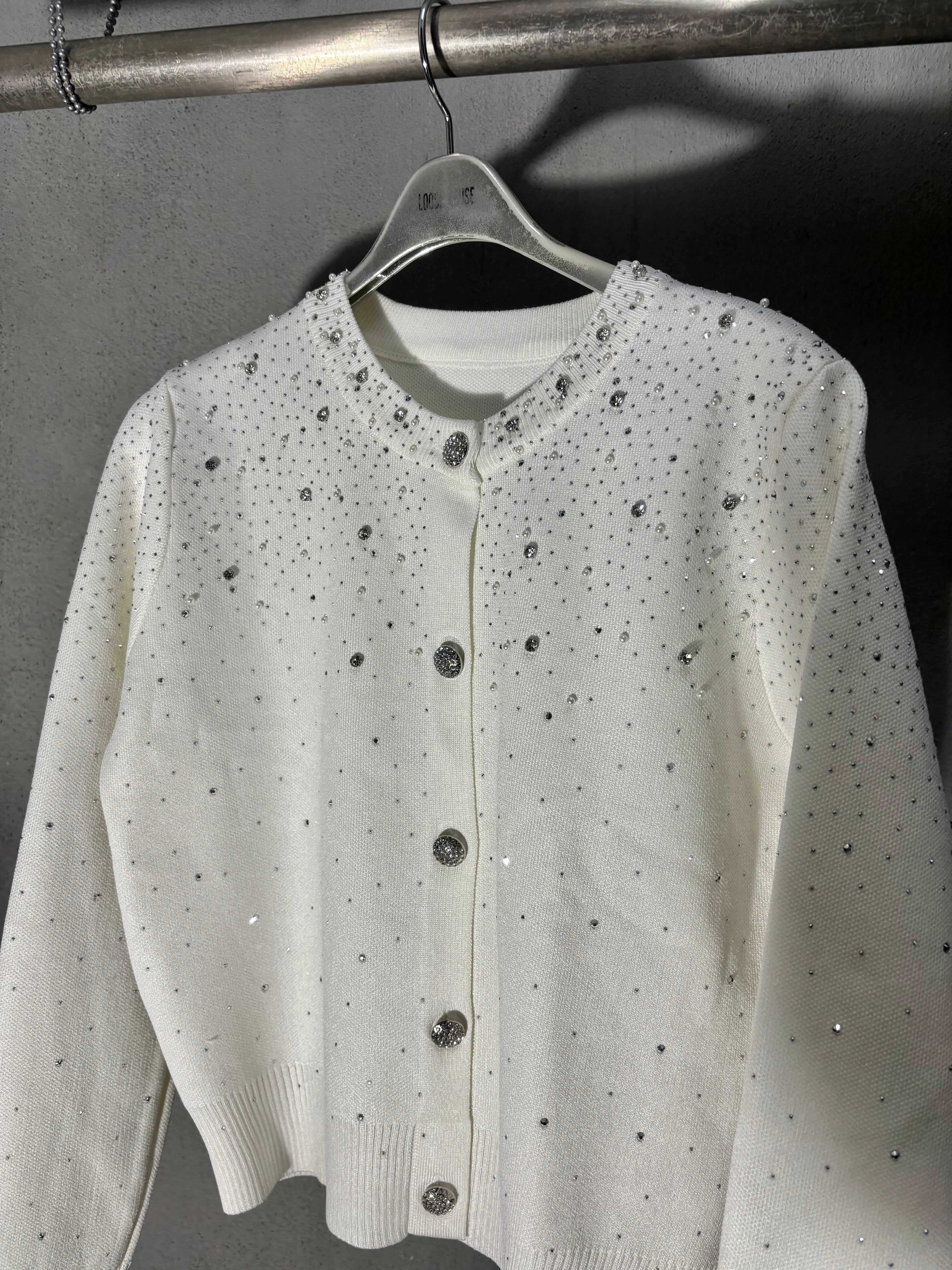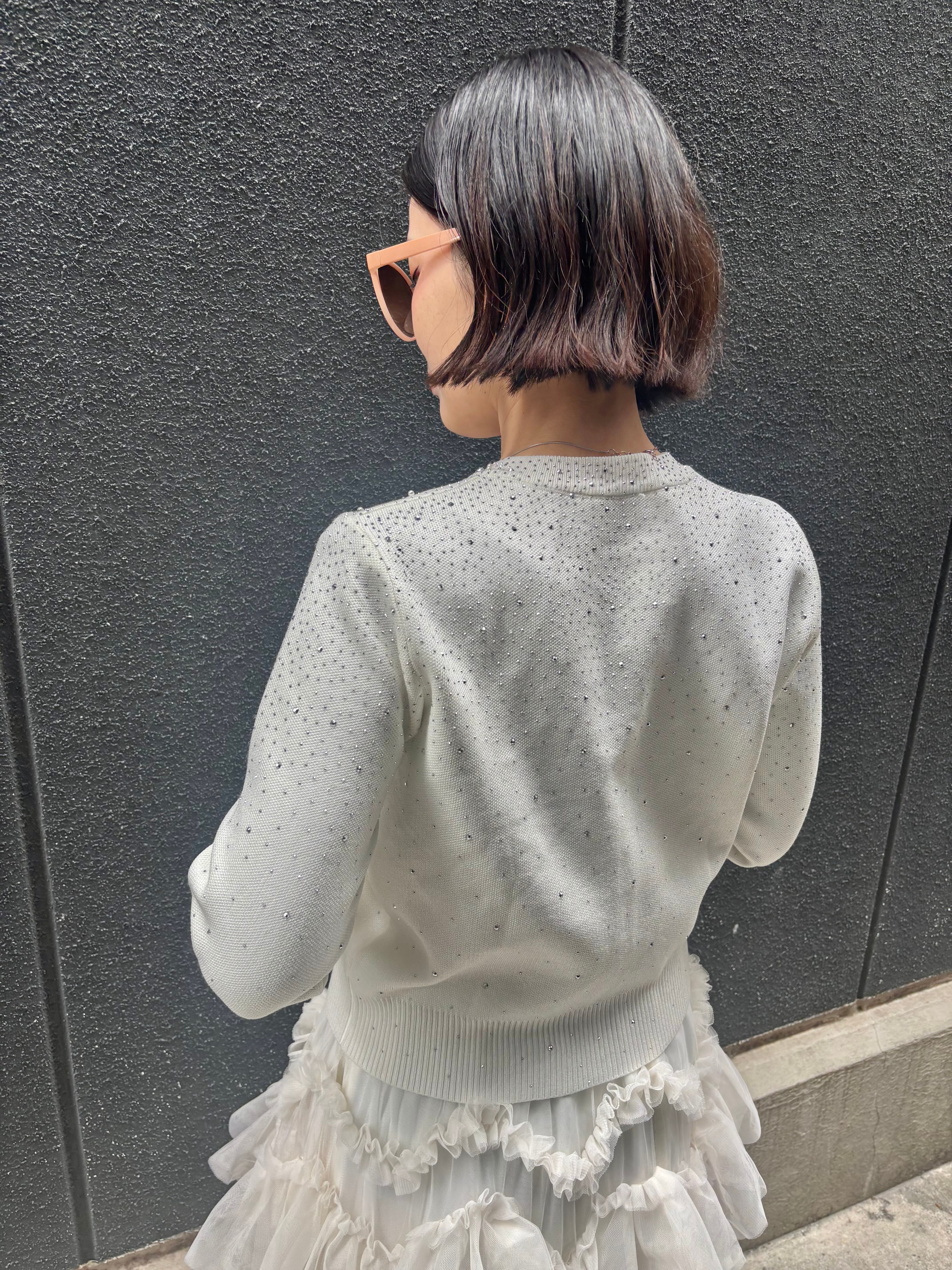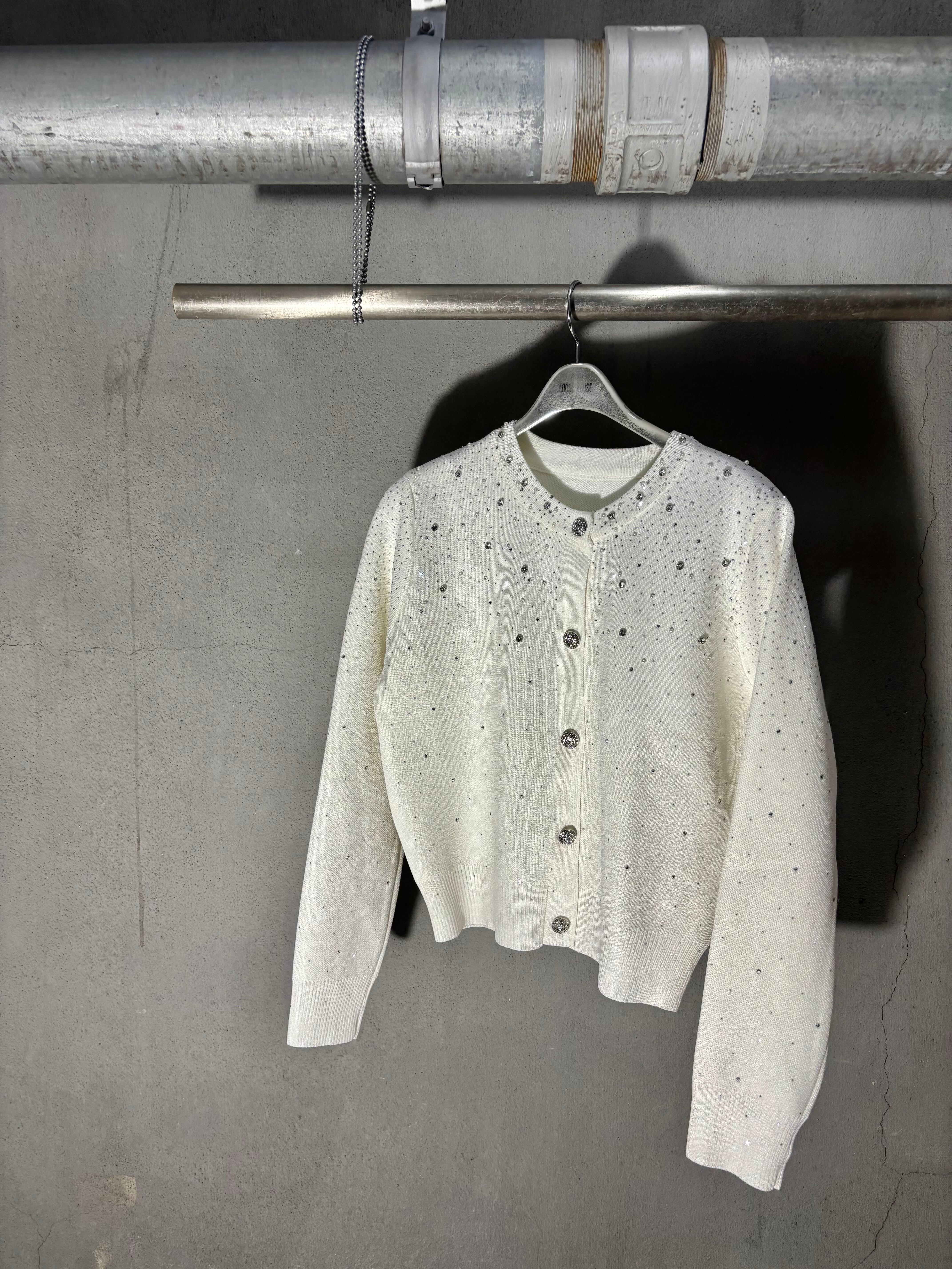 mini stone × pearl design knit cardigan ニット カーディガン ハピス キラキラ パール