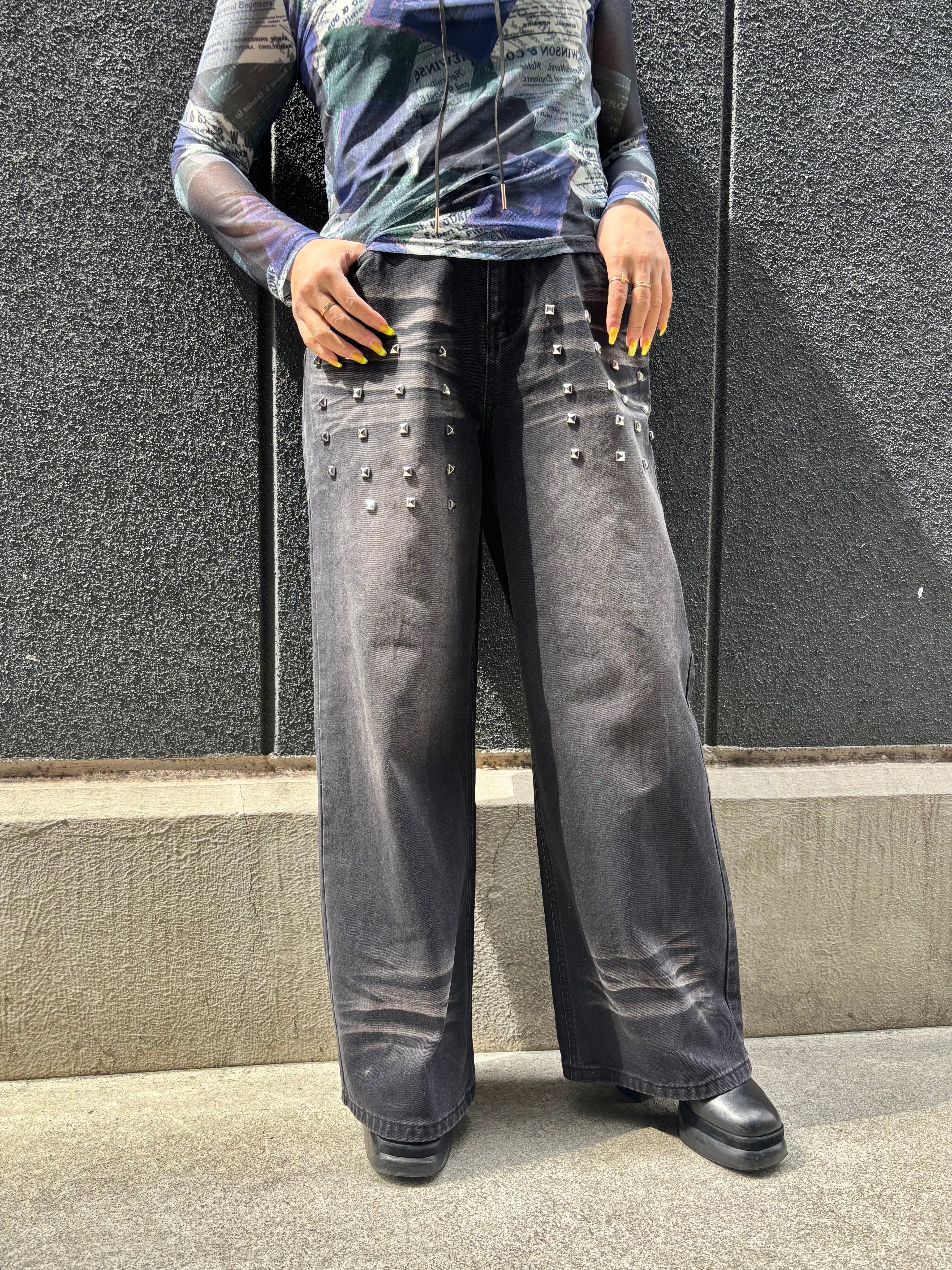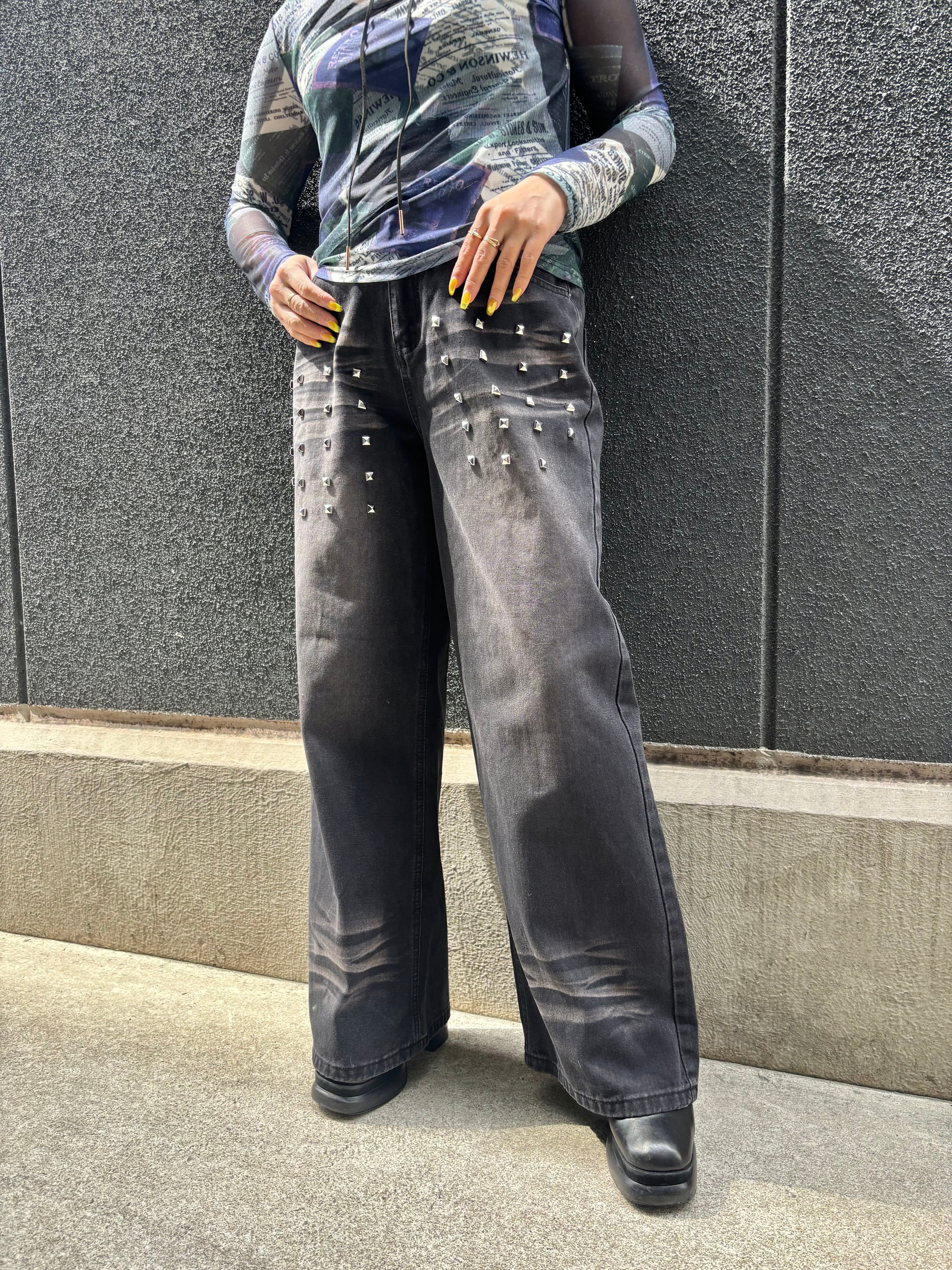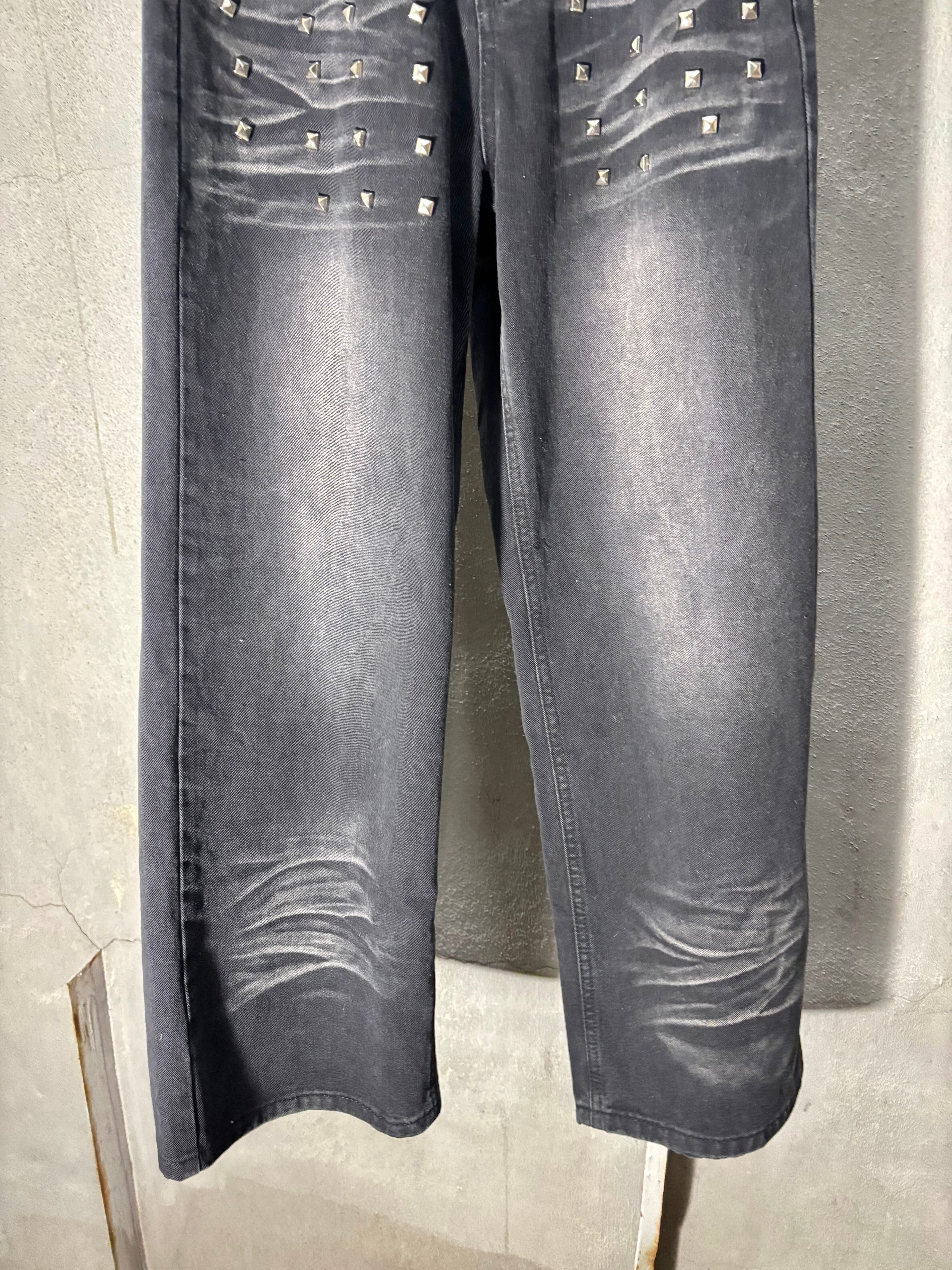 black denim pants デニム パンツ ブラックデニム シルバー スタッズ ブリーチ