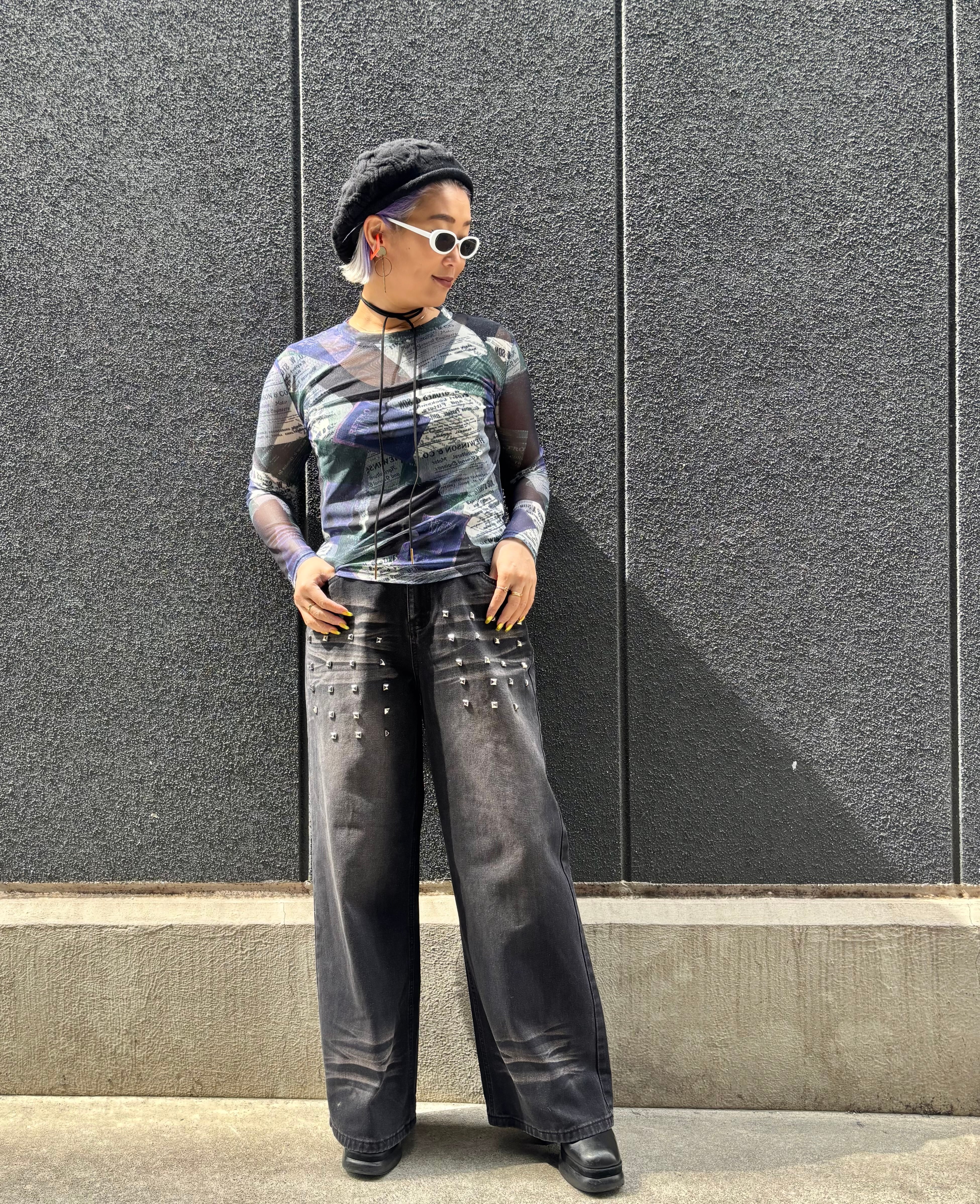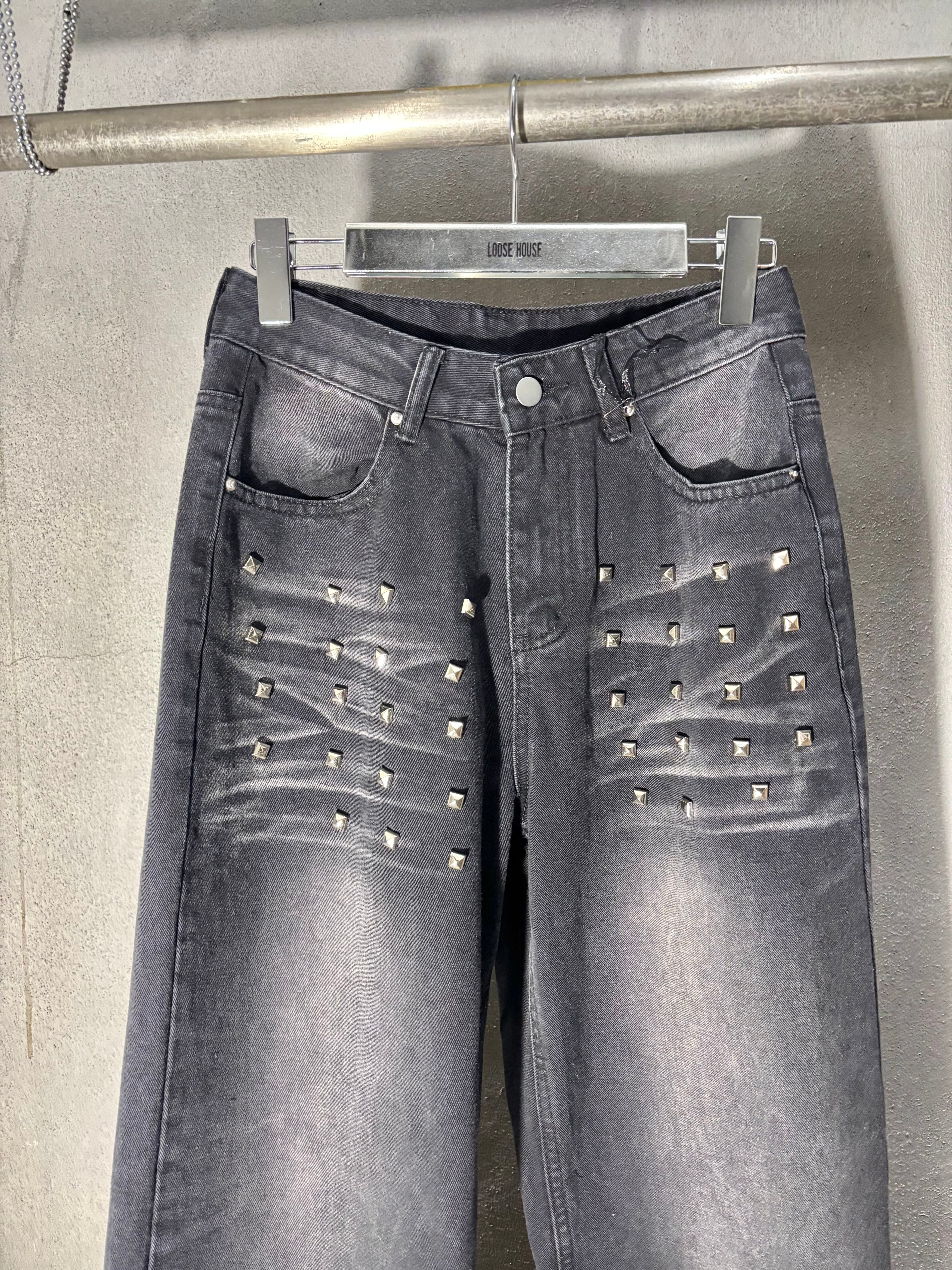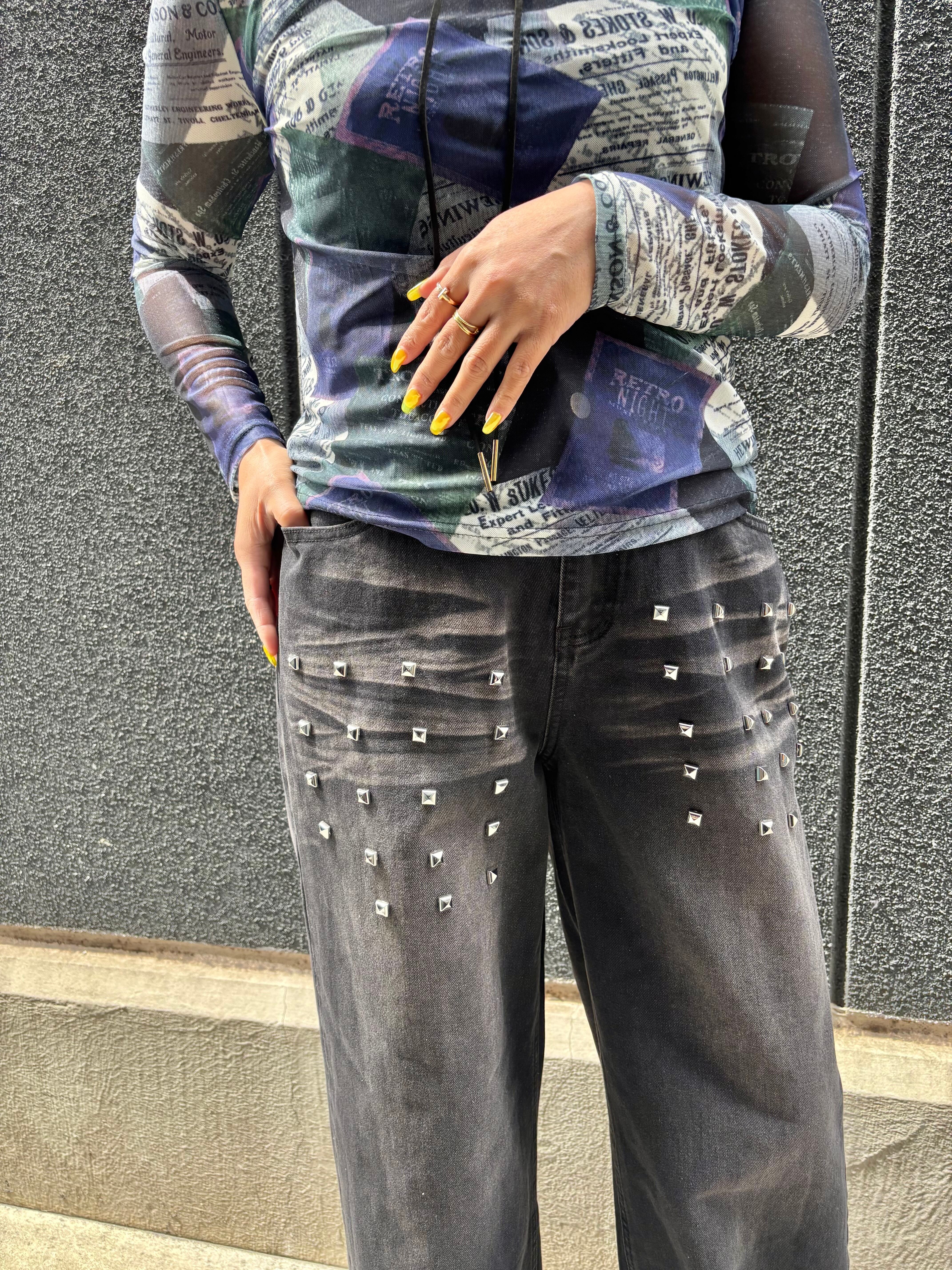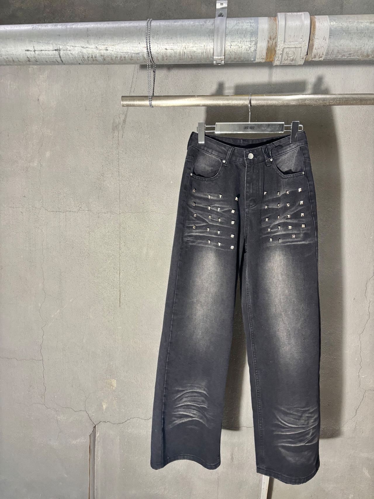 black denim pants デニム パンツ ブラックデニム シルバー スタッズ ブリーチ