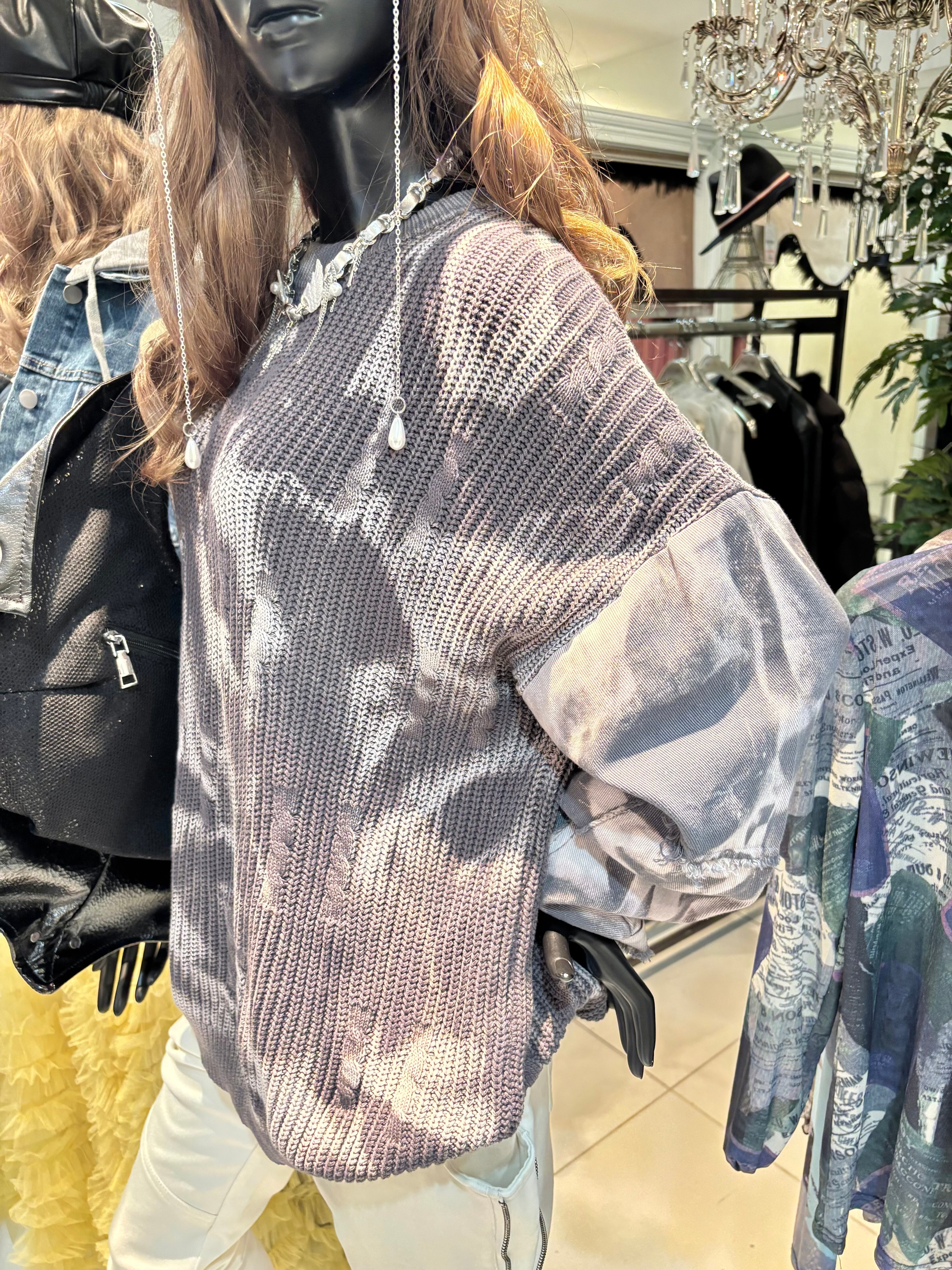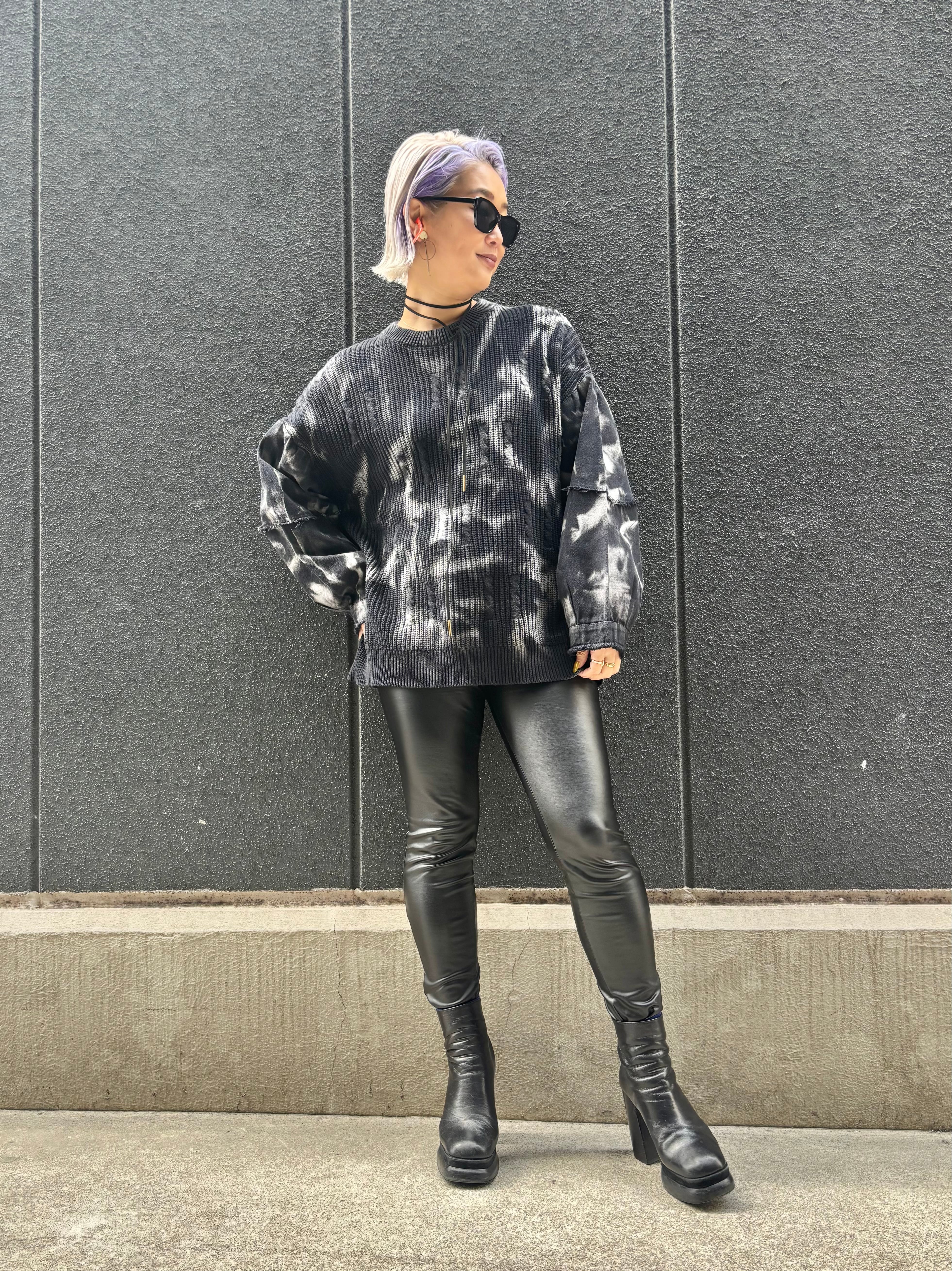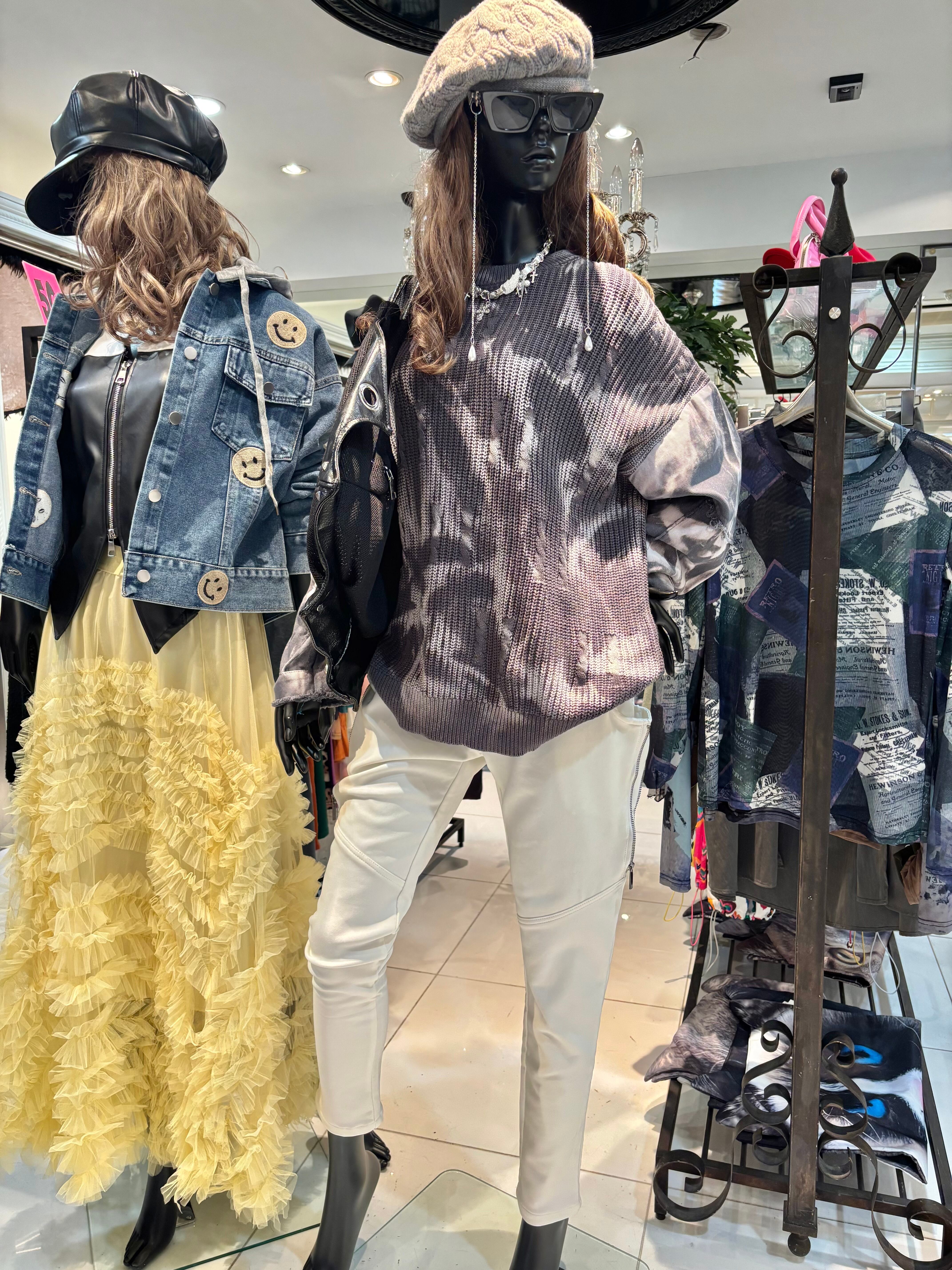 異素材の切り替えとタイダイ柄が魅力のニットトップス!