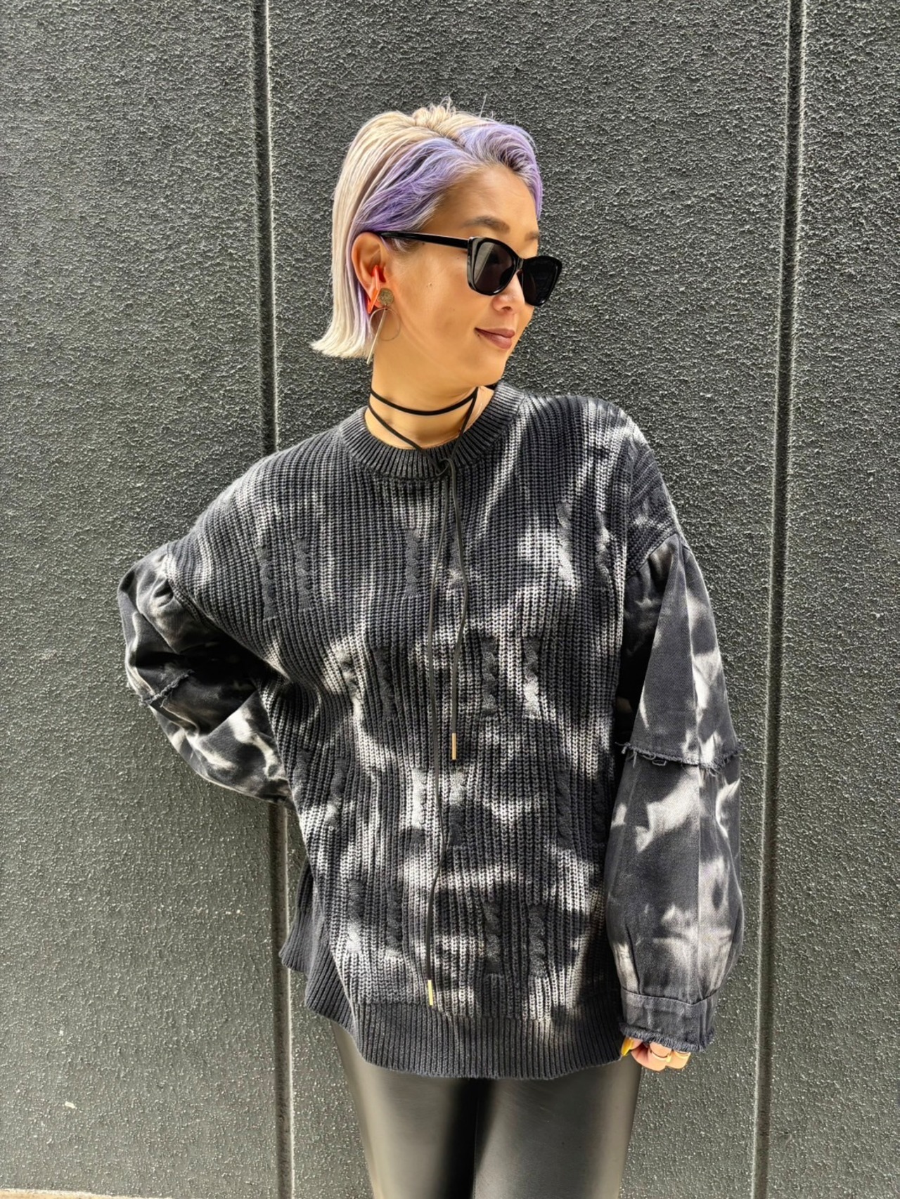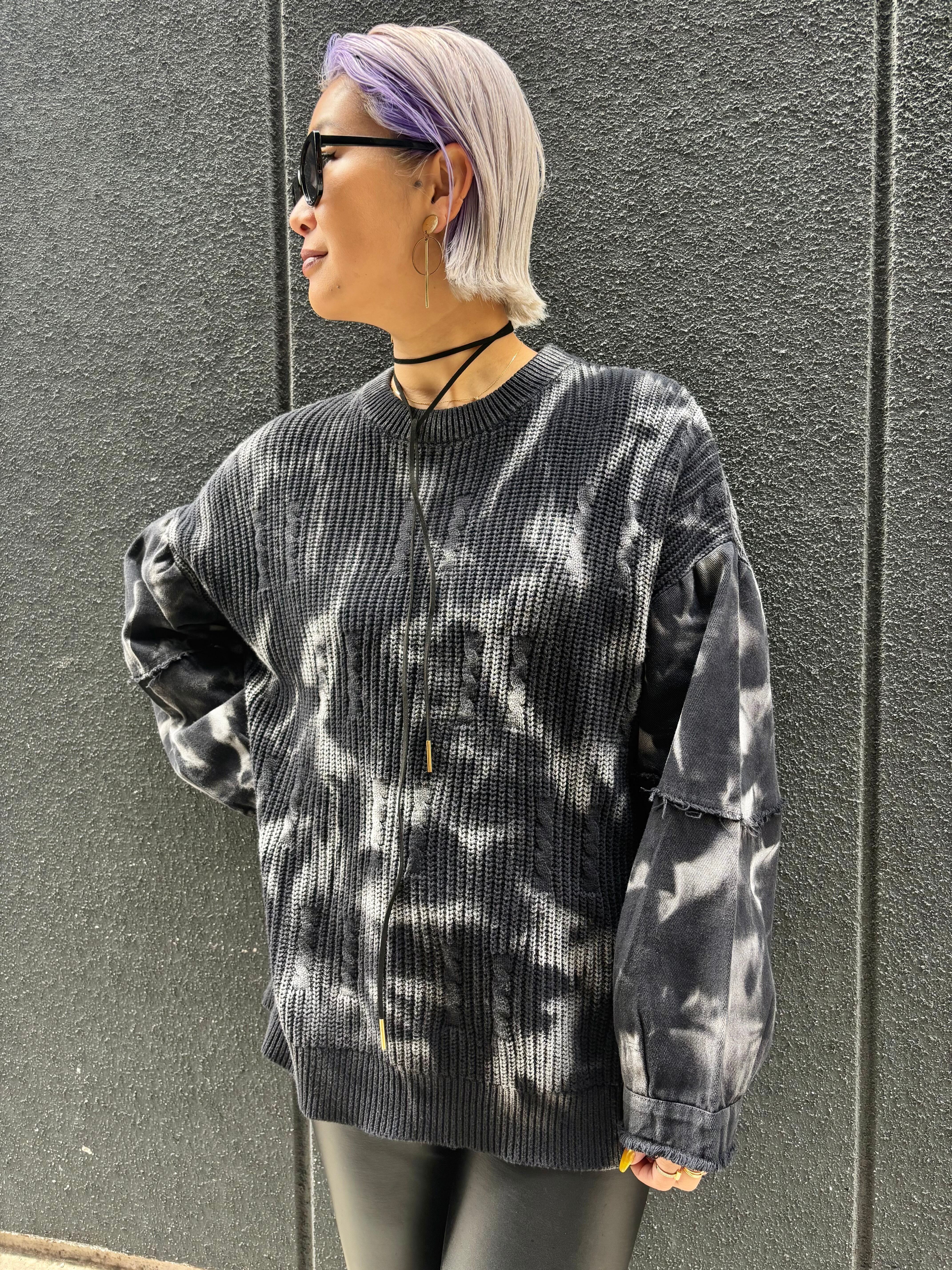 different fabrics change design × tie-dye knit tops トップス ニット タイダイ 異素材切替