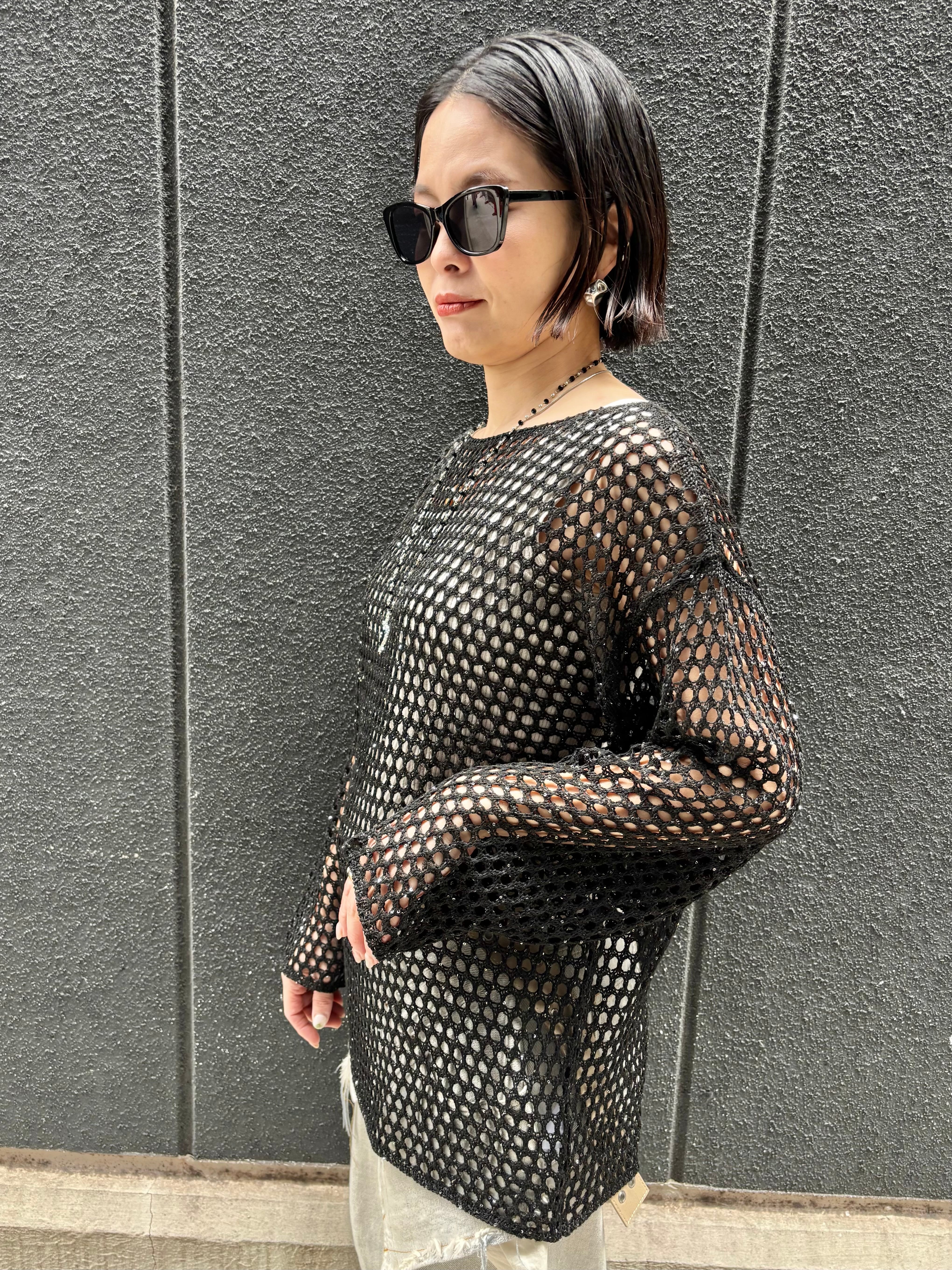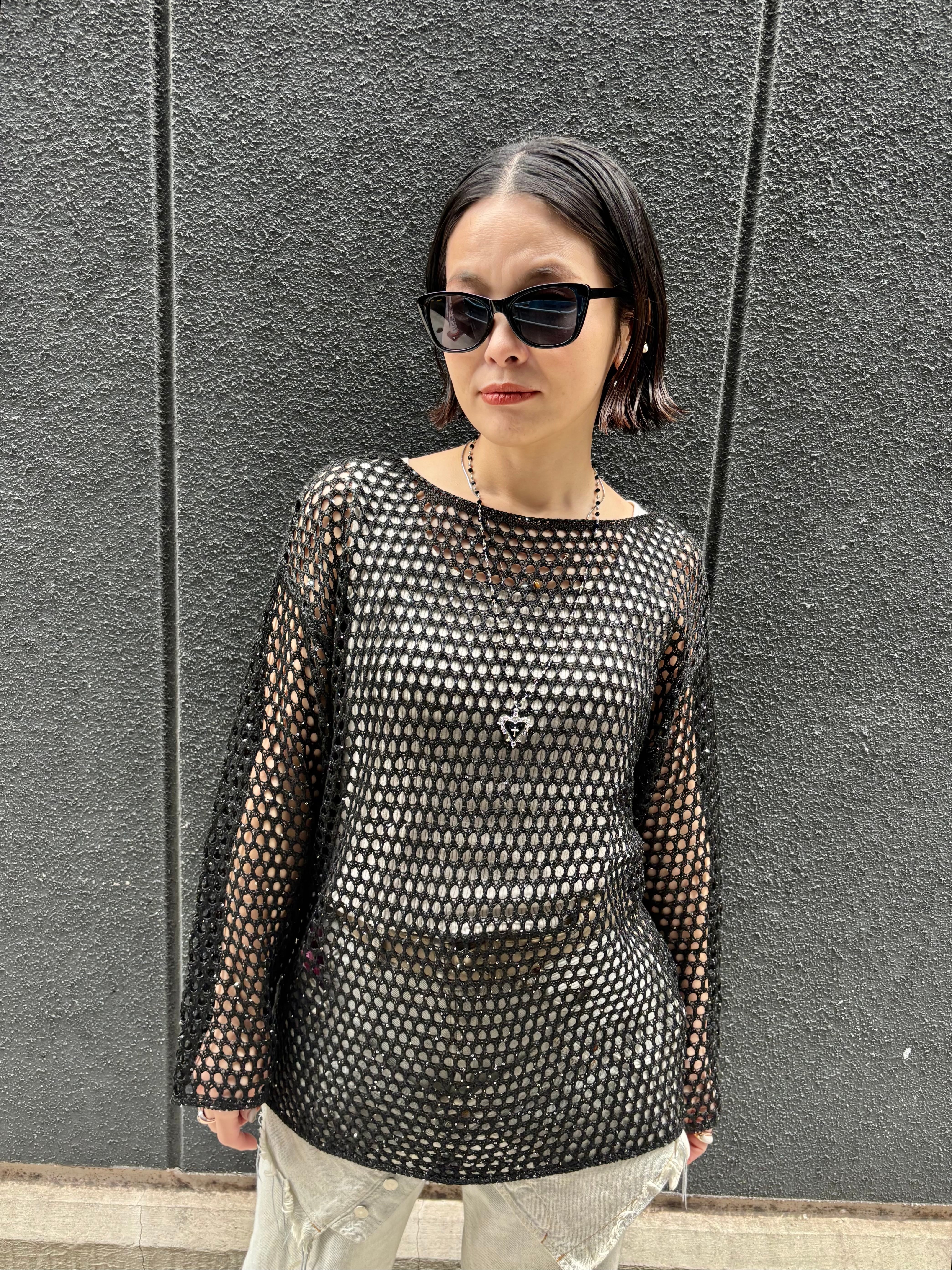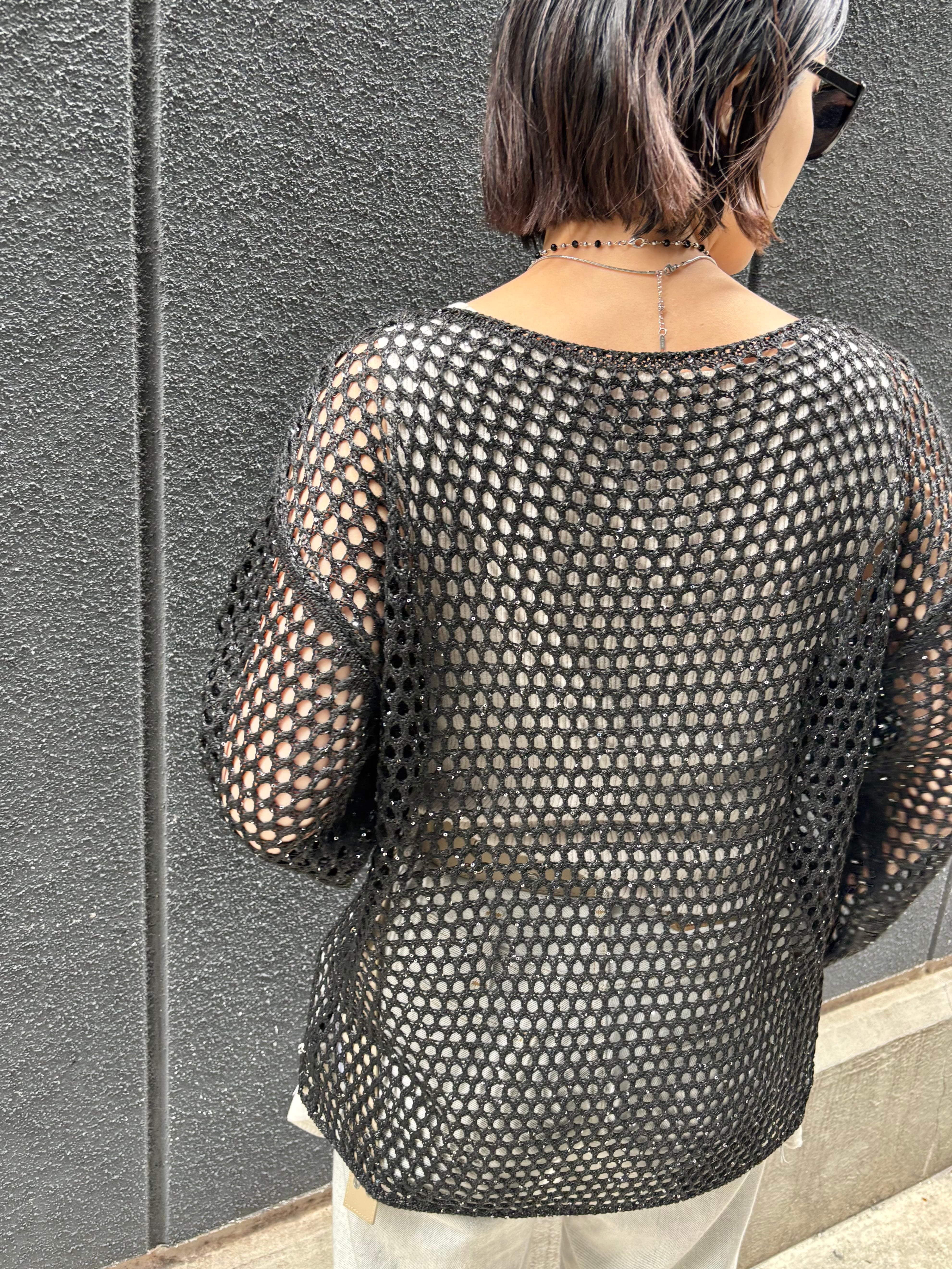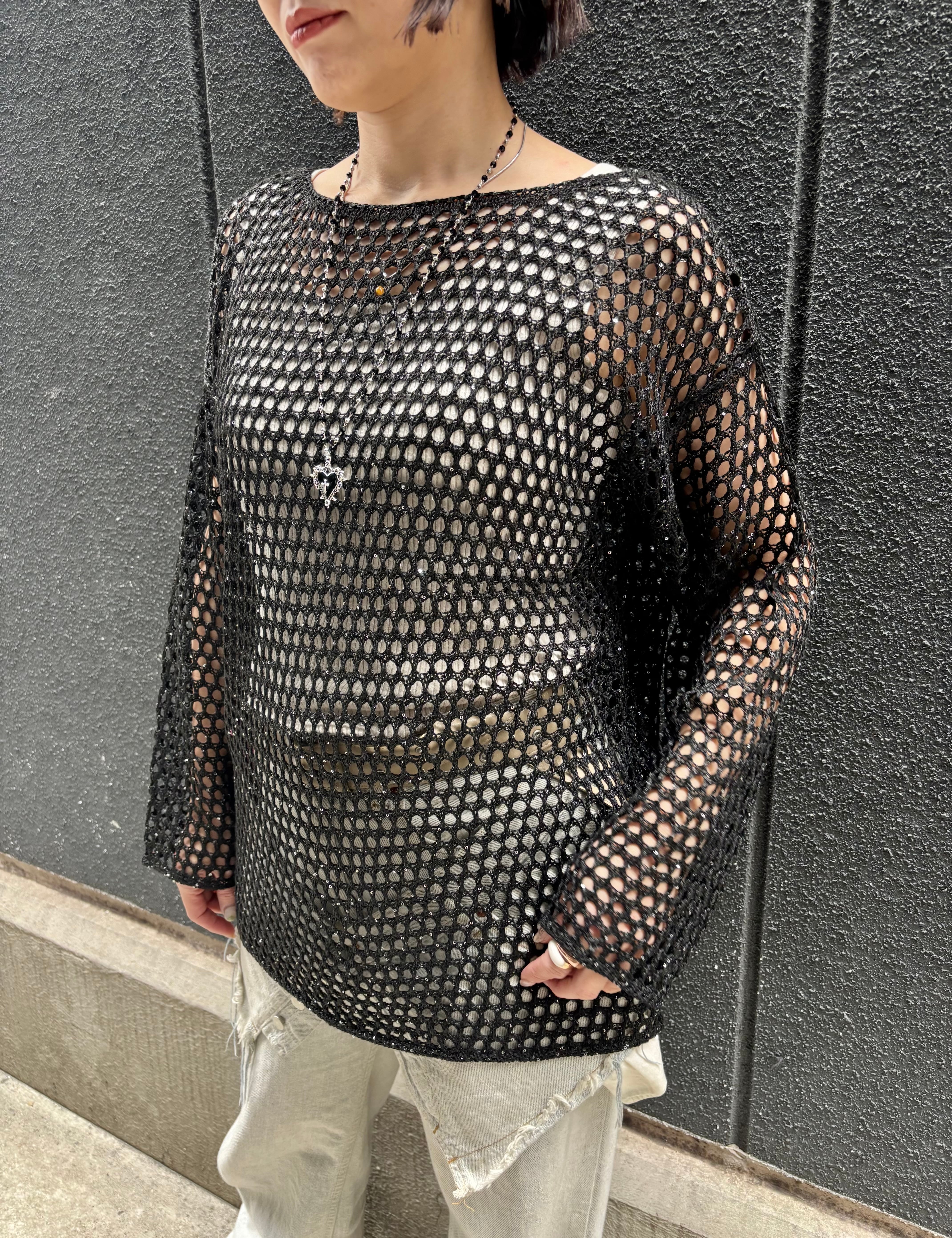 spangle mesh knit tops トップス ニット メッシュ ブラック 黒 重ね着