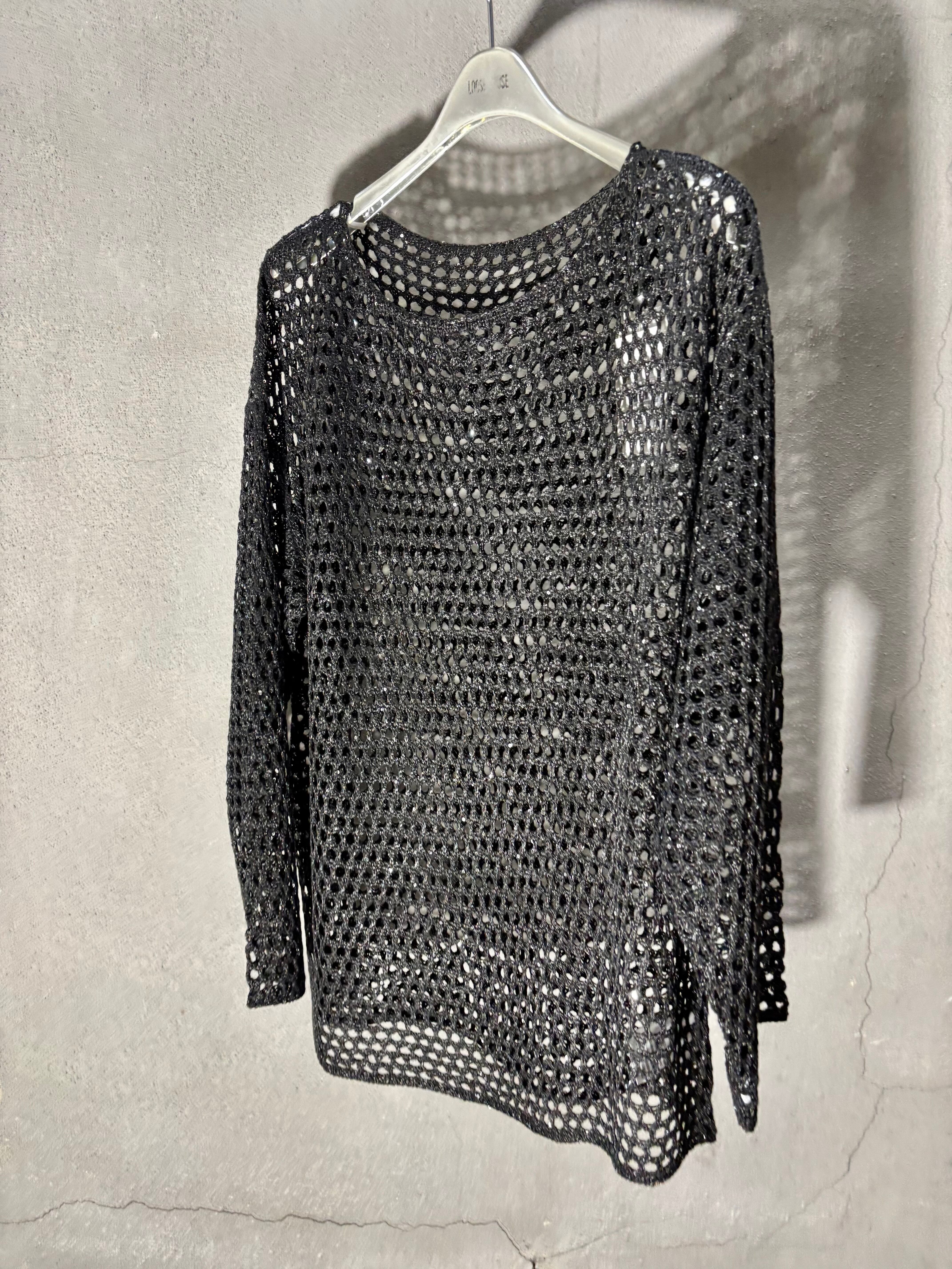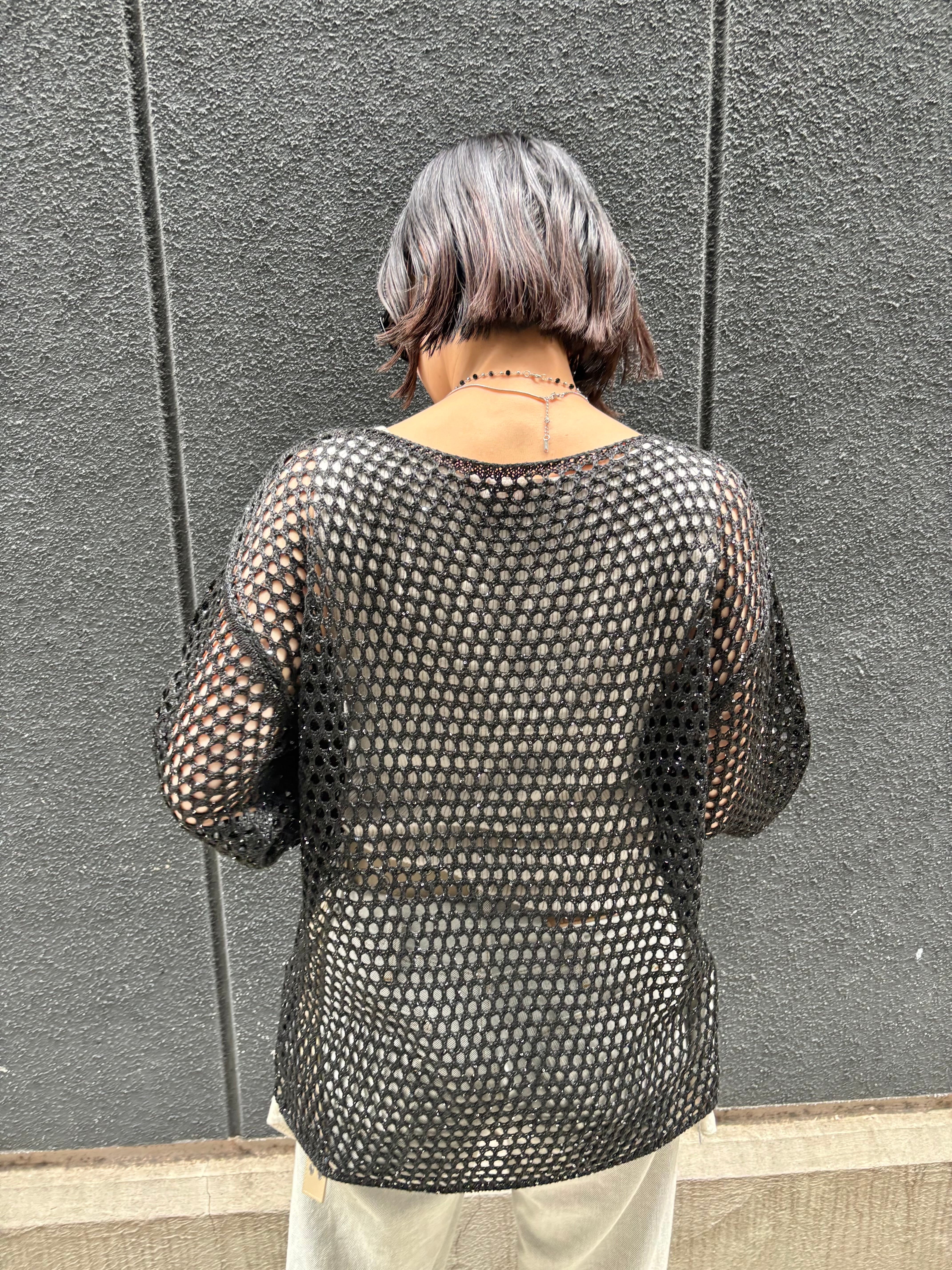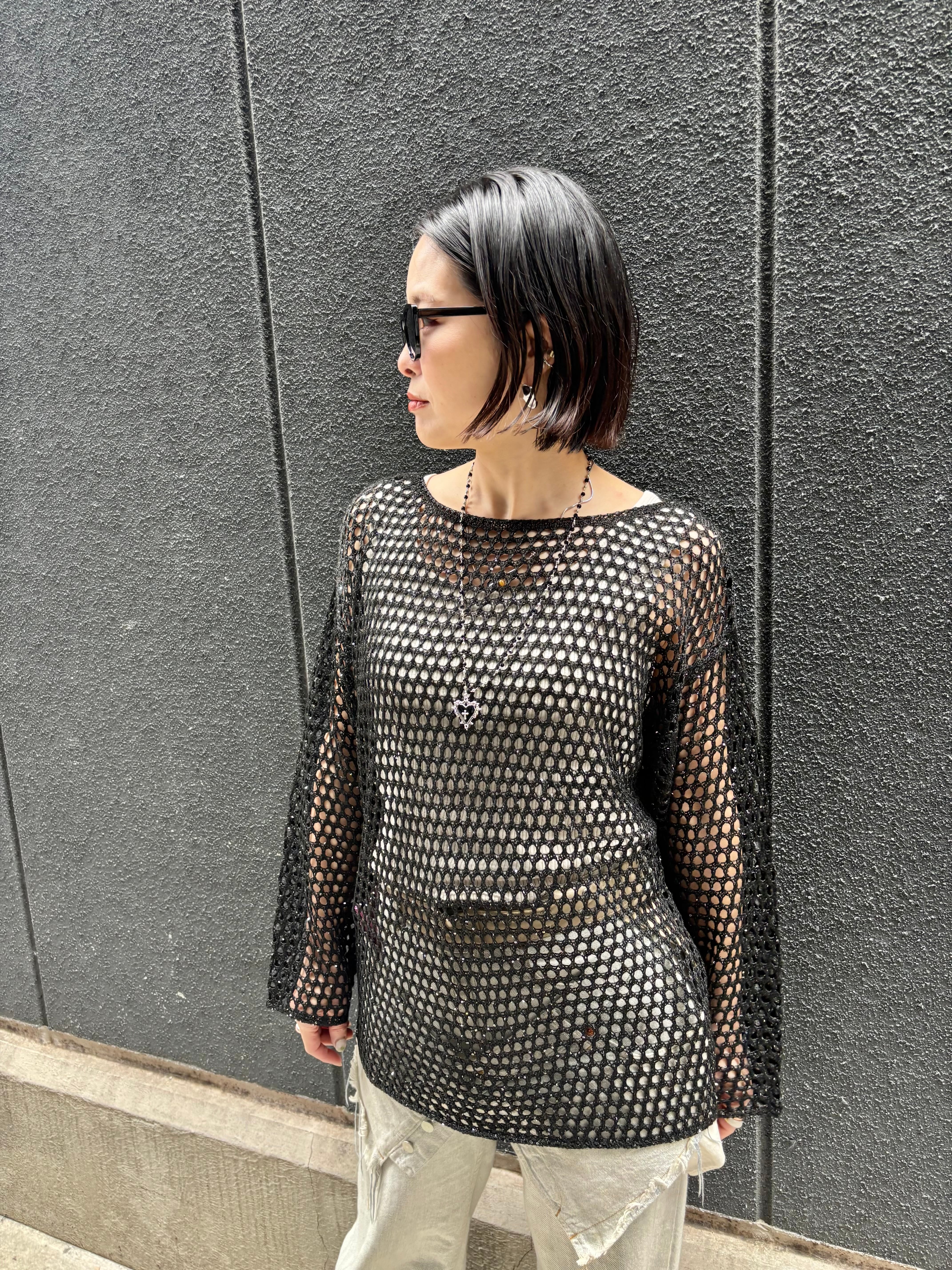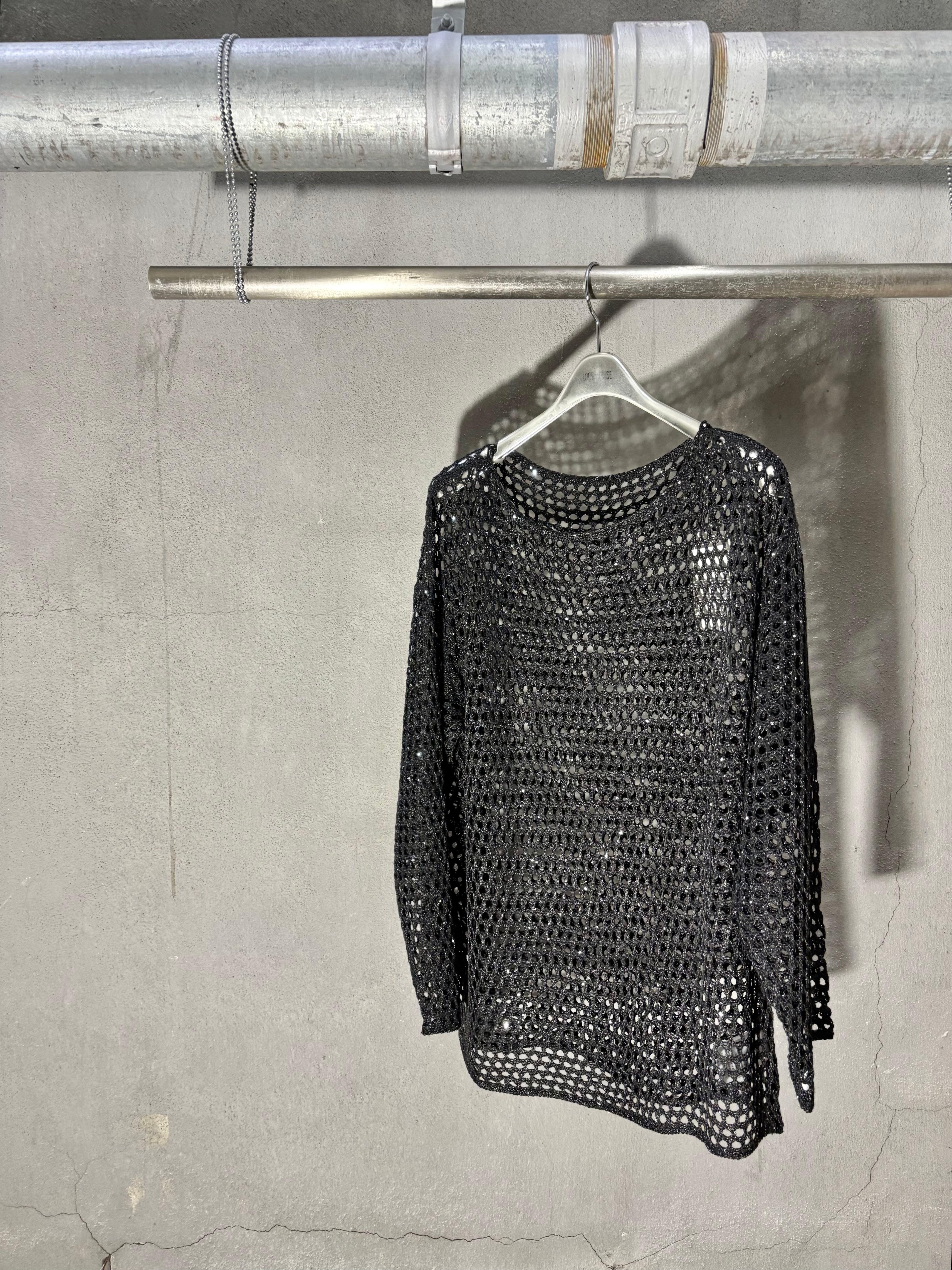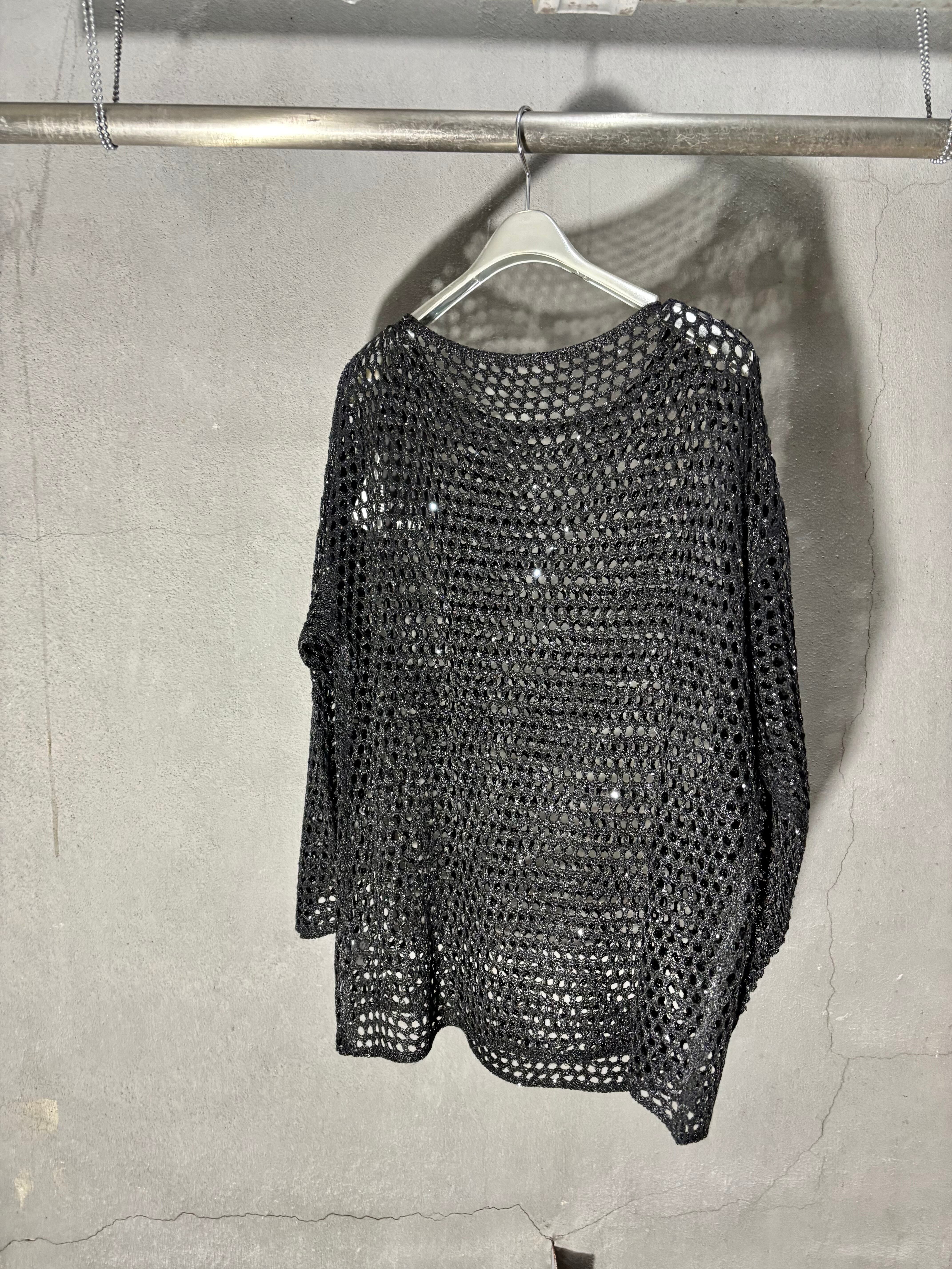 spangle mesh knit tops トップス ニット メッシュ ブラック 黒 重ね着