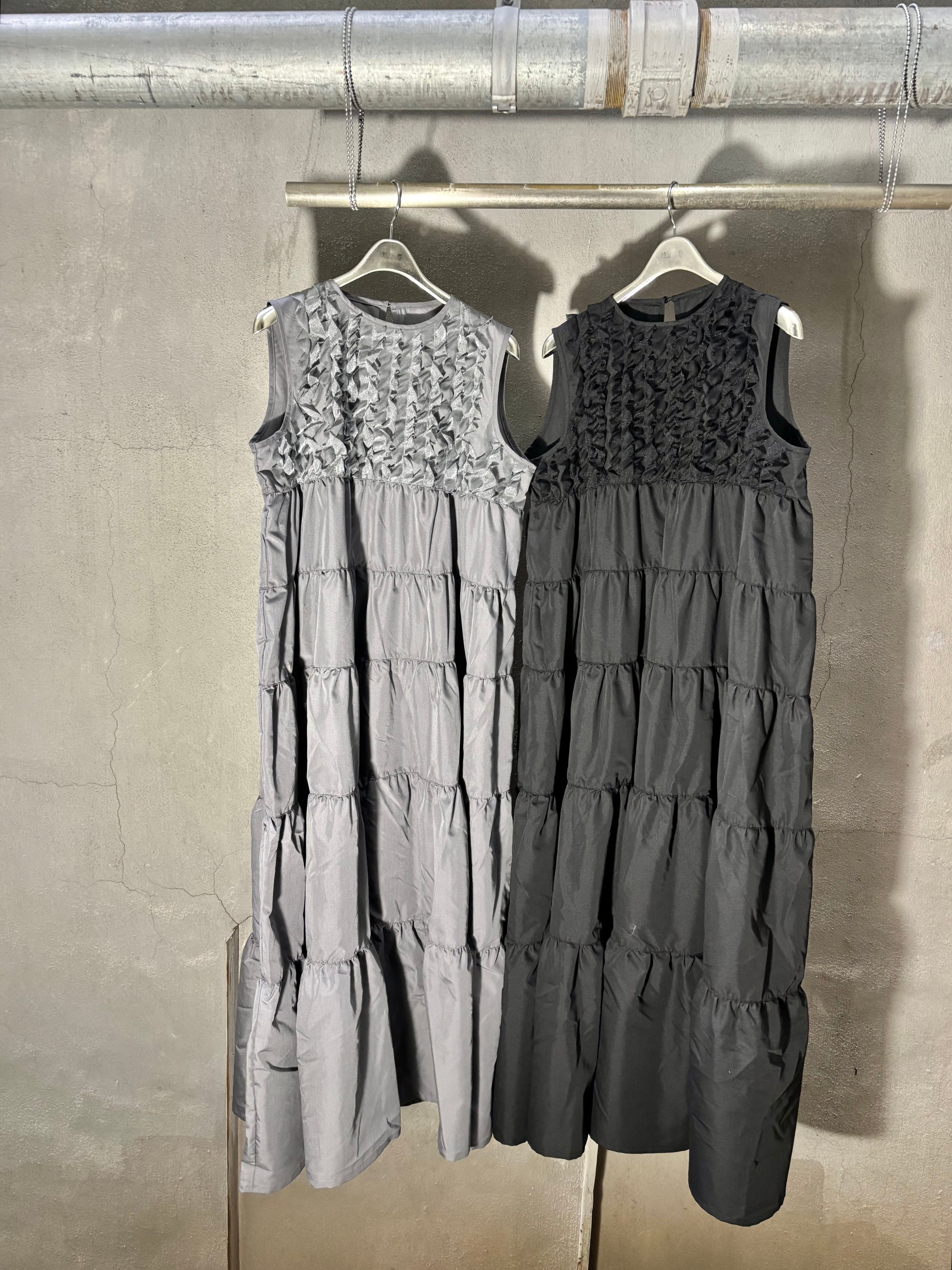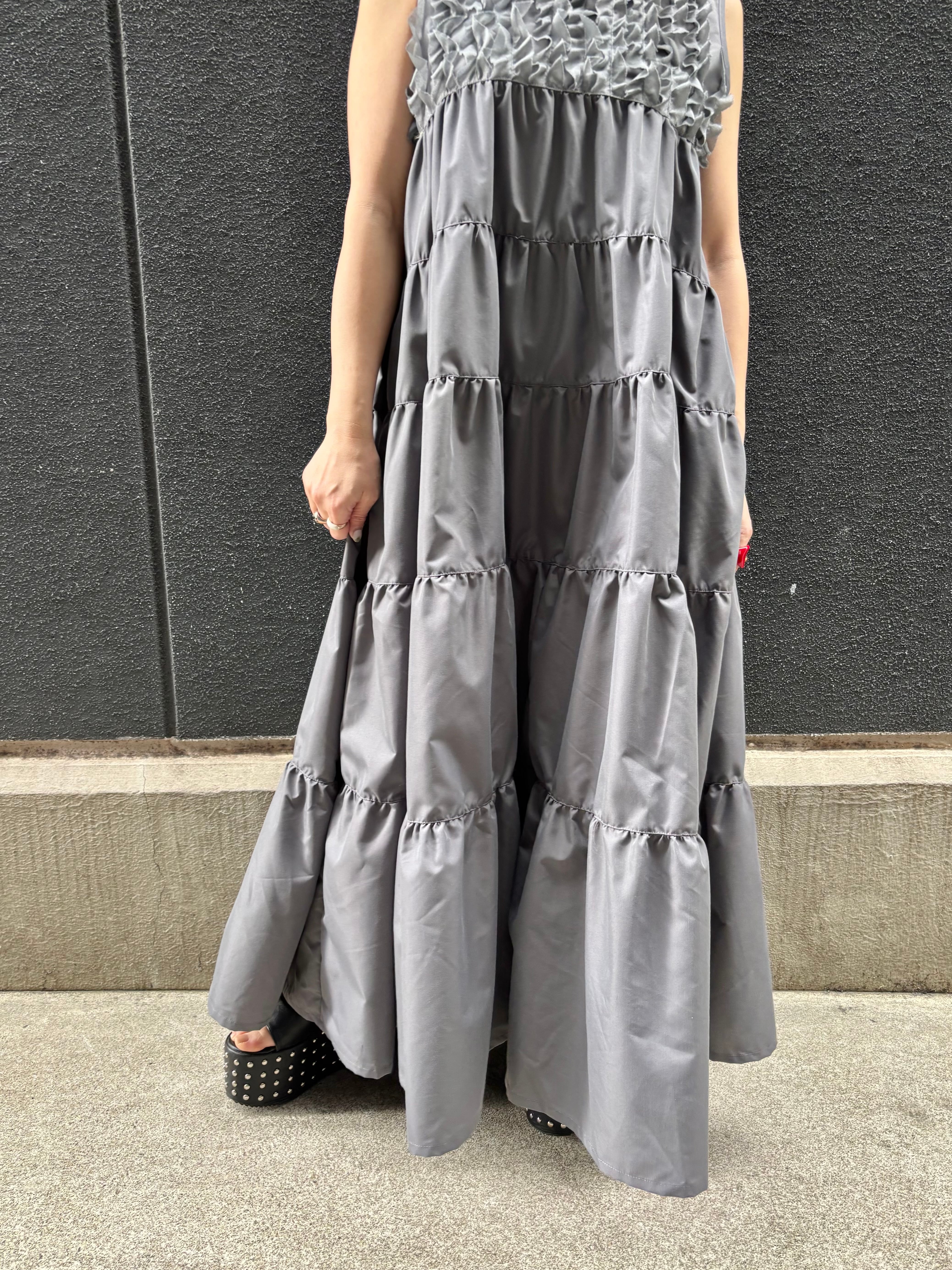 tiered gather sleeveless long one-piece ワンピース ロングワンピ ノースリーブ ギャザー ティアード 縦フリル