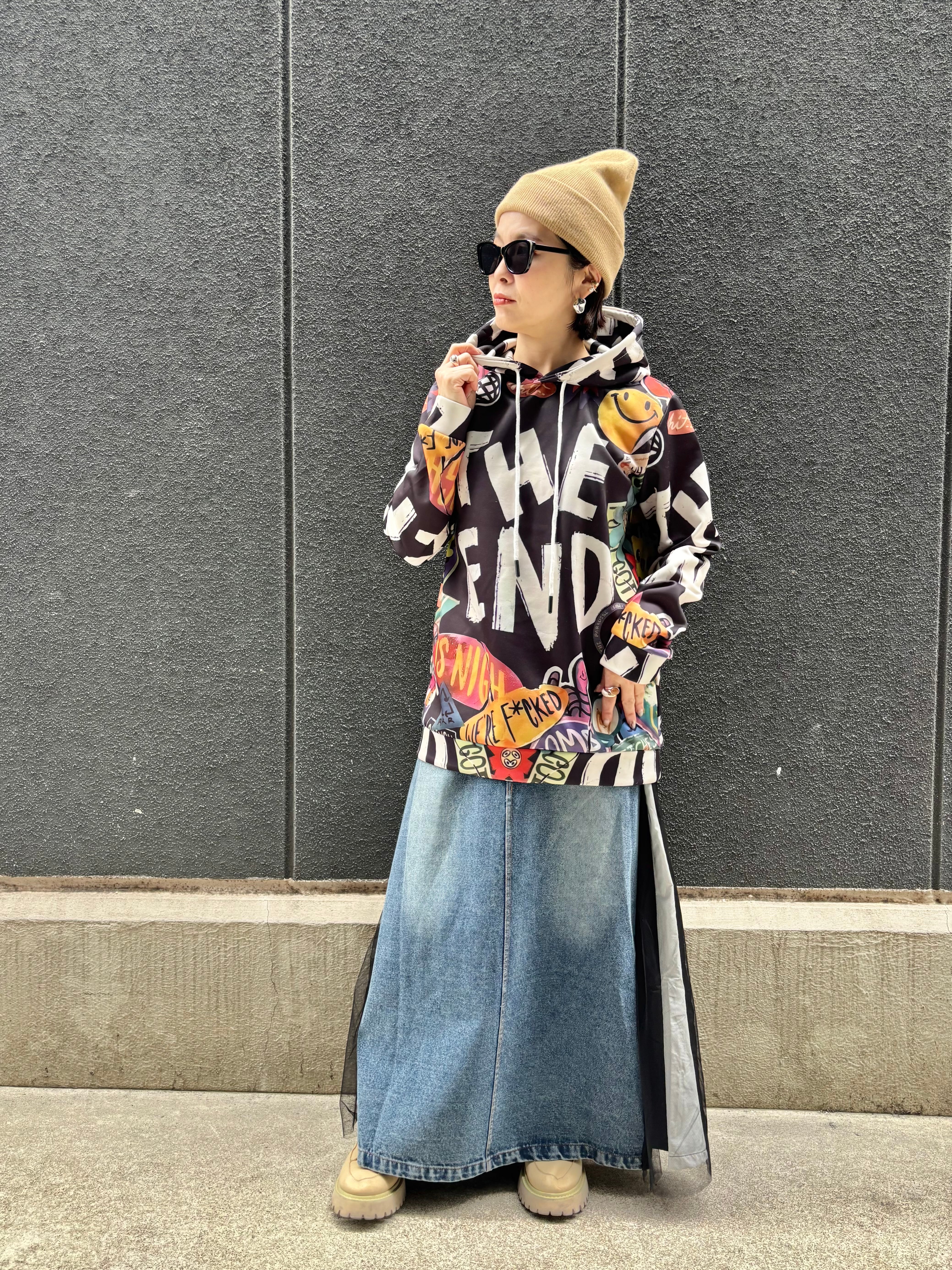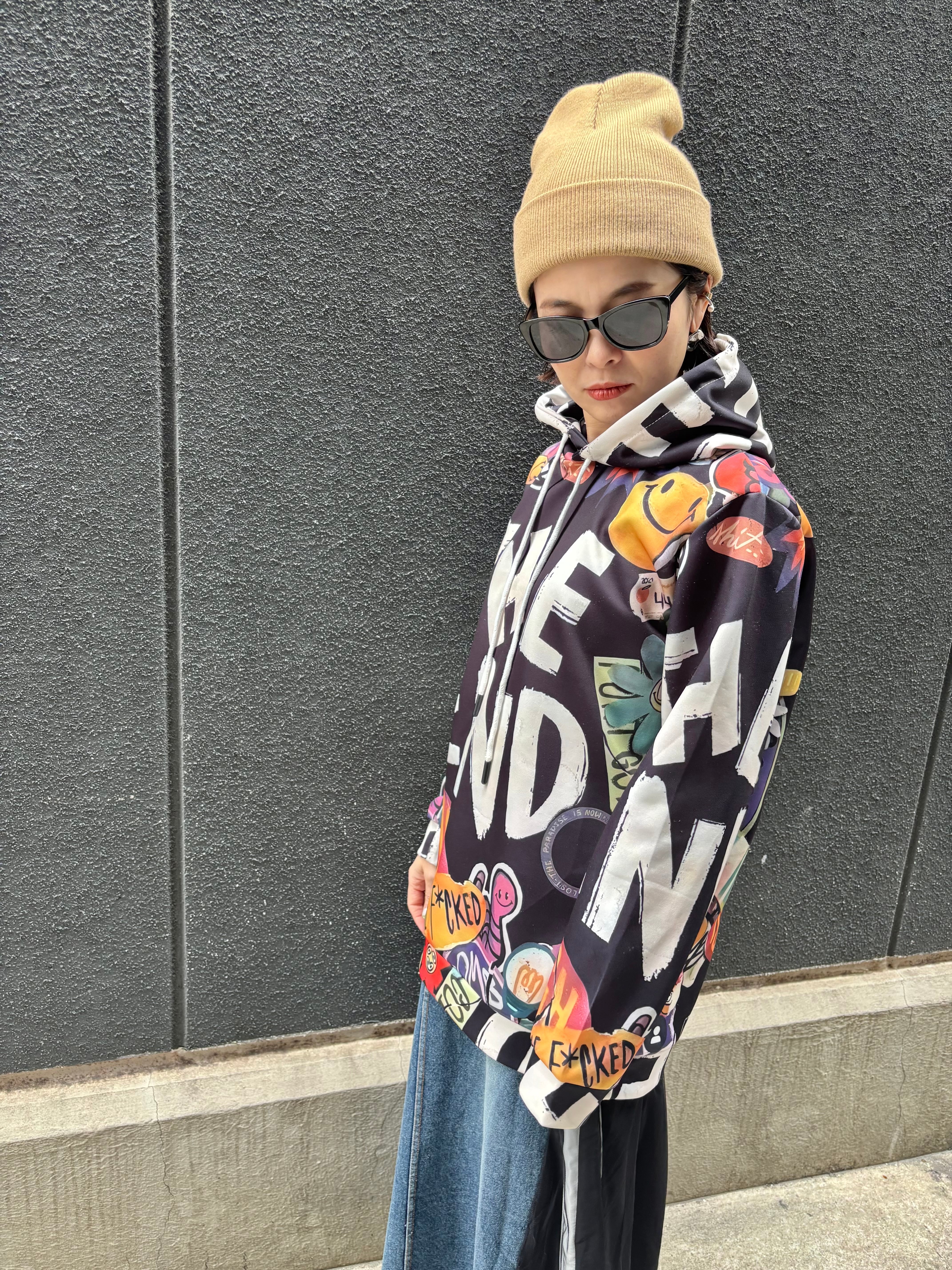 派手な総柄のフーディートップス!