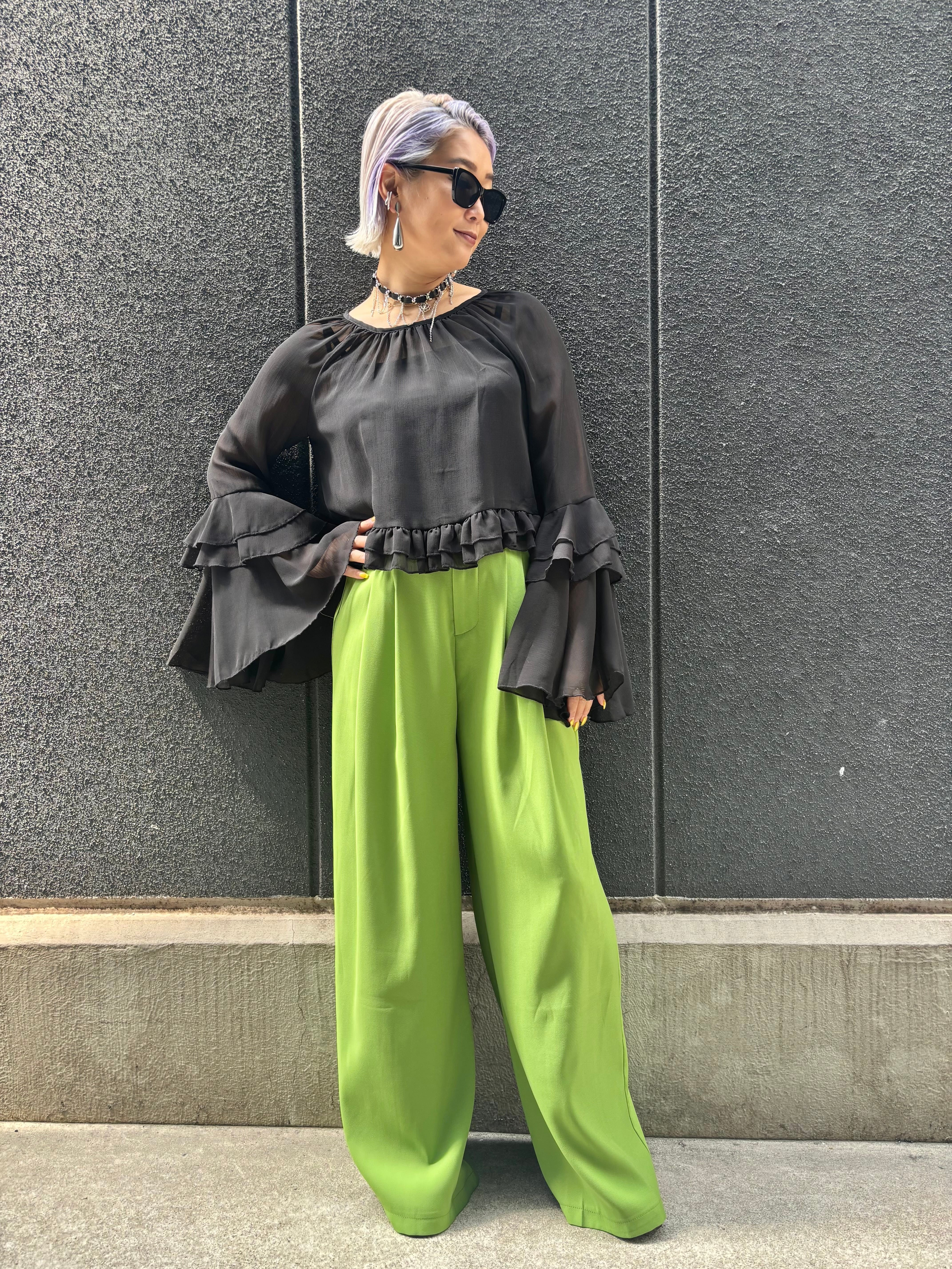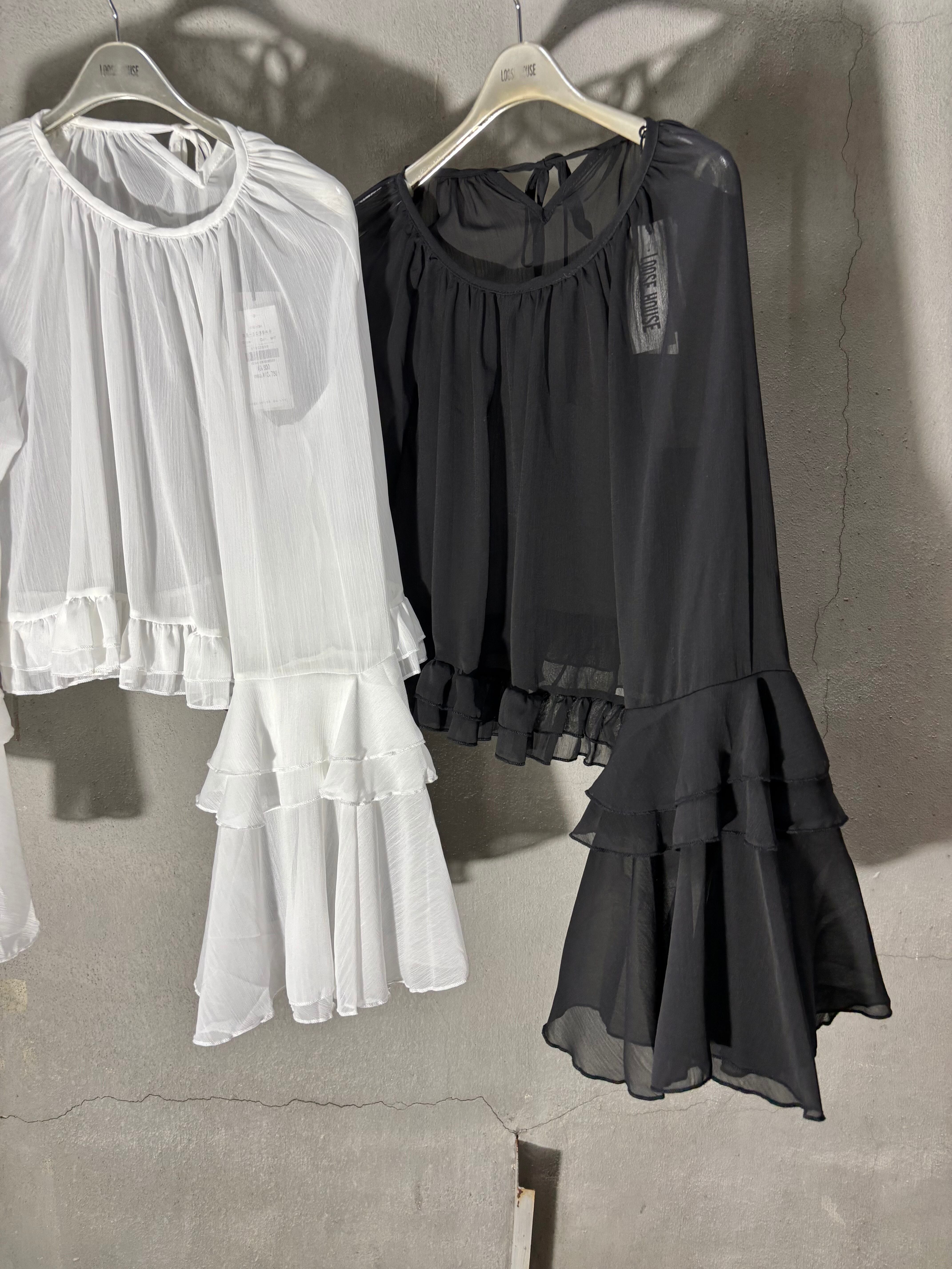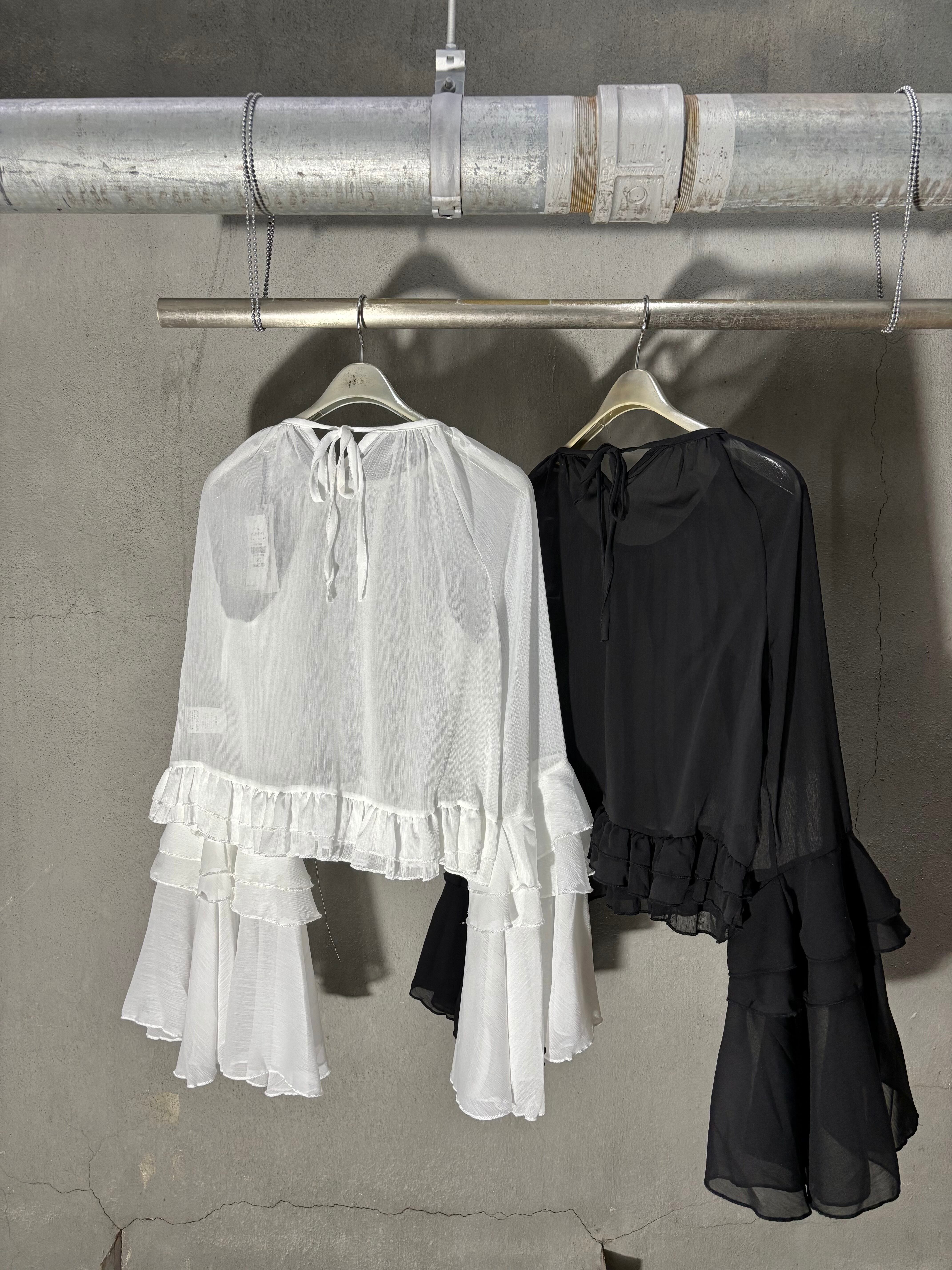 chiffon design tops トップス シフォン シアー フリル デザインスリーブ