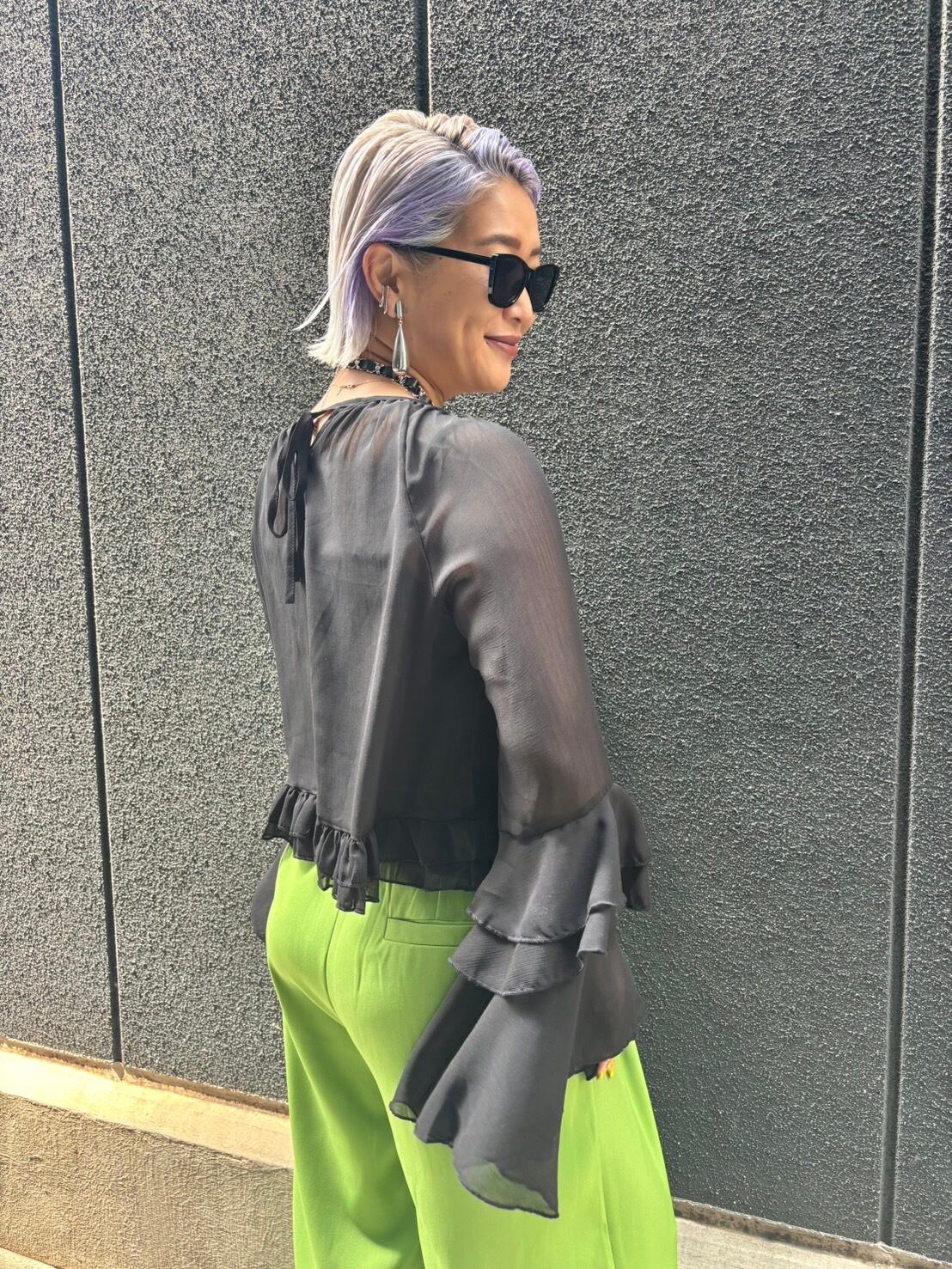 透け感のある生地が、シーンを選ばず上品な印象を与えます。