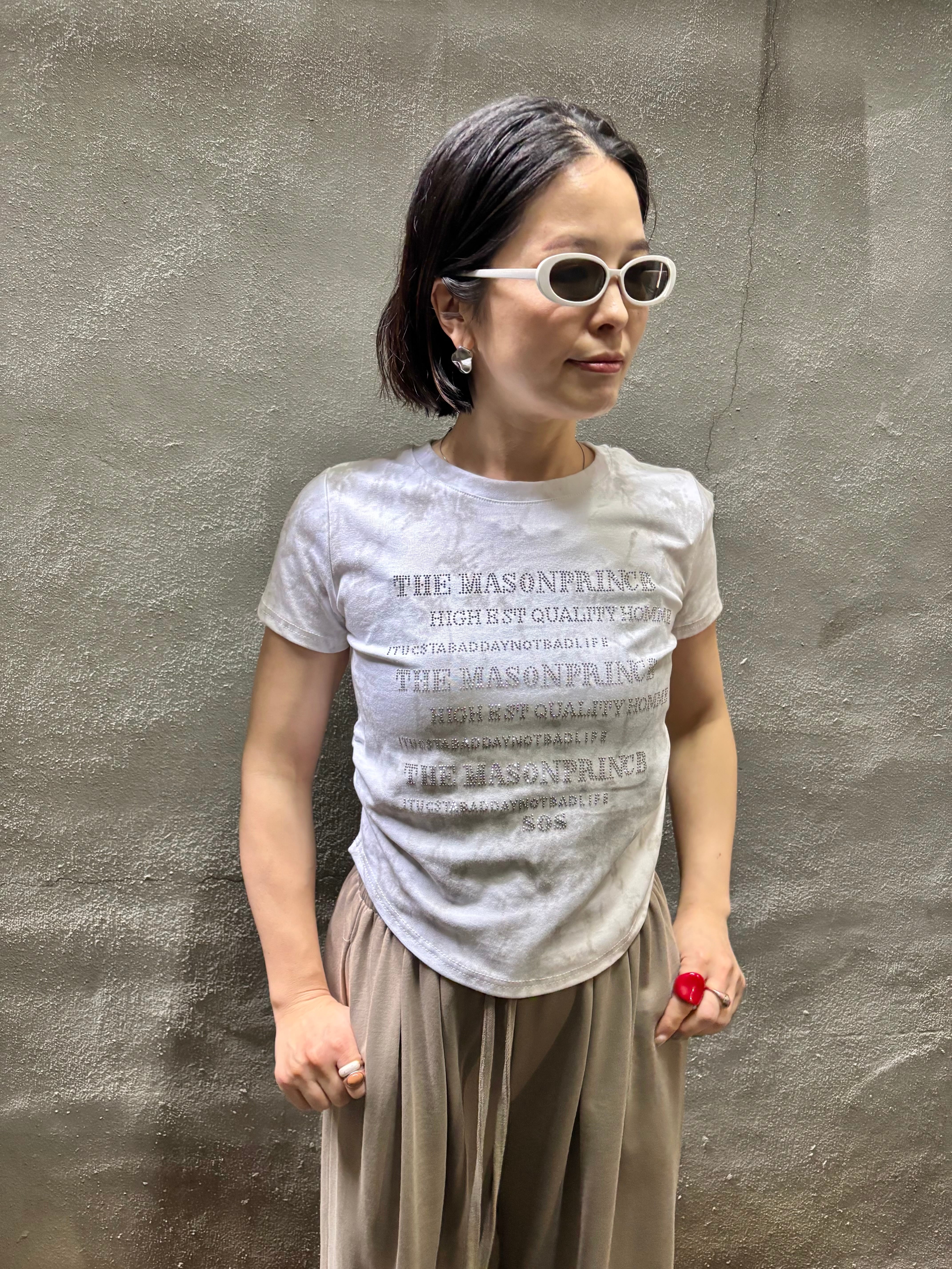 tie-dye print text mini stone design T-shirt tops Tシャツ ちびT タイダイ テキスト ハピス サイド ギャザー