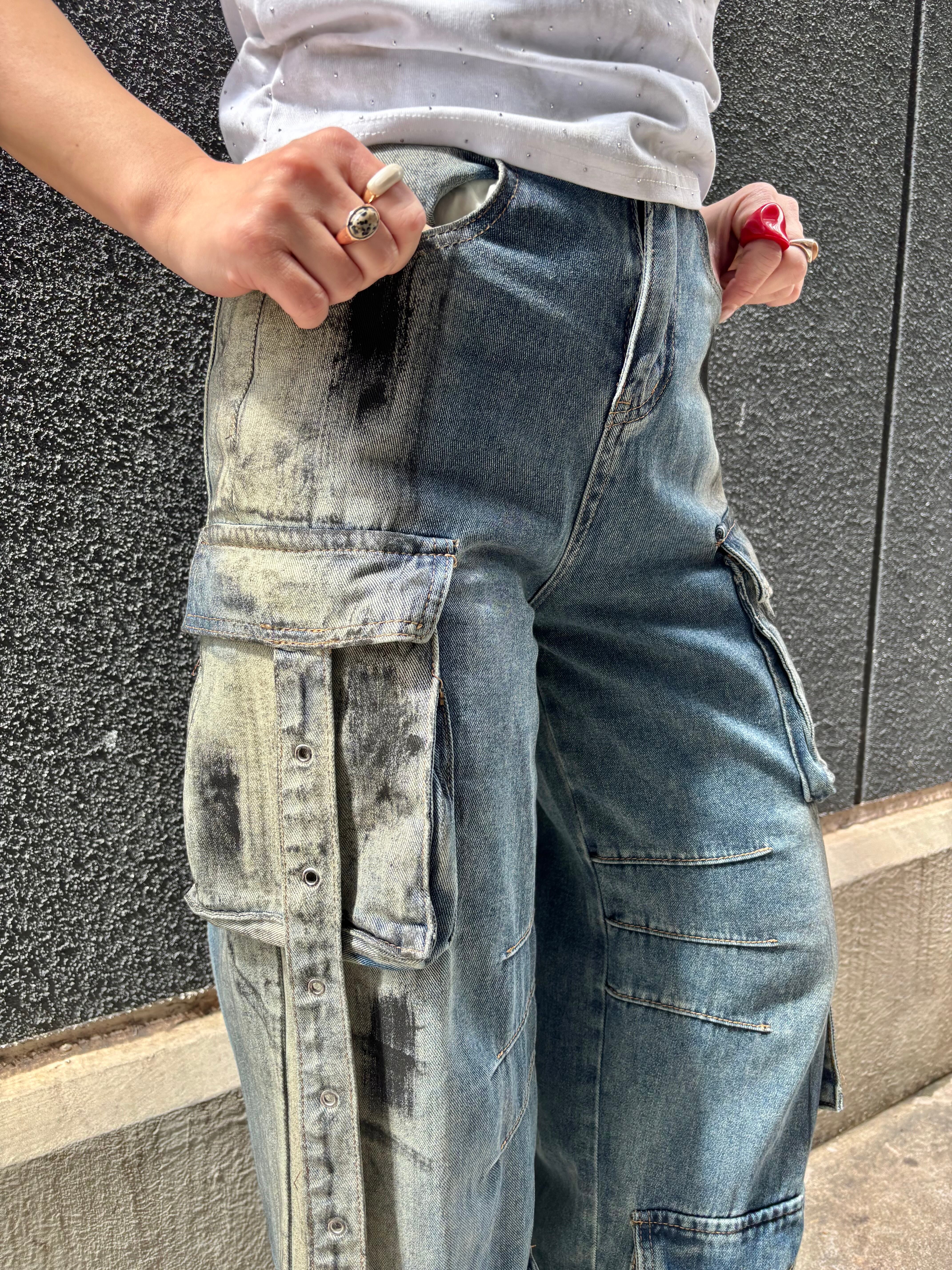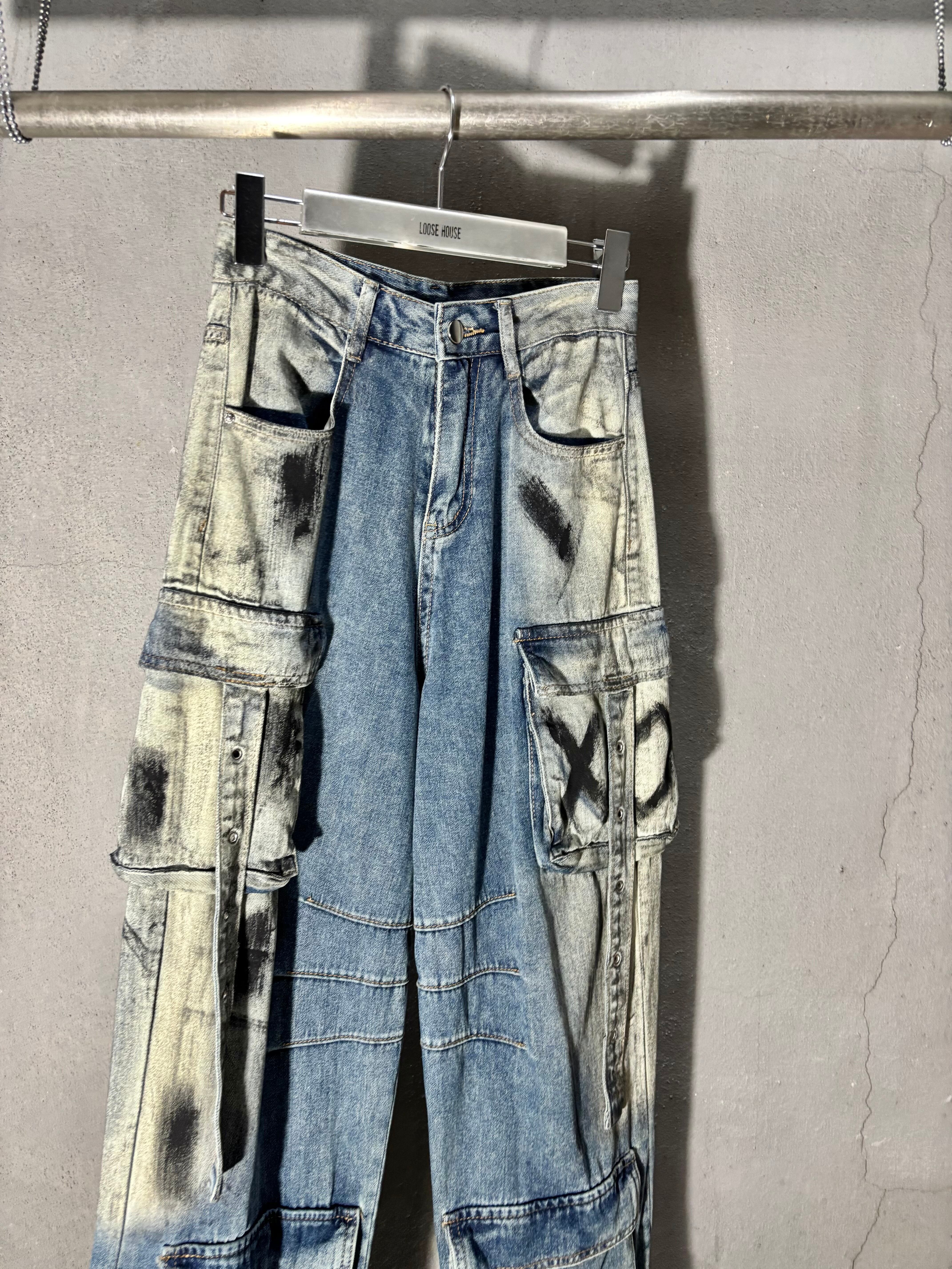 out pocket cargo design denim pants パンツ デニム アウトポケット カーゴ ペイント
