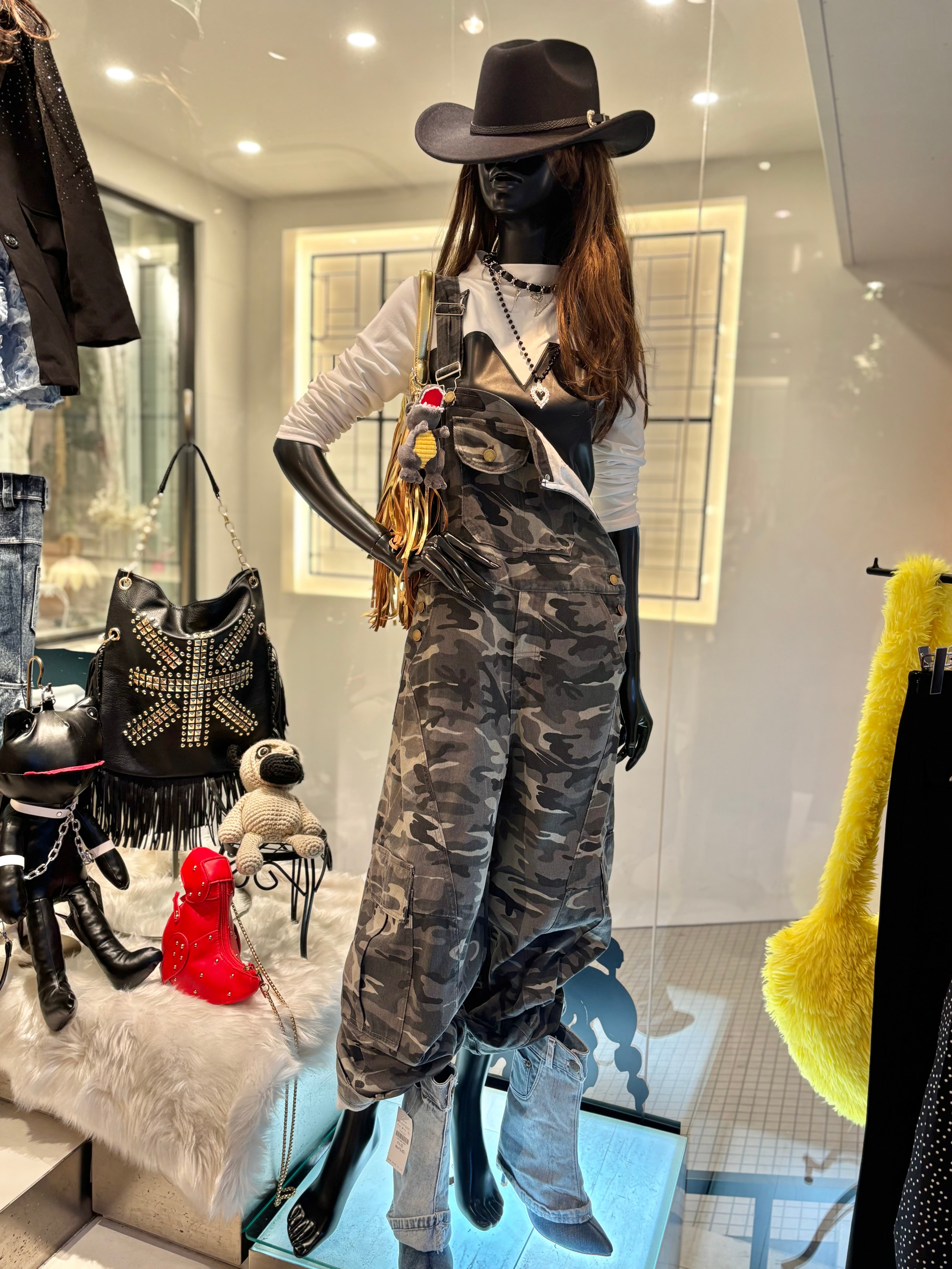 個性的なカモフラージュ柄がポイントで、スタイリングに一層のアクセントを加えます!