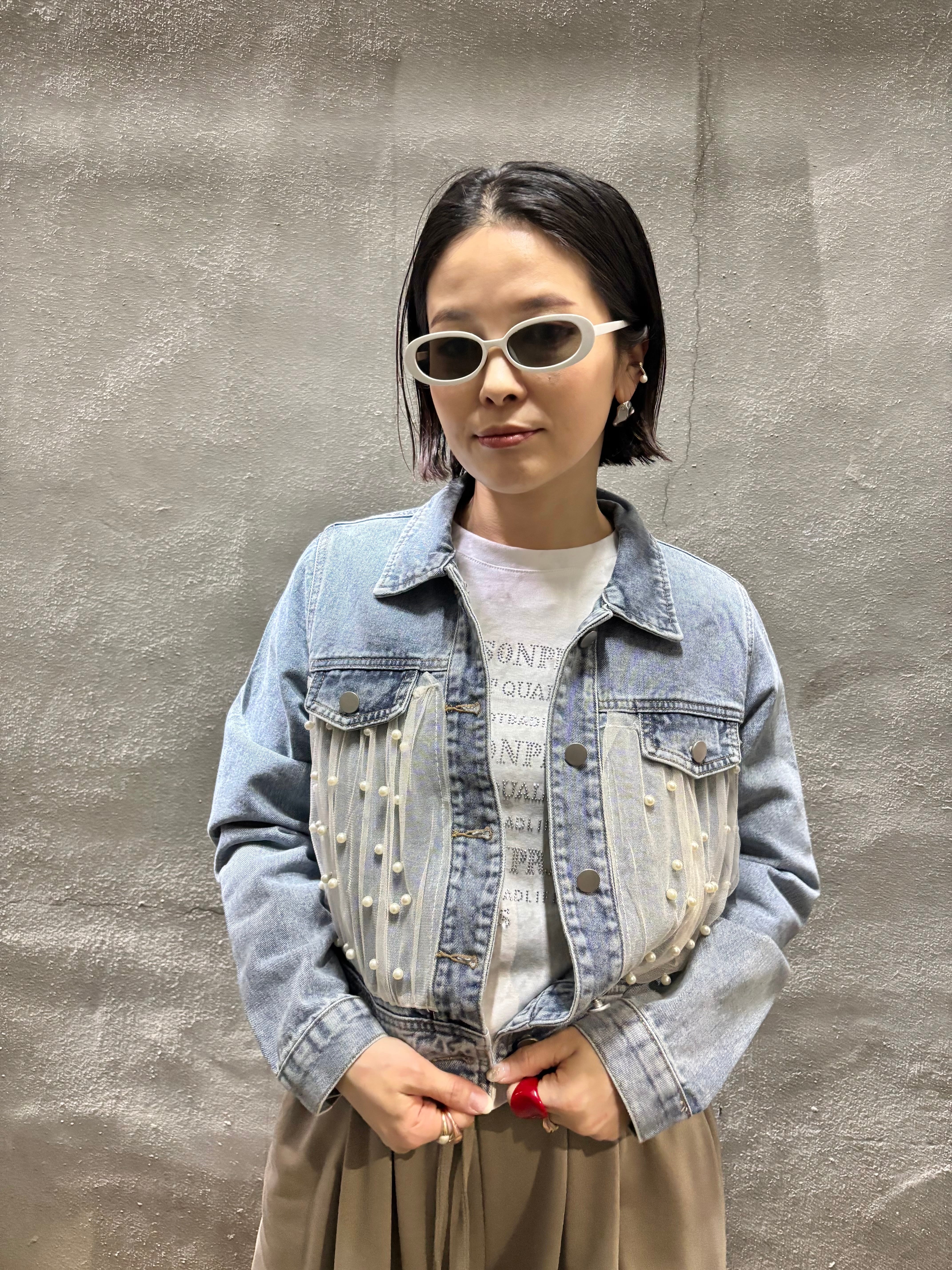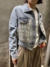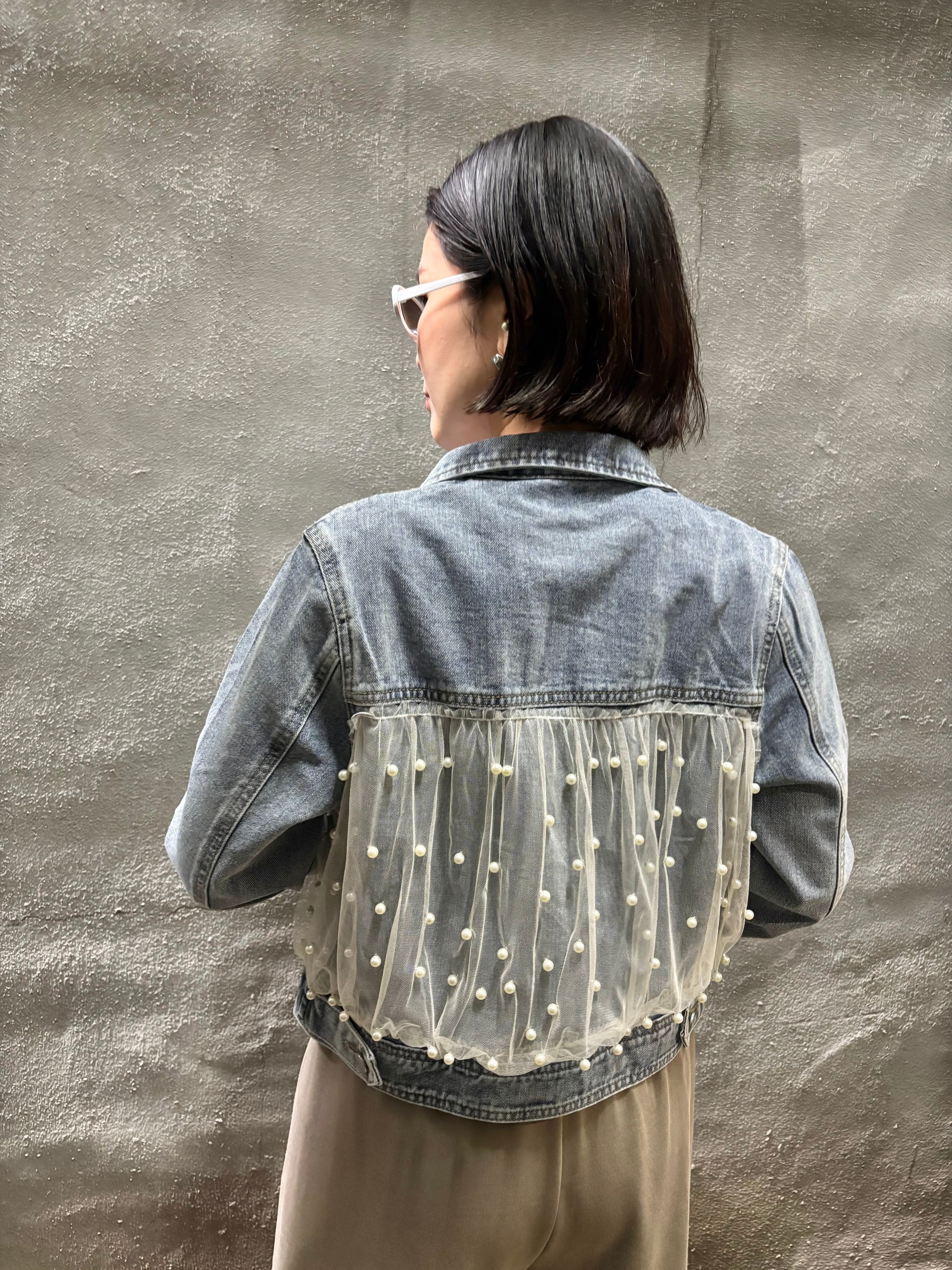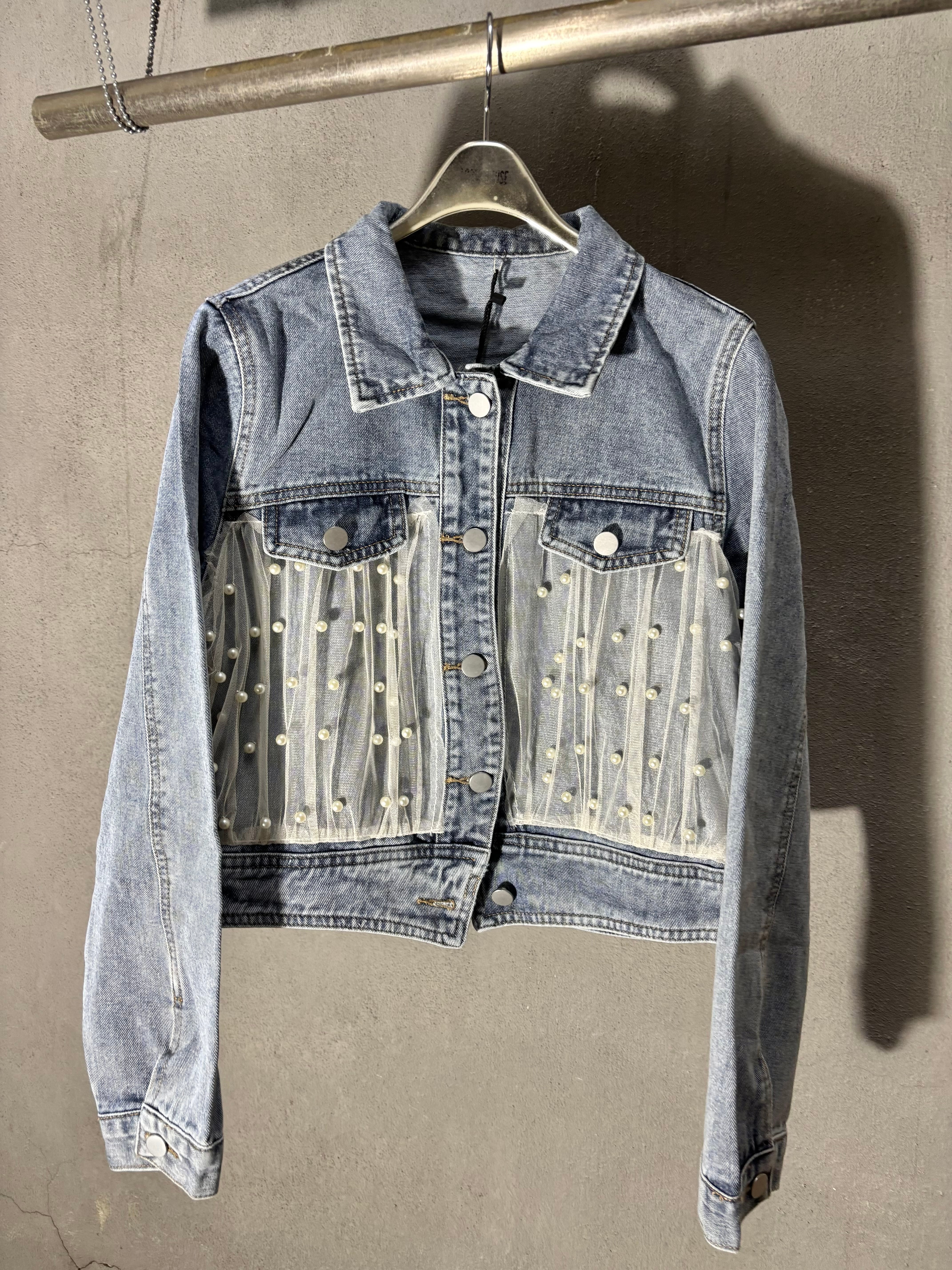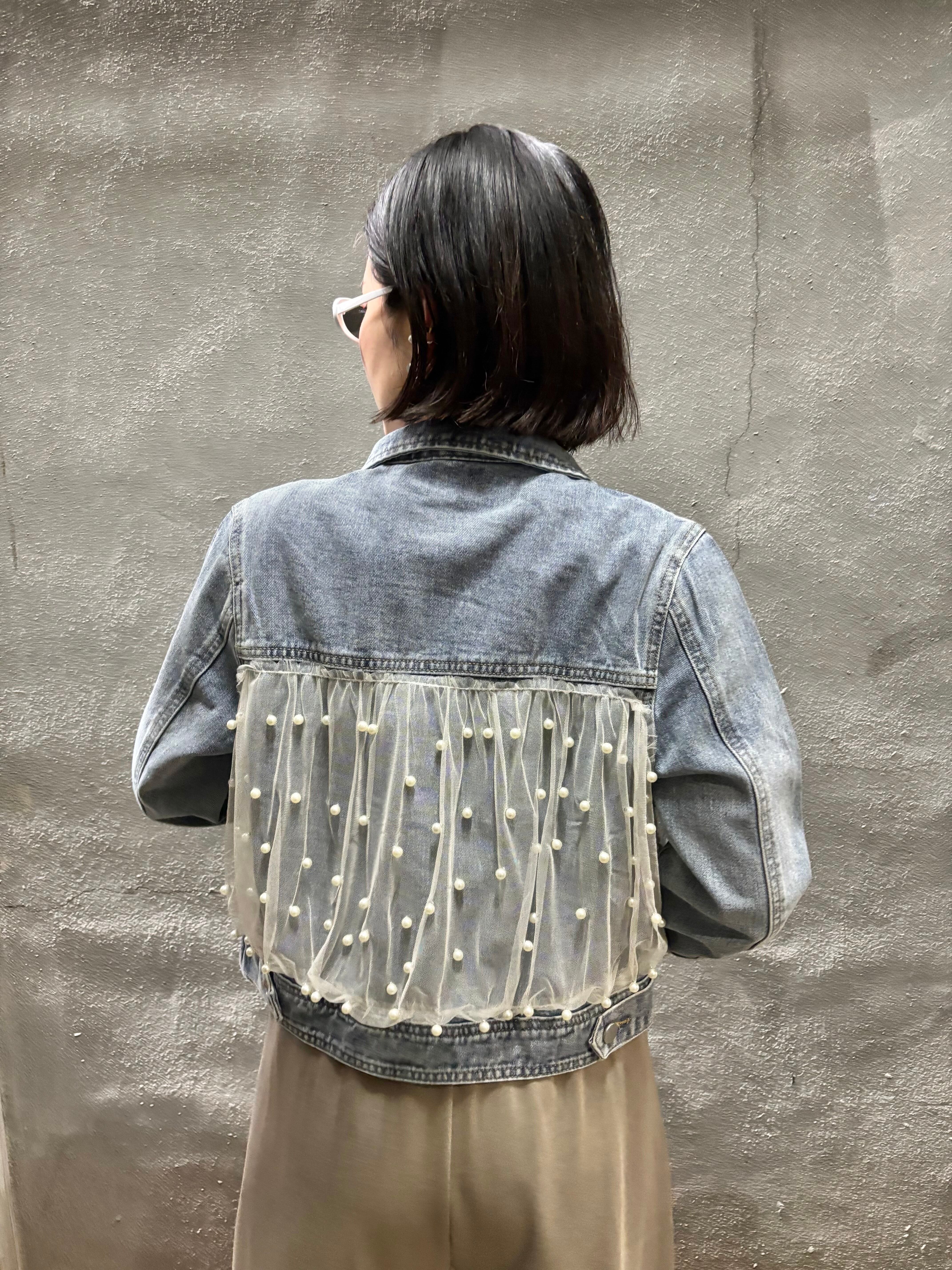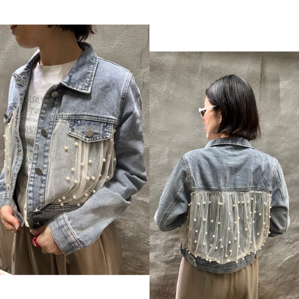 tulle × pearl design denim jacket デニム ジャケット Gジャン チュール パール