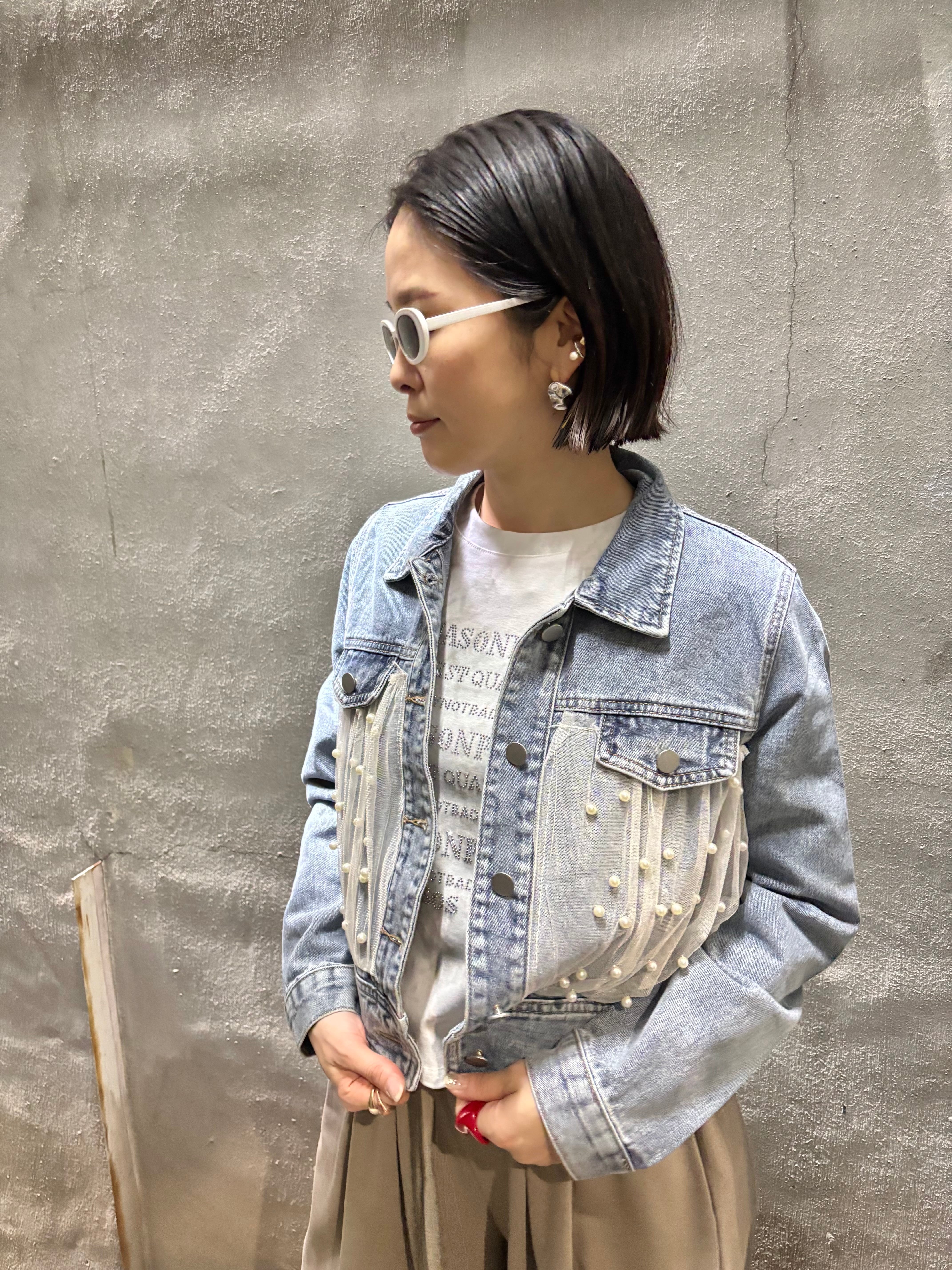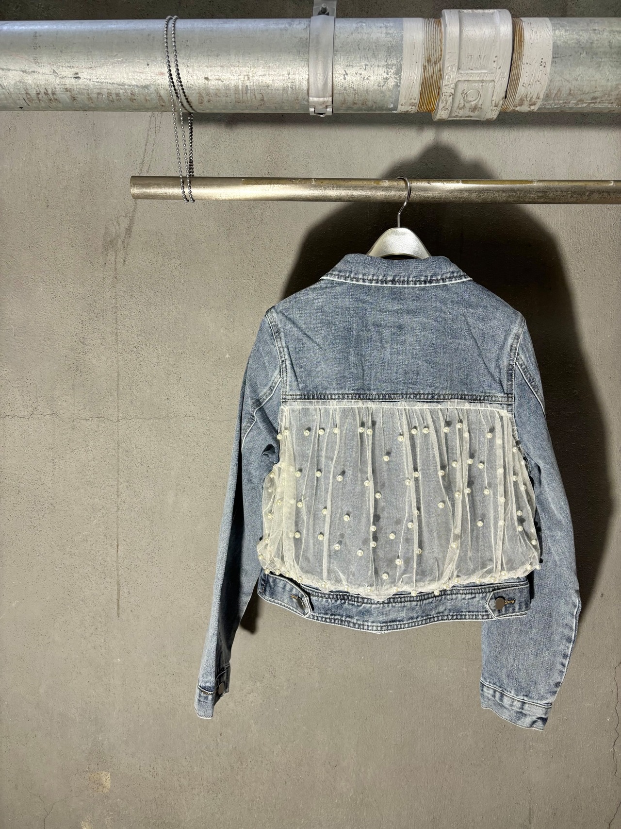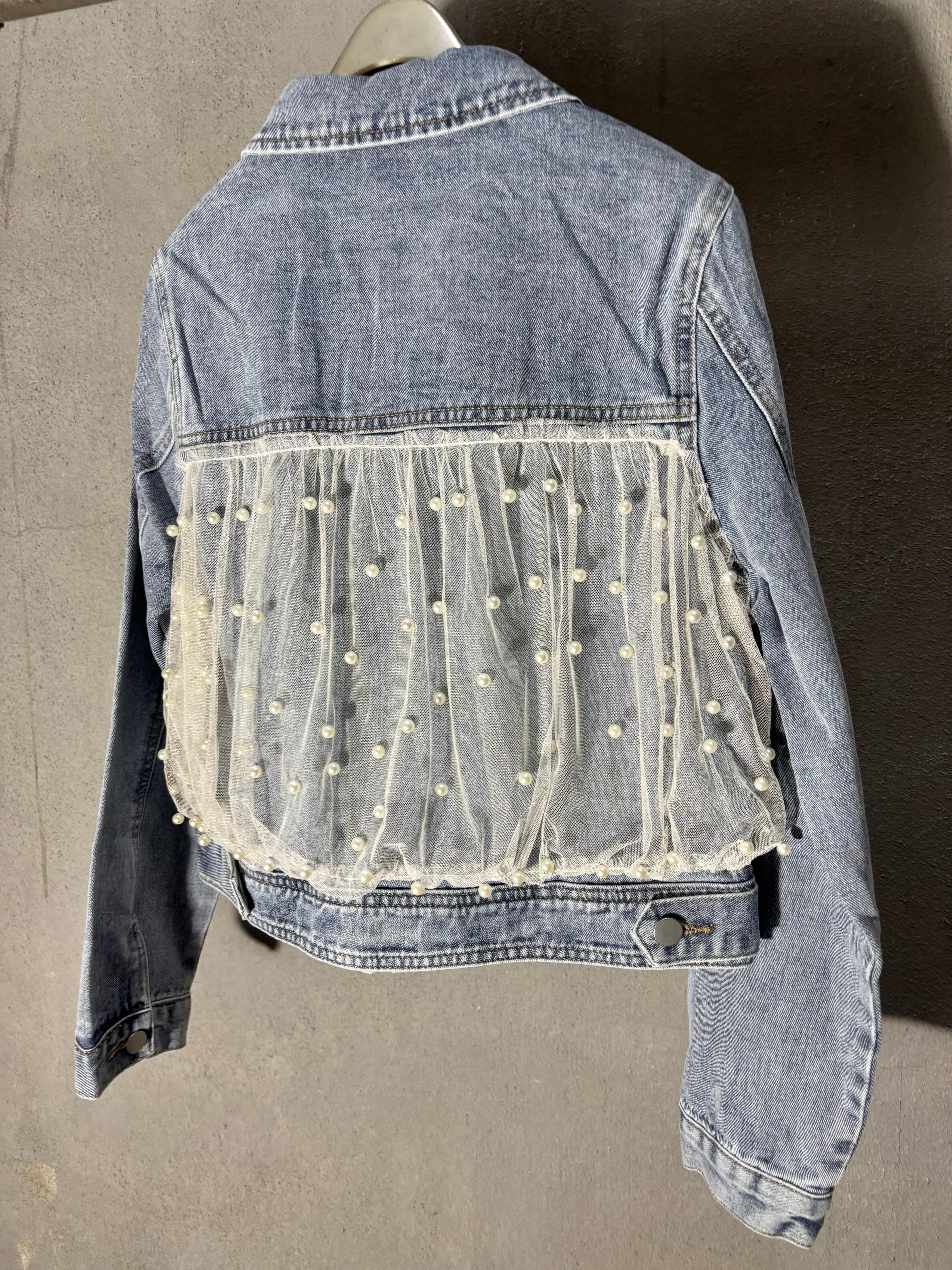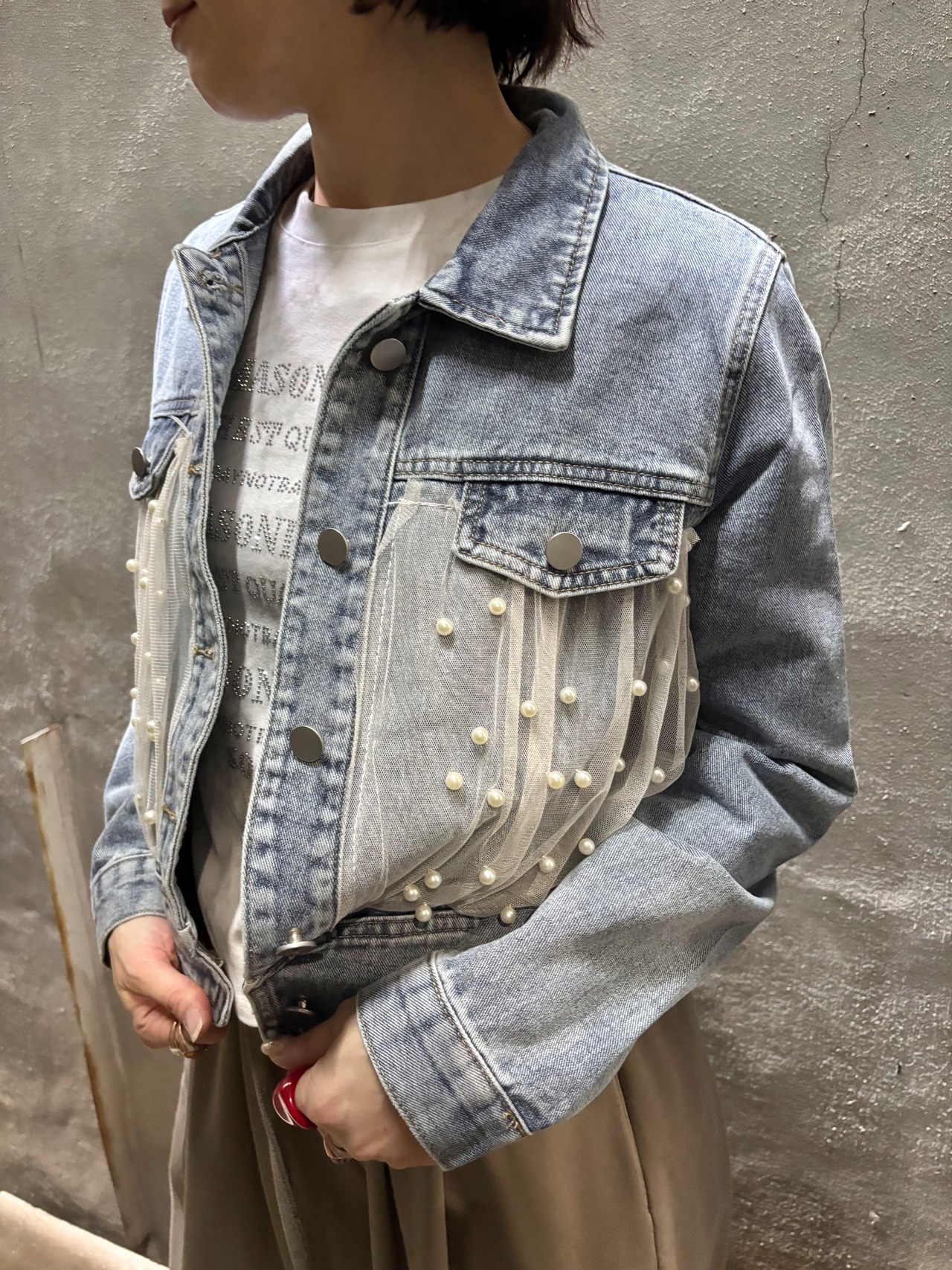 tulle × pearl design denim jacket デニム ジャケット Gジャン チュール パール