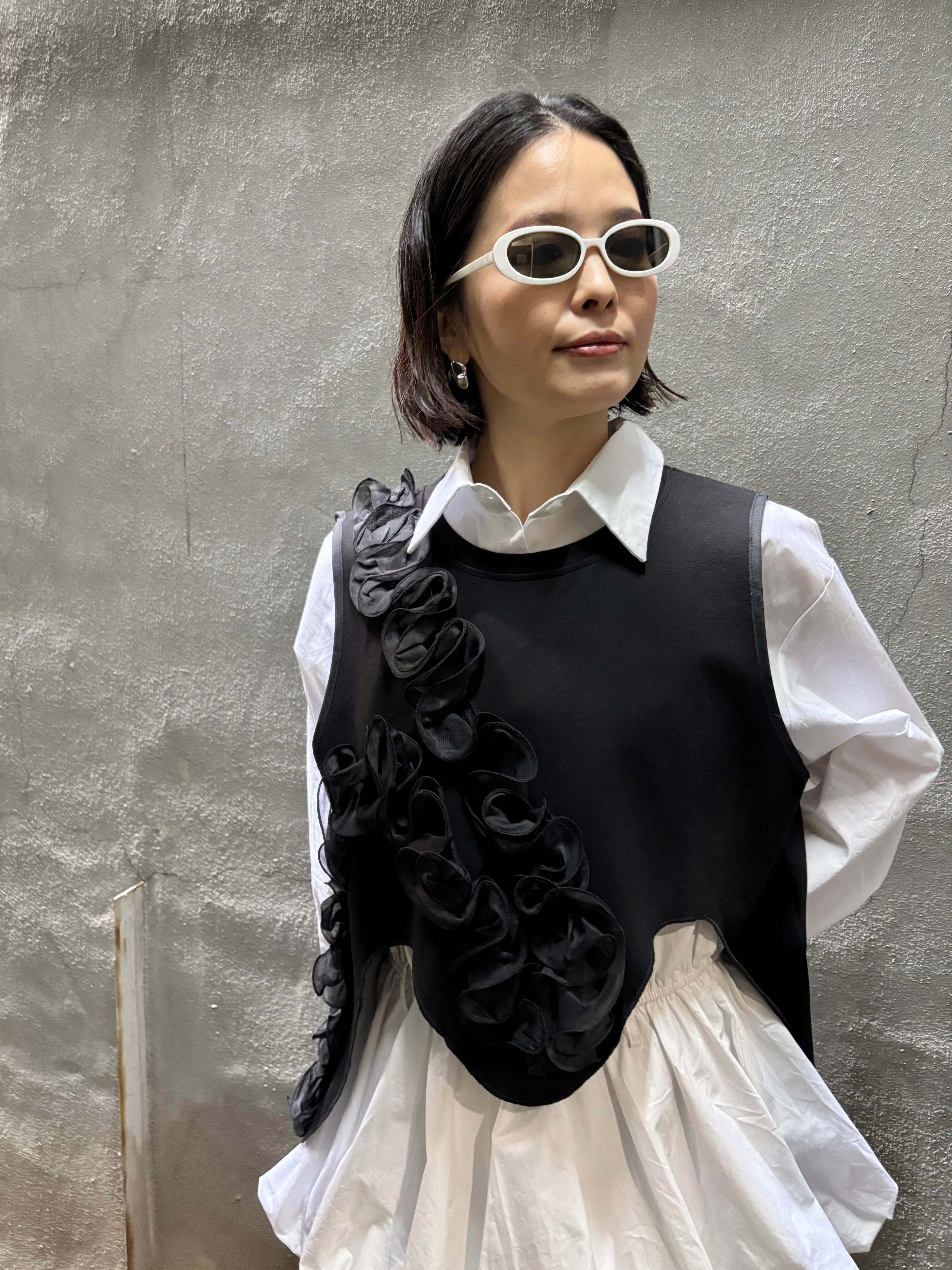 wire frill design sleeveless tops トップス フリル フラワー デザイントップス 重ね着