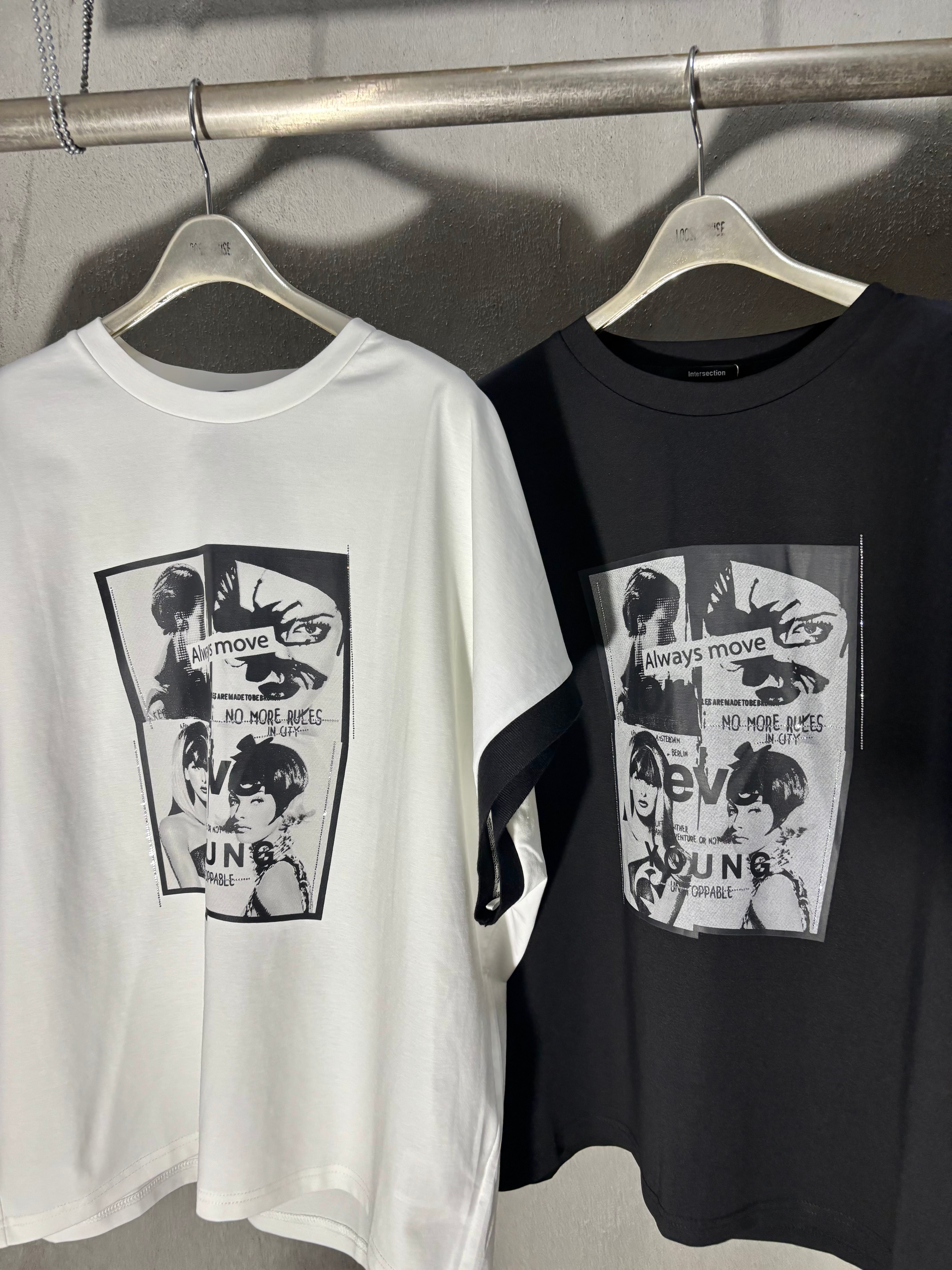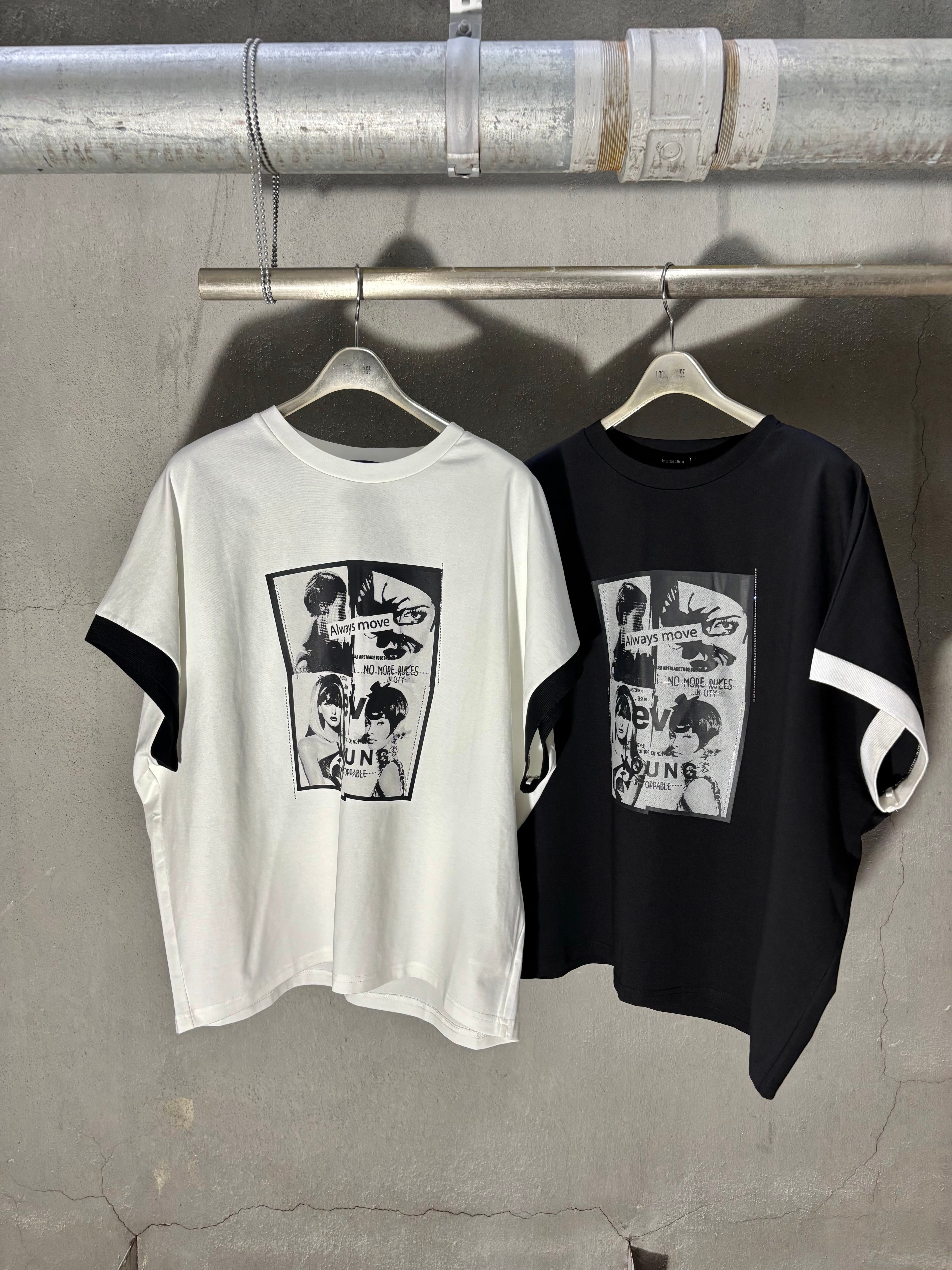girl print bi-color dolman sleeve design tops トップス ドルマン バイカラー プリント