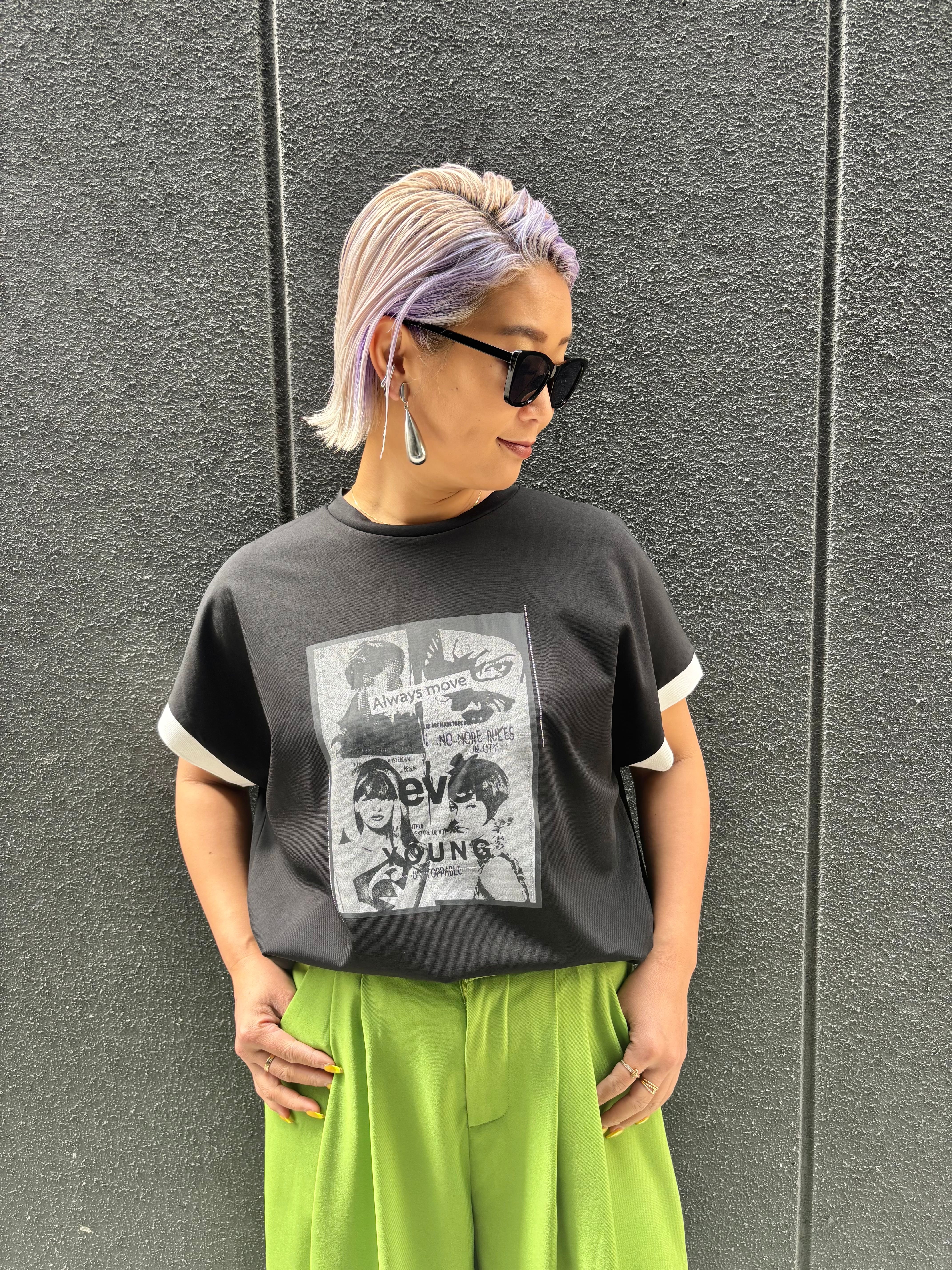 GIRLプリントのバイカラートップスは、Tシャツ感覚で気軽に楽しめる一枚♪