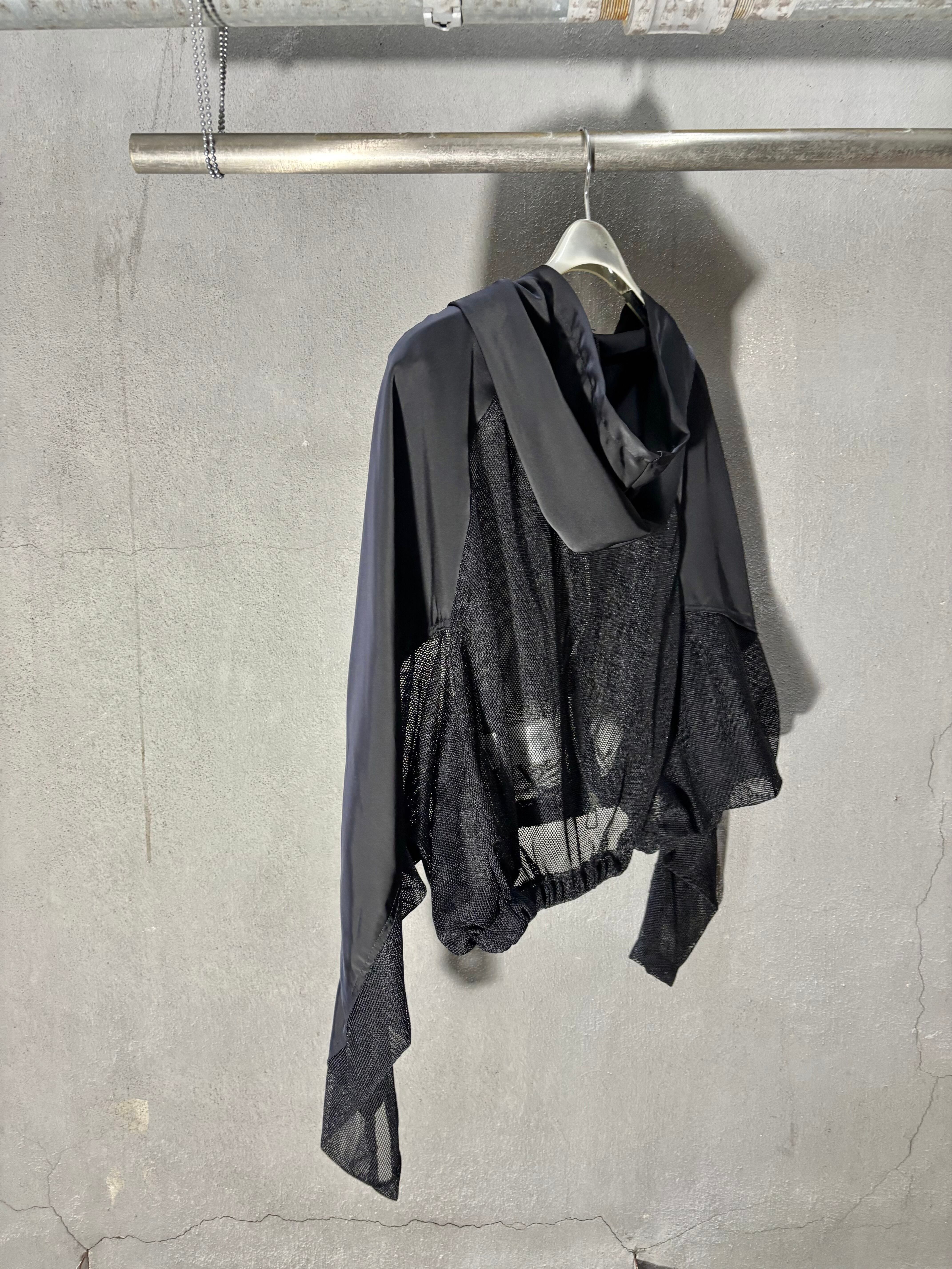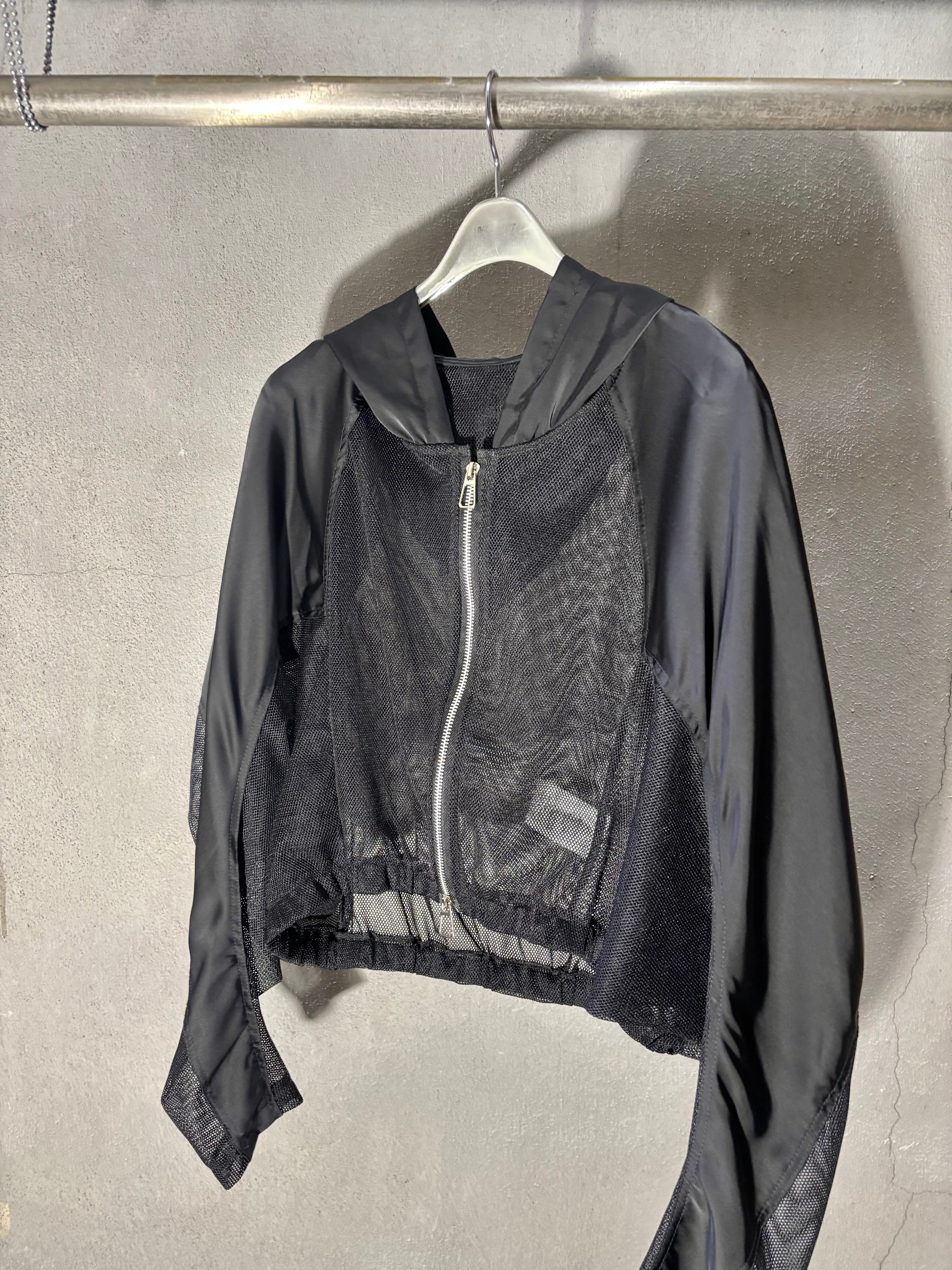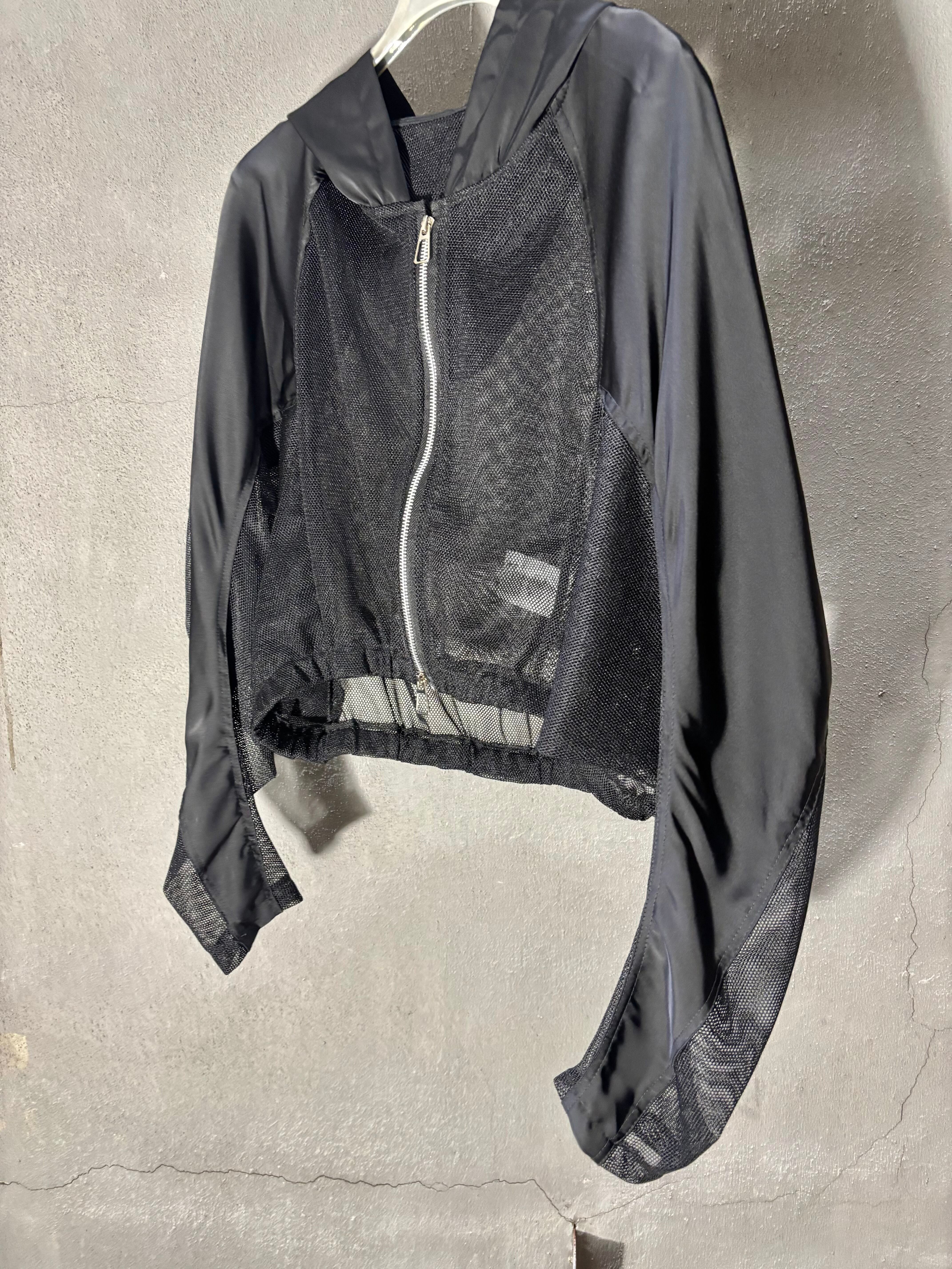 black mesh zip up hoodie jacket ジャケット フーディー ジップアップ メッシュ 黒 ブラック