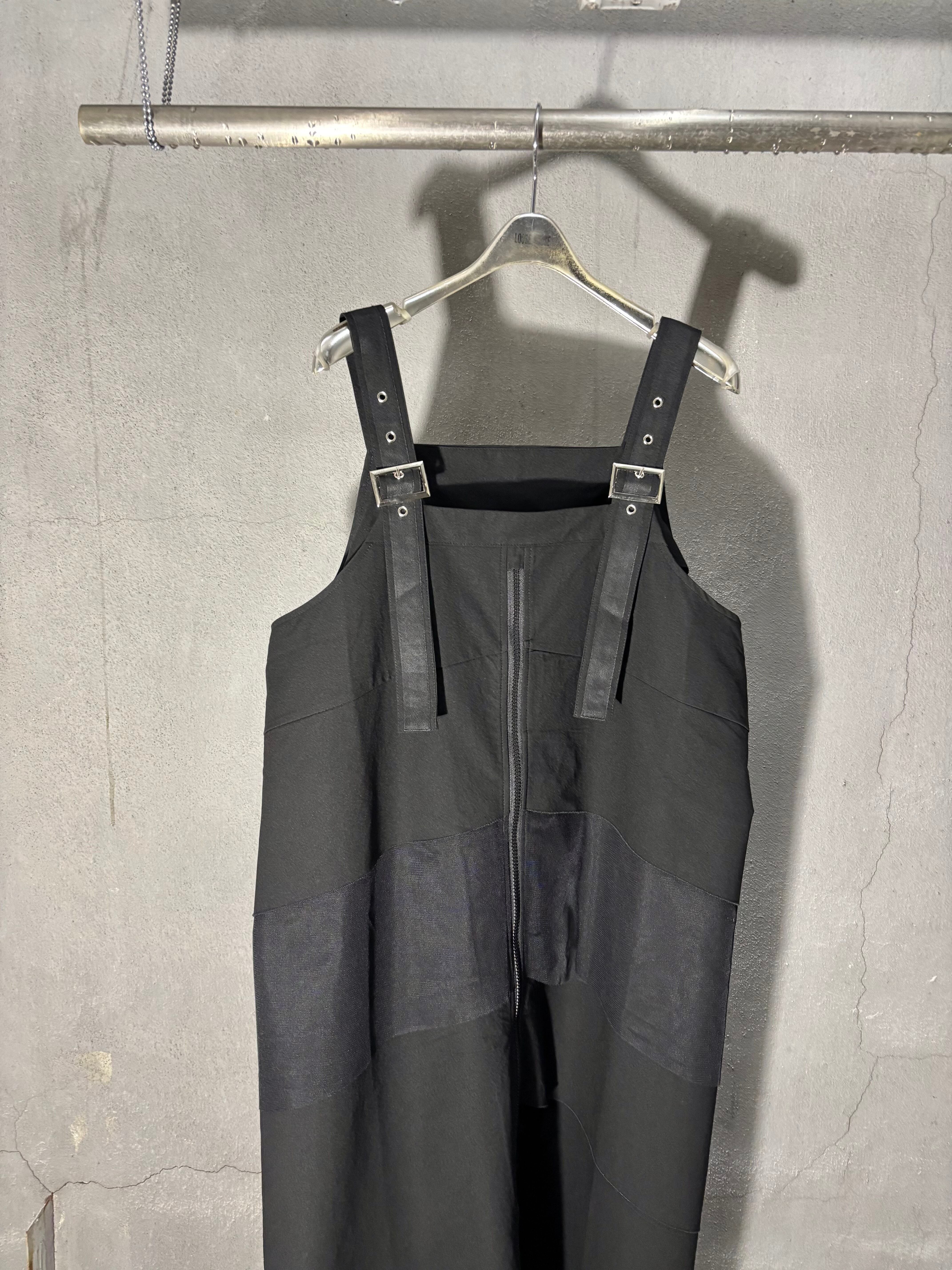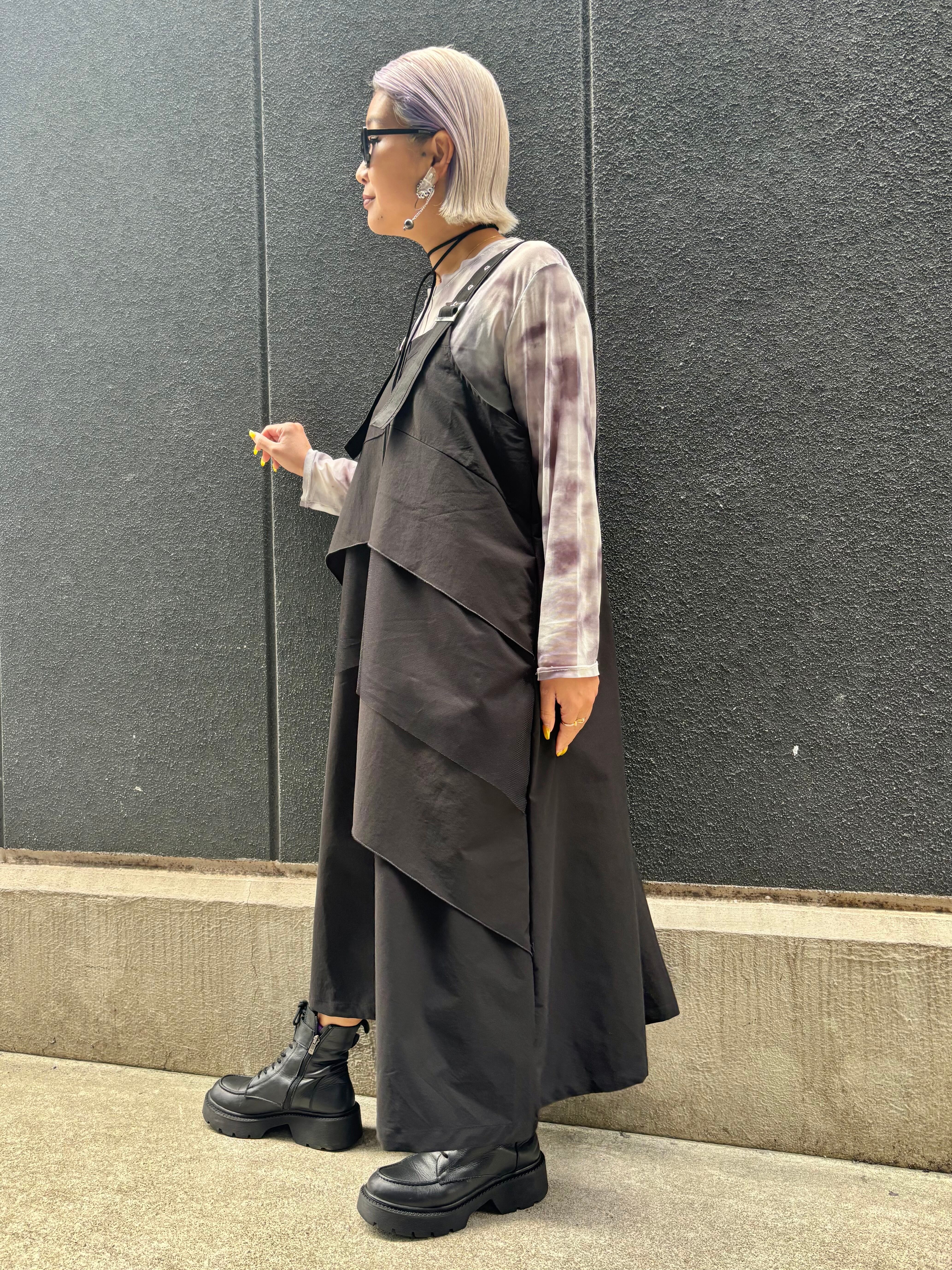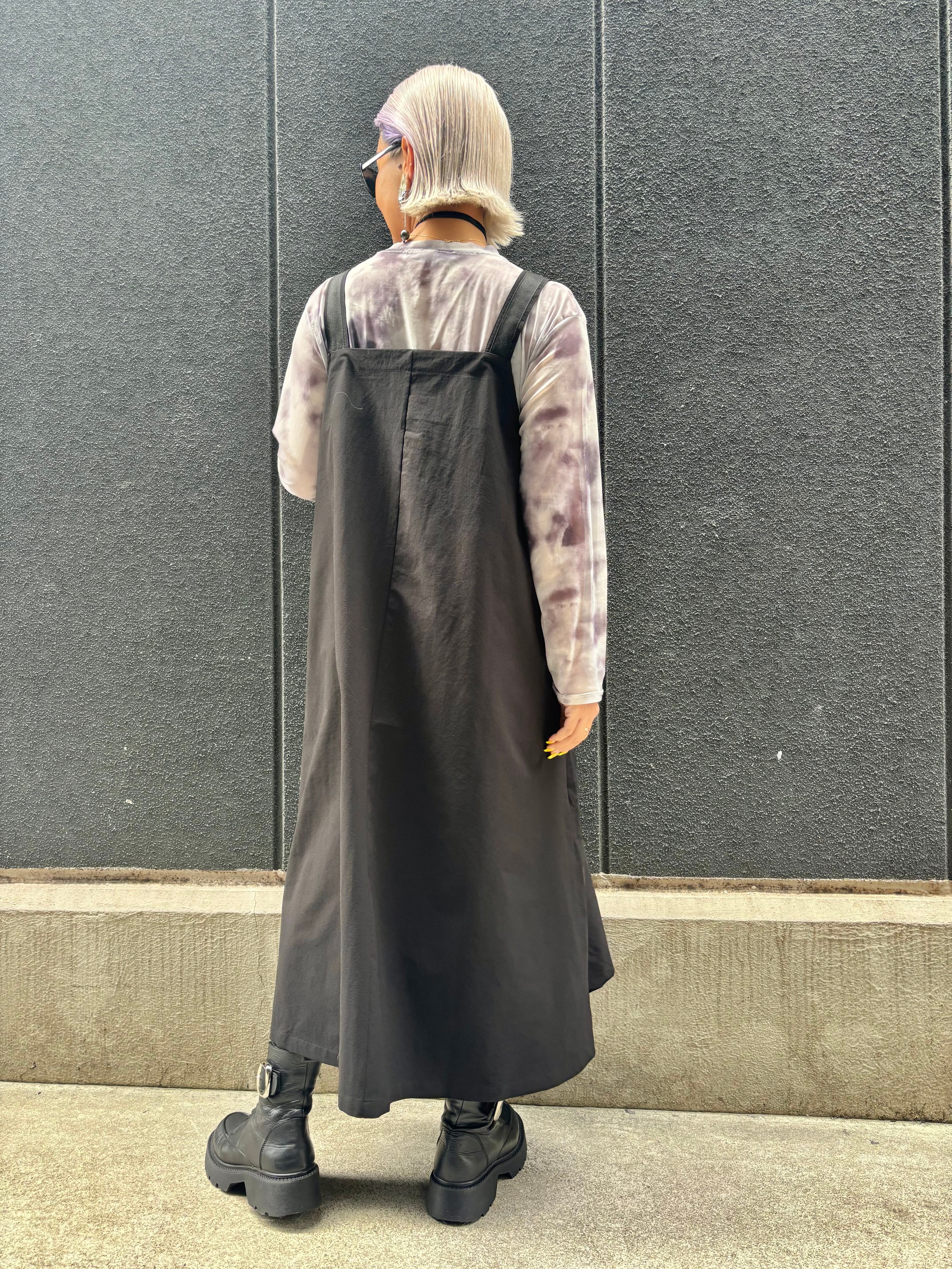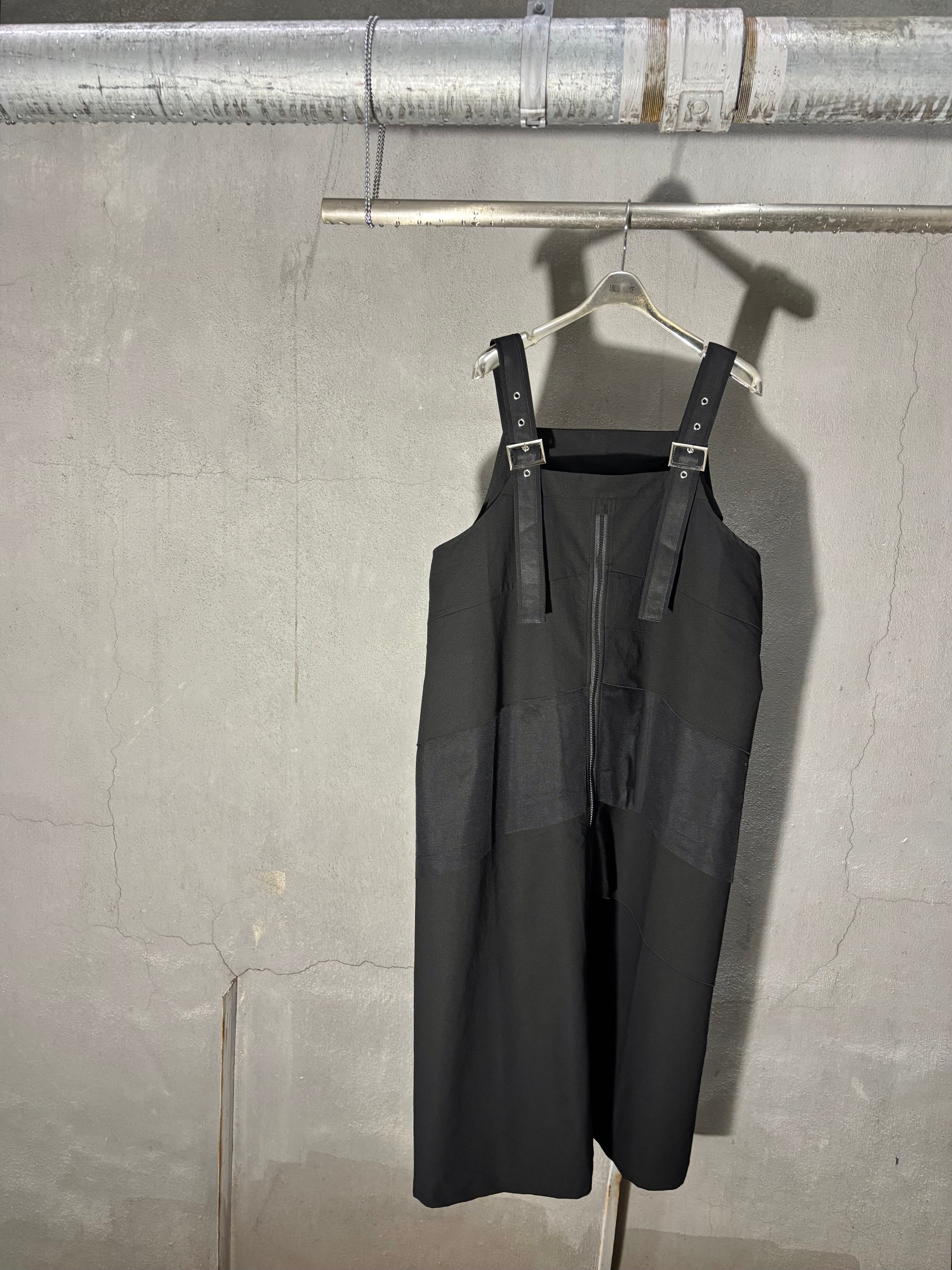different fabrics mix front zipper design jumper skirt スカート ジャンパースカート 異素材切替 重ね着