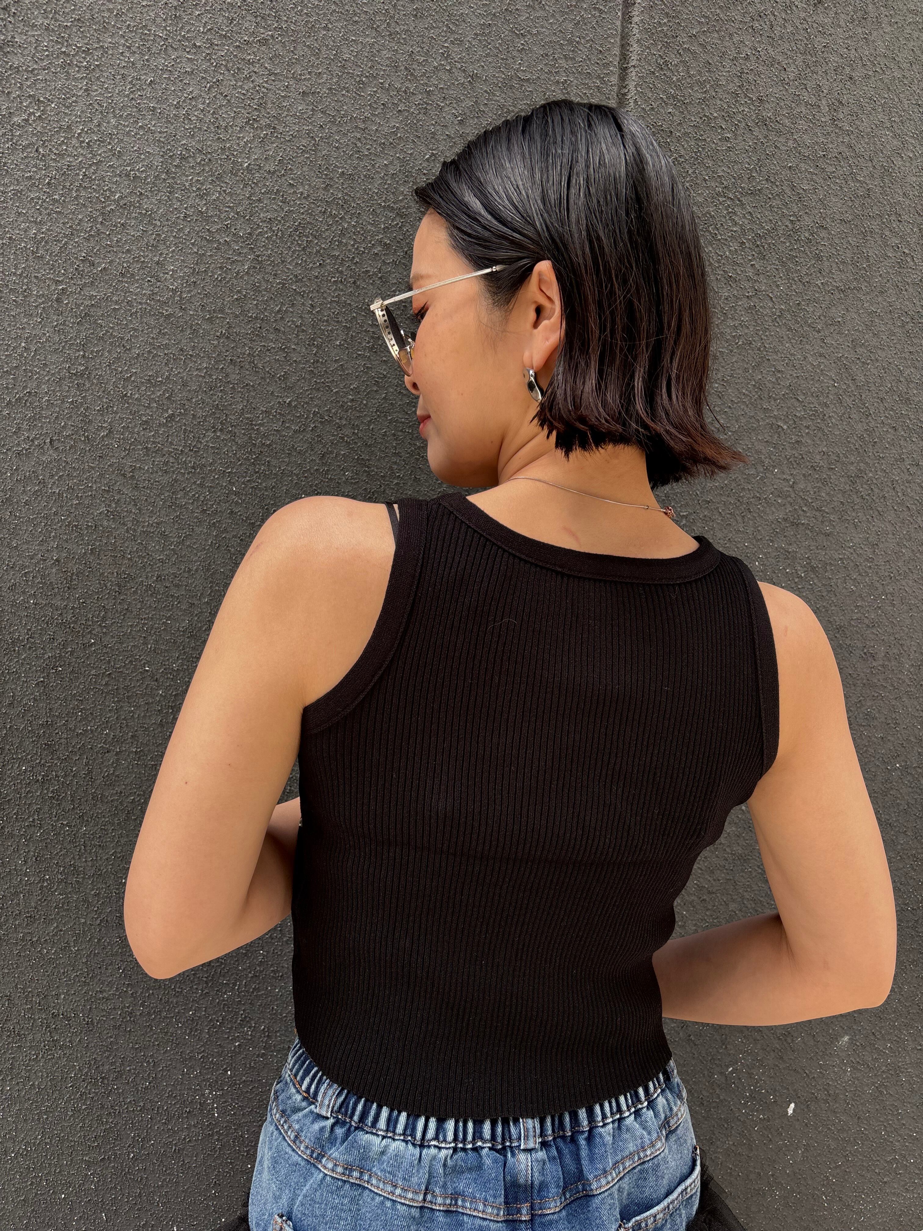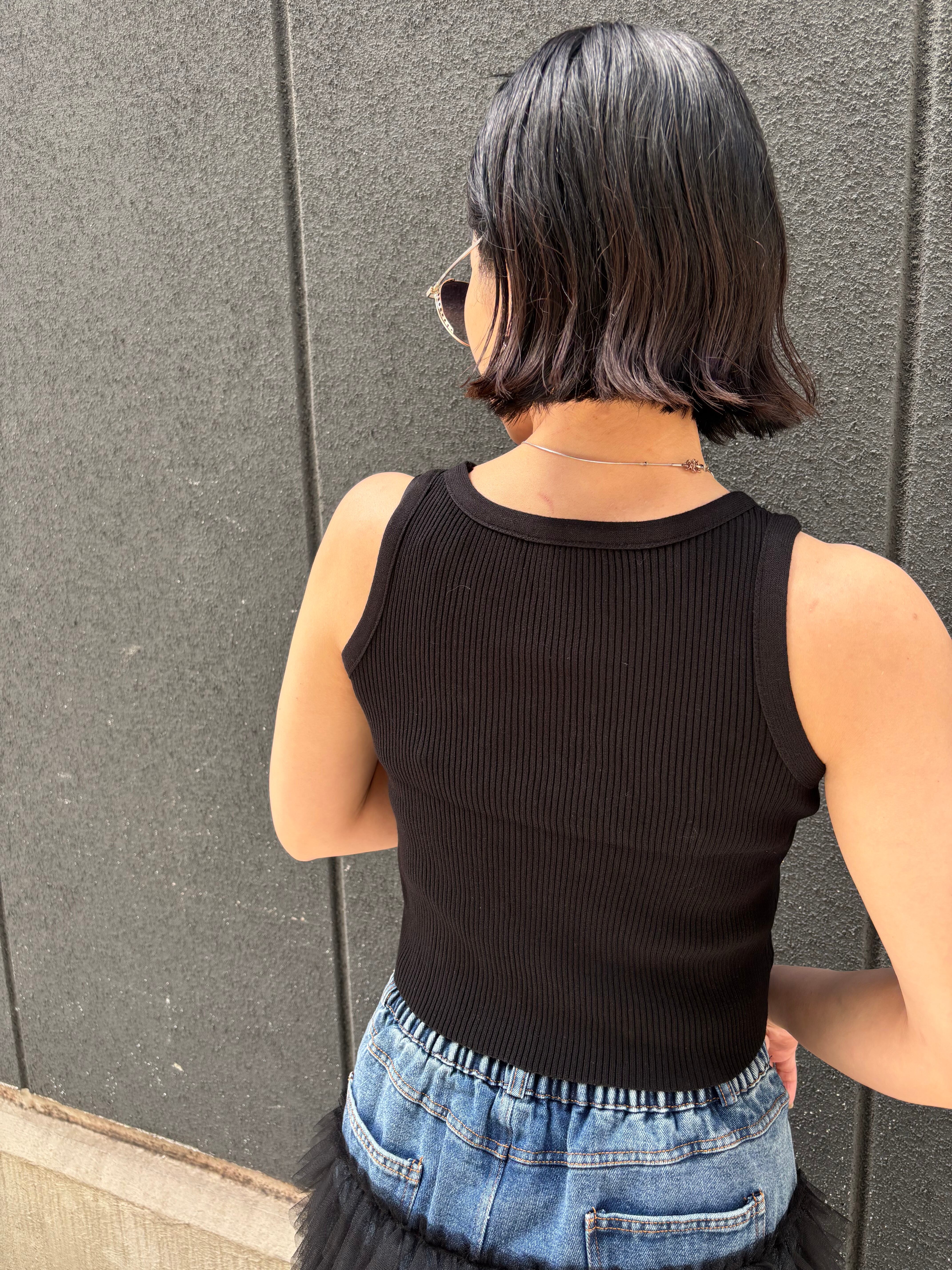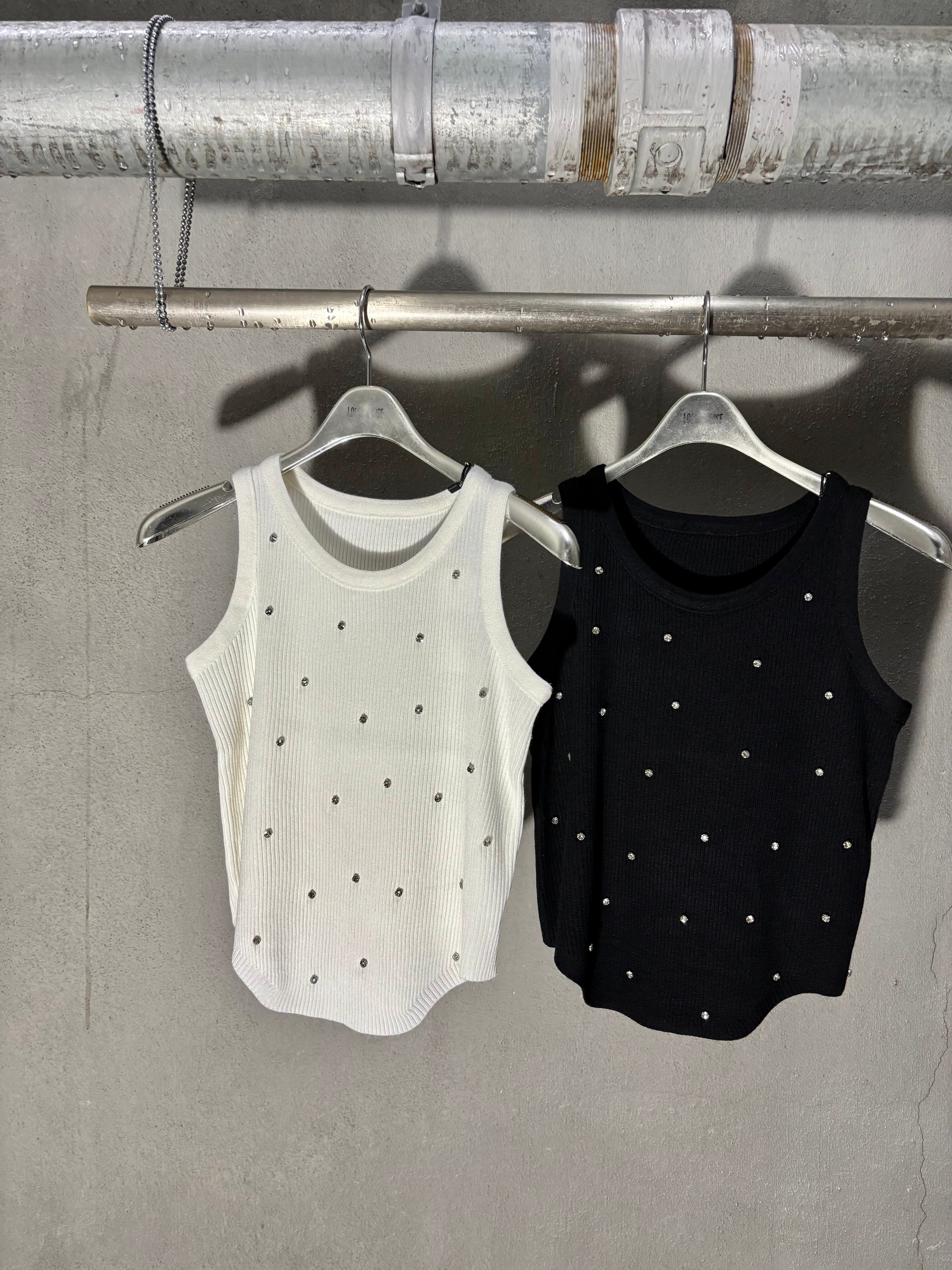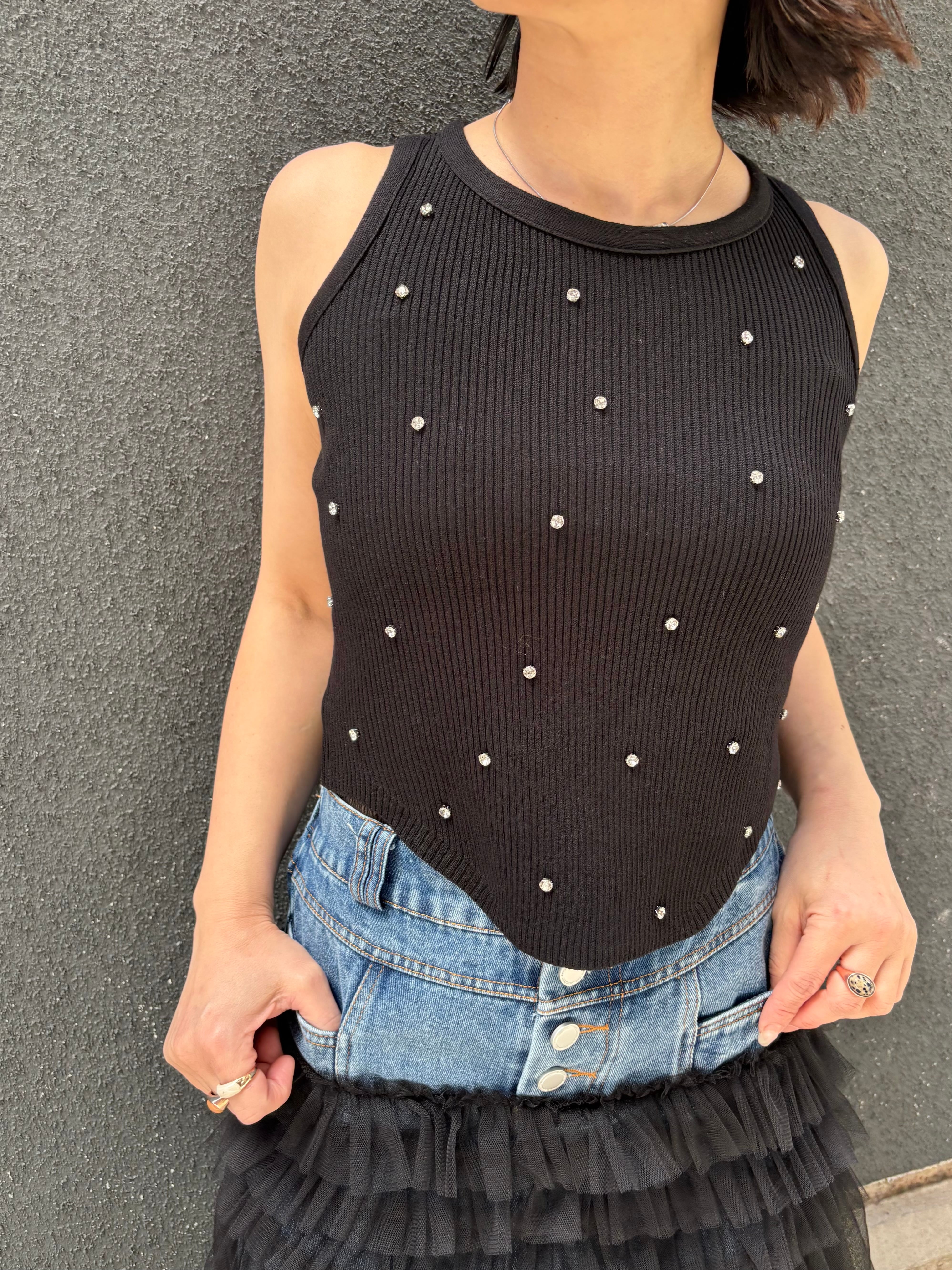 rib knit stone bijou tops トップス タンクトップ チビタンク ストーン ビジュー