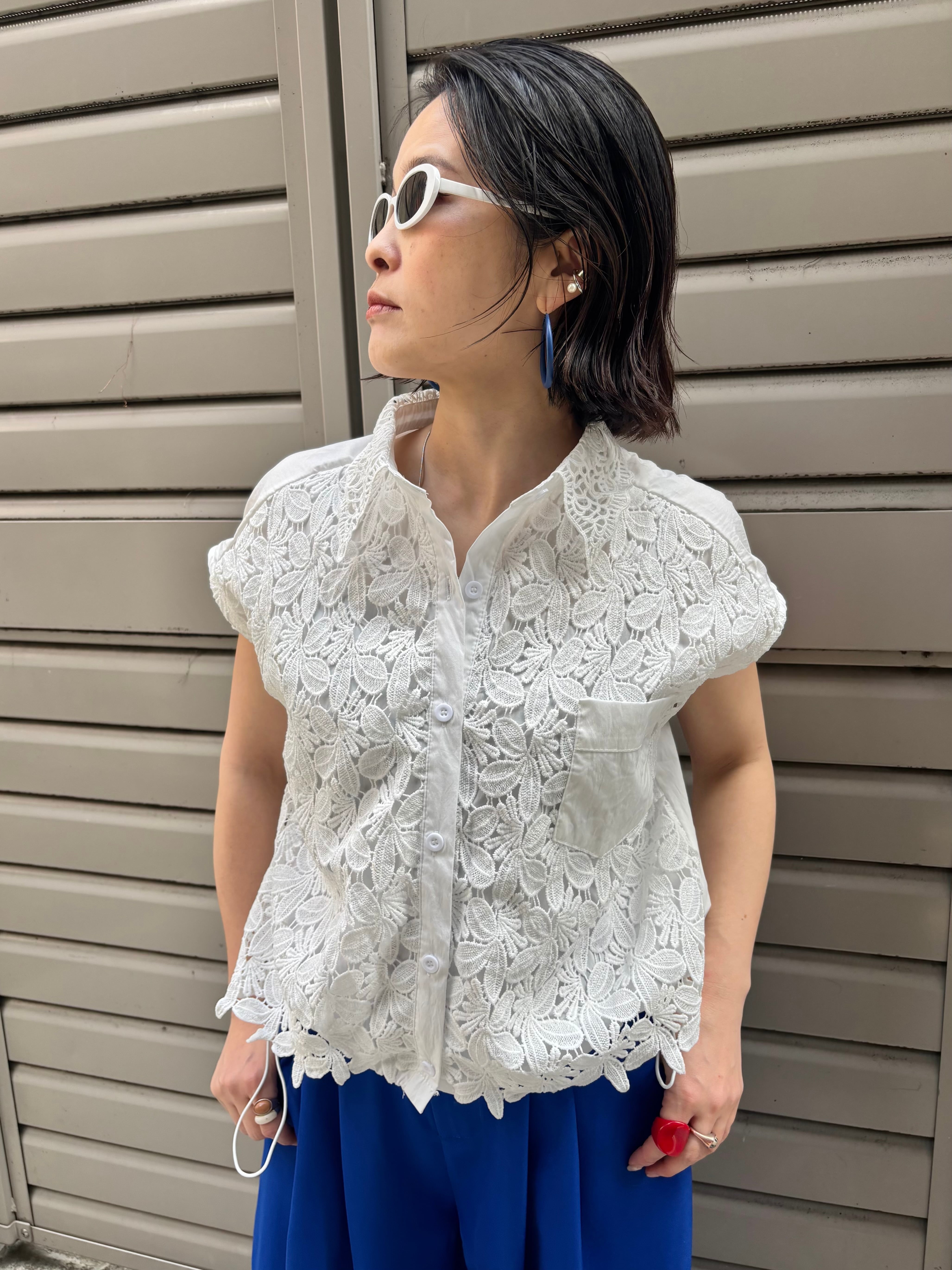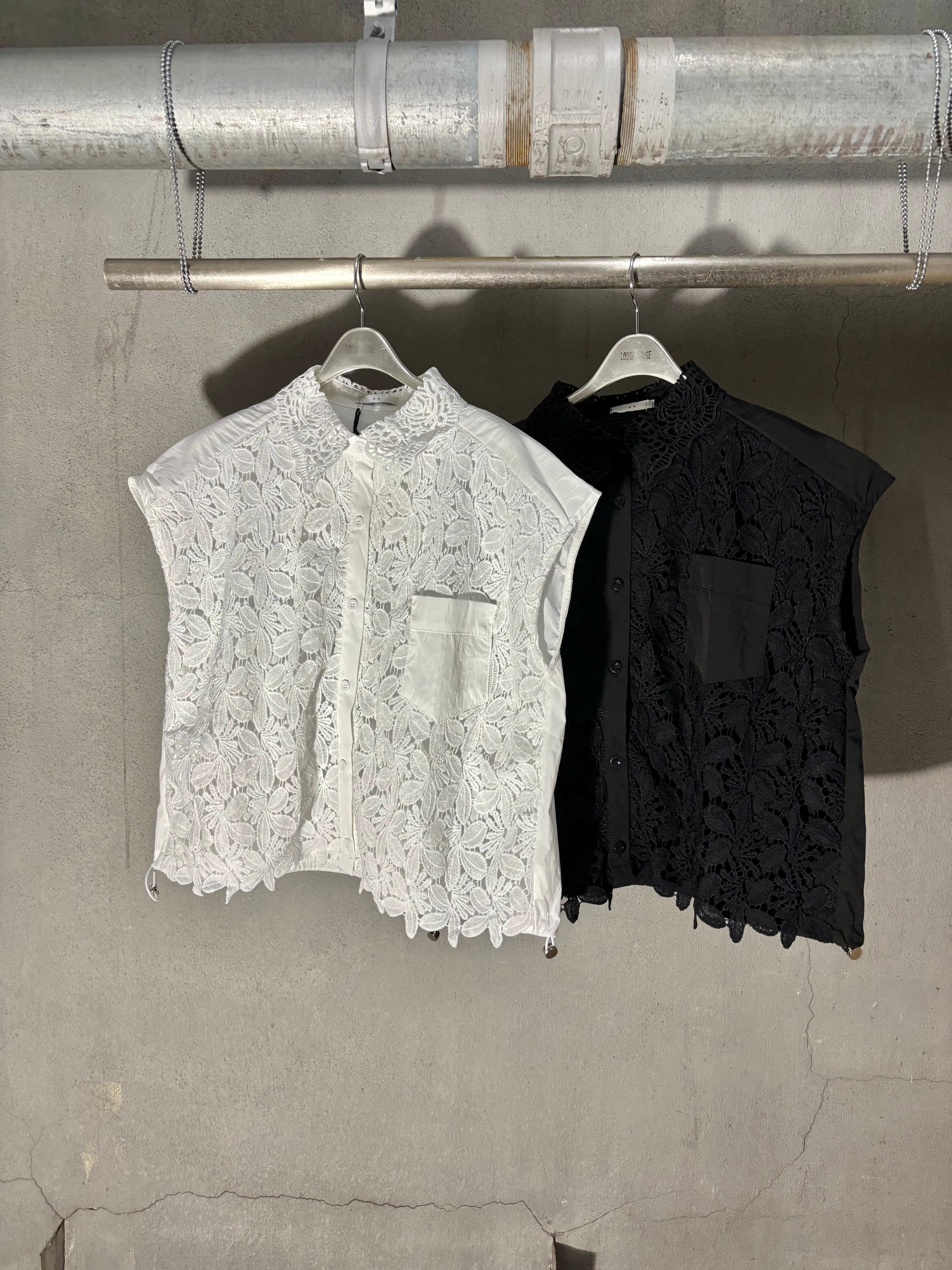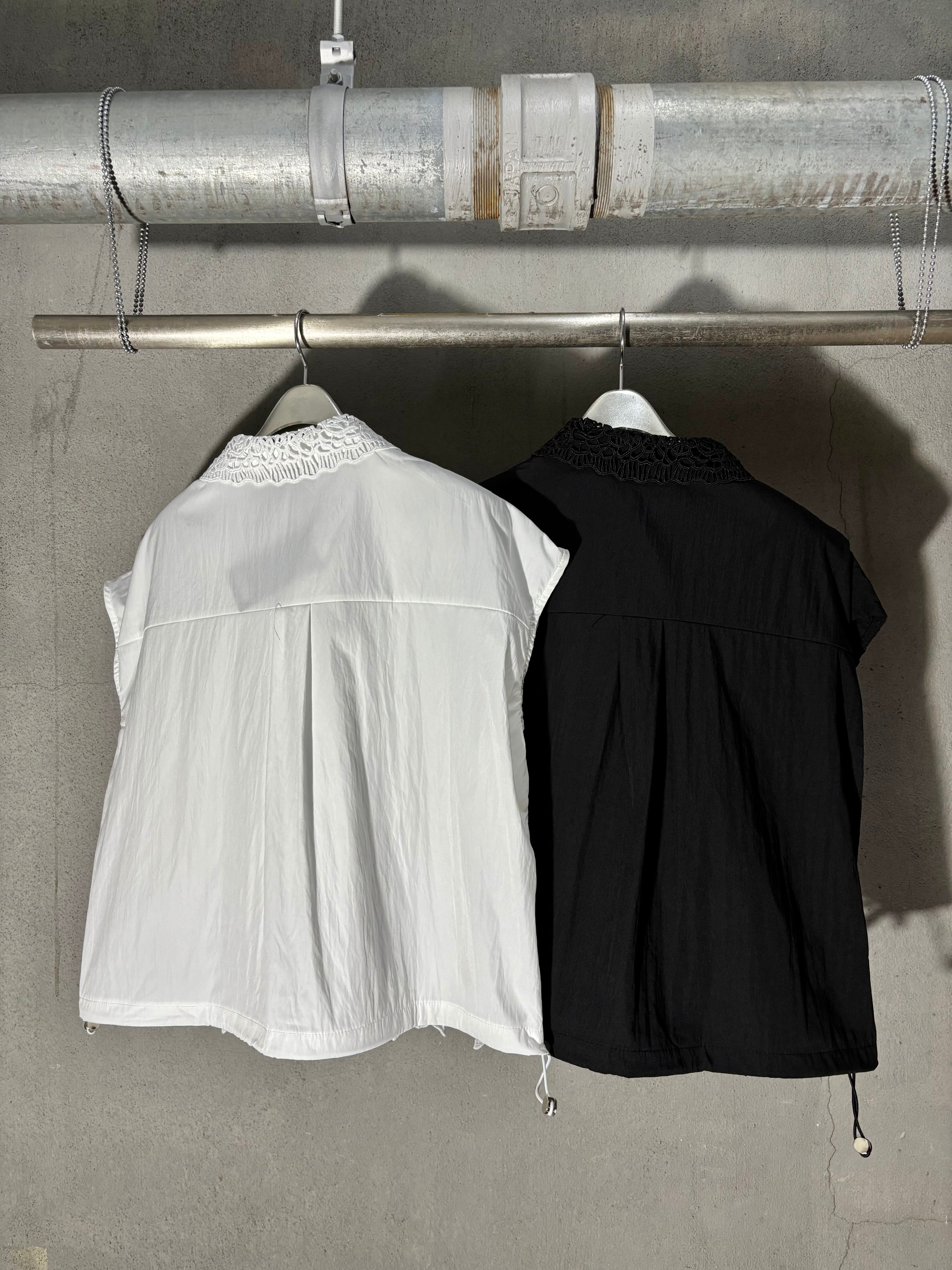 lace front sleeveless drawstring code design tops トップス レース ドローコード ノースリーブ
