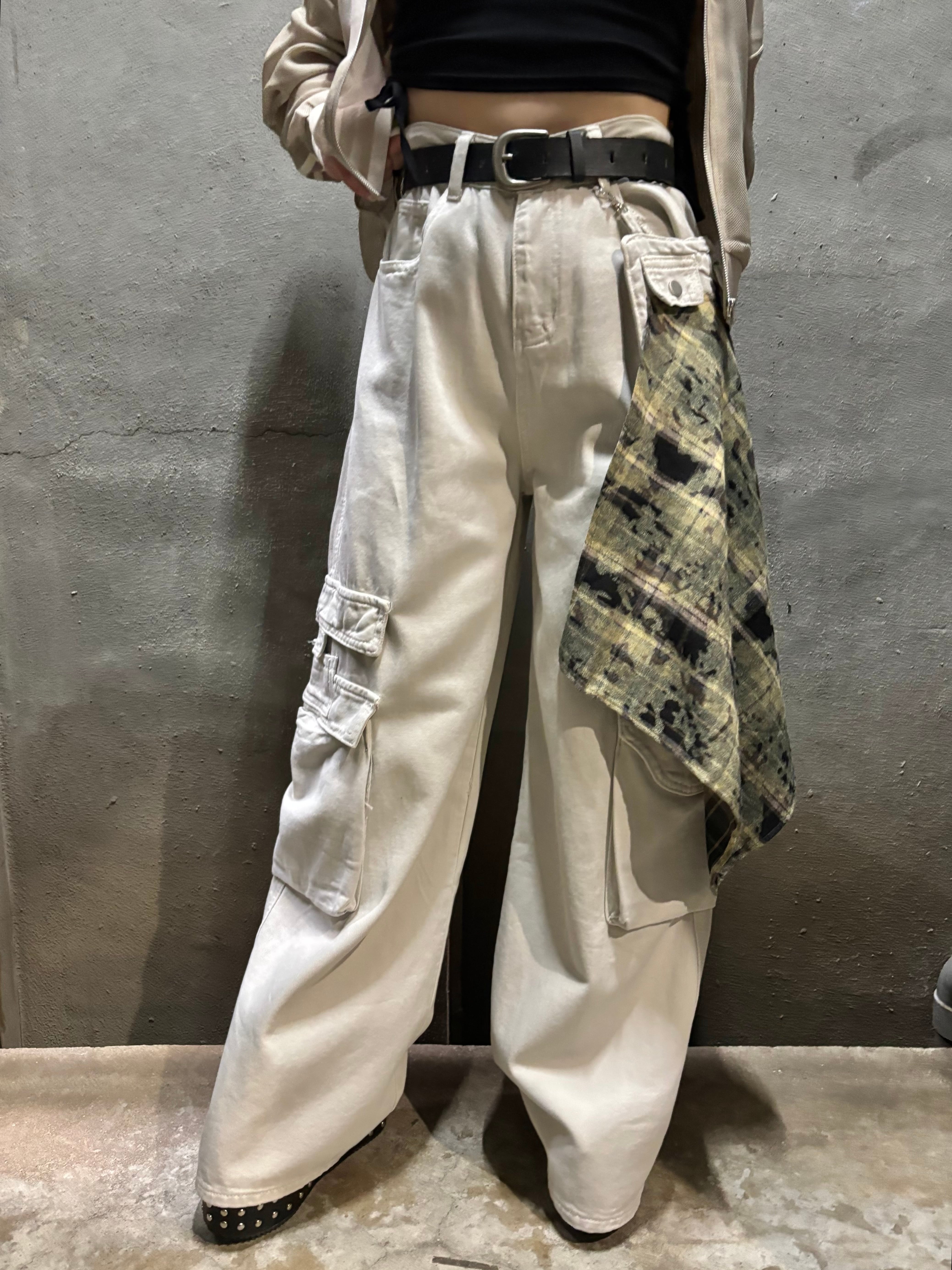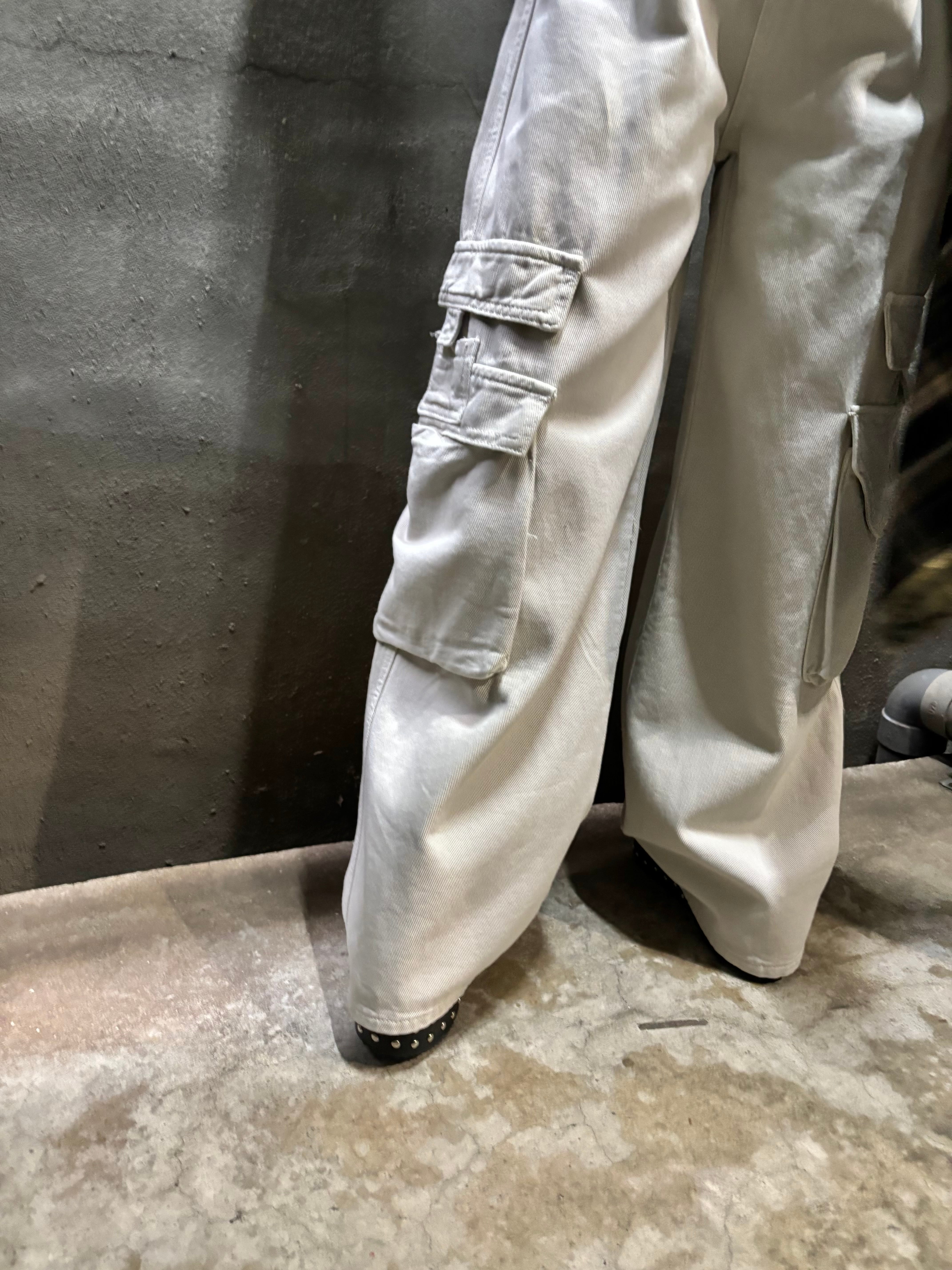 オフホワイトカラーのデザインポケットカーゴスタイルパンツ♪