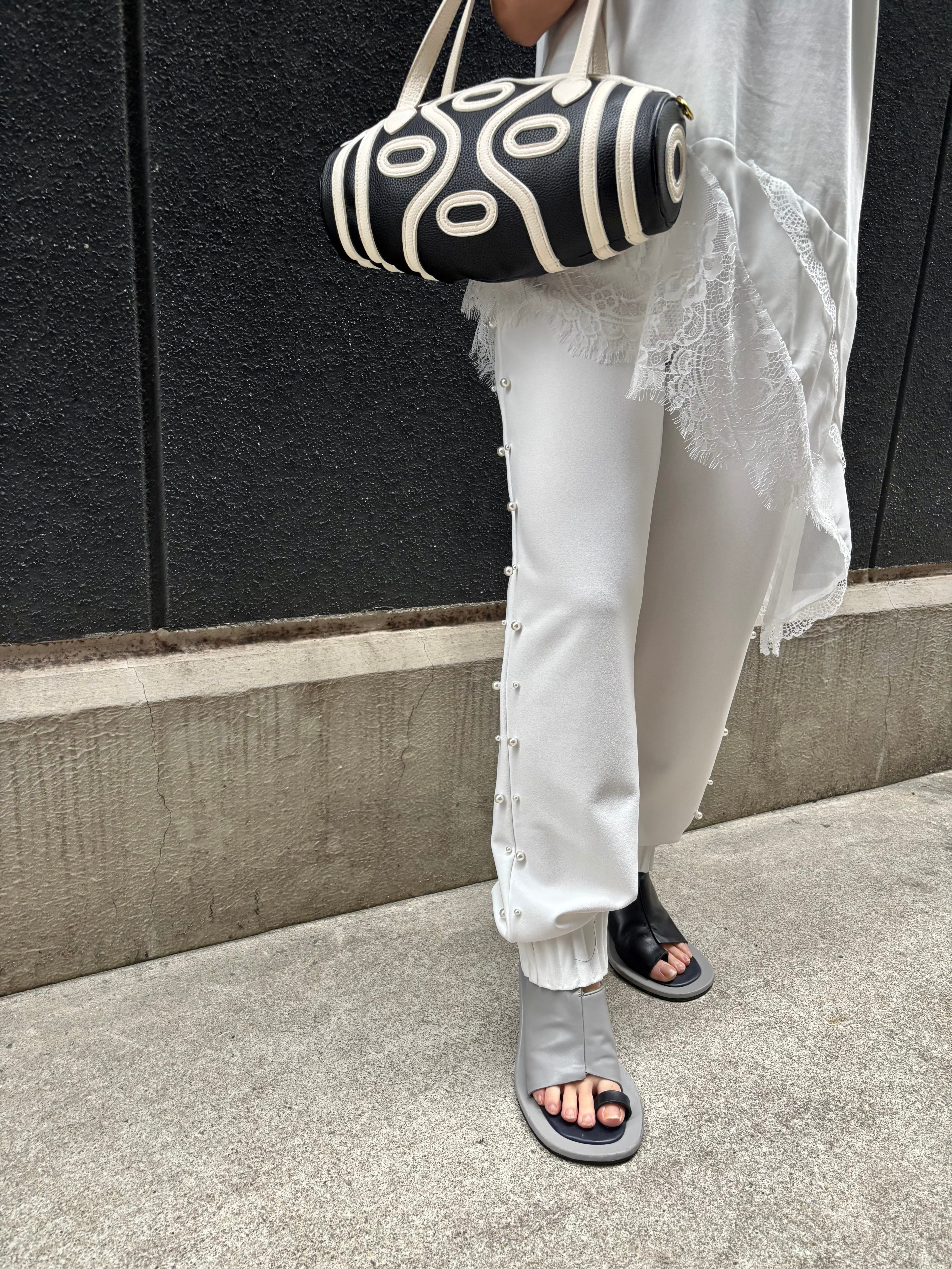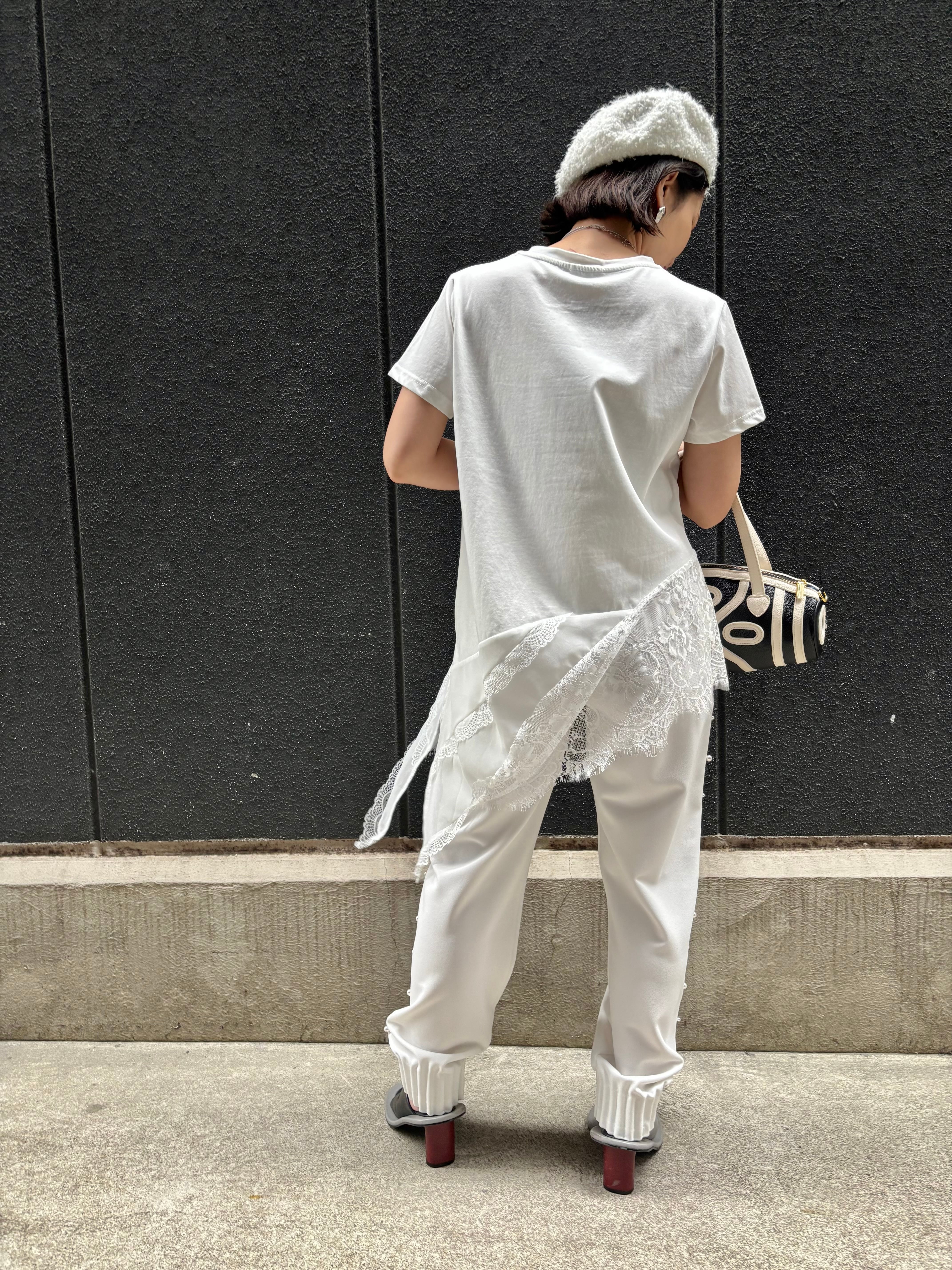 ester georgette side pearl design pants パンツ エステル パール ゴムウエスト