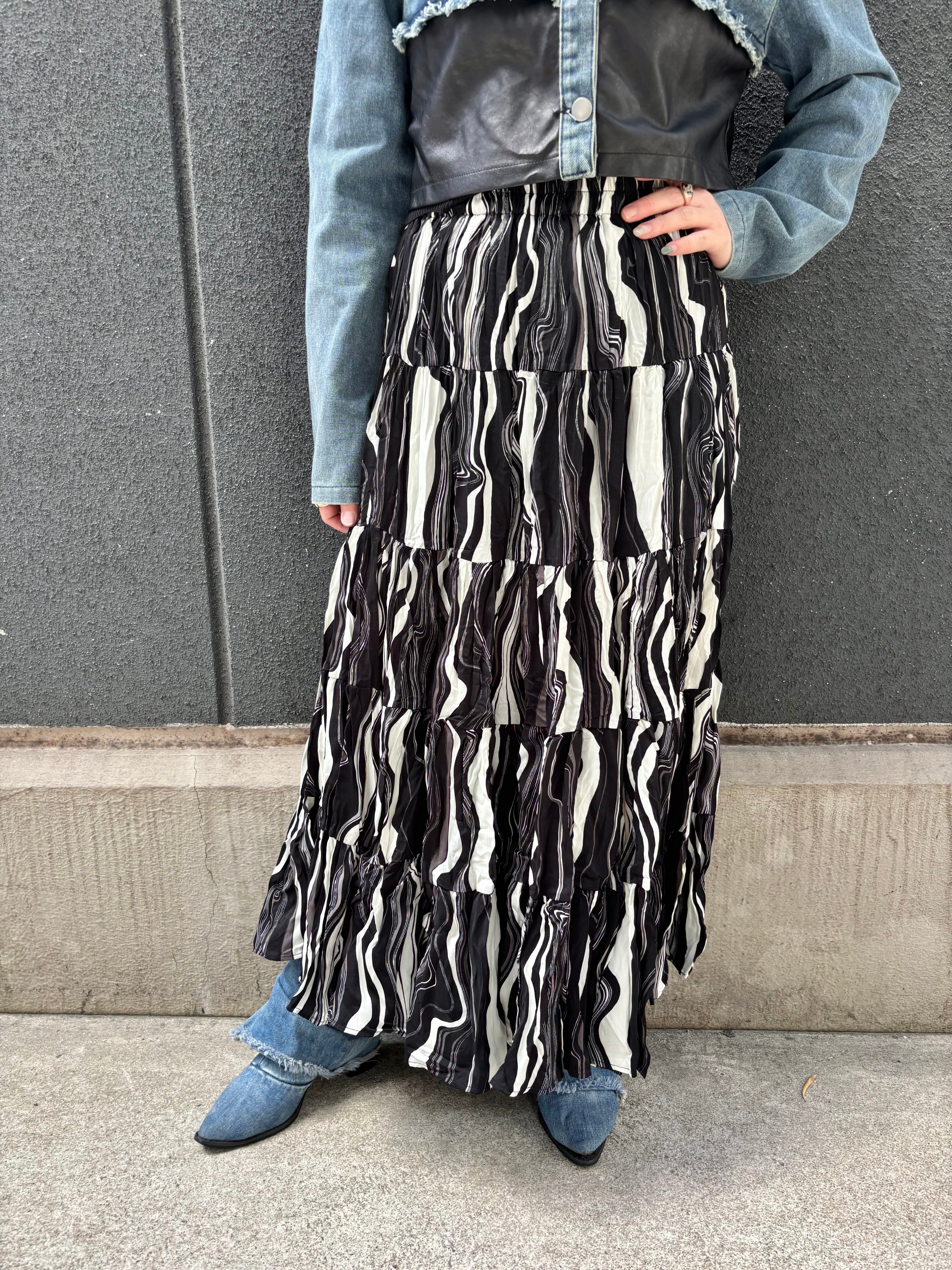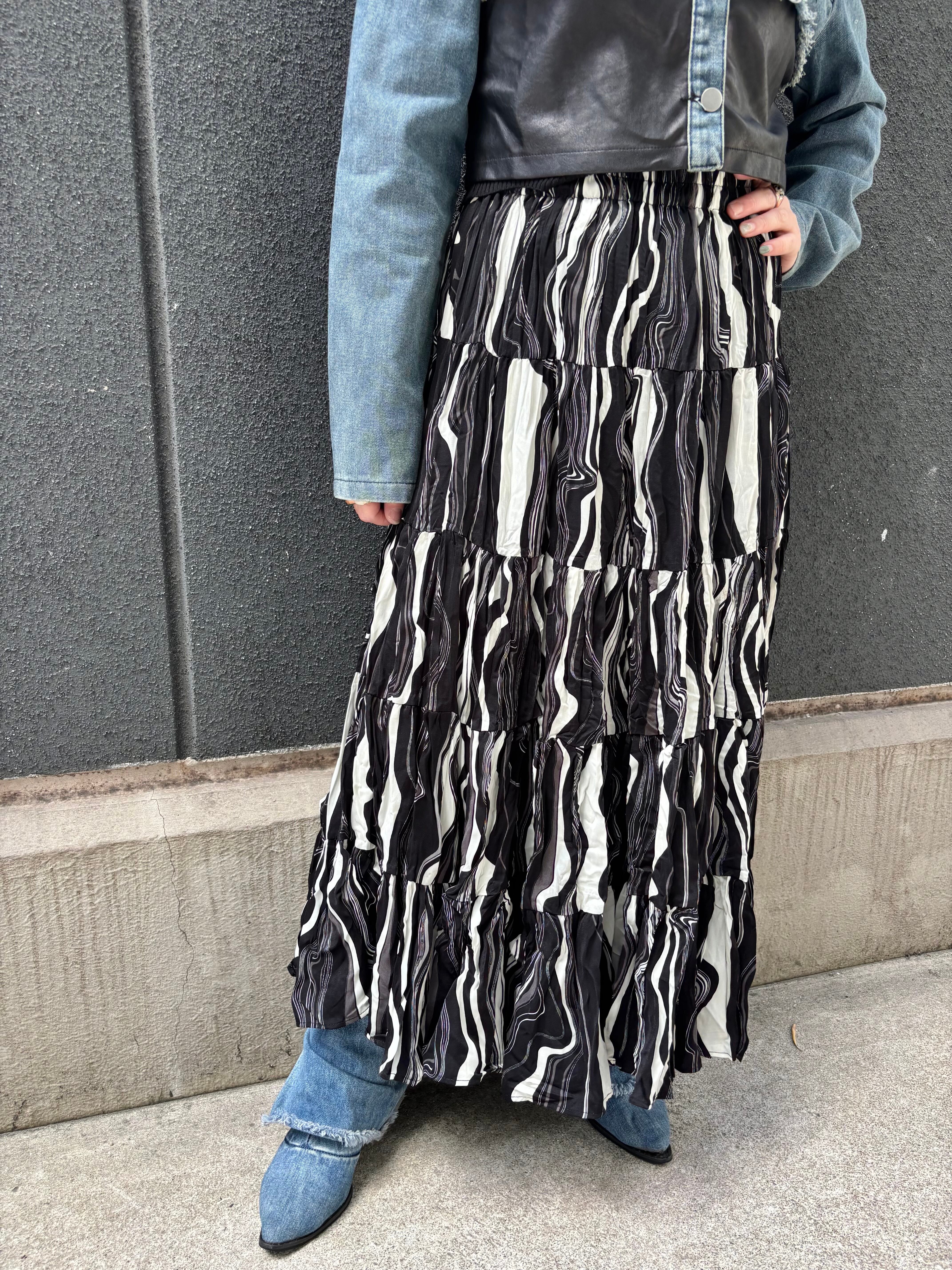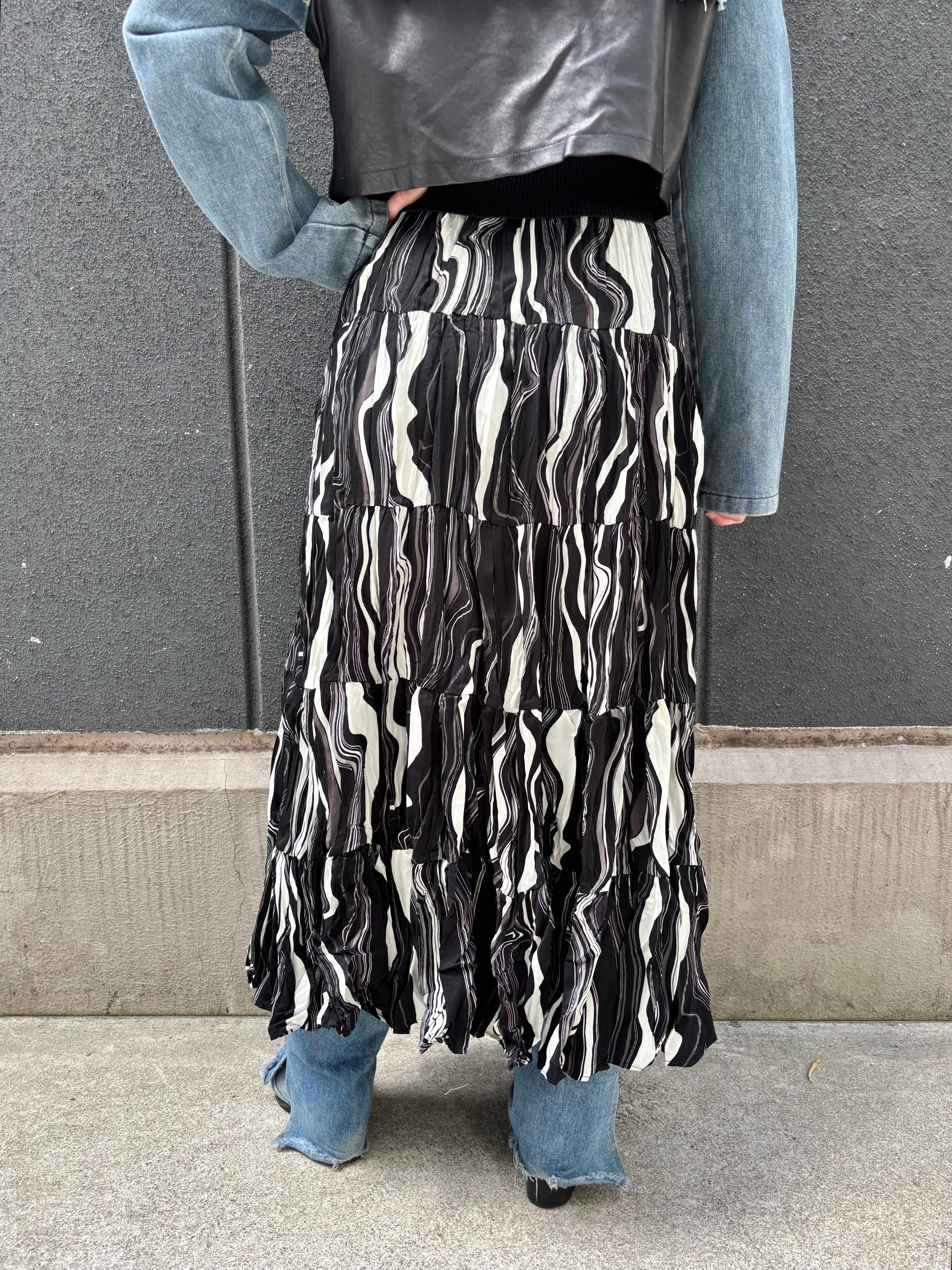 crinkle wave stripe design long skirt スカート シワ加工 クリンクル ゴムウエスト モノトーン