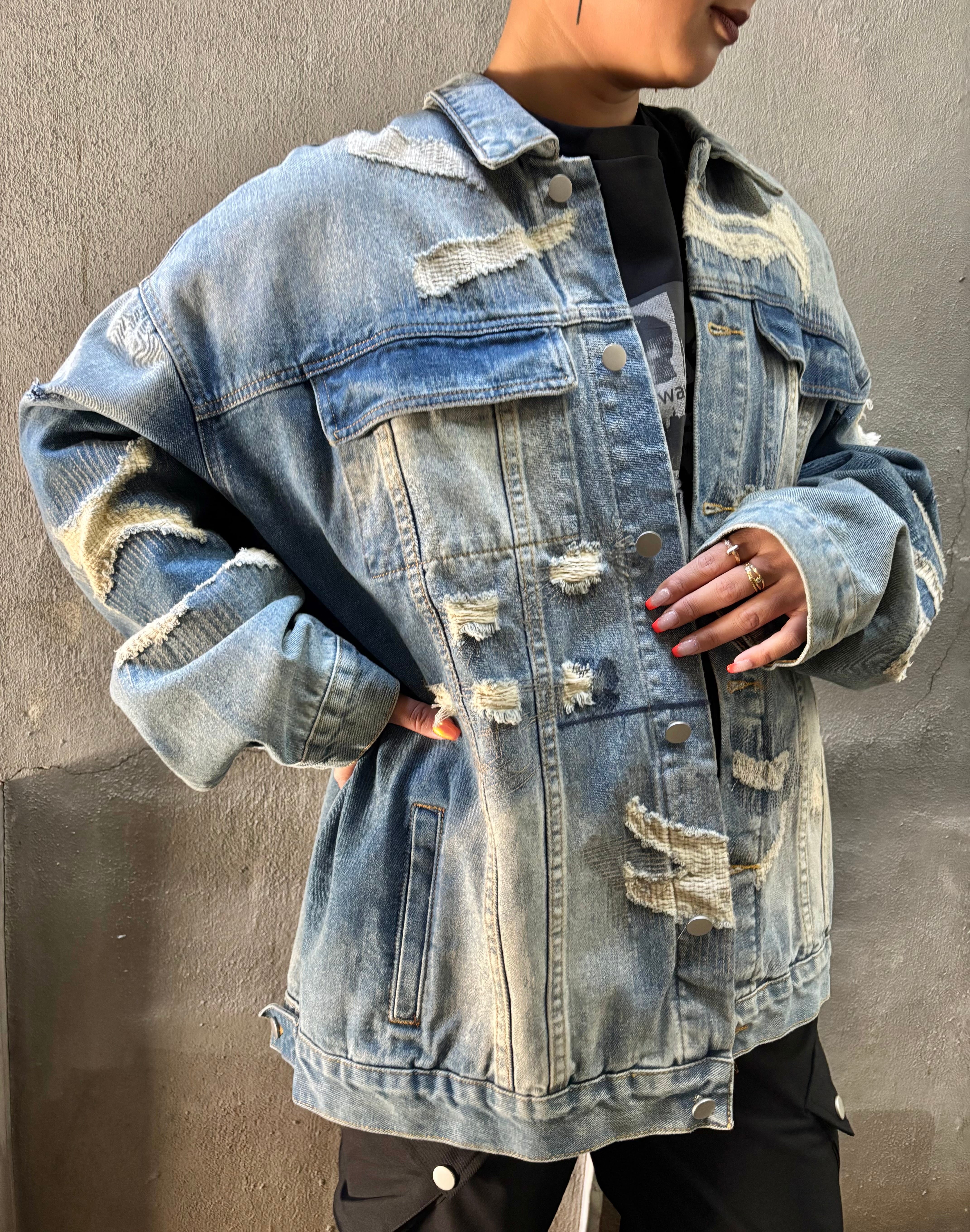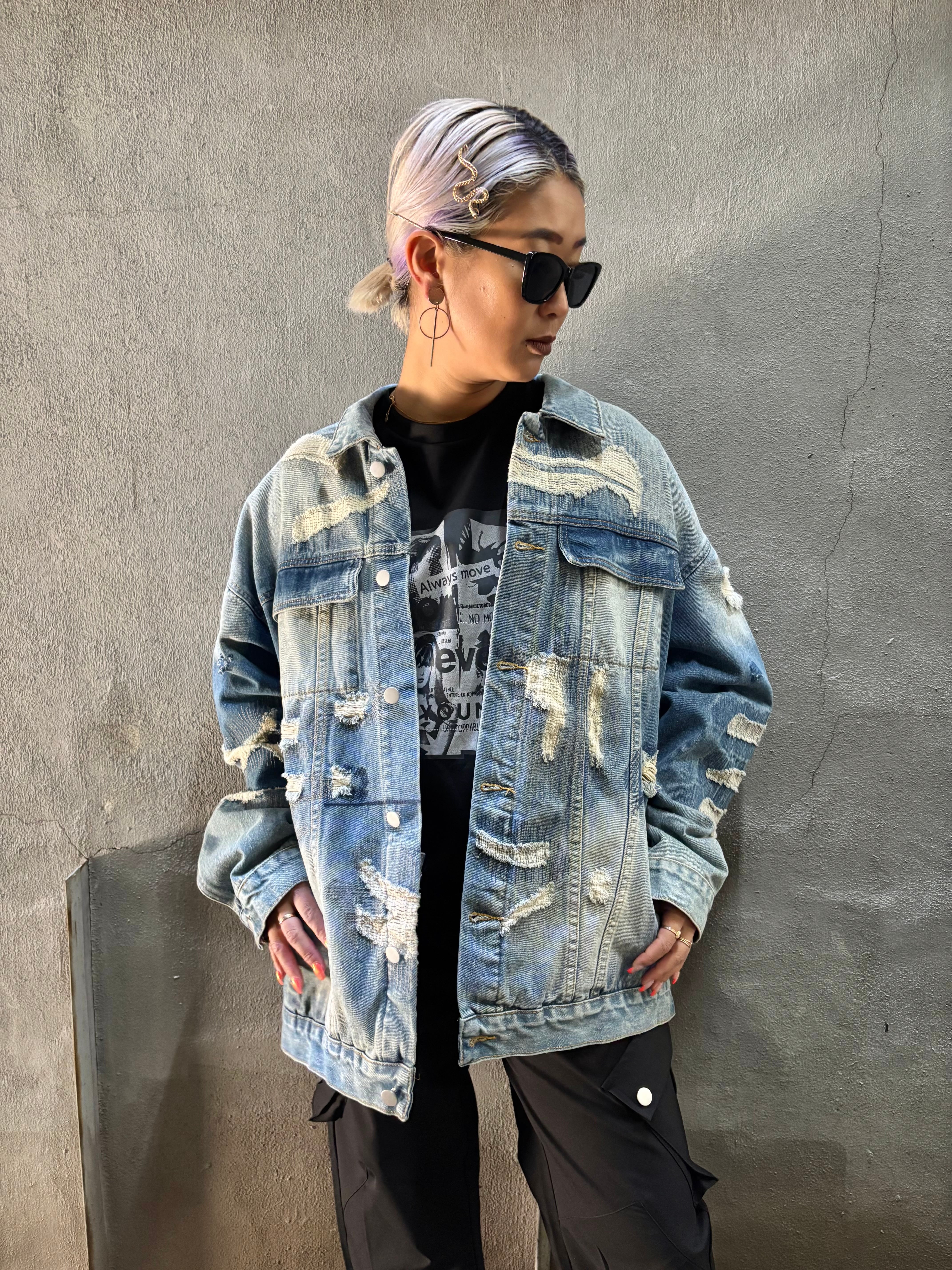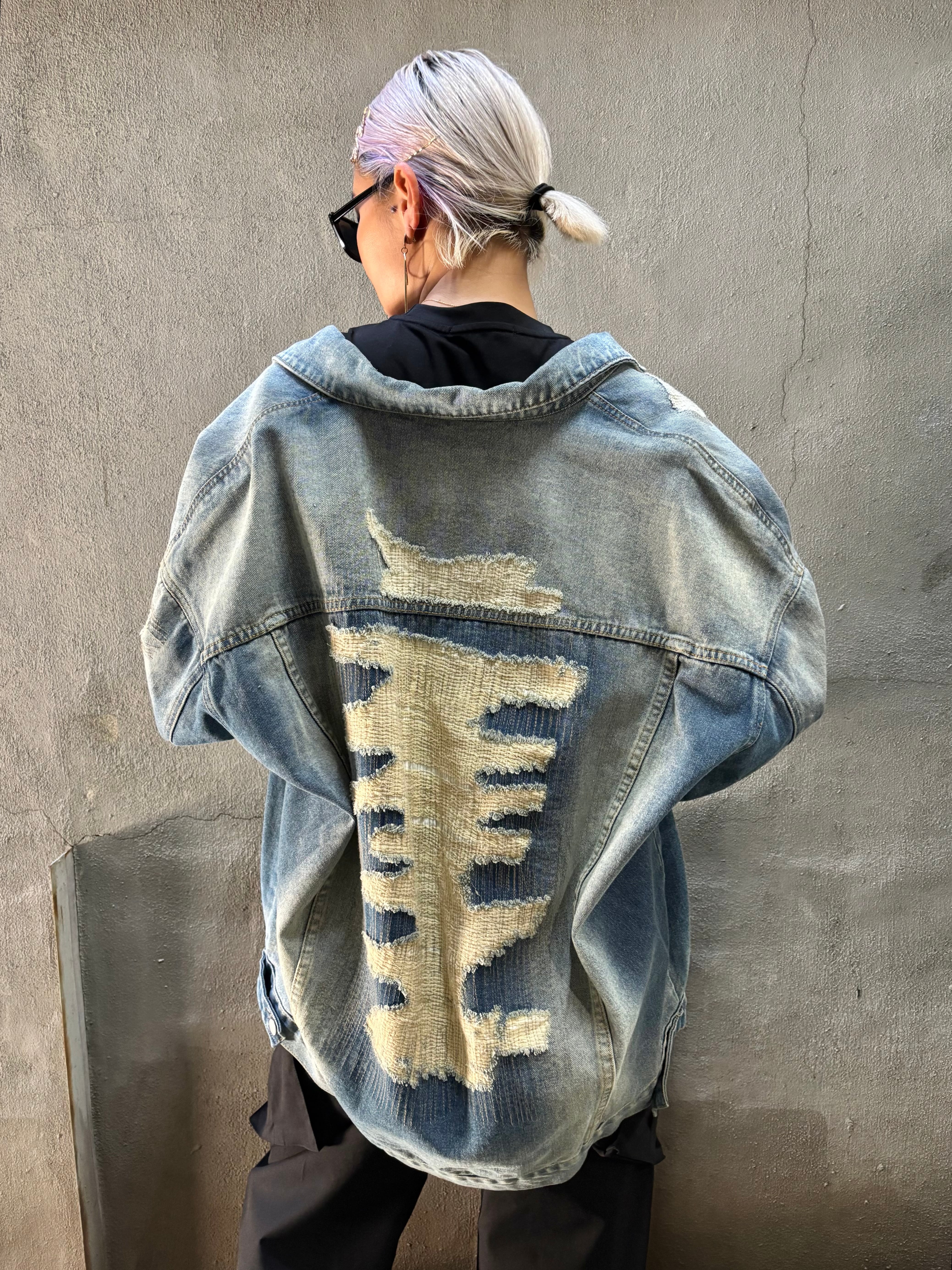 damage × stitch over size design denim jacket ジャケット デニム オーバーサイズ ダメージ ステッチ カジュアル