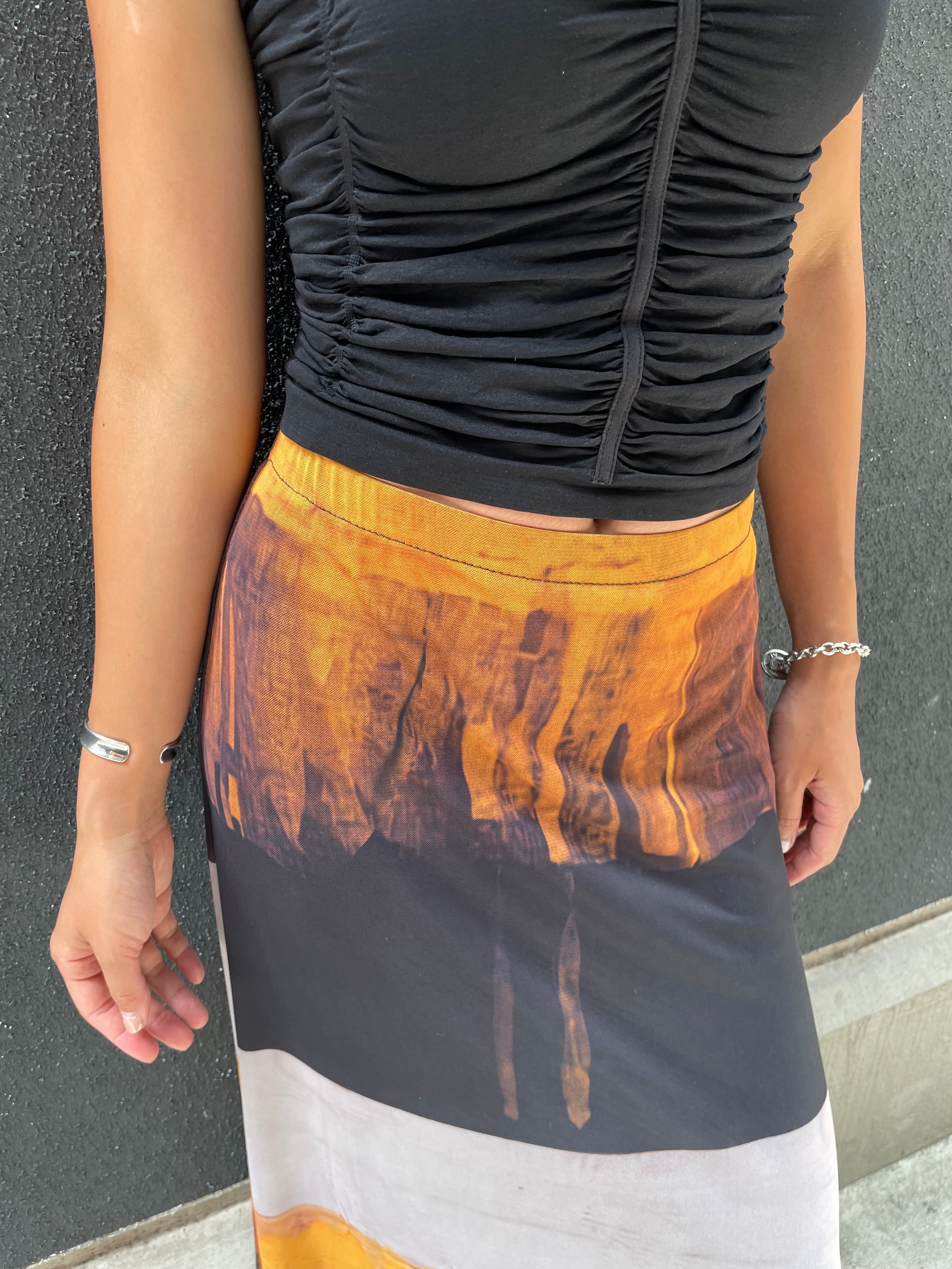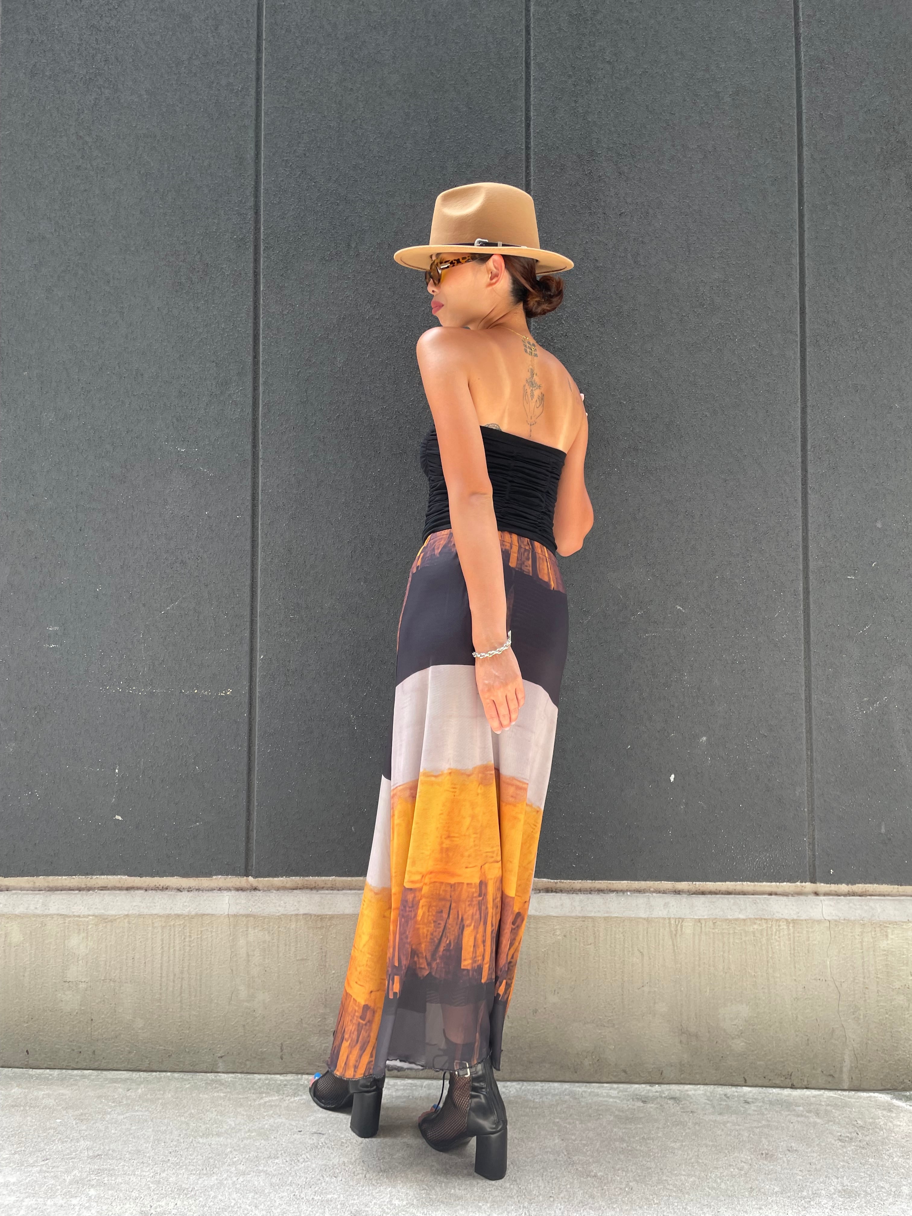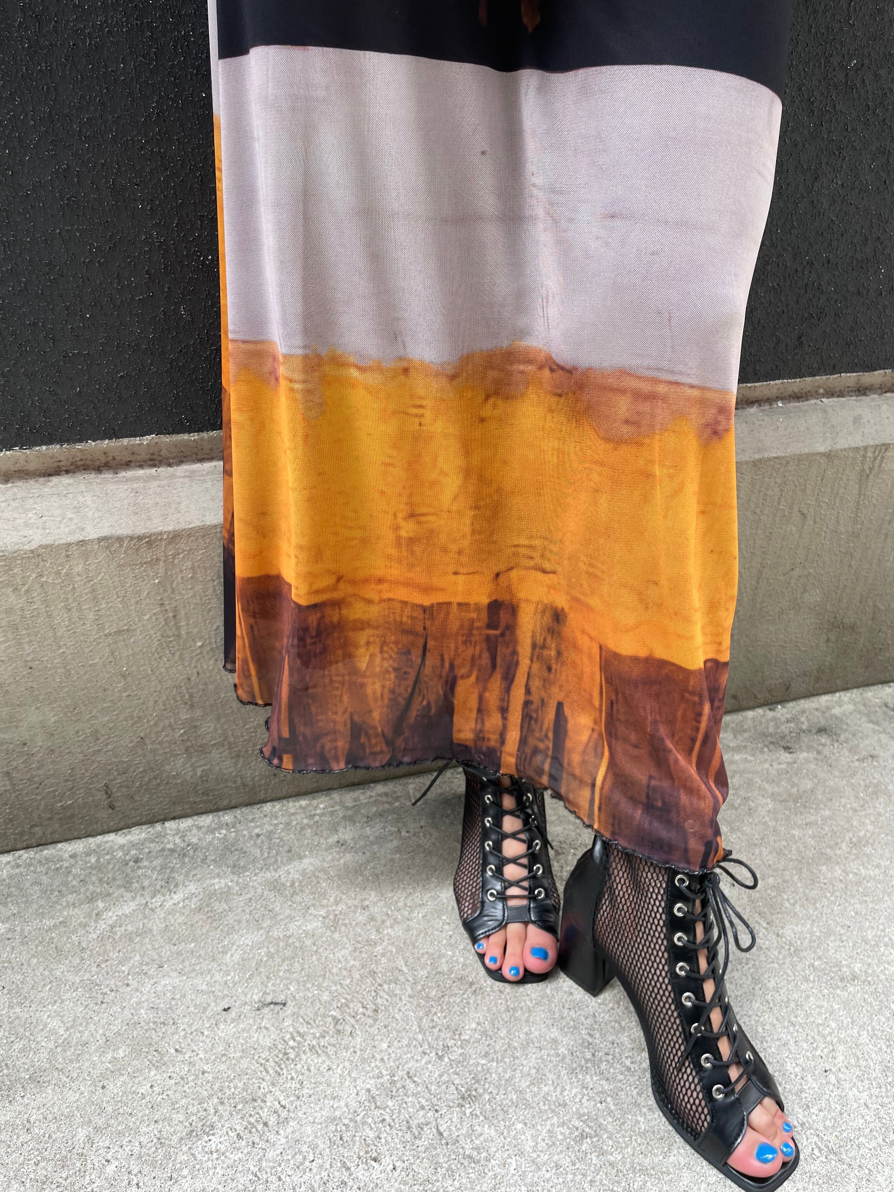 stretch mesh mix color print skirt スカート メッシュ 柄スカート グラデーション ゴムウエスト