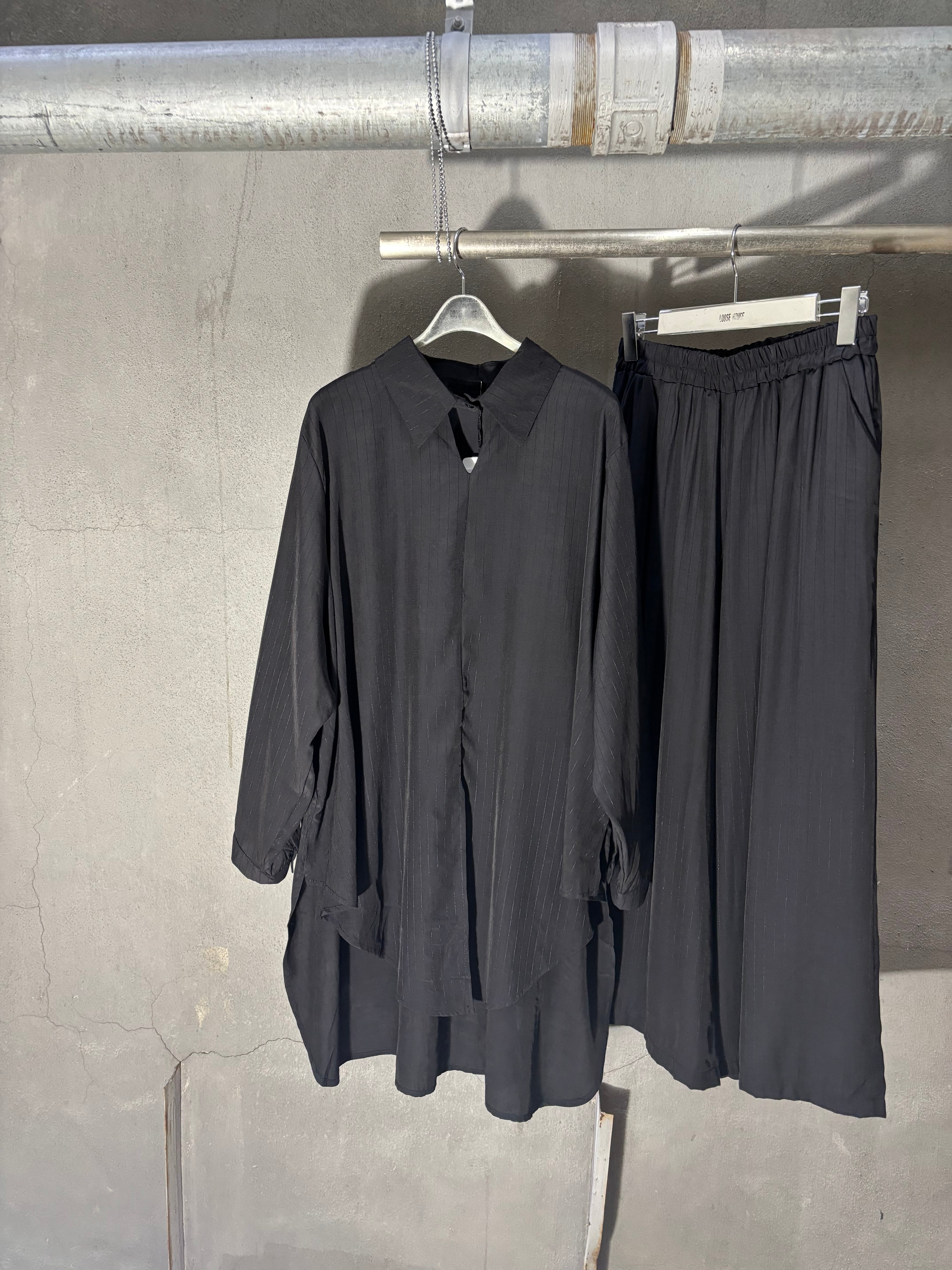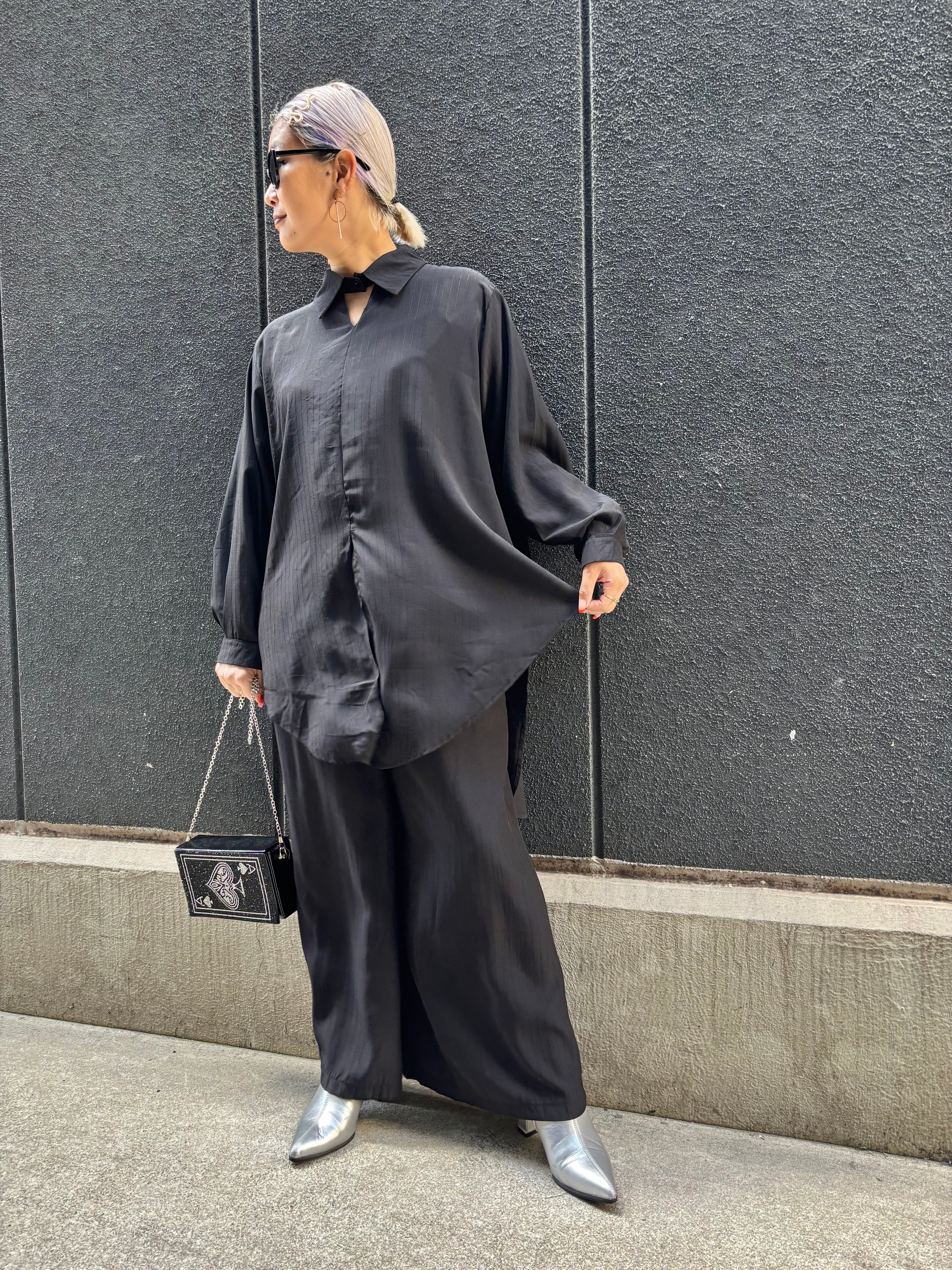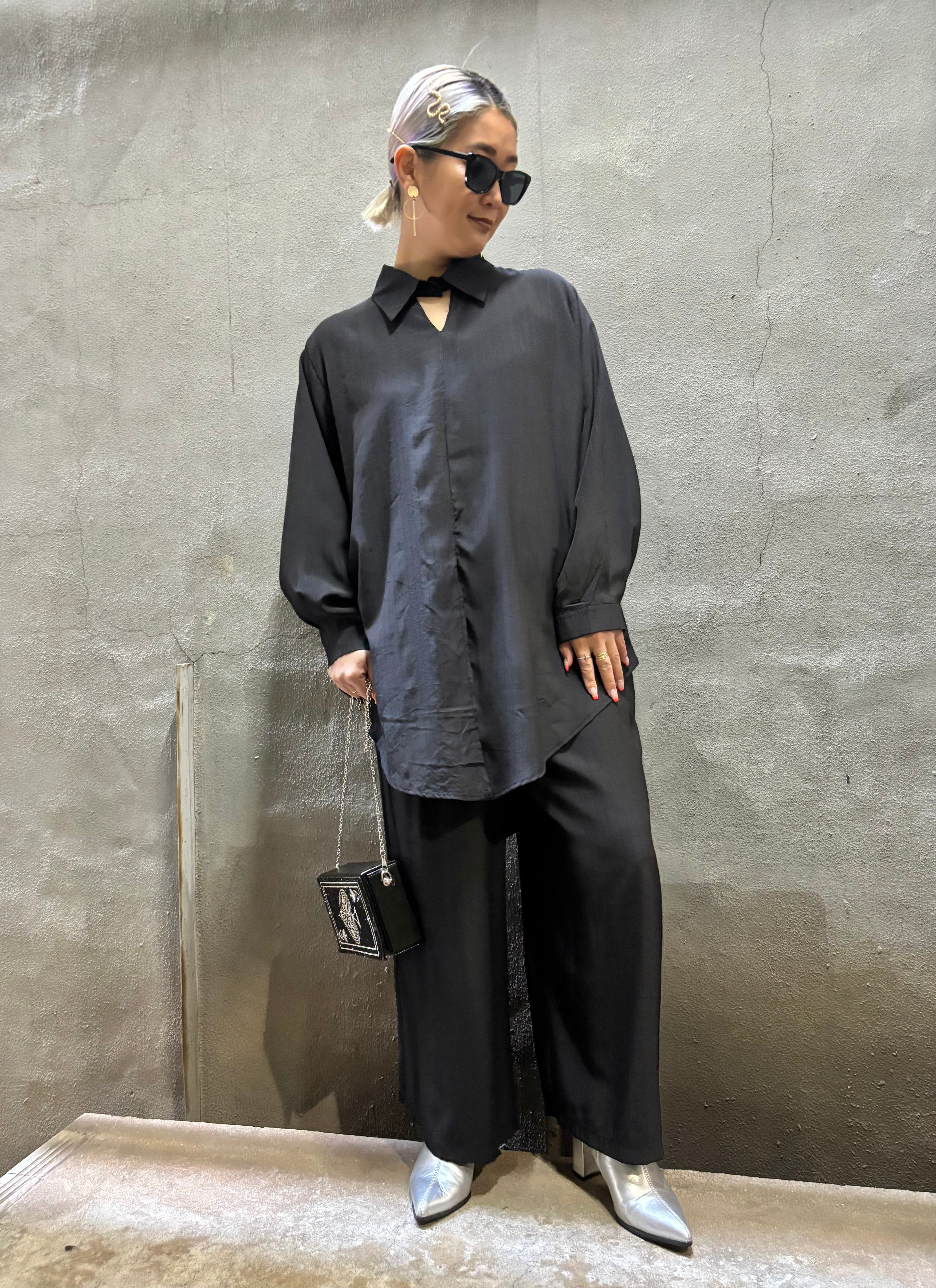 design neck shirt × wide pants 2P set up セットアップ 2点セット シャツ ワイドパンツ ブラック 黒