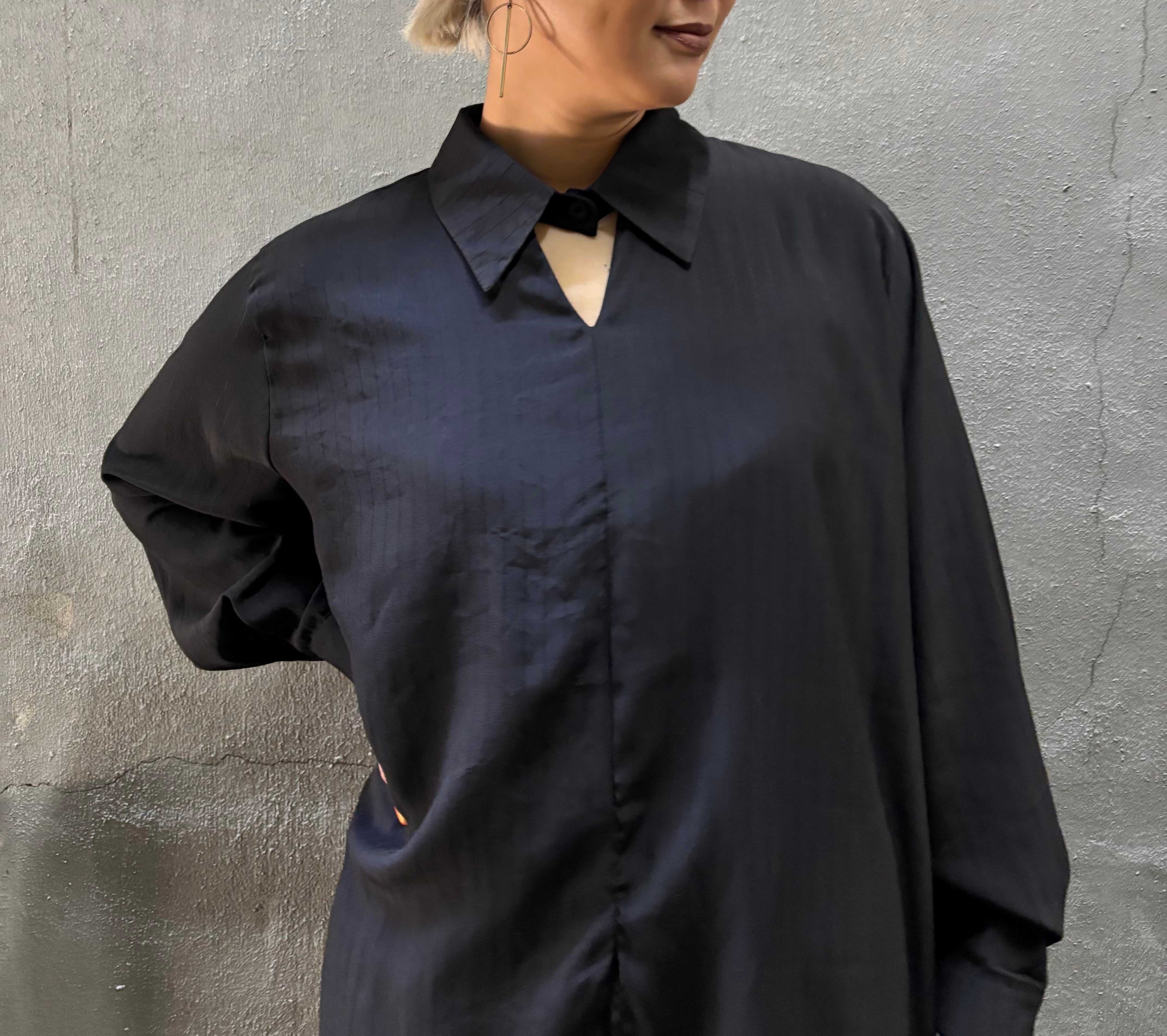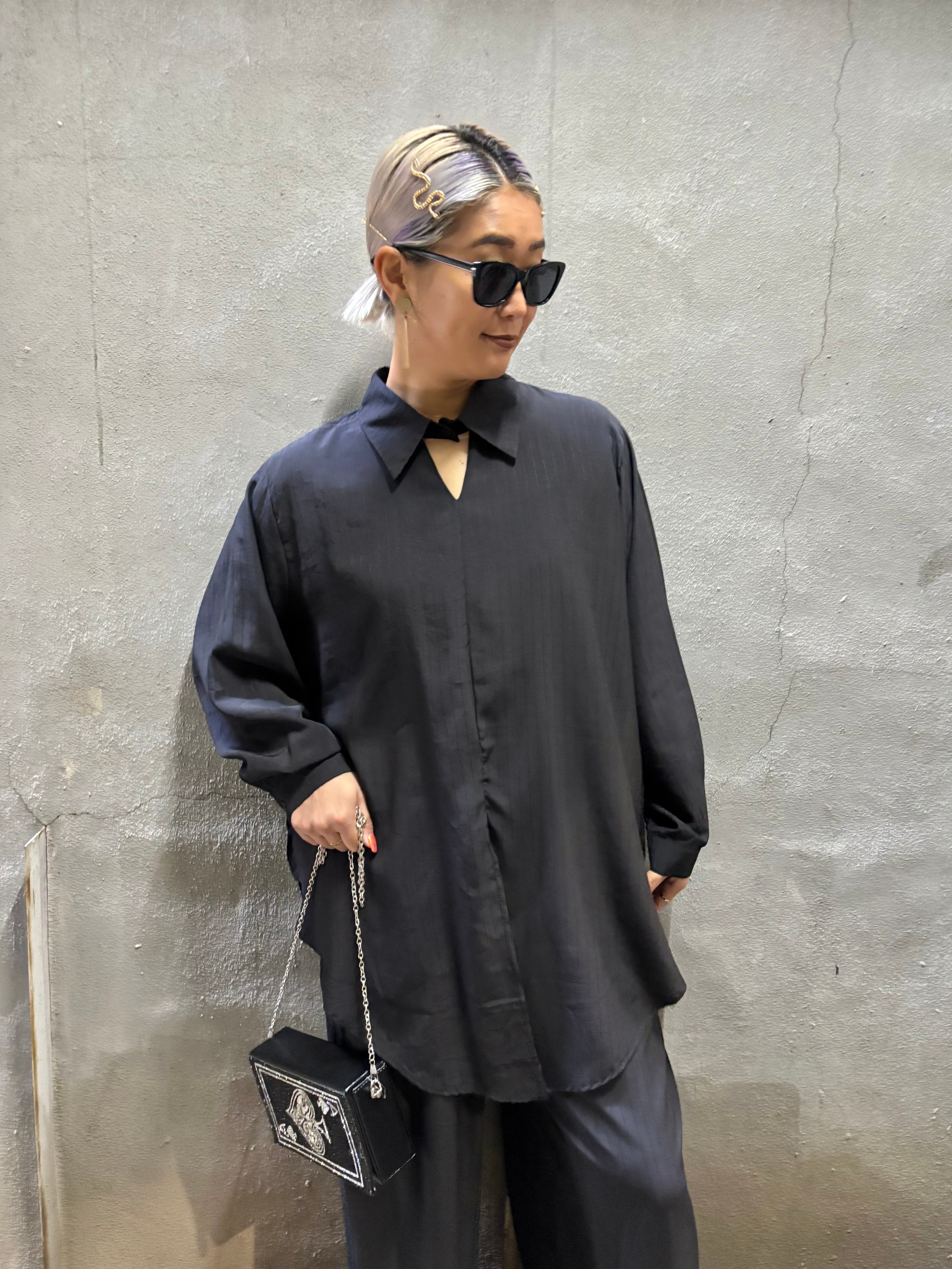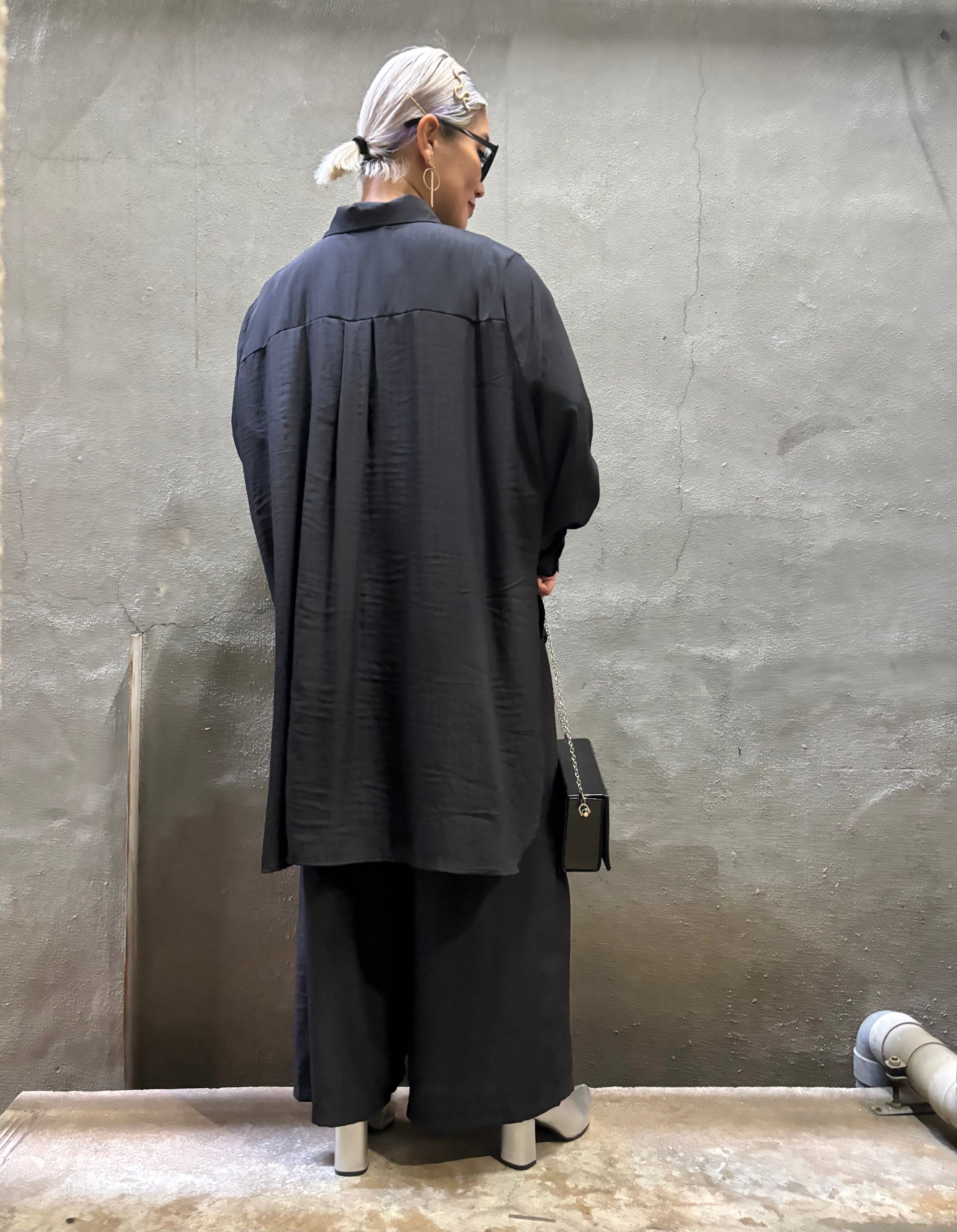 design neck shirt × wide pants 2P set up セットアップ 2点セット シャツ ワイドパンツ ブラック 黒