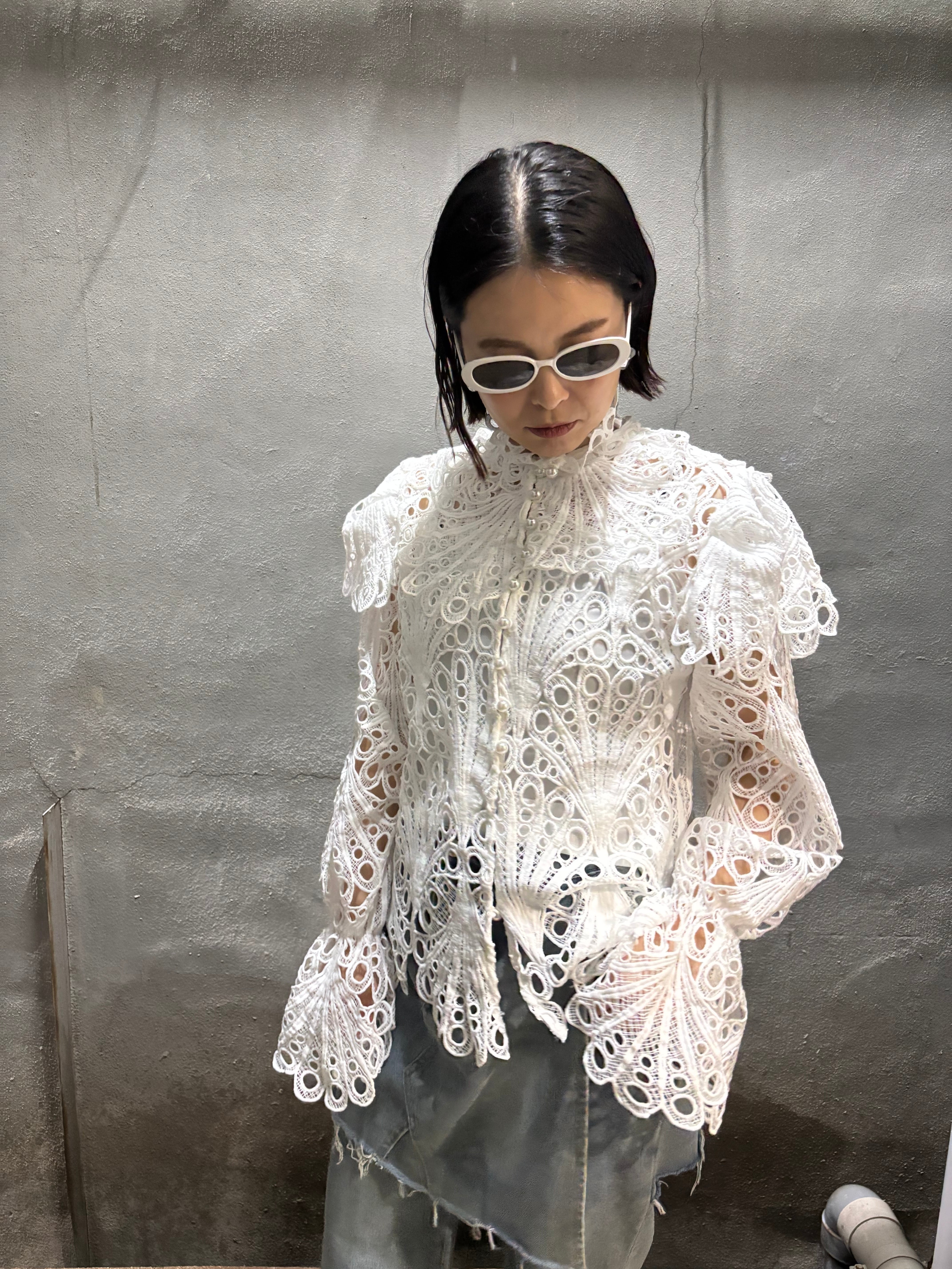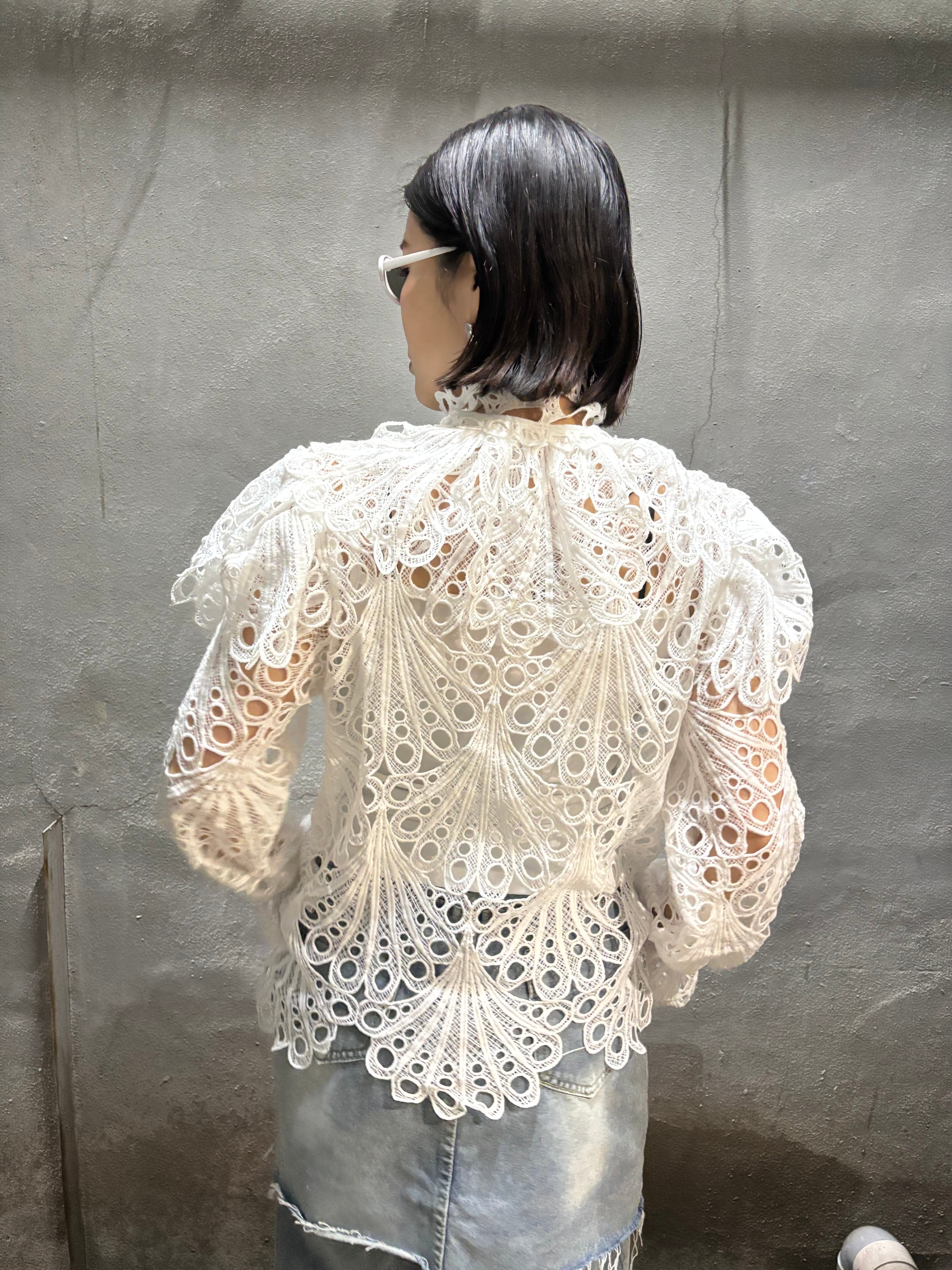 lace × frill high neck design blouse ブラウス トップス レース フリル ハイネック キャミソール セット