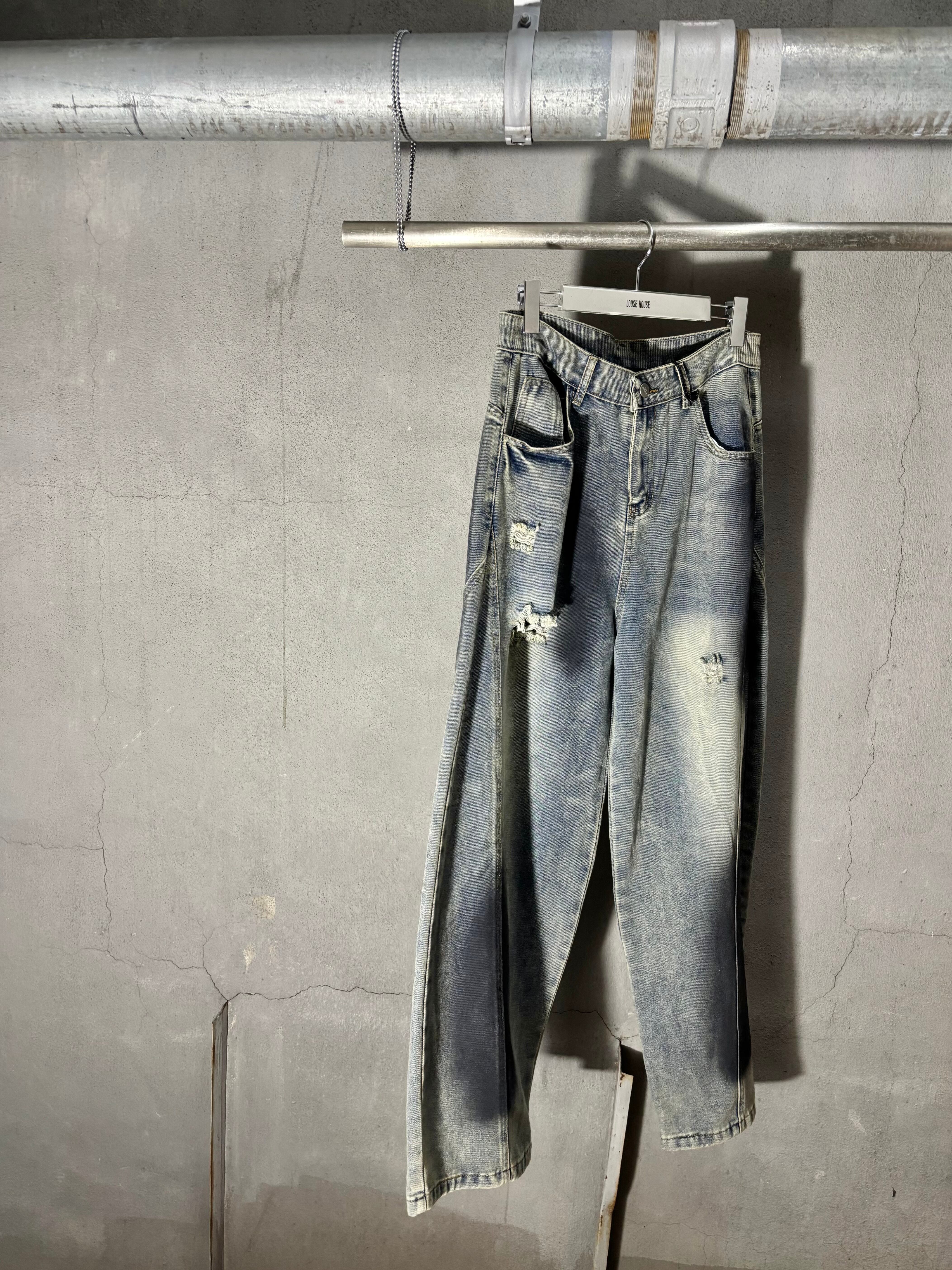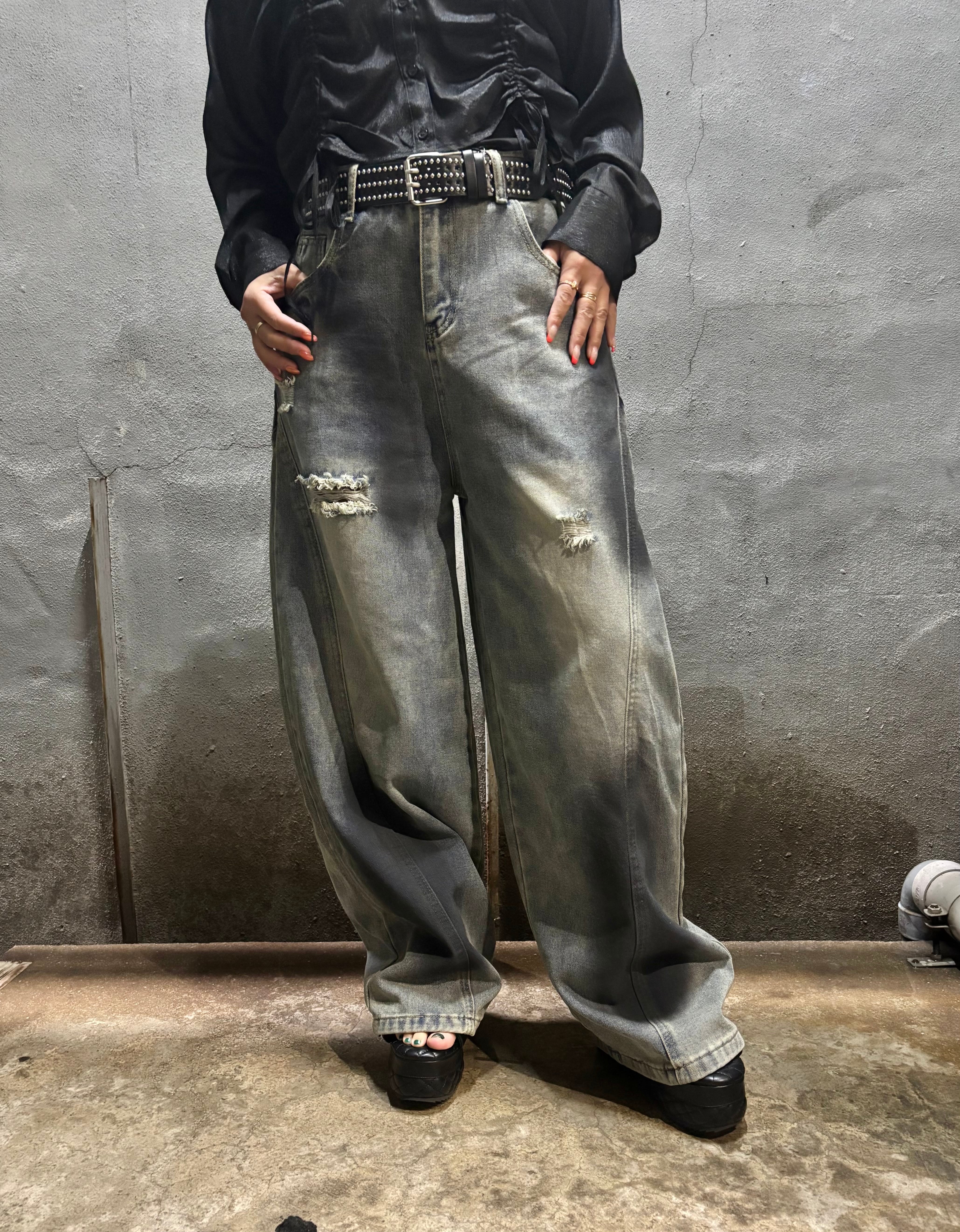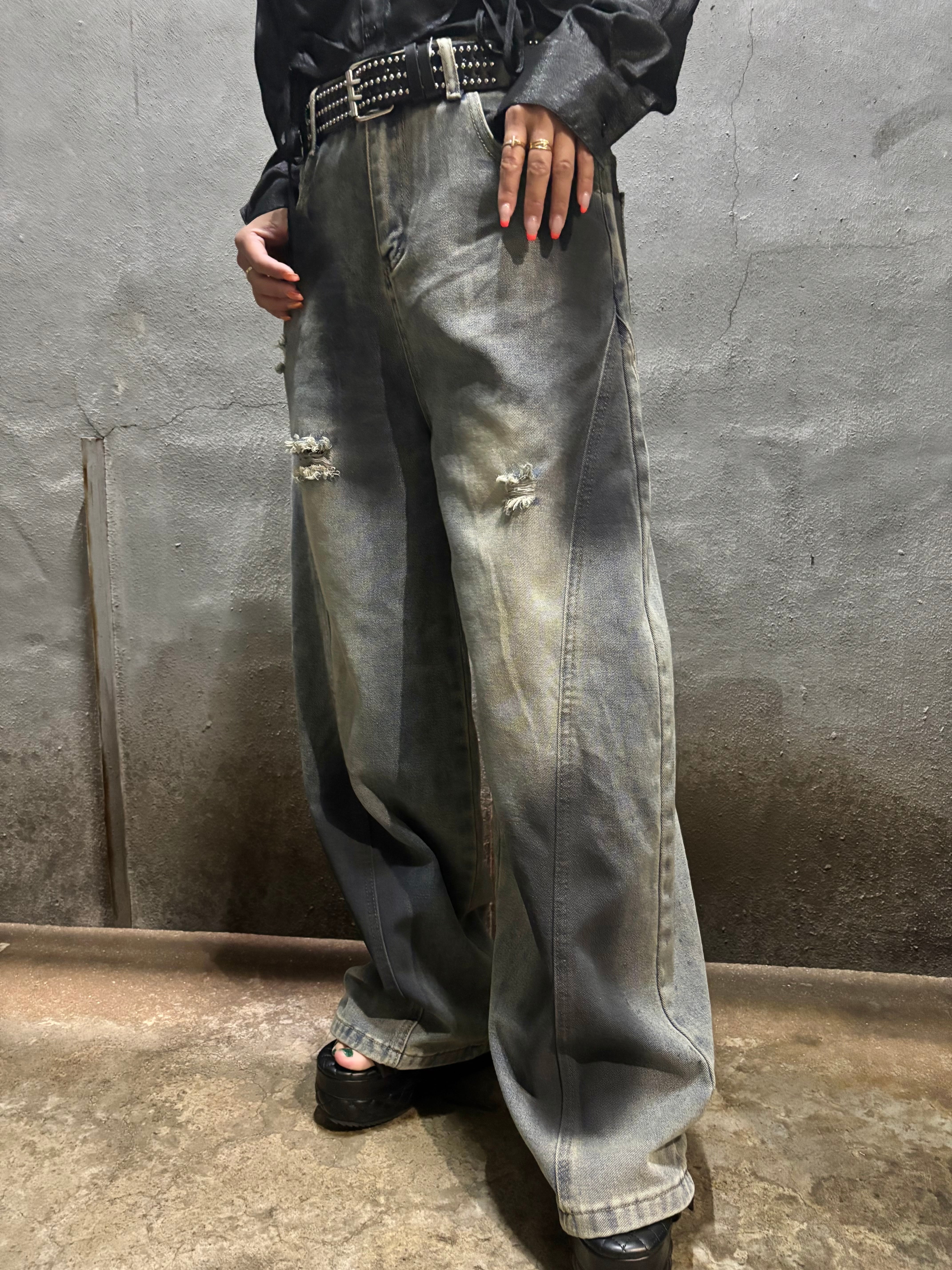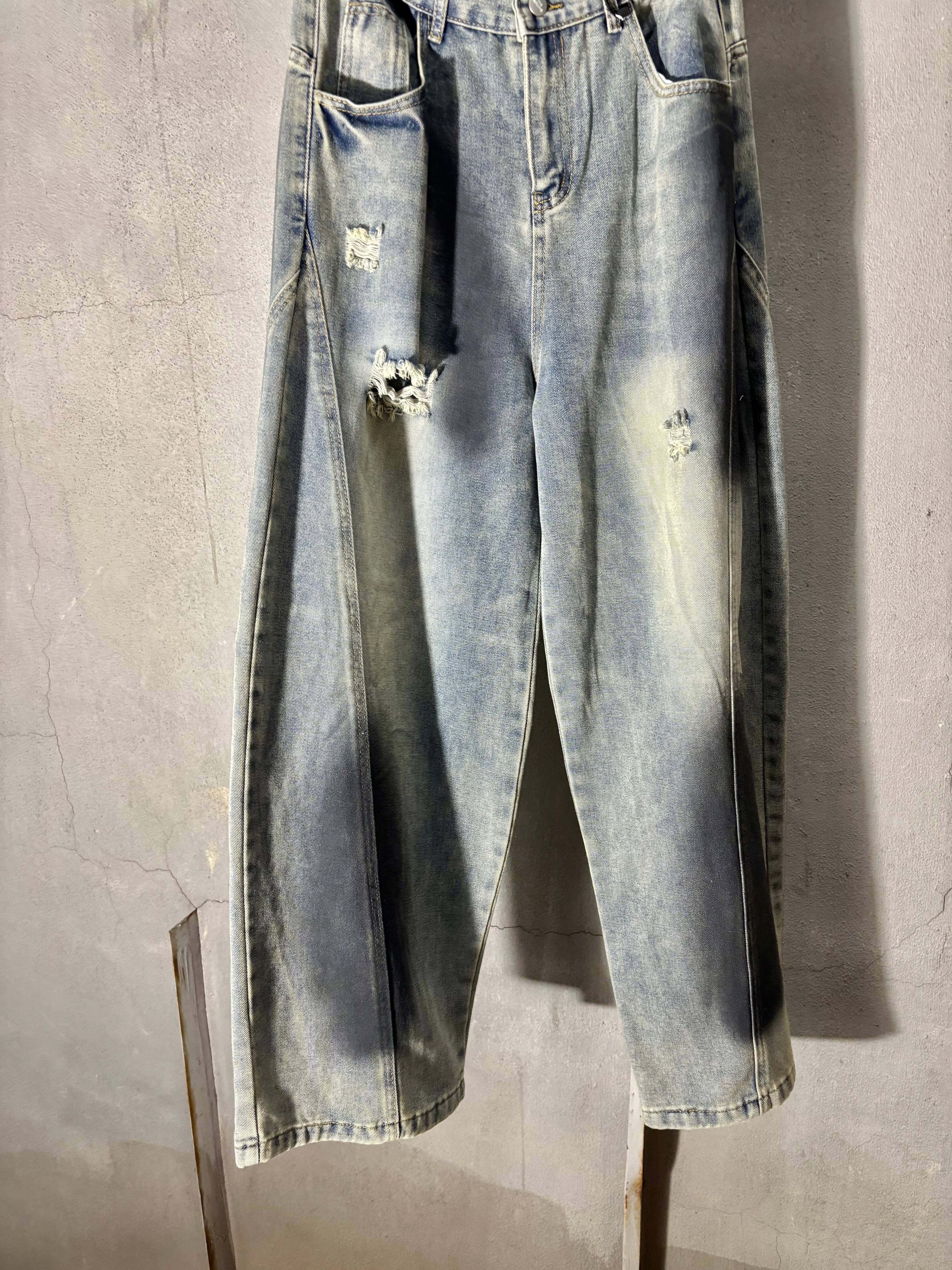 こだわり抜いたダメージ加工とブリーチ仕上げのワイドデニムパンツです。