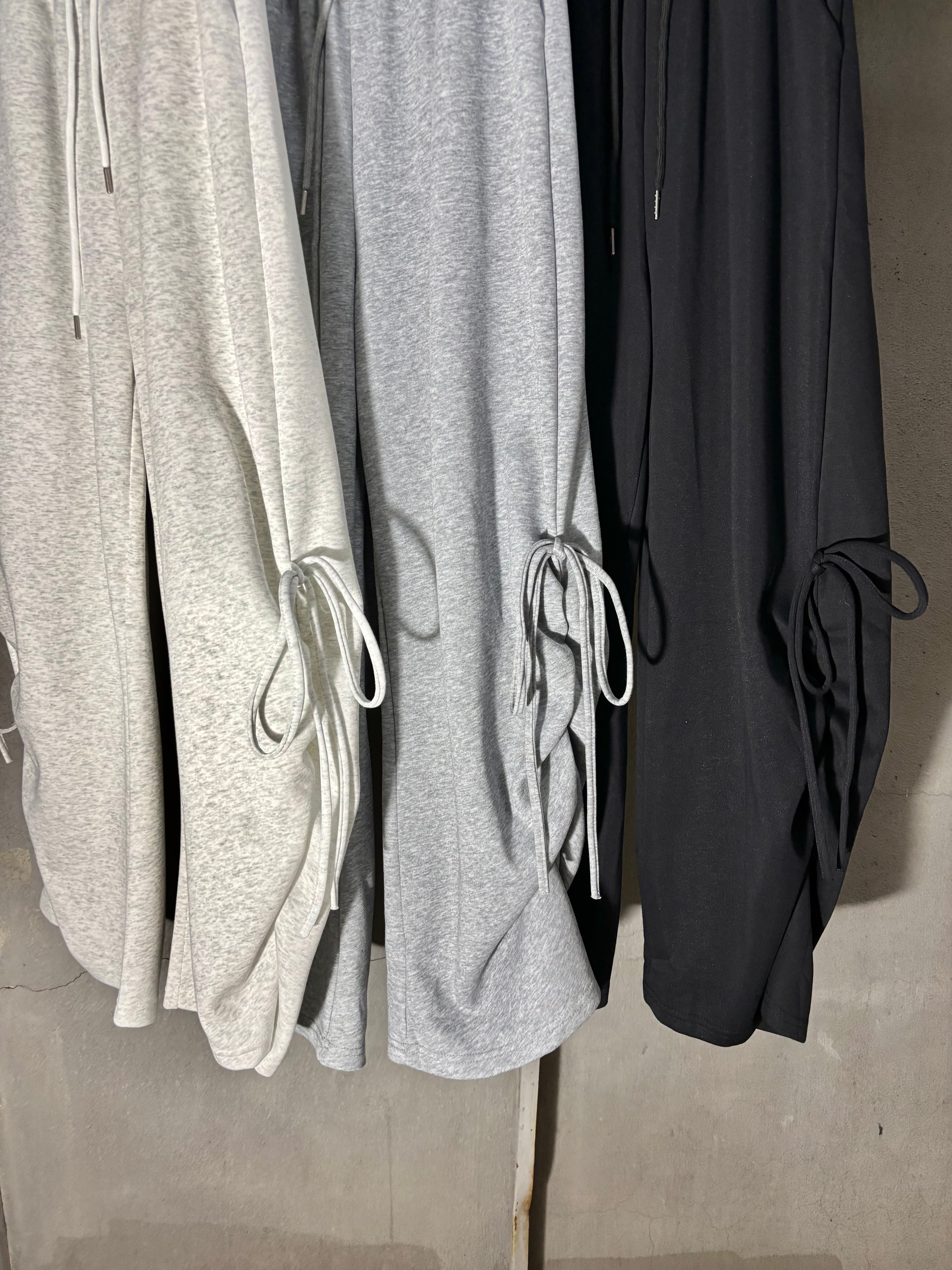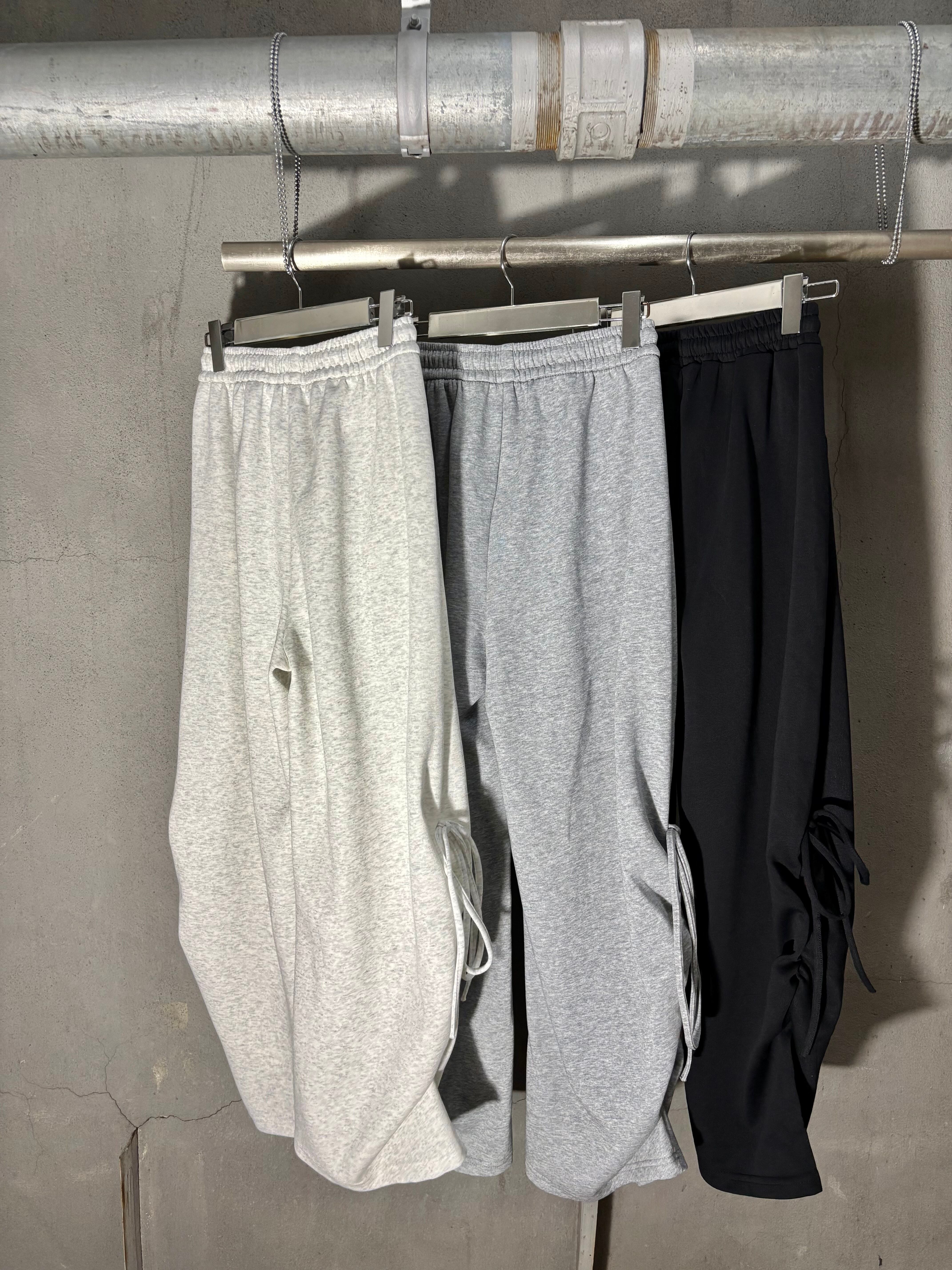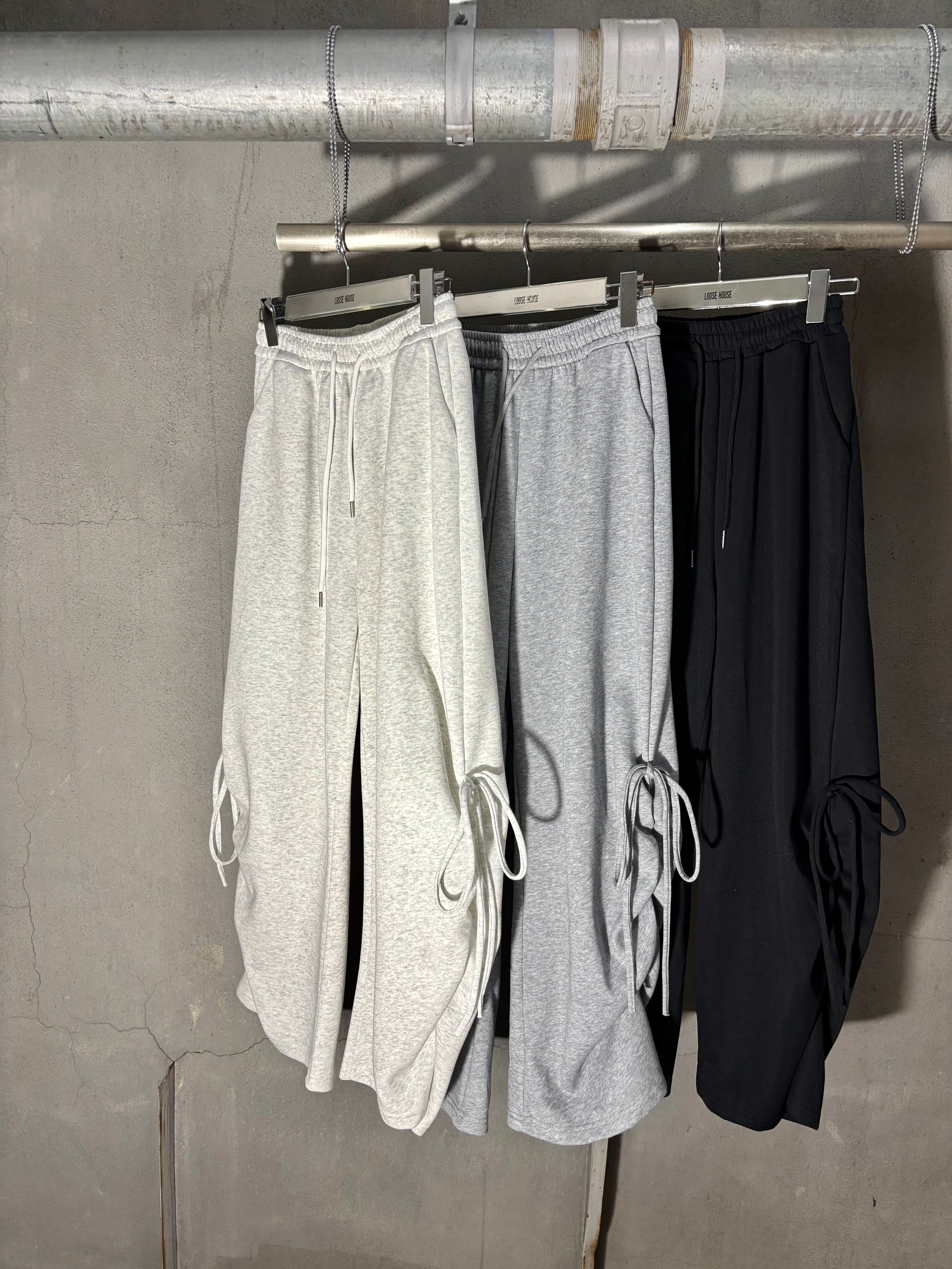 side drawstring code design sweat pants パンツ スウェット リボン ゴムウエスト ラフ