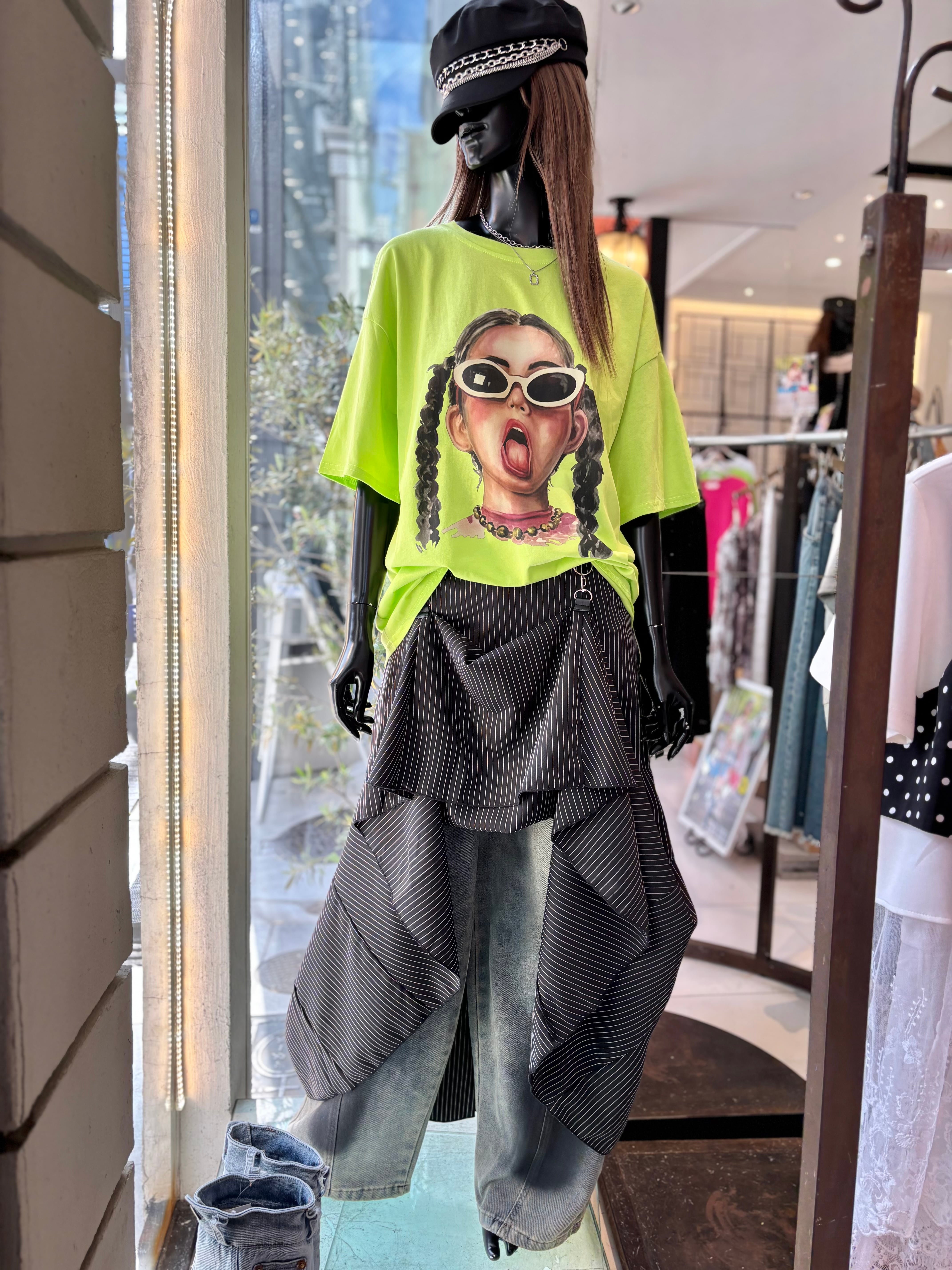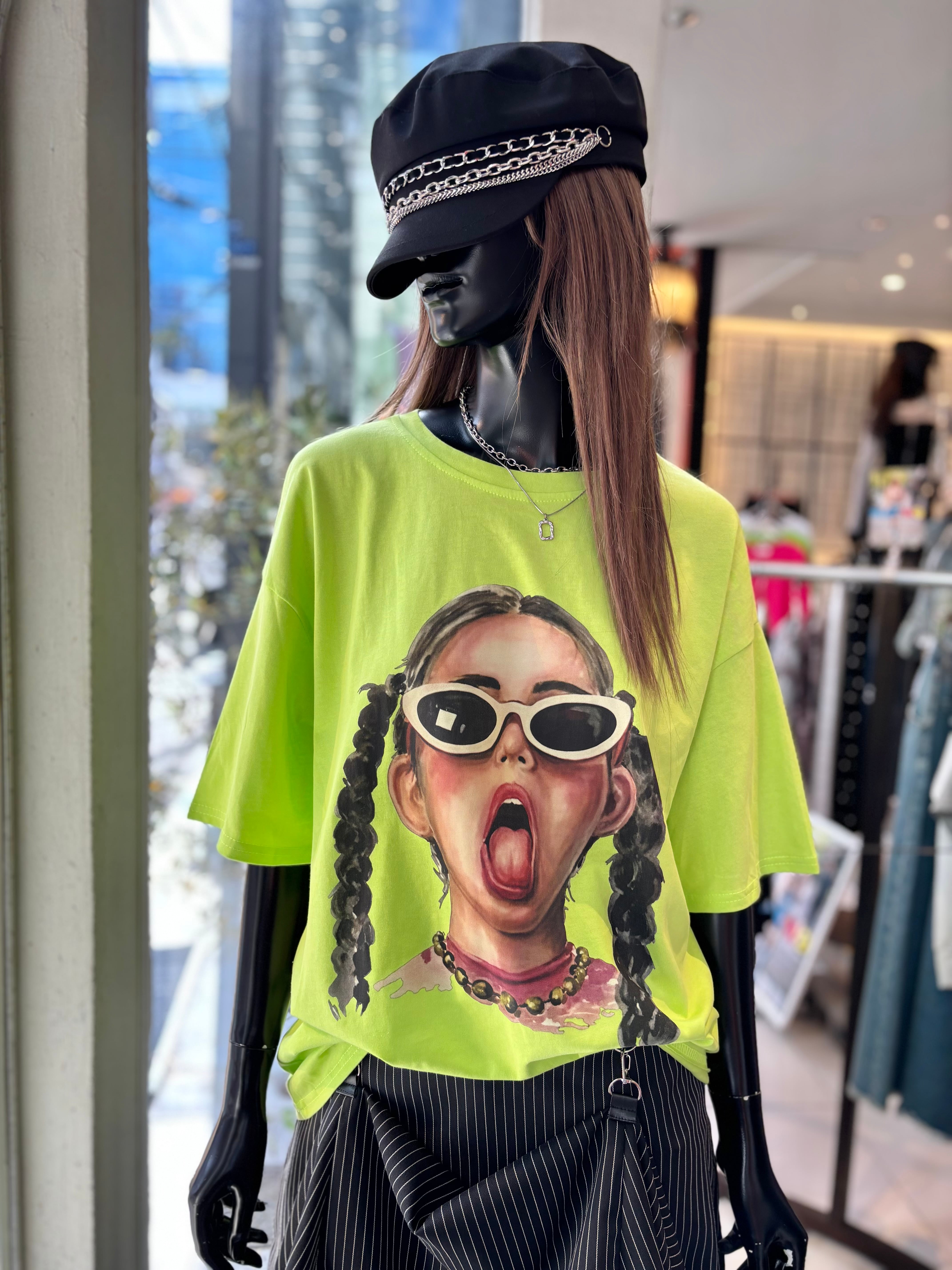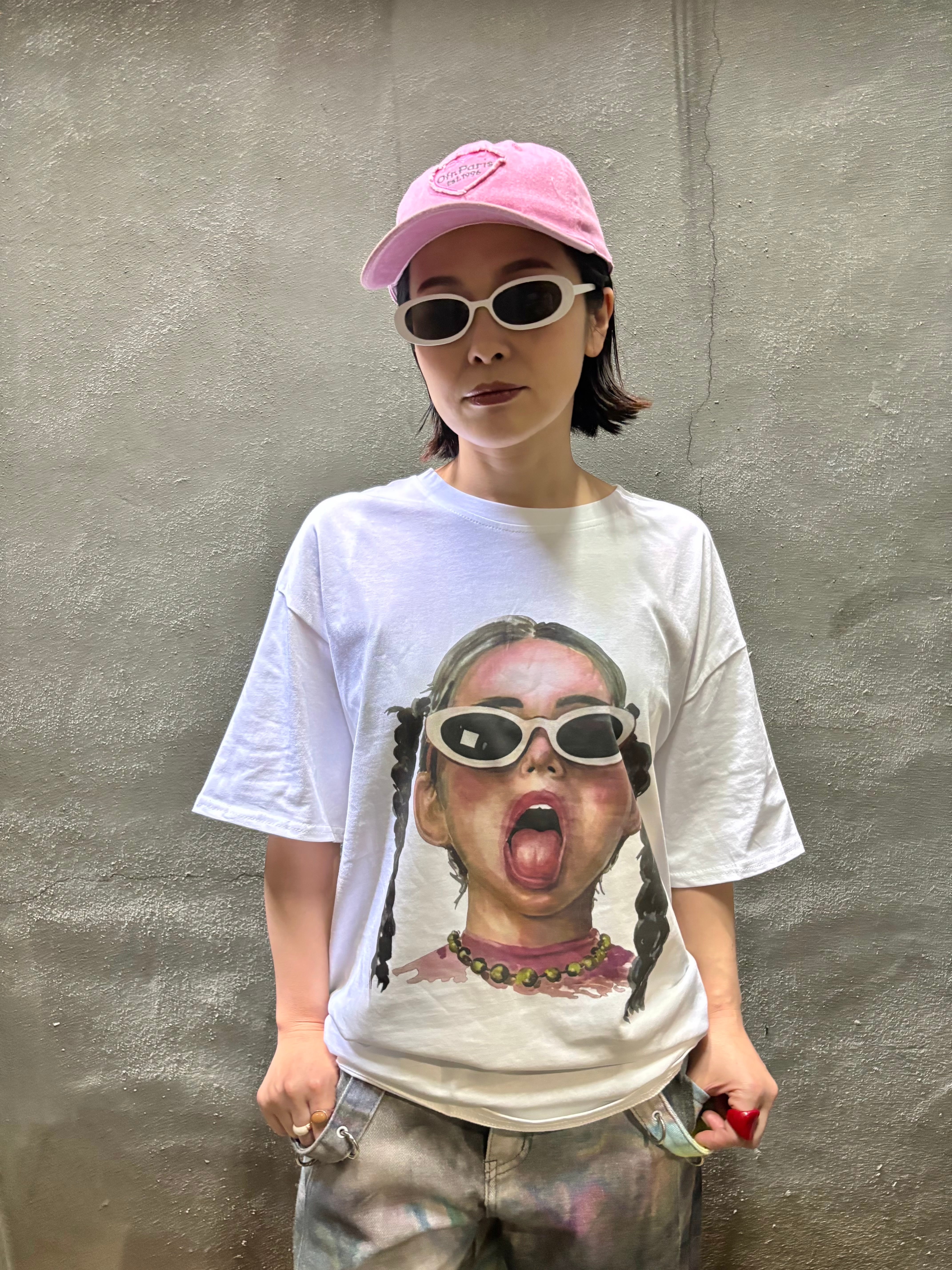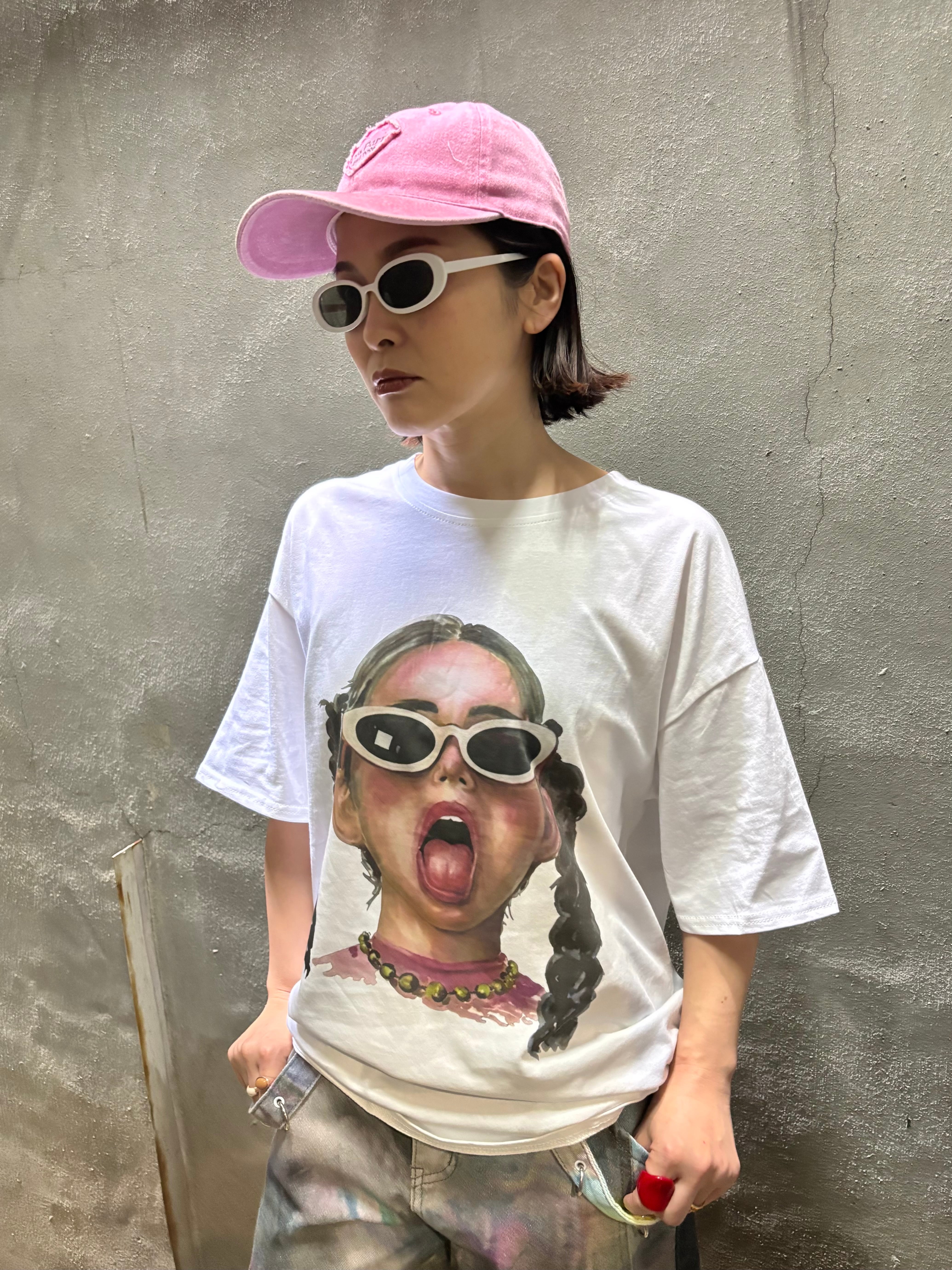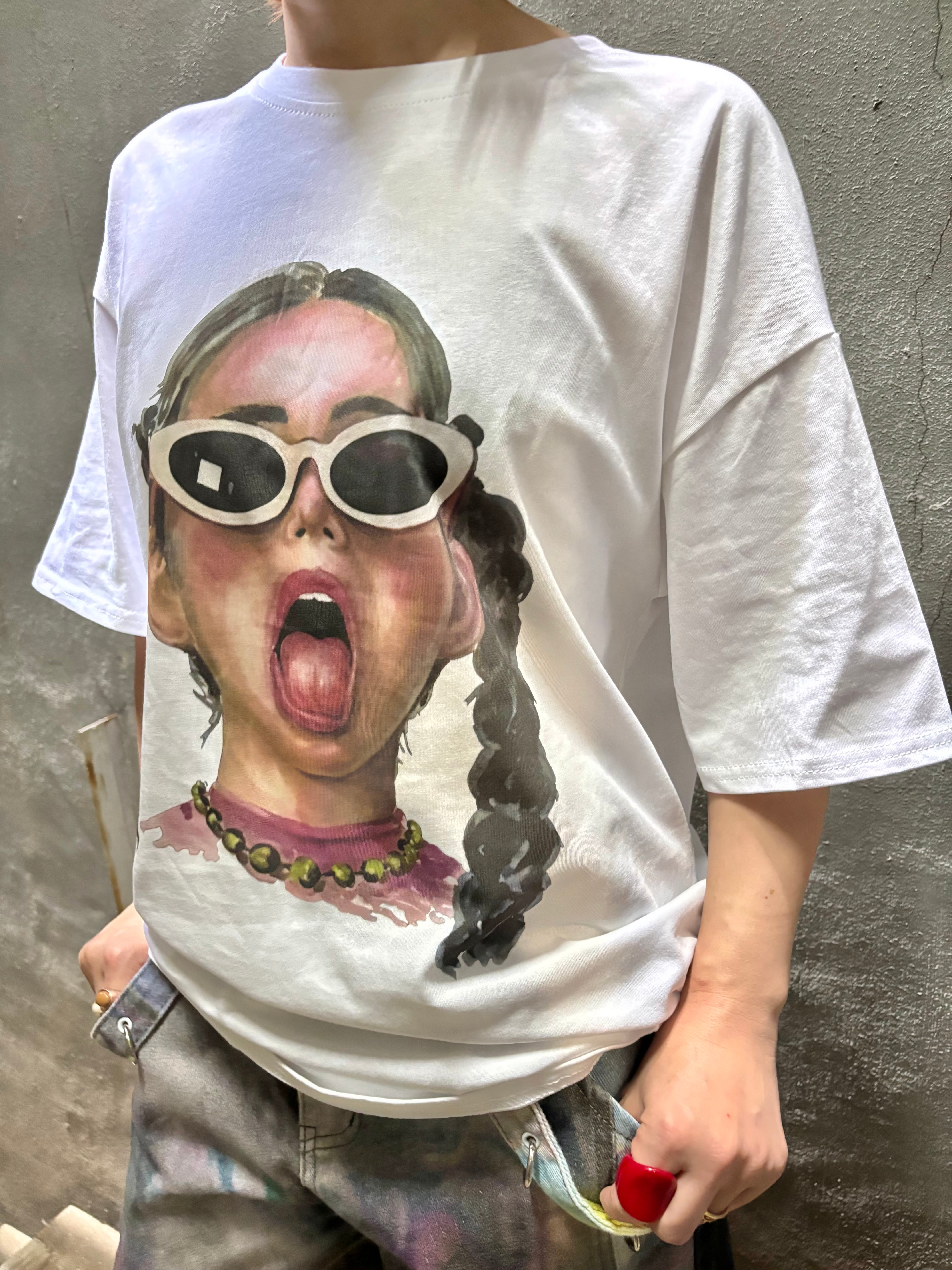 sunglasses girl face print over size T-shirt tops Tシャツ オーバーサイズ プリント 女の子