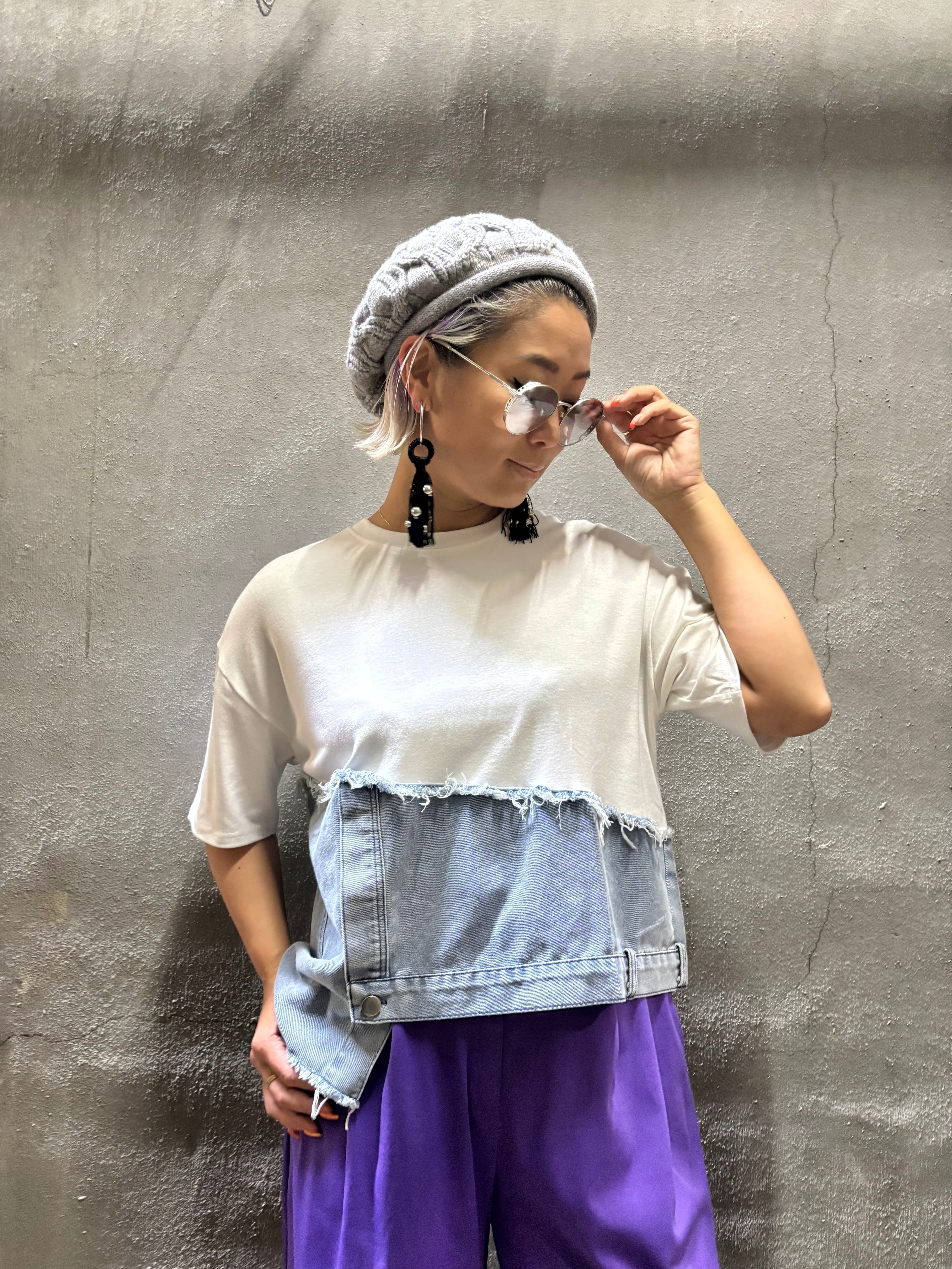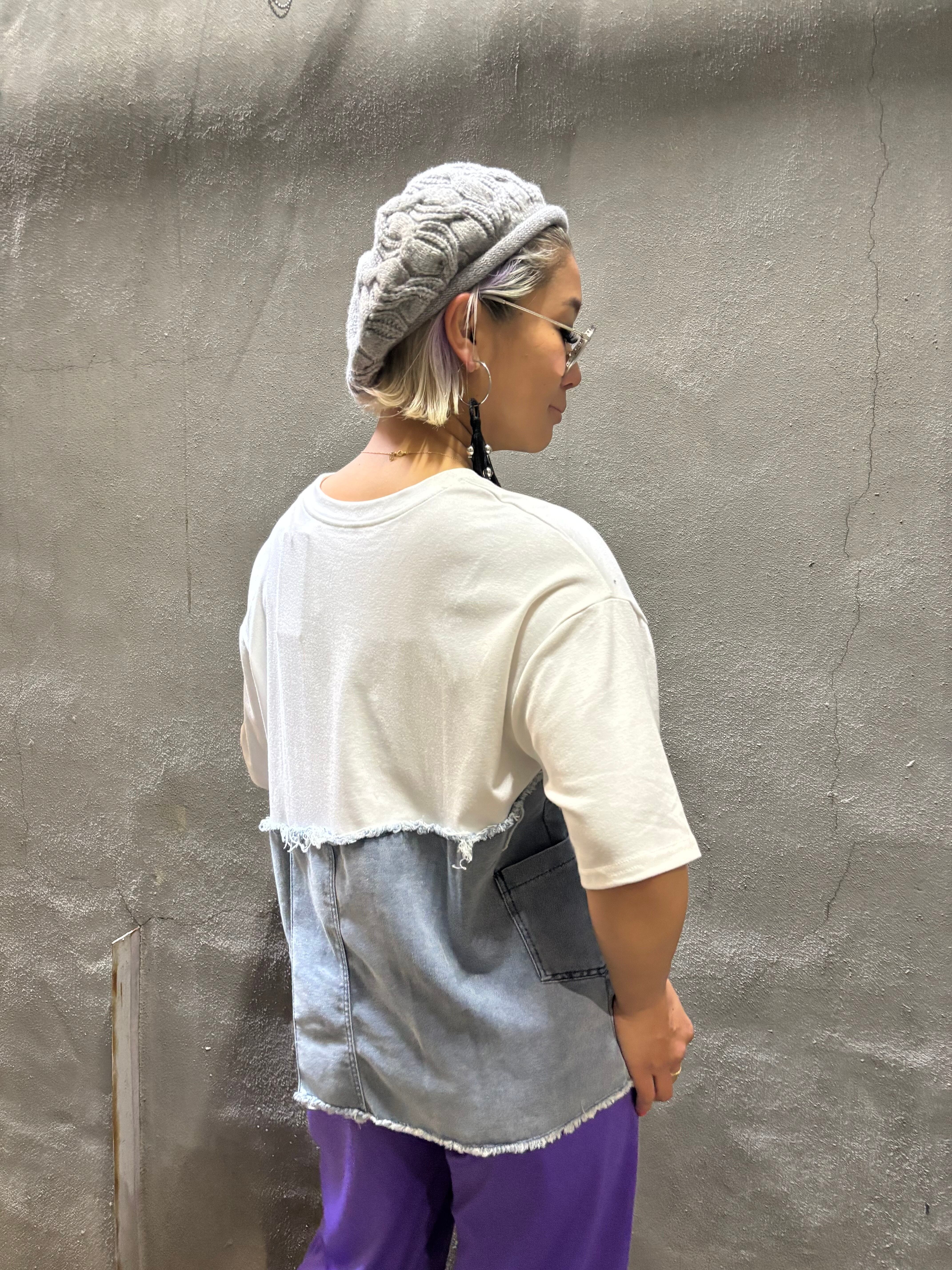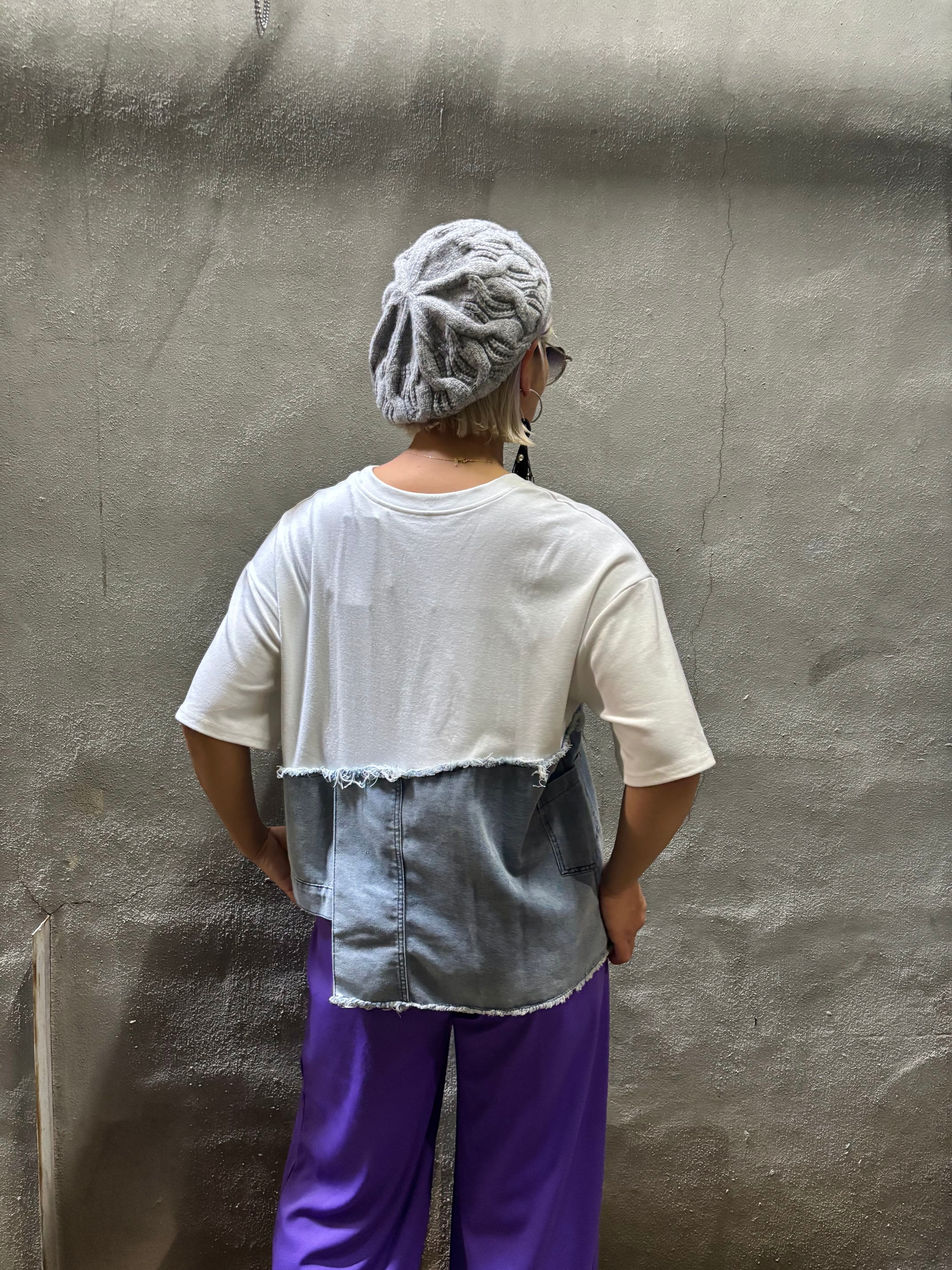 柔らかい素材のTシャツにデニムがドッキングした、カジュアルスタイルにピッタリなトップスです!