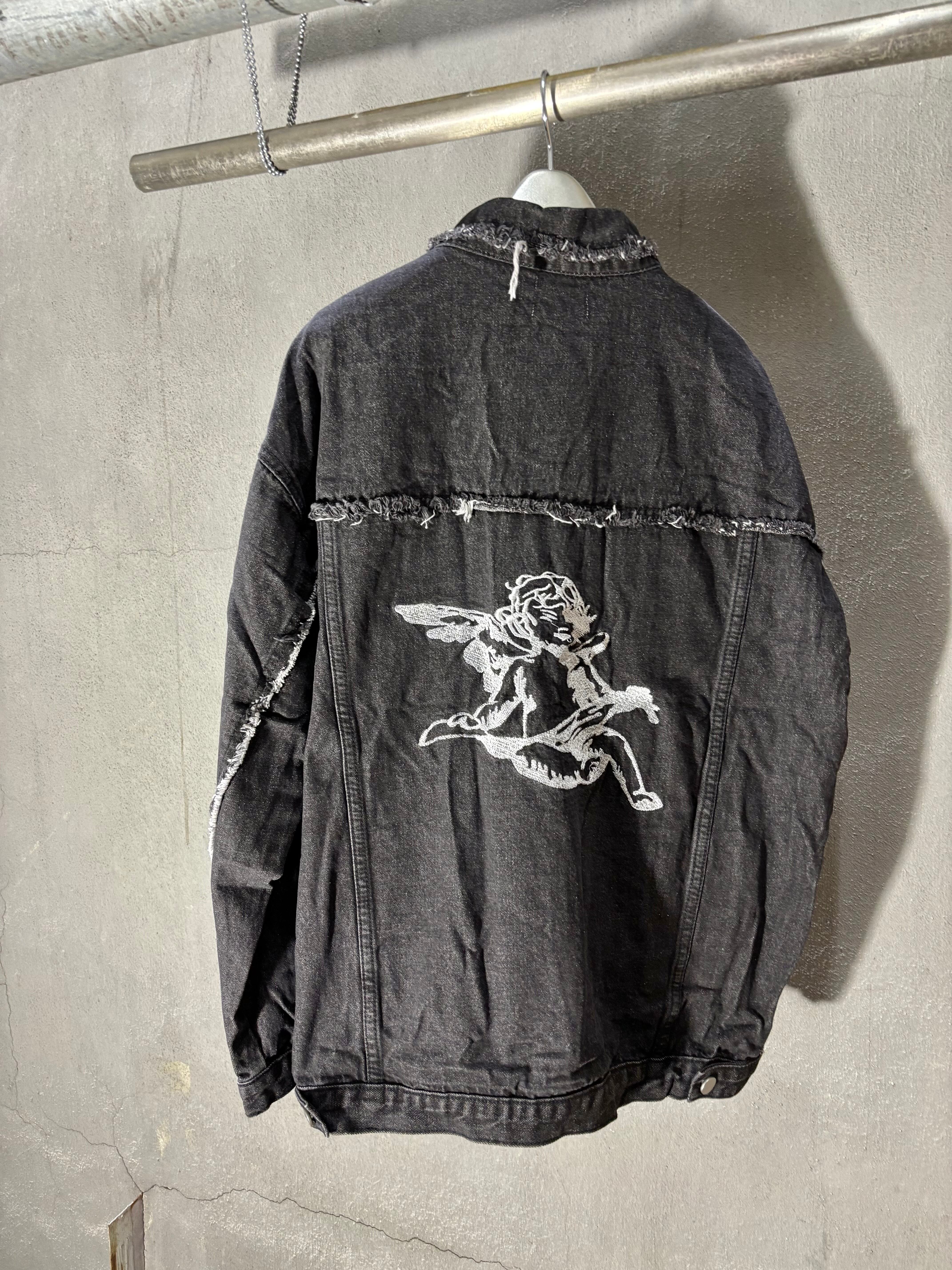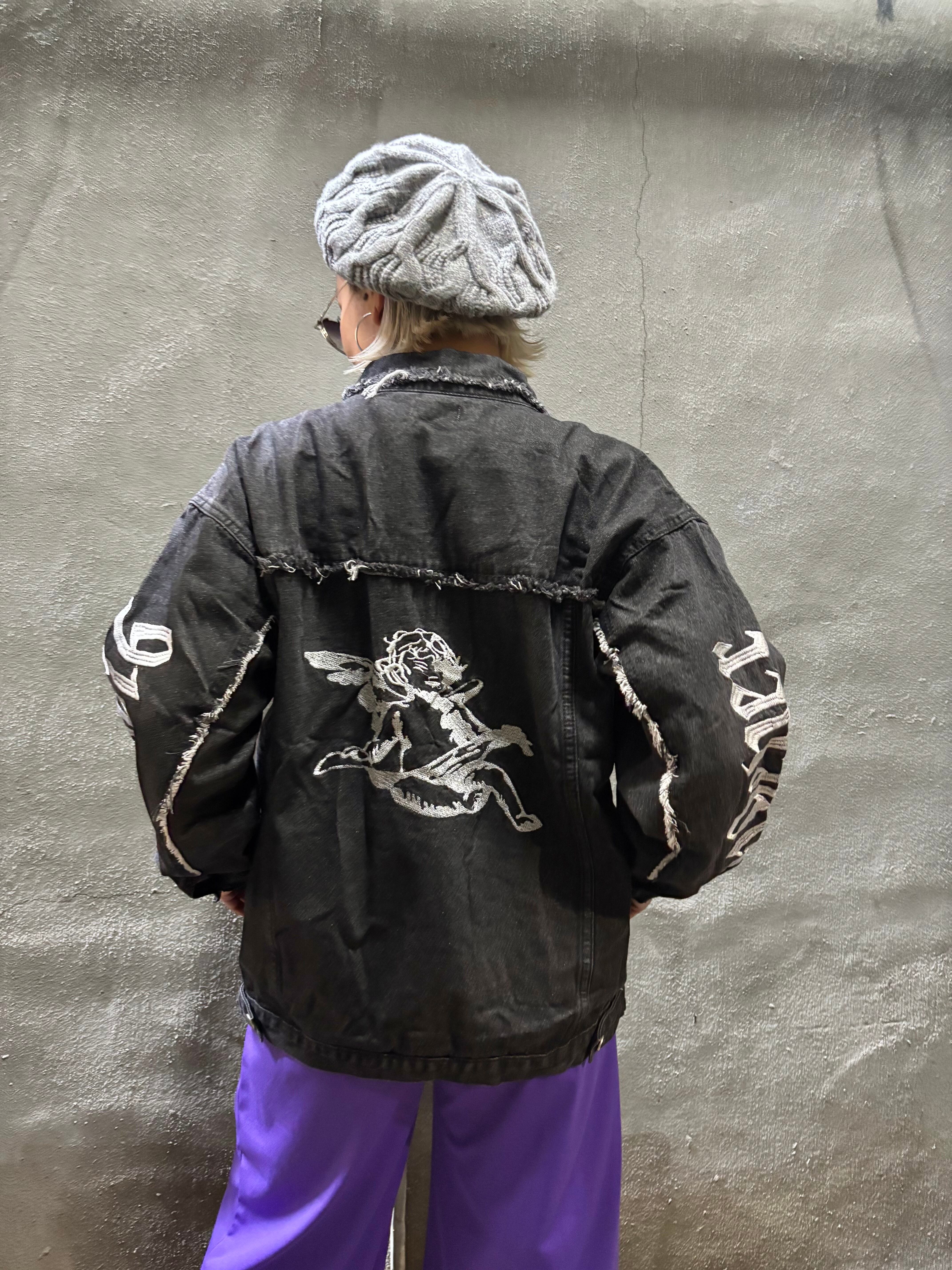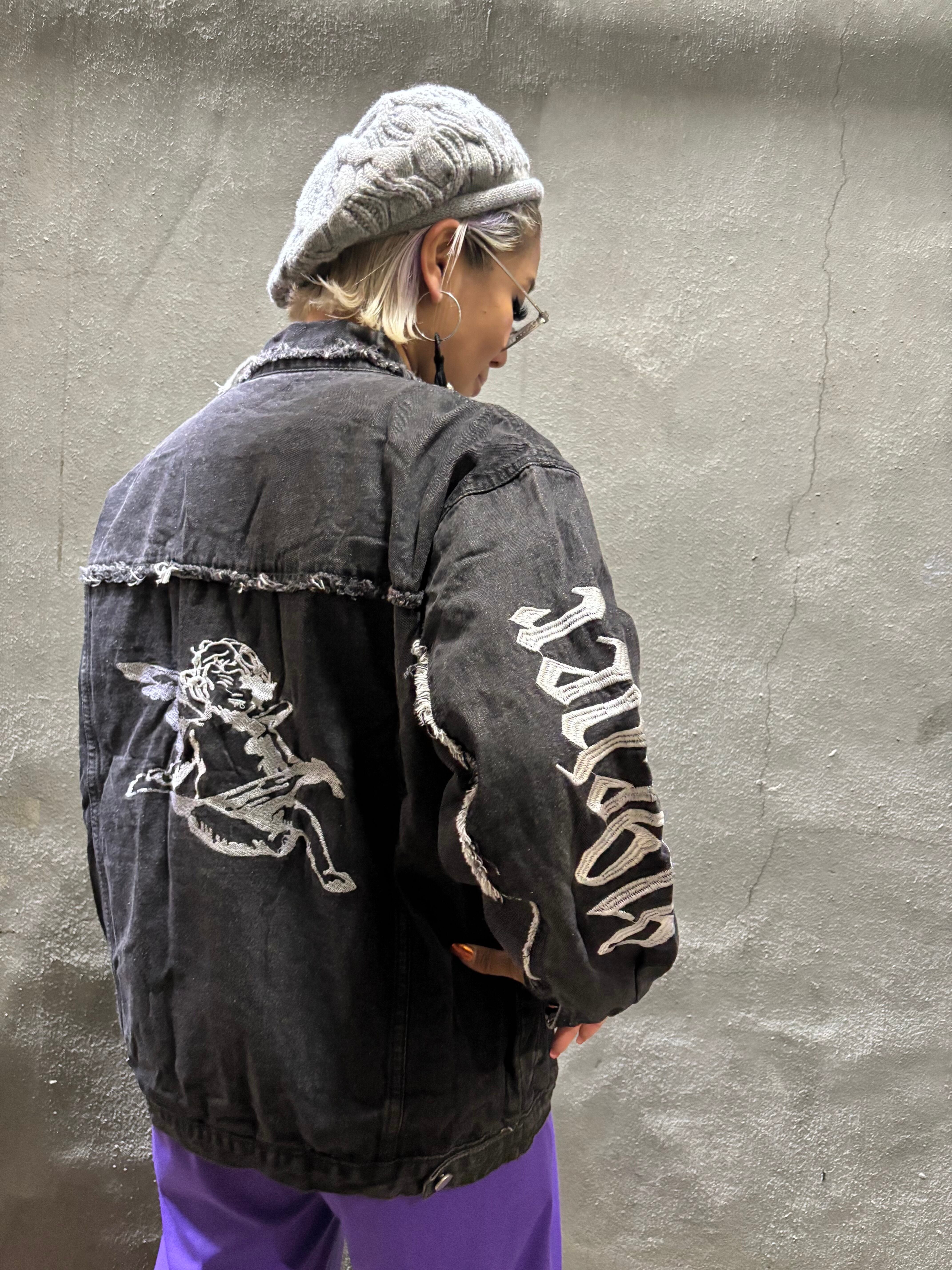 angel embroidery design over size black denim jacket ジャケット デニム ブラックデニム オーバーサイズ 刺繍