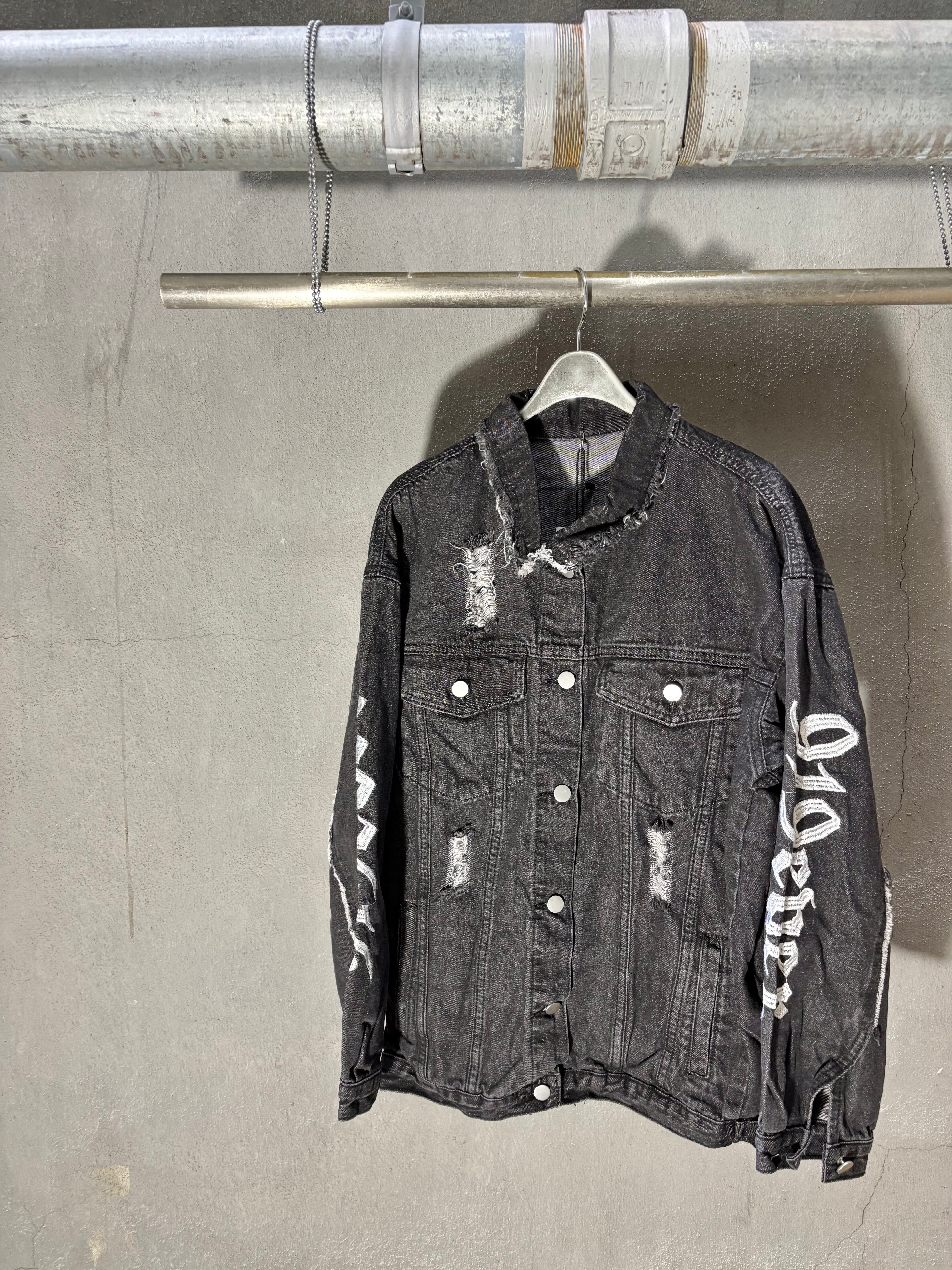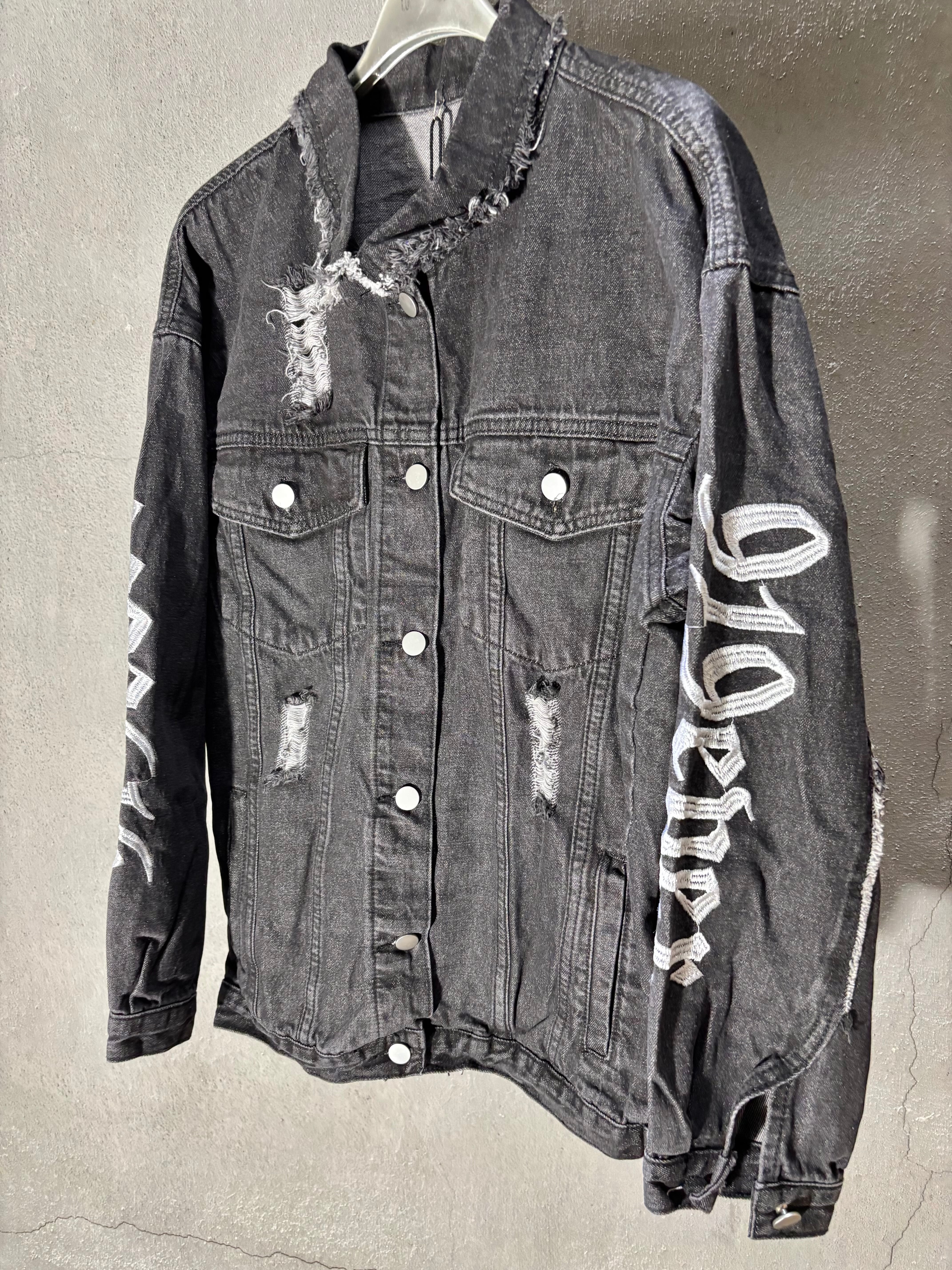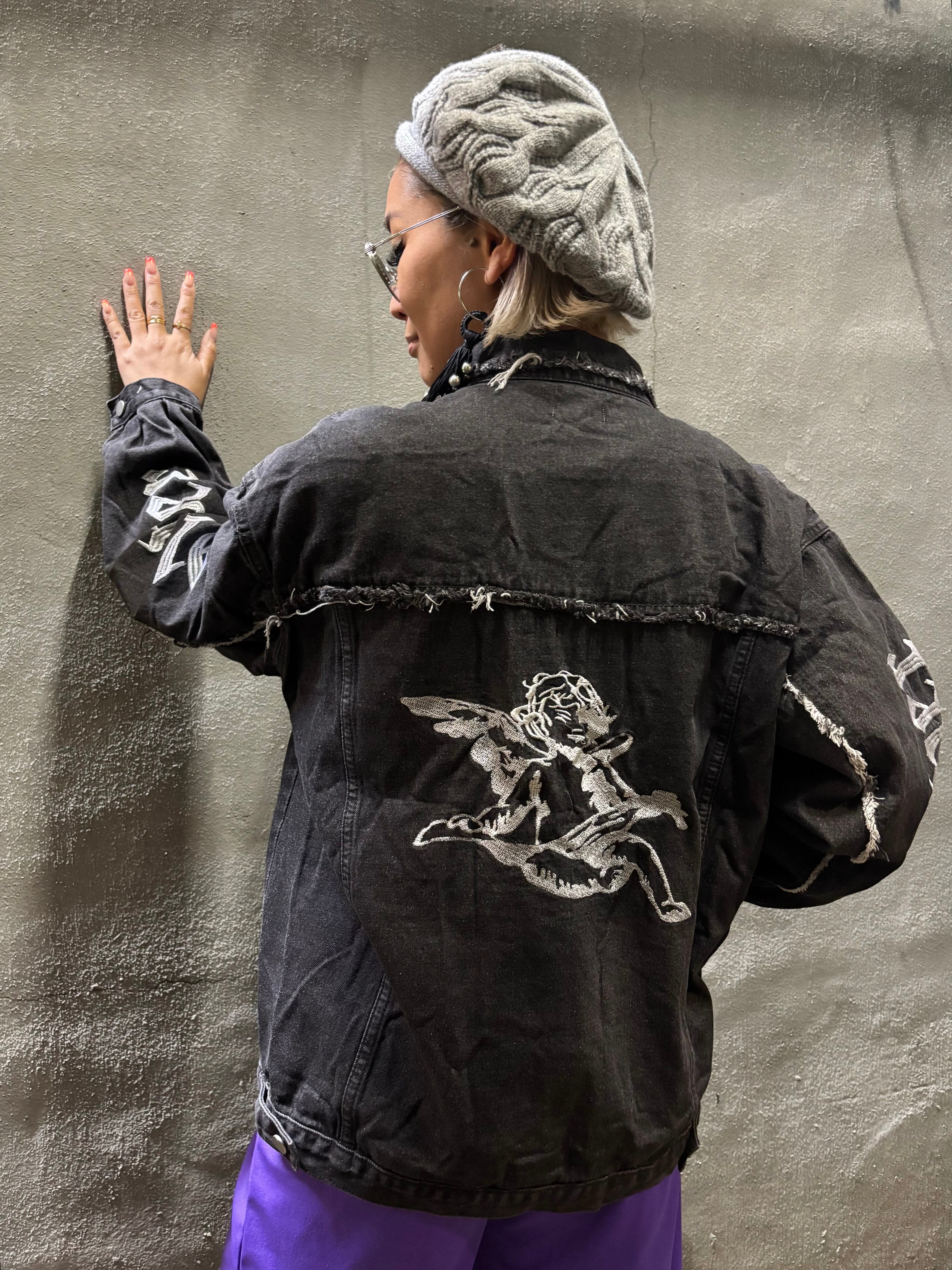 angel embroidery design over size black denim jacket ジャケット デニム ブラックデニム オーバーサイズ 刺繍