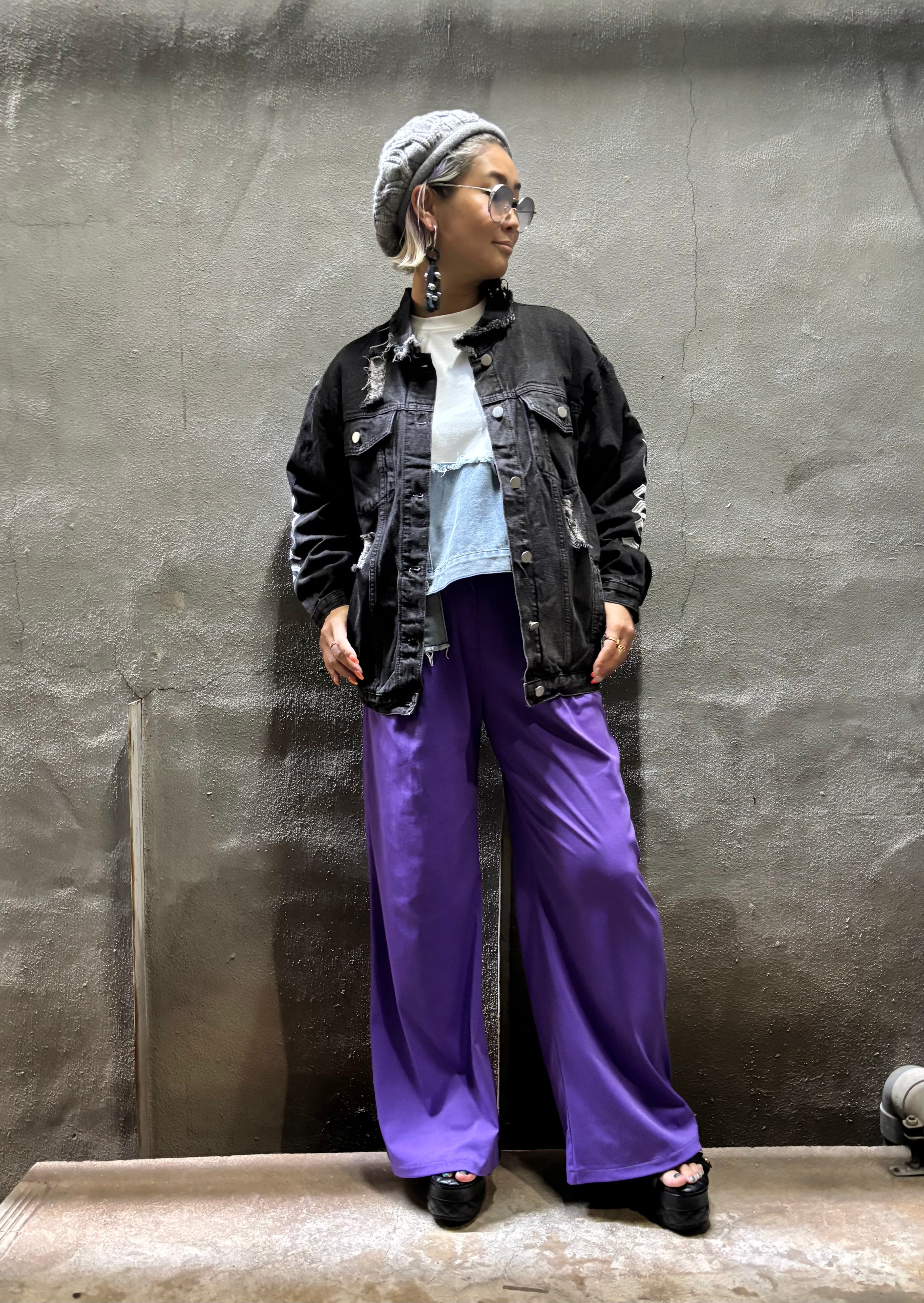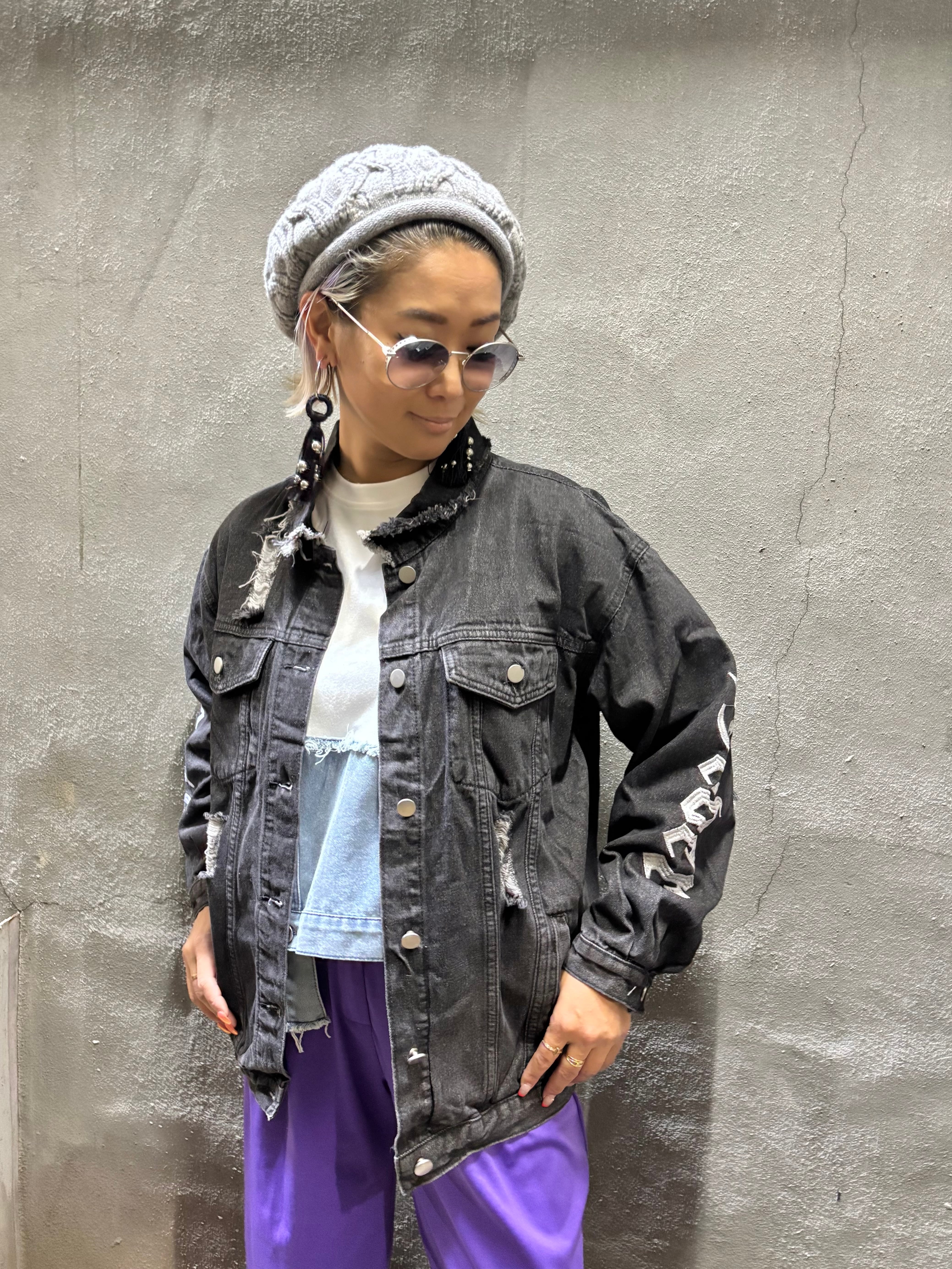 ブラックデニムのオーバーサイズジャケットは、ゆったりとしたシルエットが特徴♪