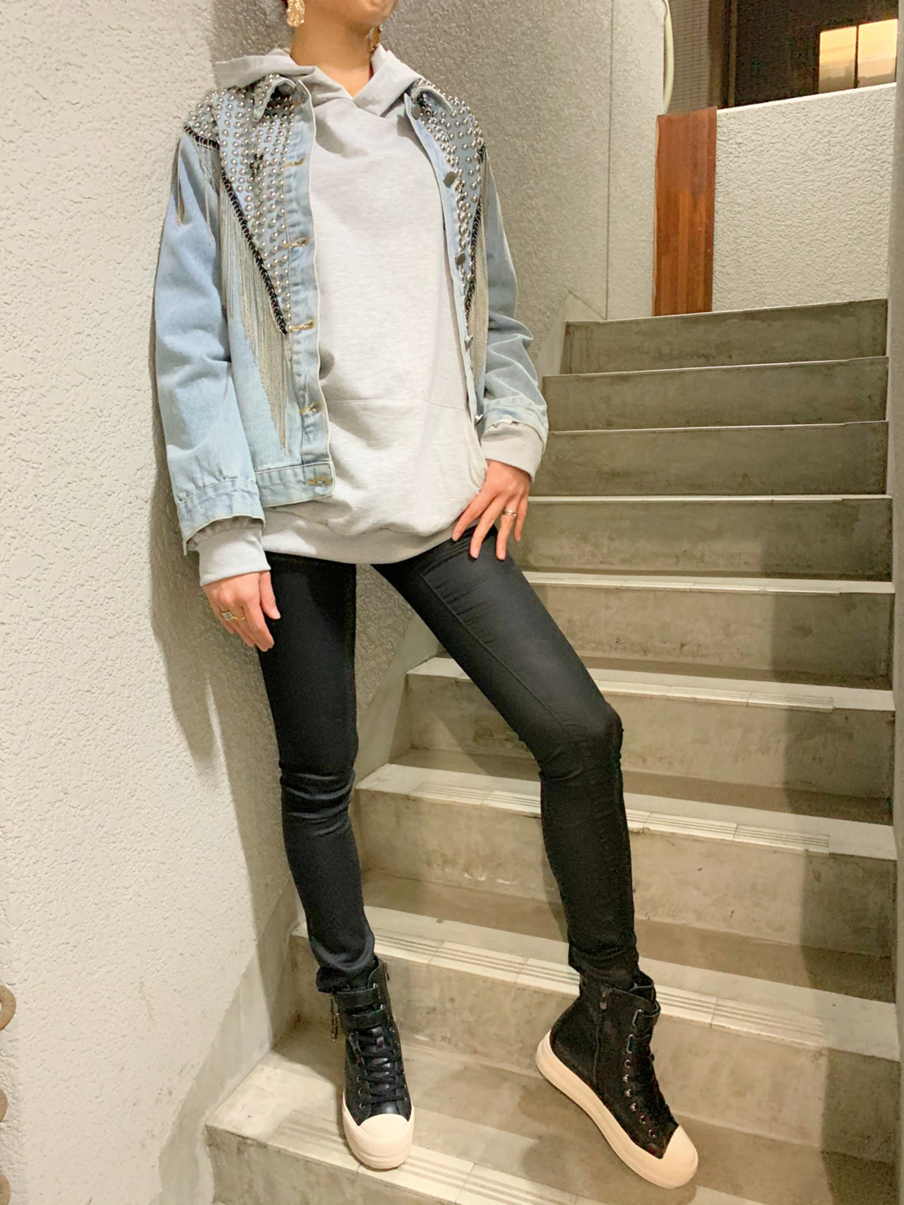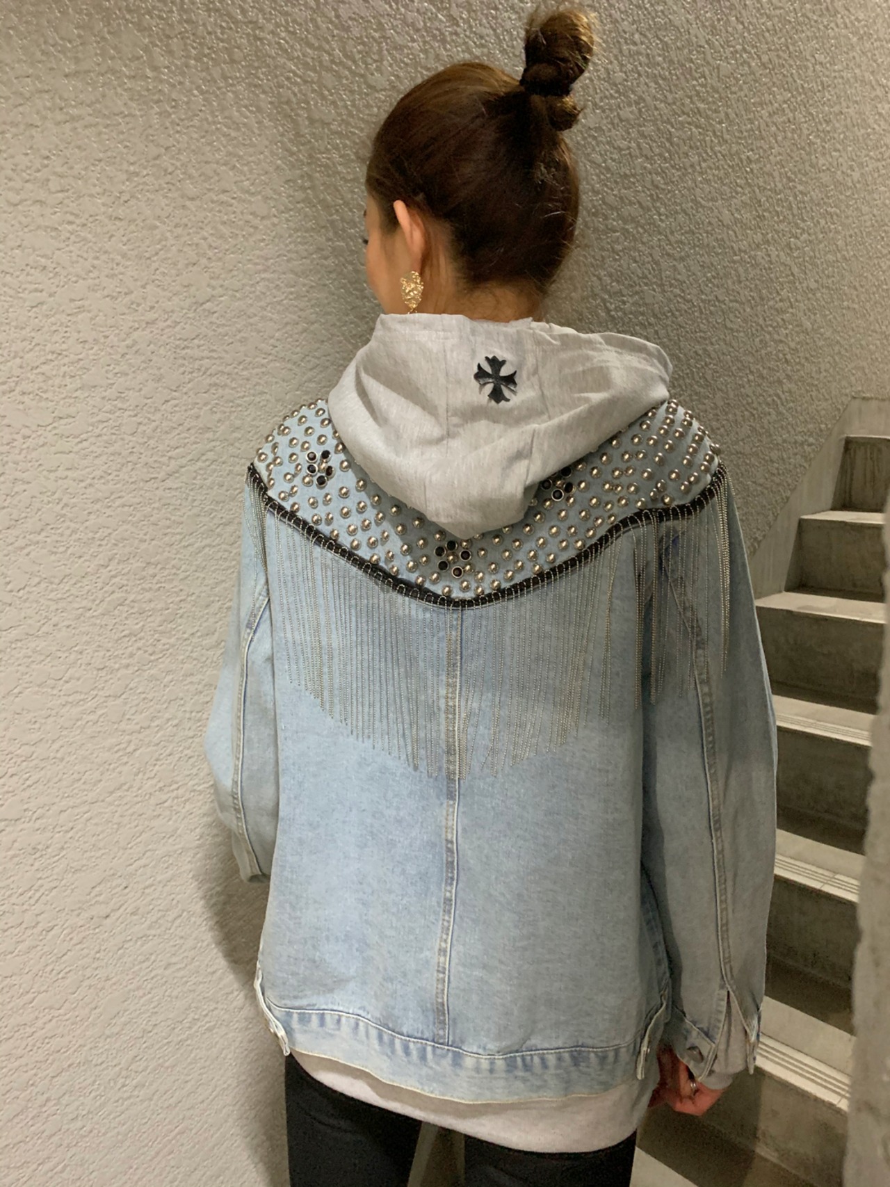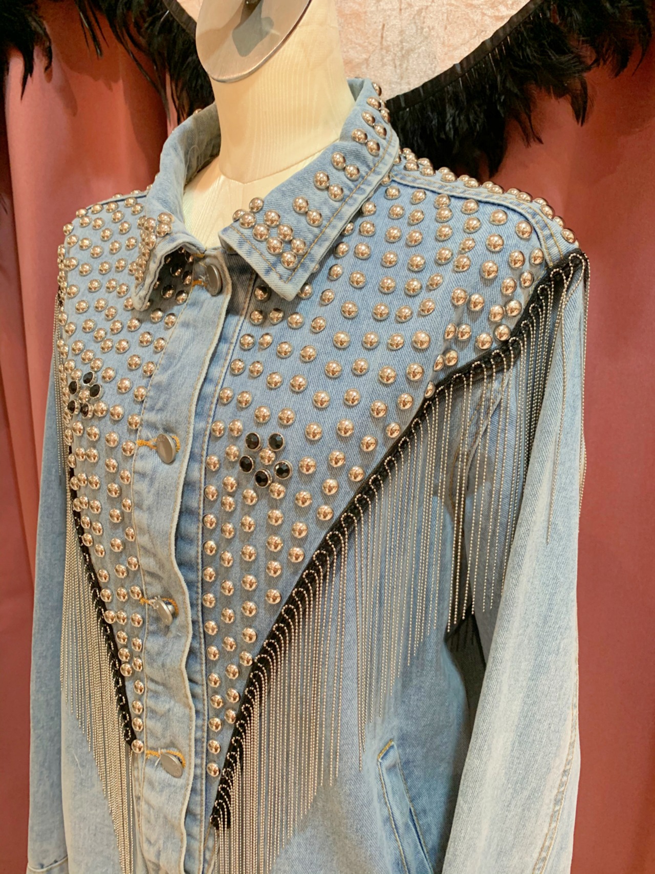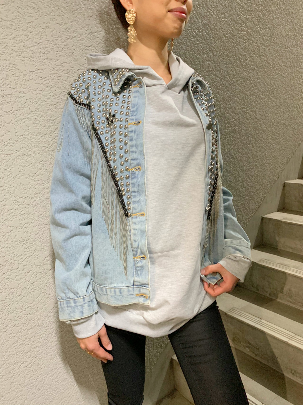 denim jacket デニム デニムジャケット ジャケット スタッズ フリンジ ボールチェーン チェーン デザインジャケット かっこいい おしゃれ インポート 個性的 ユニーク