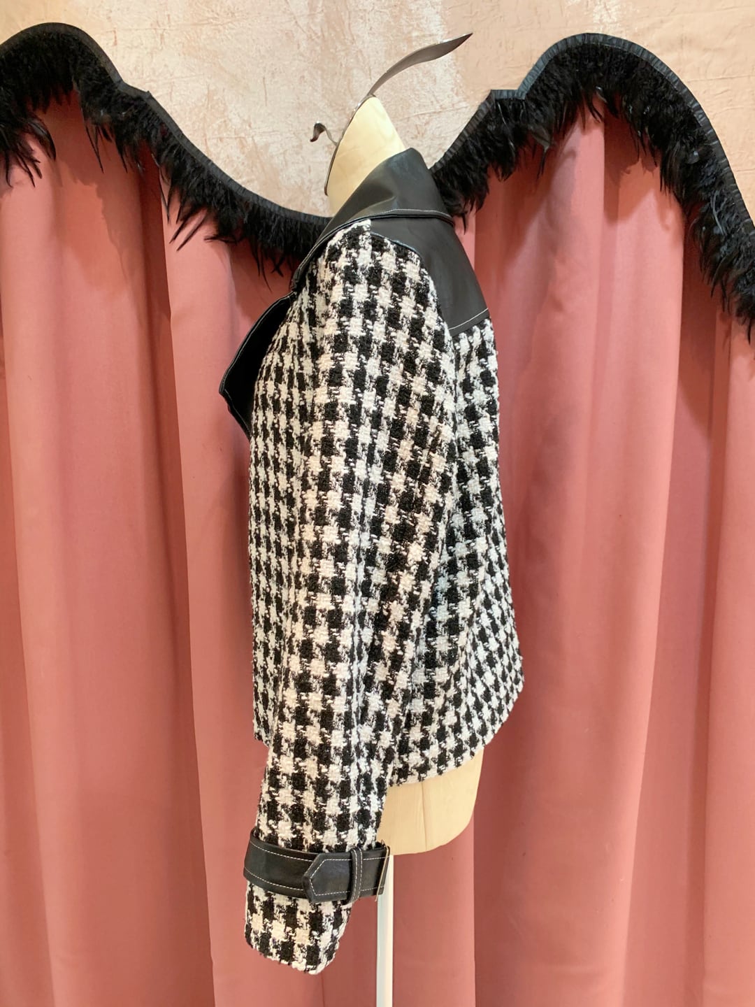 riders jacket チェック 千鳥 柄 ライダース ベルト オーバー サイズ レザー 切替